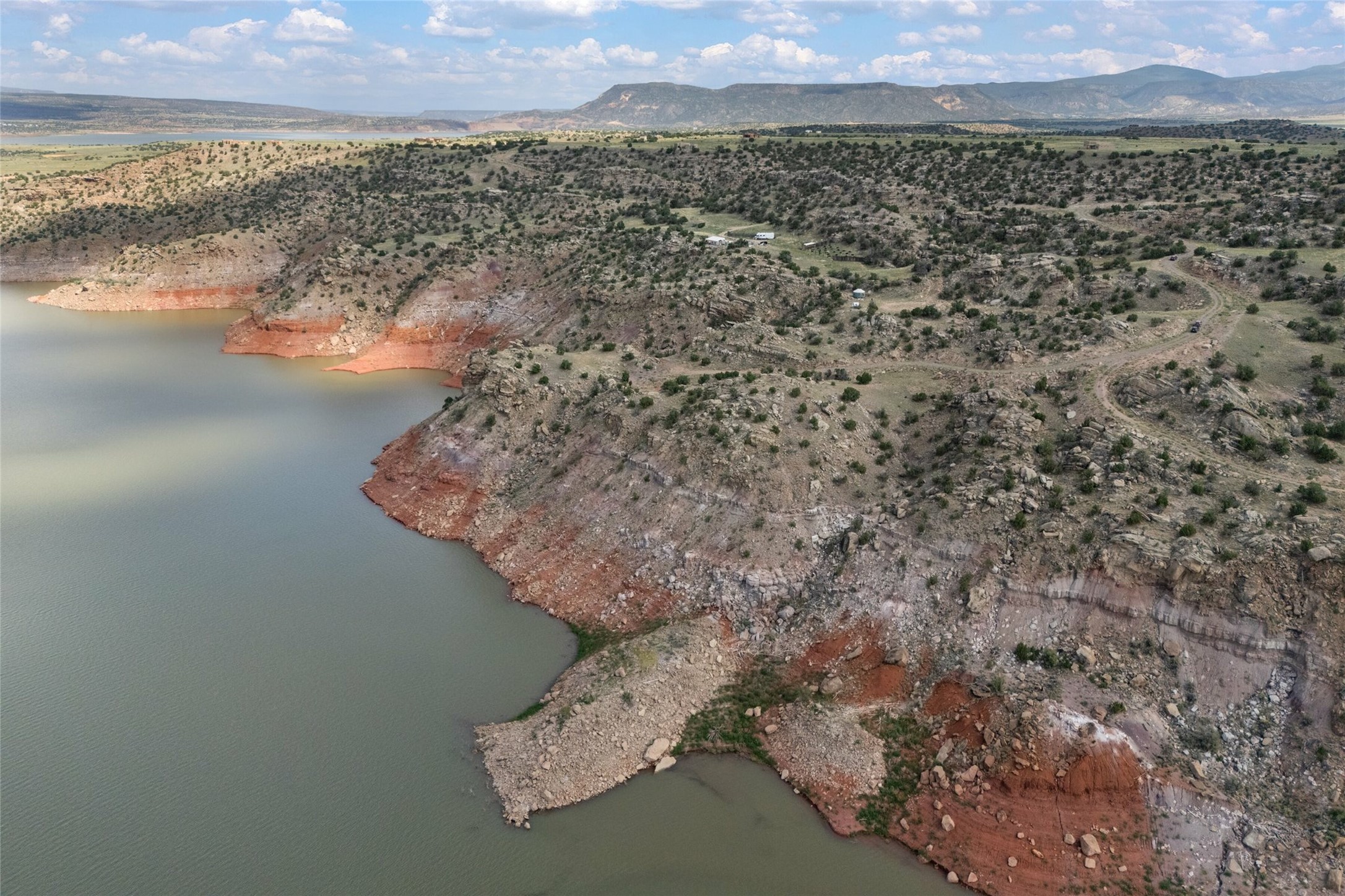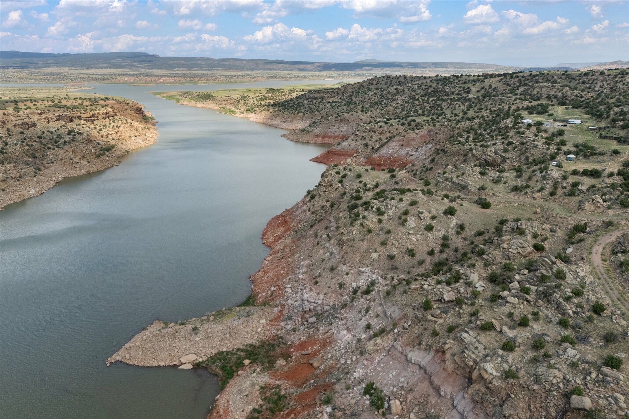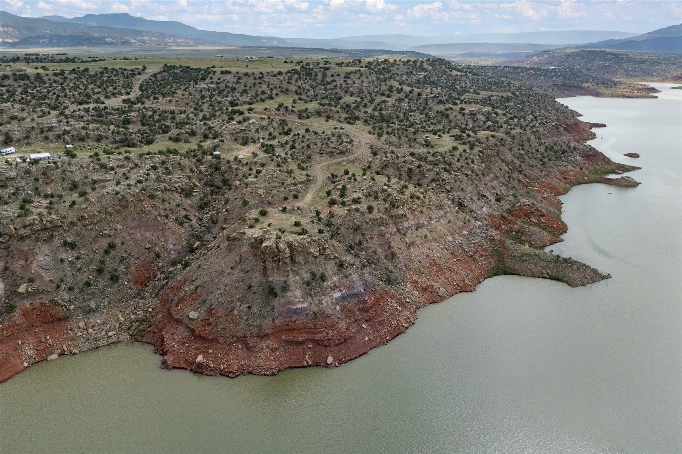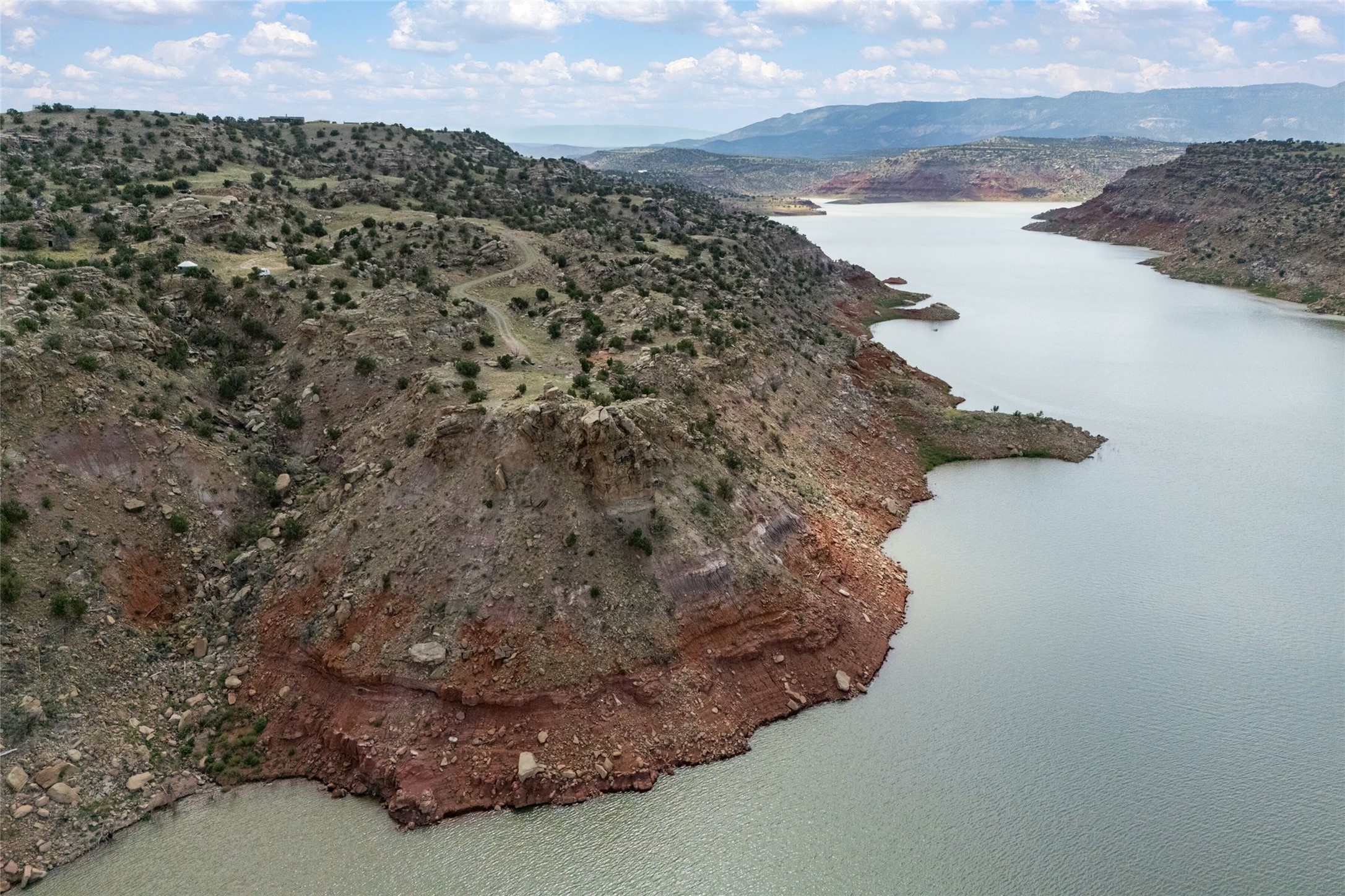 Who has waterfront property in New Mexico? It is unheard of! And yet, there is a rare, very special 14.49 acre view parcel right on the water at Lake Abiquiu! It sits on a private, majestic ridge surrounded by panoramas of Ghost Ranch and the legendary multi-colored cliffs memorialized in Georgia O'Keeffe's art, with views and access all the way up the San Juan river as well. There are several spectacular building sites to choose from, magnificent character rocks, total privacy, peace, silence and tranquility in overwhelming beauty, looking out over the world and Lake Abiquiu. Electric is in, and a shared well, plus membership in the private community Lot 16 boat ramp and picnic area. 5 minutes to Abiquiu, an hour from Santa Fe, and a short drive south of the Colorado border, this is a once in a lifetime opportunity to experience waterfront property in New Mexico!