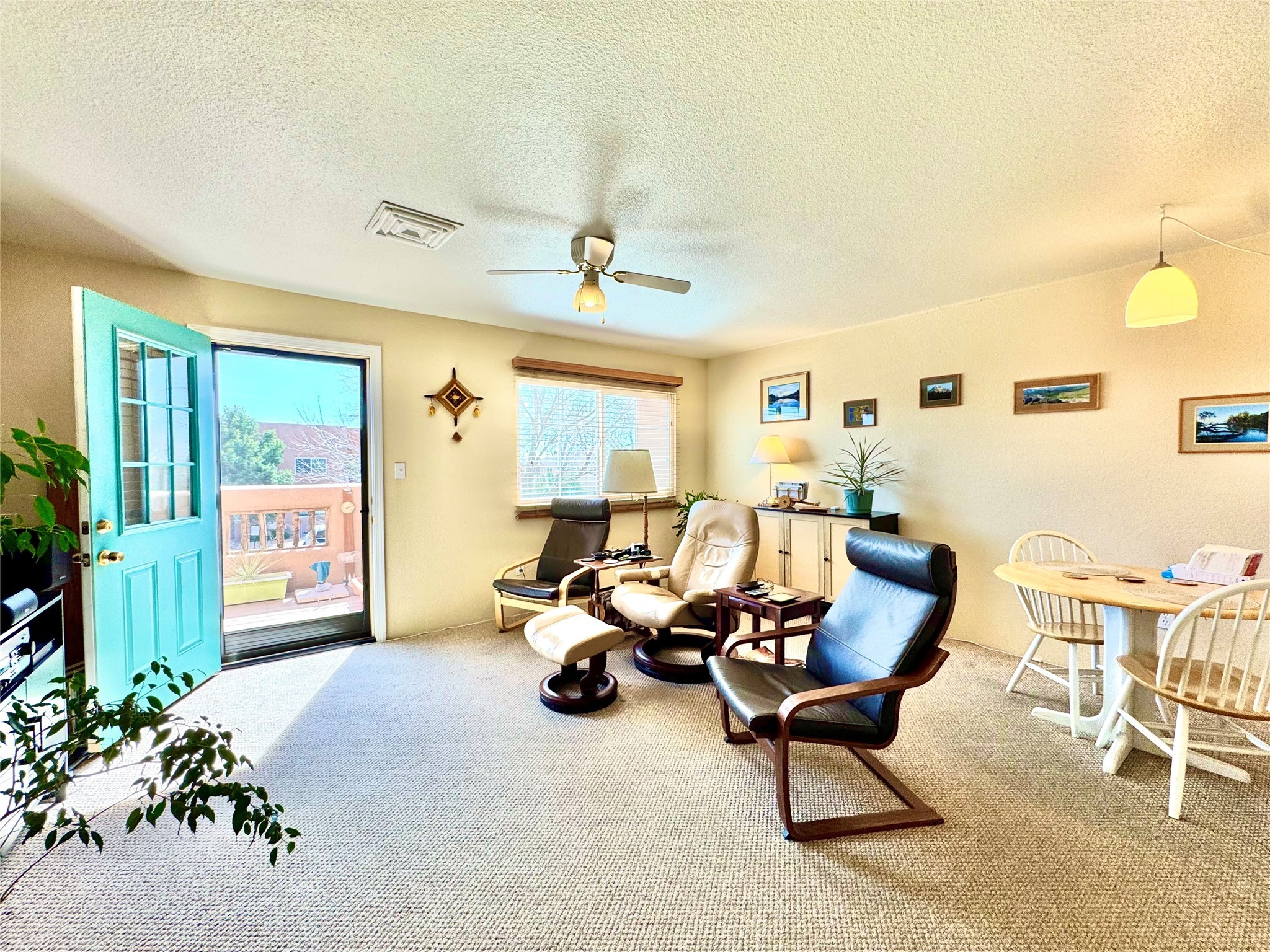 This well preserved 2 bedroom, 2 full bathroom has been meticulously maintained by a single professional for 10 years. The pride in ownership shines with no wear and tear. Located in the perfect spot for soaking up the sun on the private upstairs patio with enough room for loungers or a great patio set. Lots of natural light fills this home plus you have the advantage of southern and eastern views. Dos Santos residence savor the many lovely amenities, all while being minutes away from downtown Santa Fe, great shopping, restaurants and the Santa Fe Railyard. Enjoy an easy going lifestyle behind closed gates with a seasonal swimming pool, hot tub, clubhouse, fitness center, dog run and great walking trails nearby. Looking for value in Santa Fe? This is the perfect idea for first time home buyers, down-sizing, right-sizing or an investment opportunity. Look no further, do not let this amazing condo pass you by.