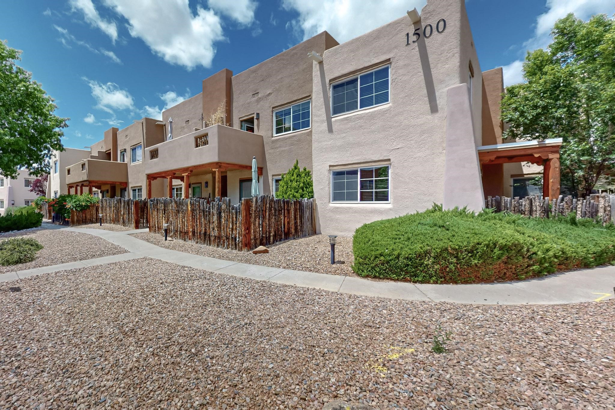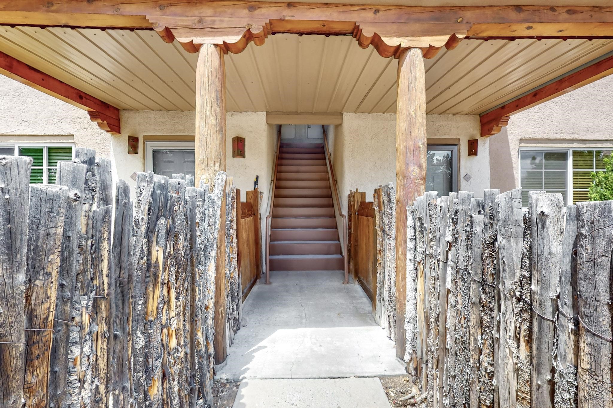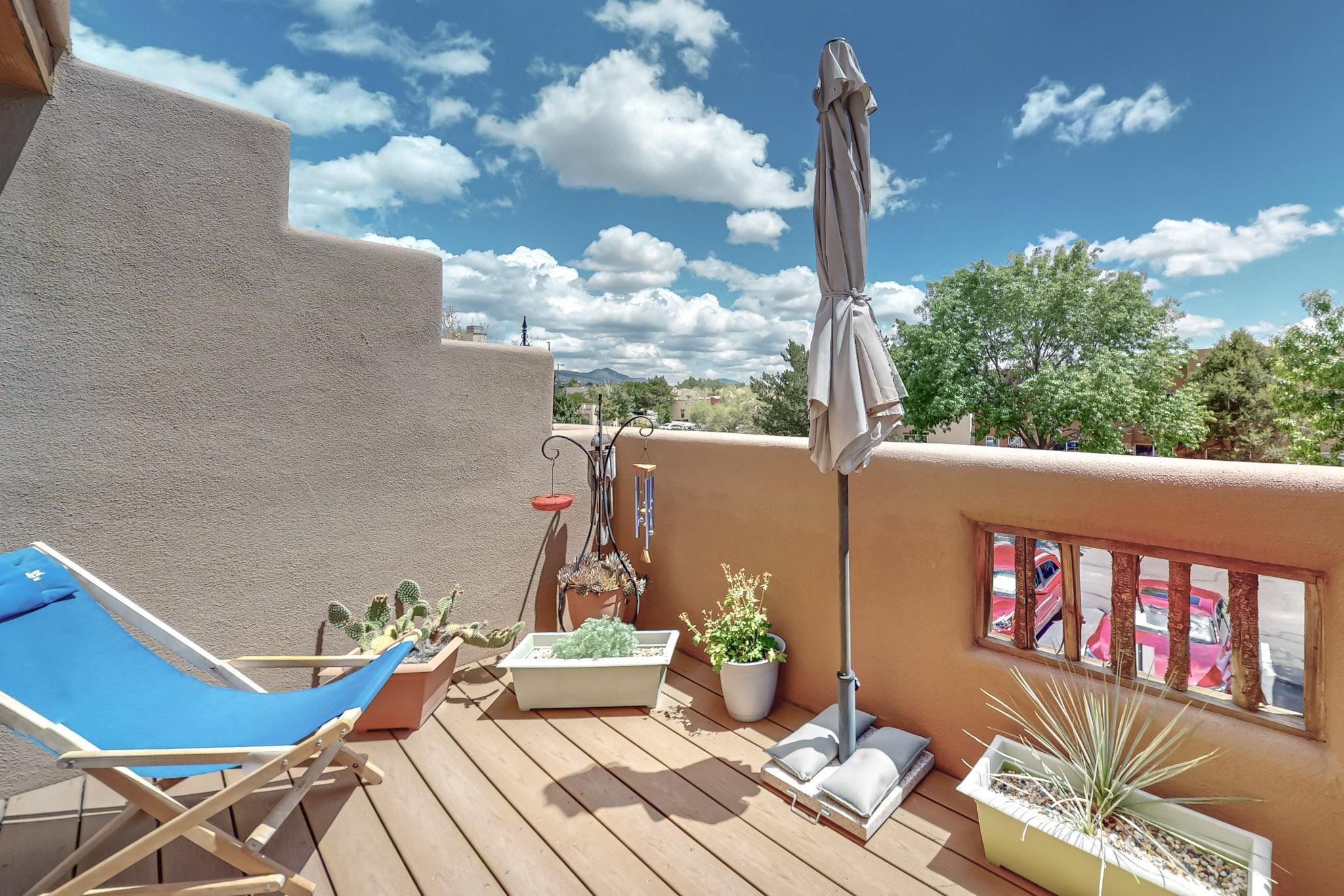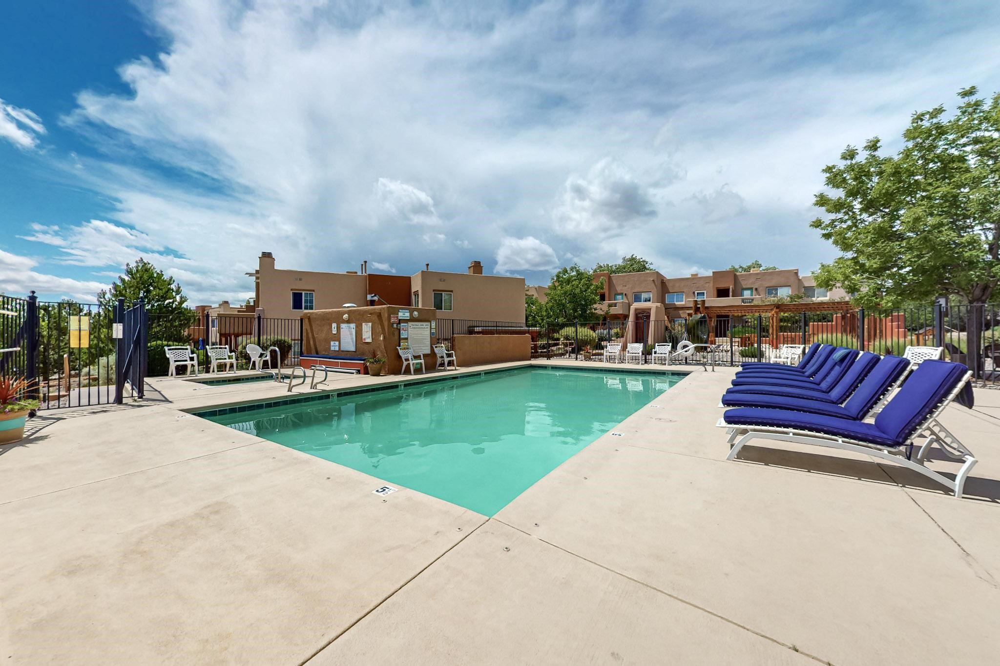 This well preserved 2 bedroom, 2 full bathroom has been meticulously maintained by a single professional for 10 years. The pride in ownership shines with no wear and tear. Located in the perfect spot for soaking up the sun on the private upstairs patio with enough room for loungers or a great patio set. Lots of natural light fills this home plus you have the advantage of southern and eastern views. Dos Santos residence savor the many lovely amenities, all while being minutes away from downtown Santa Fe, great shopping, restaurants and the Santa Fe Railyard. Enjoy an easy going lifestyle behind closed gates with a seasonal swimming pool, hot tub, clubhouse, fitness center, dog run and great walking trails nearby. Looking for value in Santa Fe? This is the perfect idea for first time home buyers, down-sizing, right-sizing or an investment opportunity. Look no further, do not let this amazing condo pass you by.