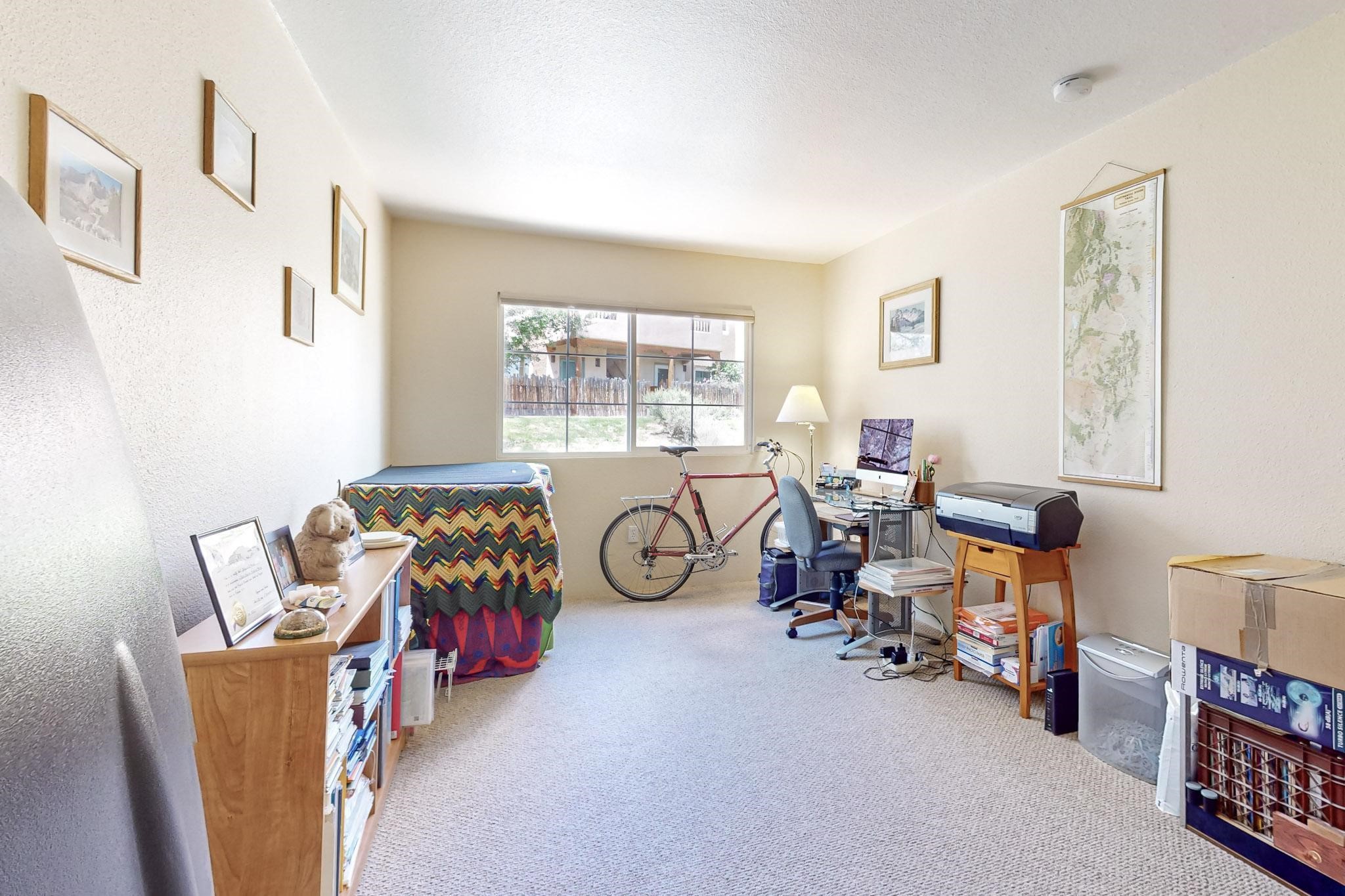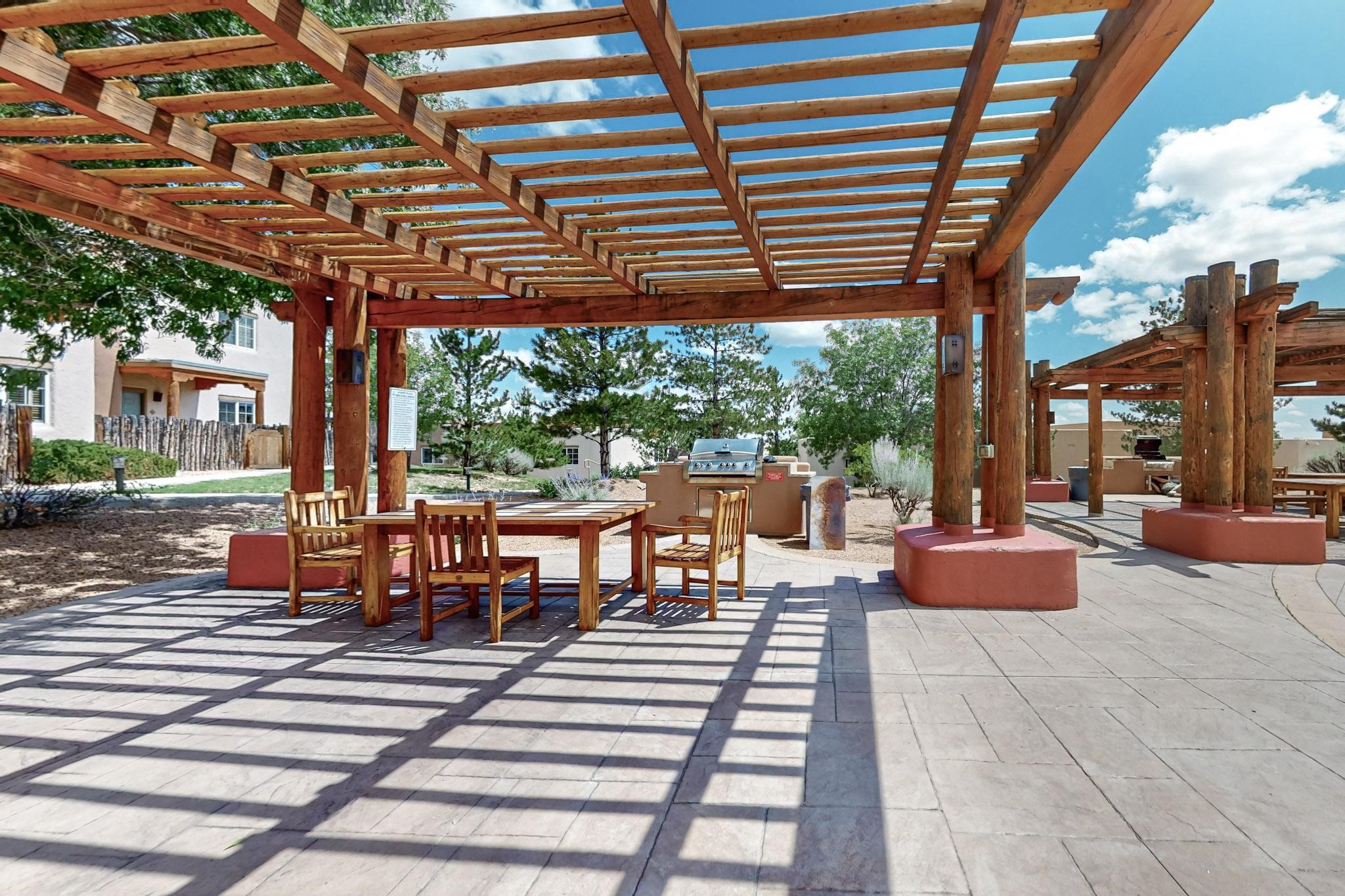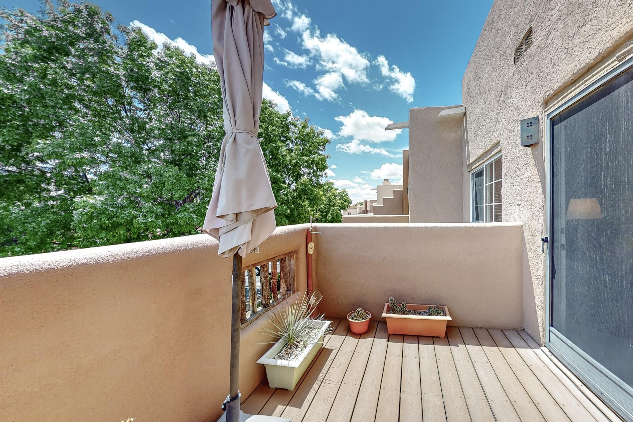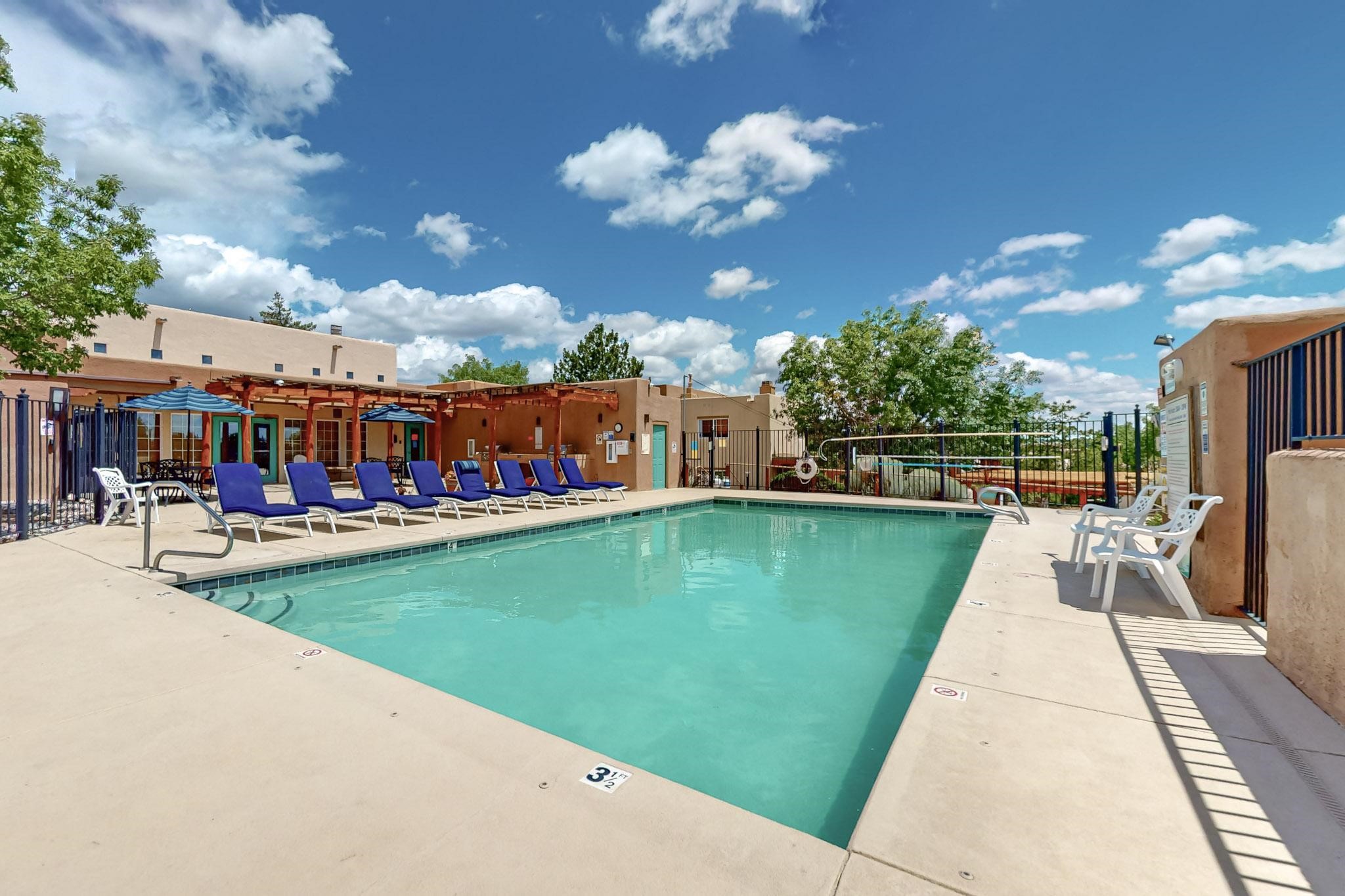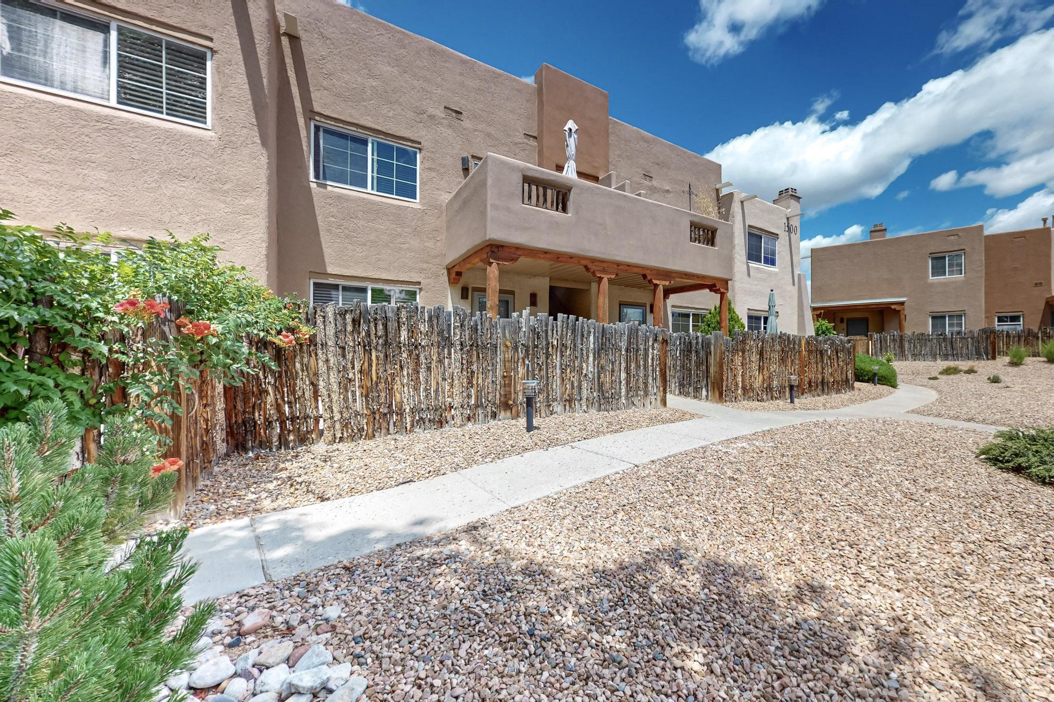This well preserved 2 bedroom, 2 full bathroom has been meticulously maintained by a single professional for 10 years. The pride in ownership shines with no wear and tear. Located in the perfect spot for soaking up the sun on the private upstairs patio with enough room for loungers or a great patio set. Lots of natural light fills this home plus you have the advantage of southern and eastern views. Dos Santos residence savor the many lovely amenities, all while being minutes away from downtown Santa Fe, great shopping, restaurants and the Santa Fe Railyard. Enjoy an easy going lifestyle behind closed gates with a seasonal swimming pool, hot tub, clubhouse, fitness center, dog run and great walking trails nearby. Looking for value in Santa Fe? This is the perfect idea for first time home buyers, down-sizing, right-sizing or an investment opportunity. Look no further, do not let this amazing condo pass you by.