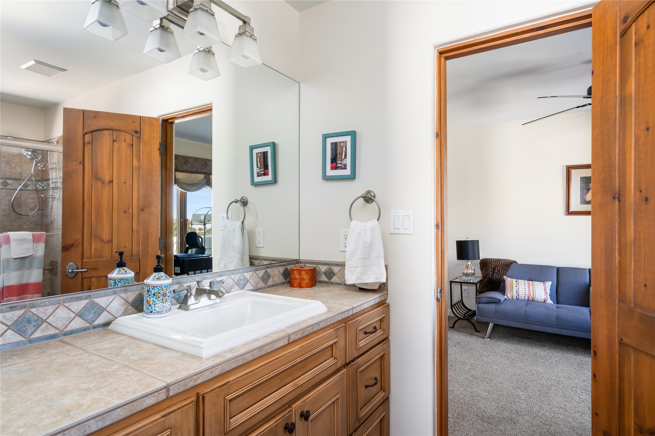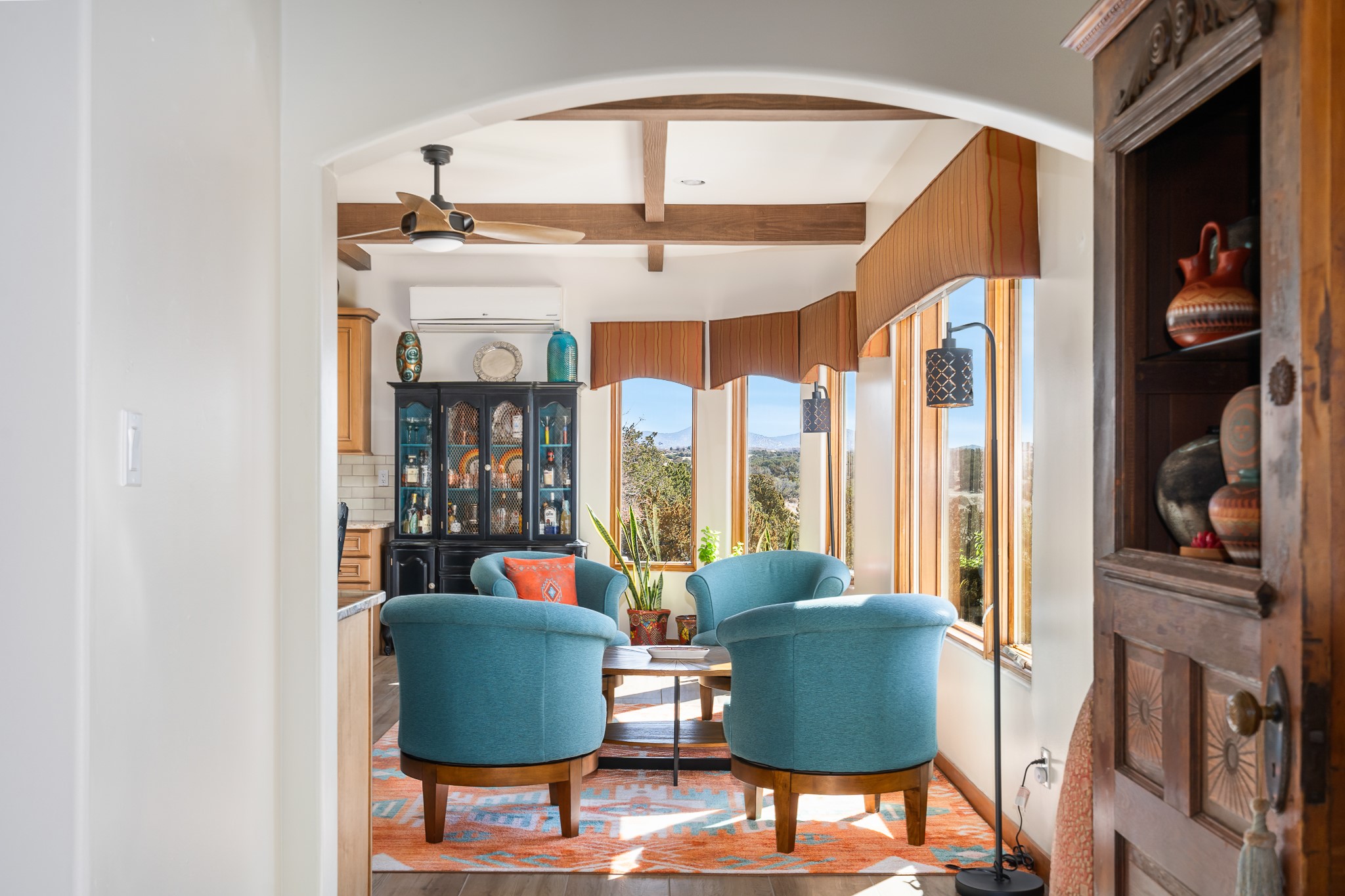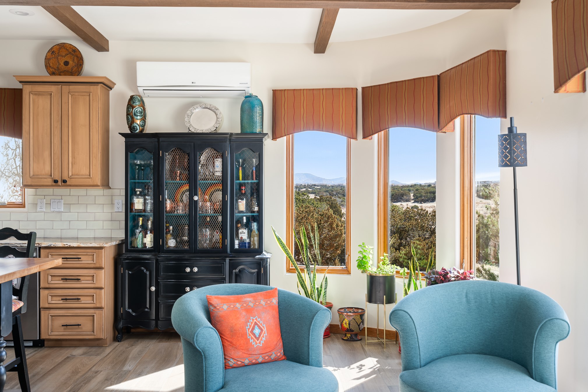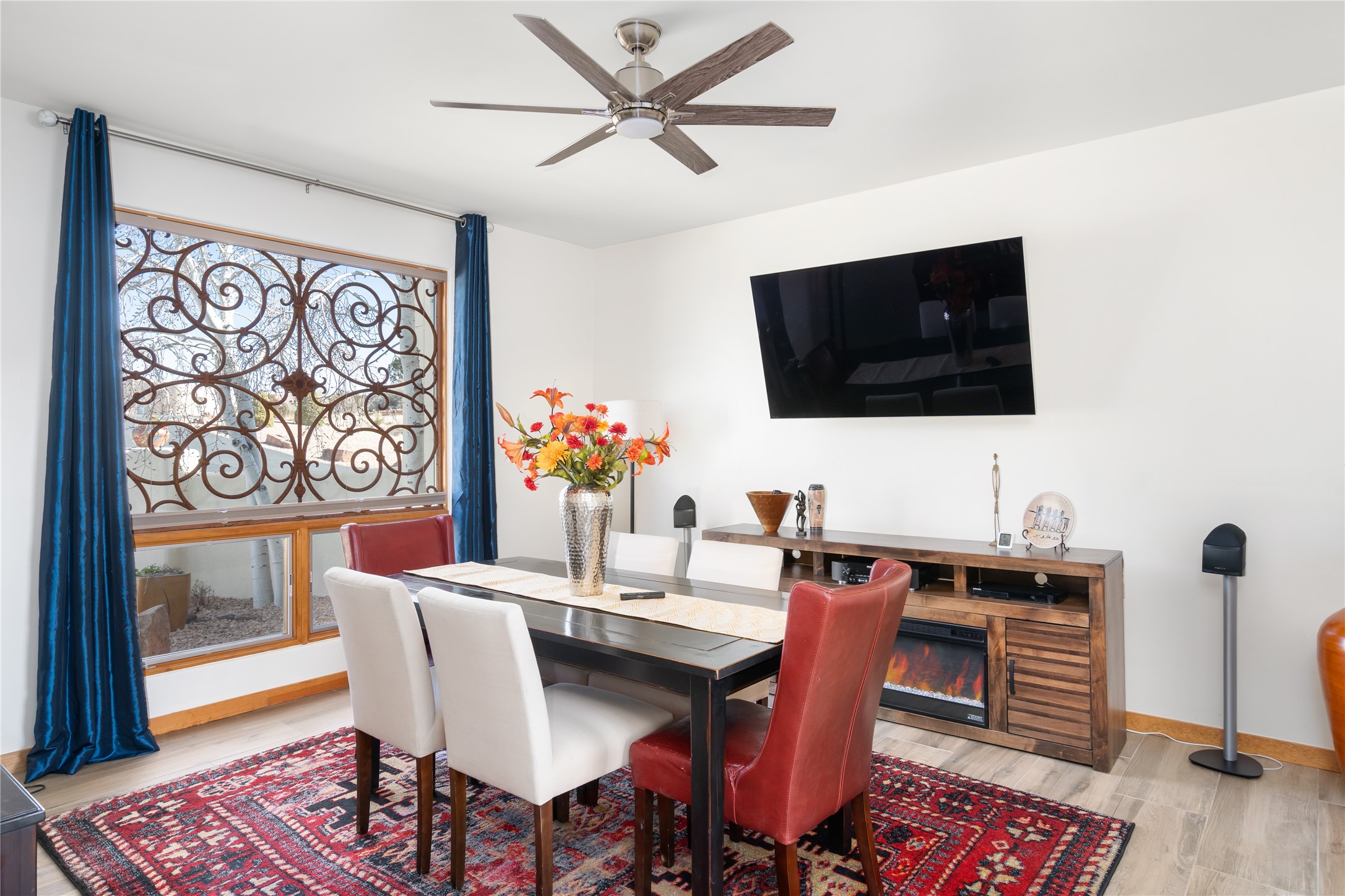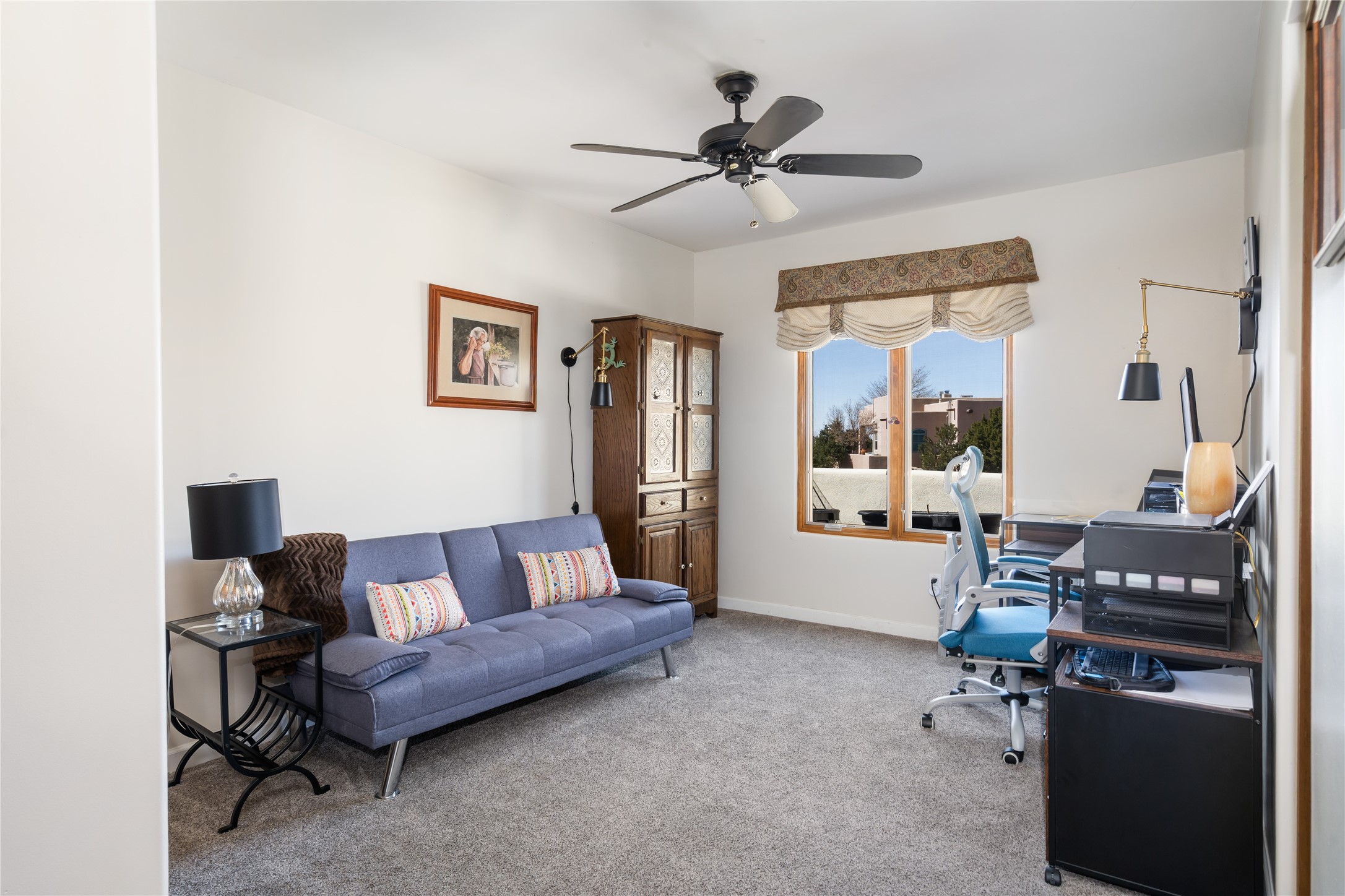 You'll love this custom Santa Fe home with a guest house that proves you can have both beauty and brains. Tucked away on a quiet cul-de-sac in the exclusive Village Estates of Rancho Viejo, this thoughtfully designed home blends smart living with timeless Santa Fe charm. Let's start with the brains: 23 owned solar panels creating electric bills under $10 a month. There's a whole-house water filtration/softener system, a hot water recirculating pump on an Alexa plug, a remotely operated irrigation system, and more. As for the beauty: an inviting new kitchen designed for gathering and gourmet cooking takes center stage in the one-level main house. You'll enjoy generous living and dining areas, a private primary suite with a kiva fireplace, dual custom closets, and a remodeled en suite bath with spa-like finishes. Two guest bedrooms share a full bath, and there's a bright office plus a powder room with a shower--perfect for overnight guests. The living room has a gas fireplace, and there's also a convenient utility room with extensive storage.Step outside to a welcoming patio accessible from the living room or primary suite. Downstairs, a stylish guest house has its own entrance, living space, bedroom, modern kitchen, full bath, and a walk-out covered patio with an outdoor kitchen--perfect for long-term guests or multi-generational living.Enjoy unobstructed views of the Ortiz and Sandia Mountains, or wake up to the sunrise over the Sangre de Cristos. Whether it's morning coffee or sunset cocktails, the patios are the perfect place to soak it all in. Situated on 1.25 acres and backing up to a dedicated greenbelt, the property offers privacy and space. And yes, there's an oversized 3-car garage.When you're ready to explore, Rancho Viejo offers over 12 miles of scenic walking and biking trails--perfect for a morning stroll, evening ride, or spontaneous dog walk. The neighborhood is designed to keep you connected--to nature and to community.