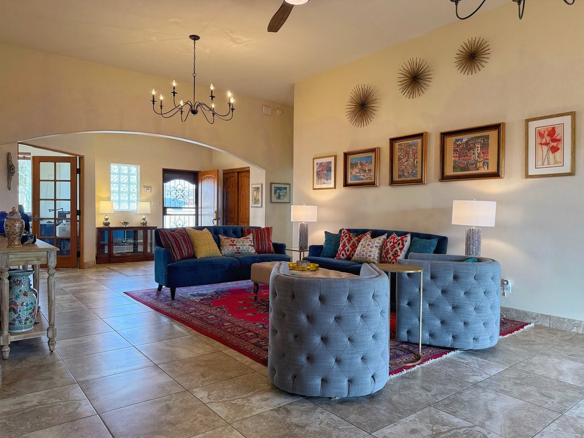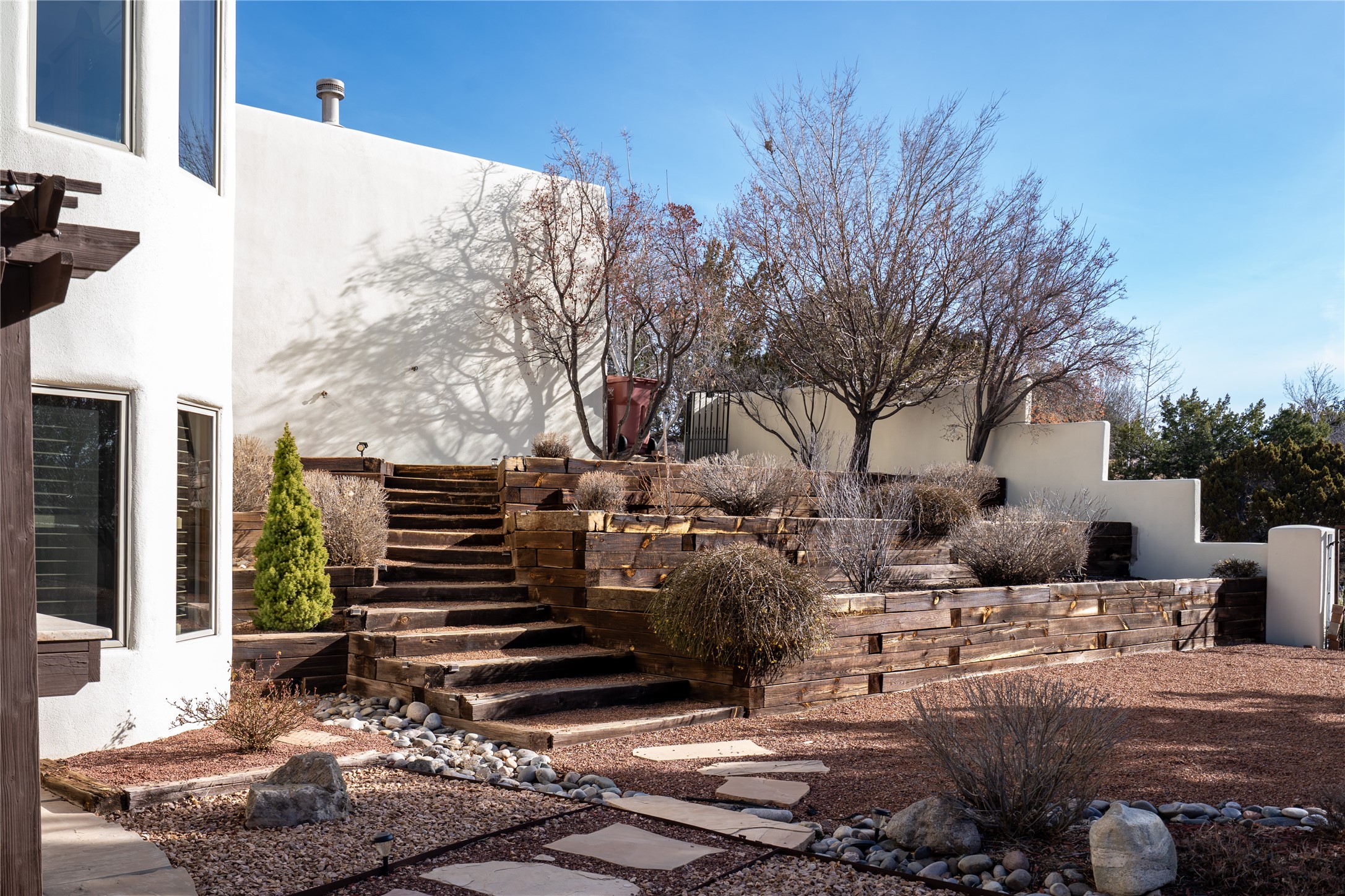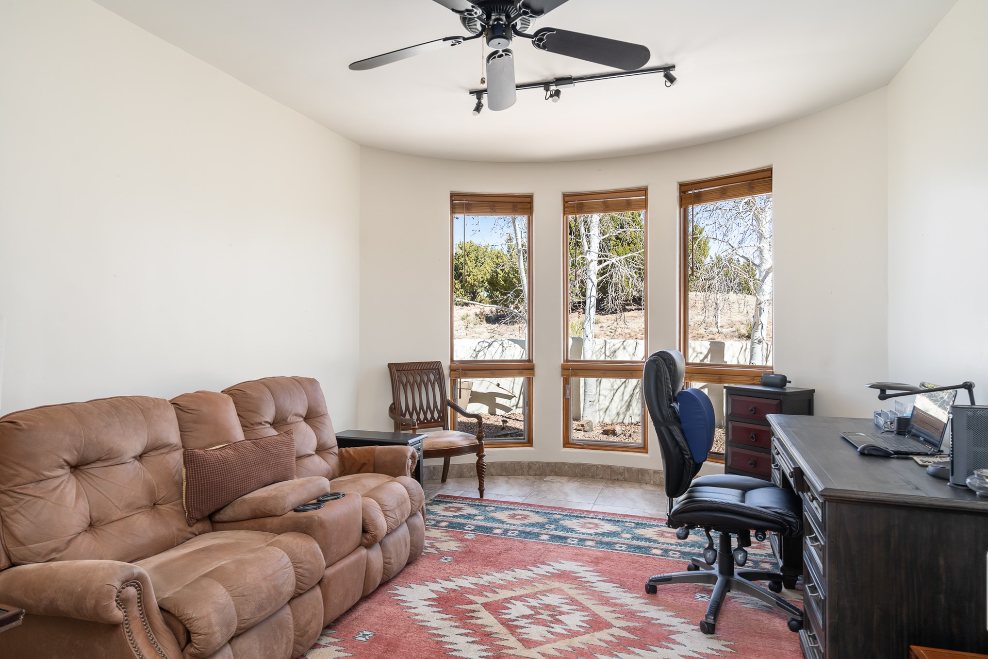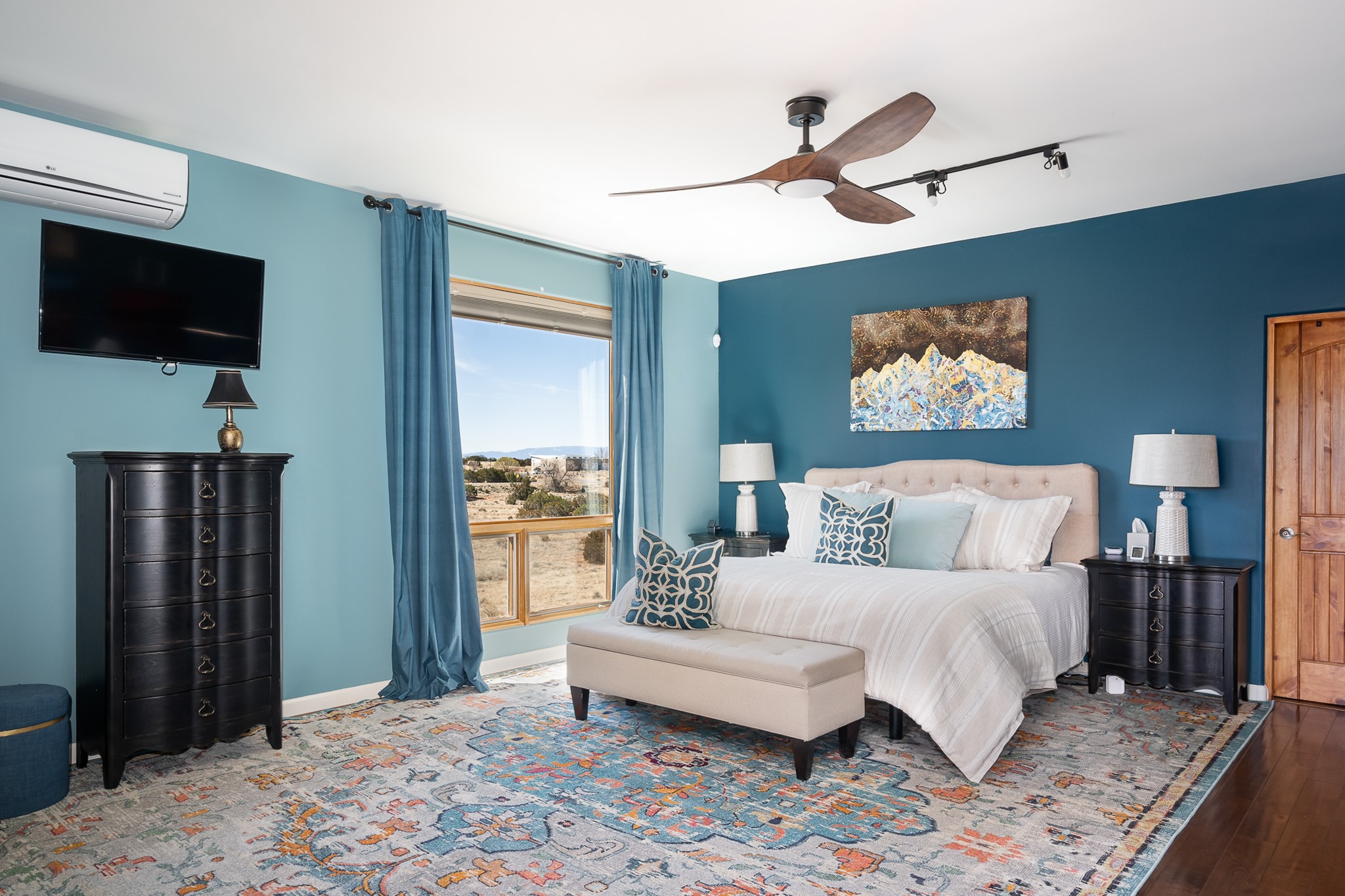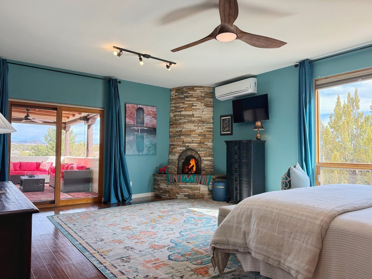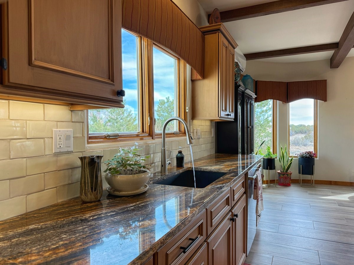 You'll love this custom Santa Fe home with a guest house that proves you can have both beauty and brains. Tucked away on a quiet cul-de-sac in the exclusive Village Estates of Rancho Viejo, this thoughtfully designed home blends smart living with timeless Santa Fe charm. Let's start with the brains: 23 owned solar panels creating electric bills under $10 a month. There's a whole-house water filtration/softener system, a hot water recirculating pump on an Alexa plug, a remotely operated irrigation system, and more. As for the beauty: an inviting new kitchen designed for gathering and gourmet cooking takes center stage in the one-level main house. You'll enjoy generous living and dining areas, a private primary suite with a kiva fireplace, dual custom closets, and a remodeled en suite bath with spa-like finishes. Two guest bedrooms share a full bath, and there's a bright office plus a powder room with a shower--perfect for overnight guests. The living room has a gas fireplace, and there's also a convenient utility room with extensive storage.Step outside to a welcoming patio accessible from the living room or primary suite. Downstairs, a stylish guest house has its own entrance, living space, bedroom, modern kitchen, full bath, and a walk-out covered patio with an outdoor kitchen--perfect for long-term guests or multi-generational living.Enjoy unobstructed views of the Ortiz and Sandia Mountains, or wake up to the sunrise over the Sangre de Cristos. Whether it's morning coffee or sunset cocktails, the patios are the perfect place to soak it all in. Situated on 1.25 acres and backing up to a dedicated greenbelt, the property offers privacy and space. And yes, there's an oversized 3-car garage.When you're ready to explore, Rancho Viejo offers over 12 miles of scenic walking and biking trails--perfect for a morning stroll, evening ride, or spontaneous dog walk. The neighborhood is designed to keep you connected--to nature and to community.