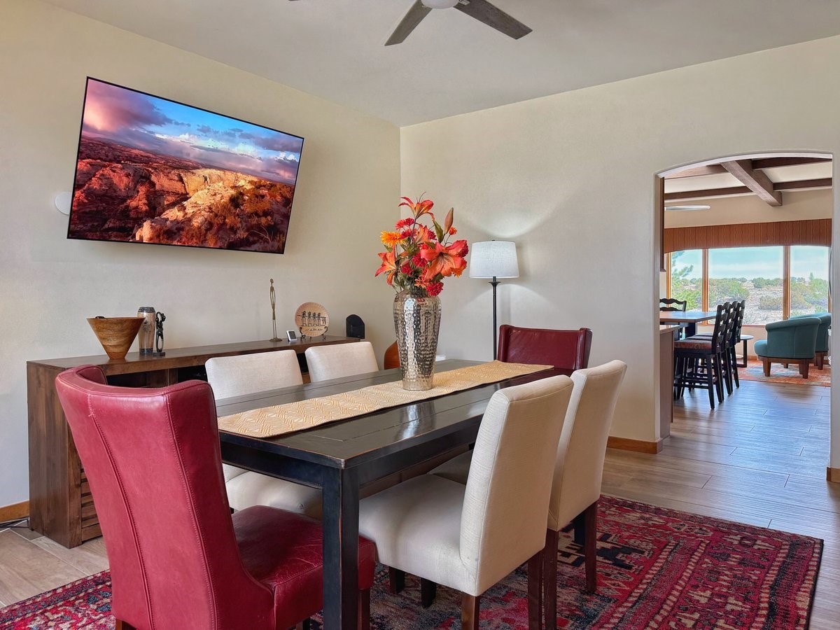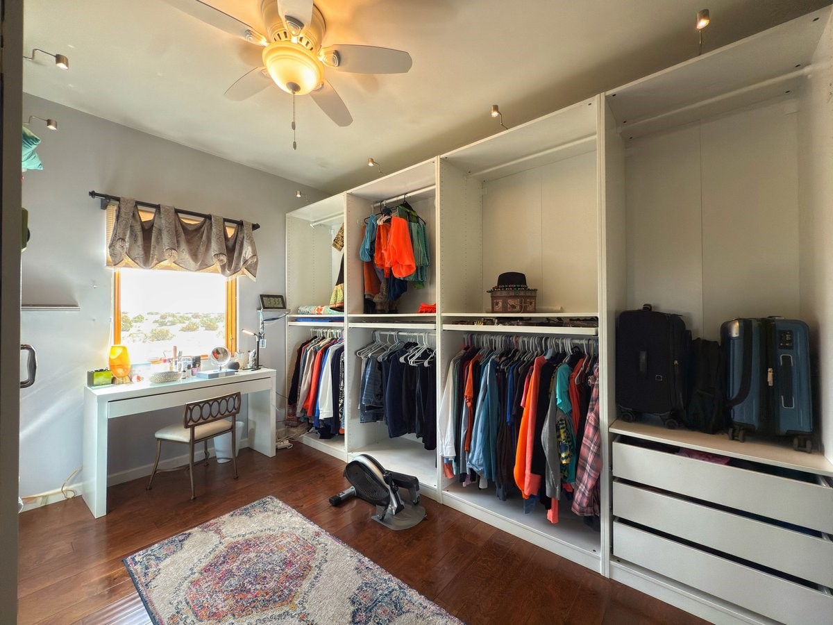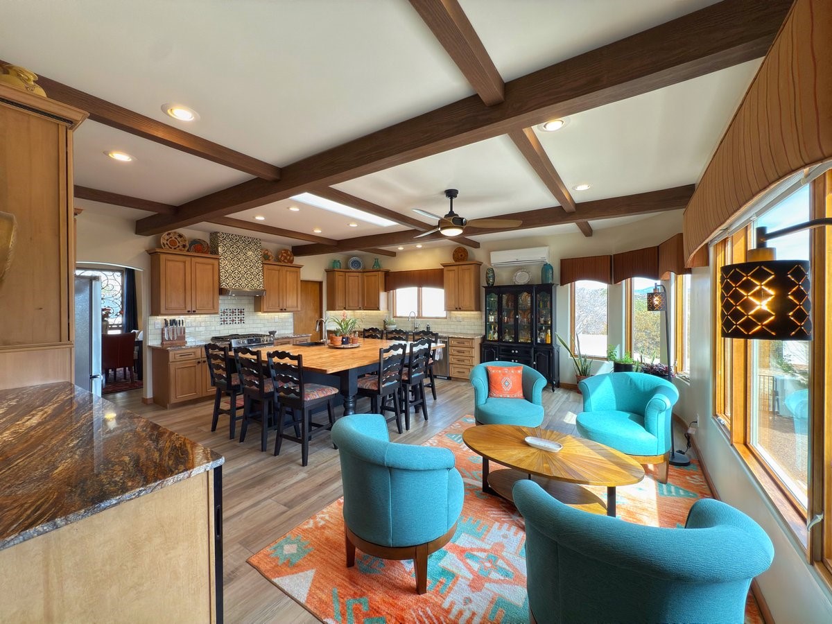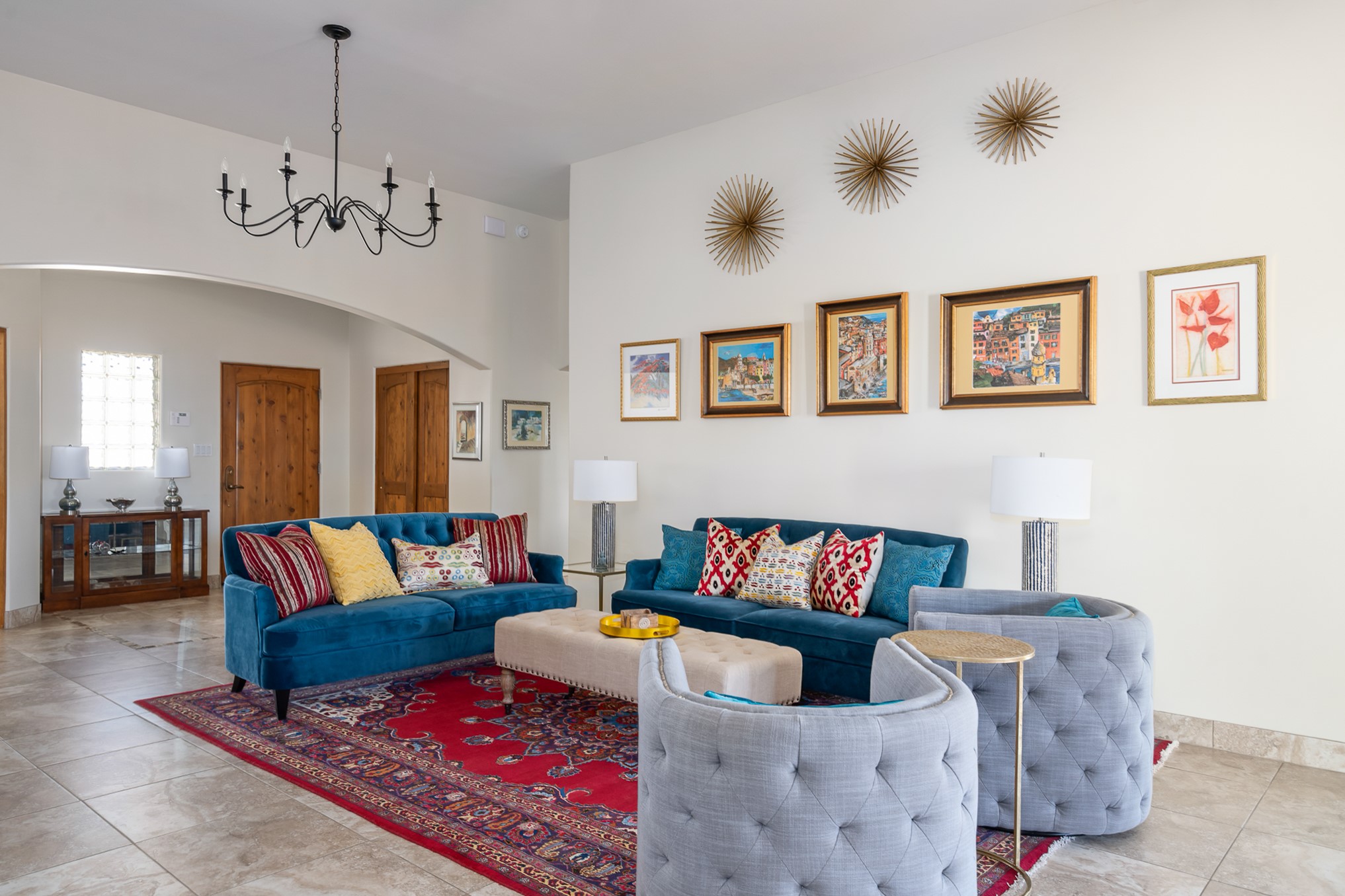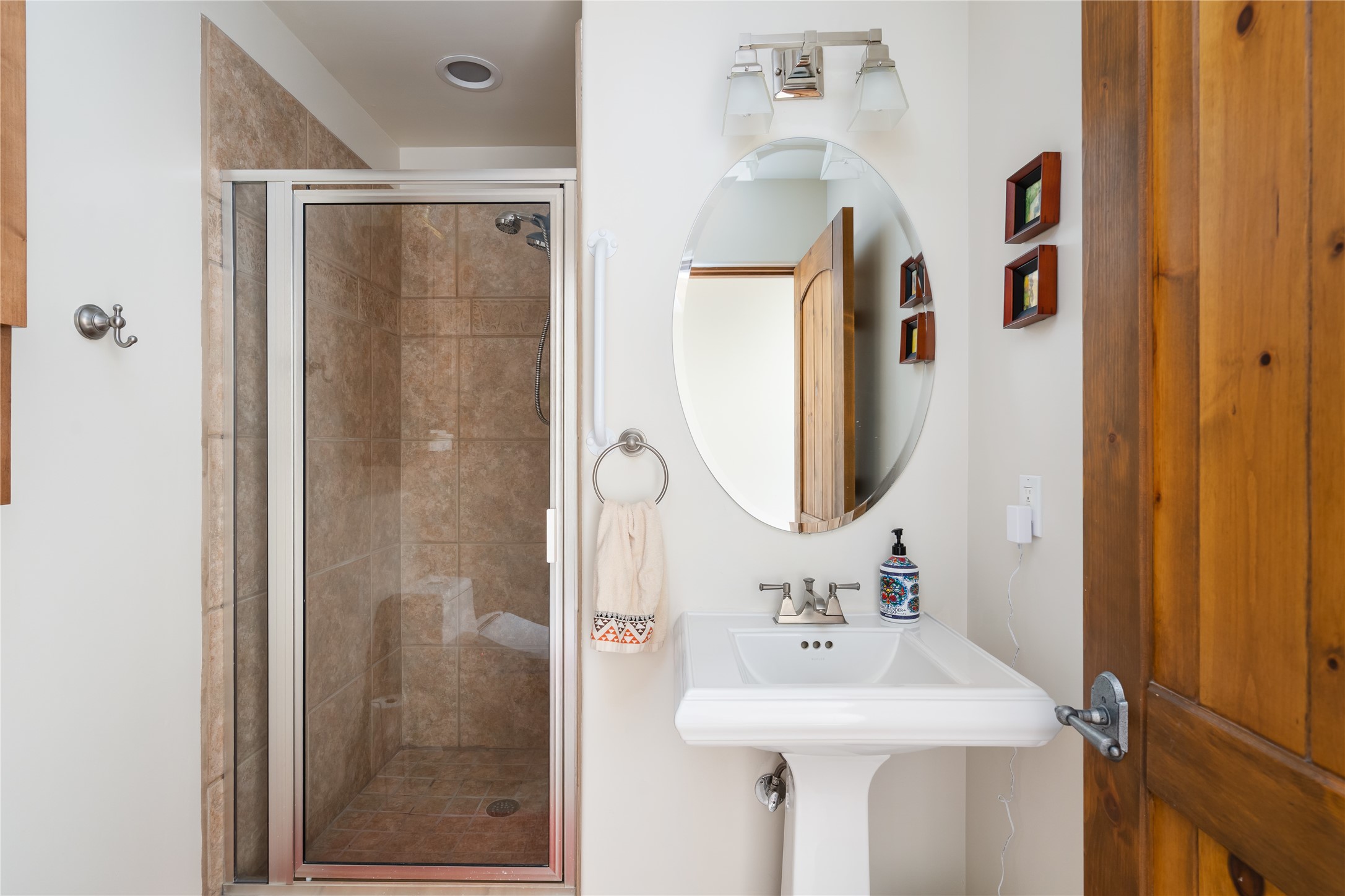 You'll love this custom Santa Fe home with a guest house that proves you can have both beauty and brains. Tucked away on a quiet cul-de-sac in the exclusive Village Estates of Rancho Viejo, this thoughtfully designed home blends smart living with timeless Santa Fe charm. Let's start with the brains: 23 owned solar panels creating electric bills under $10 a month. There's a whole-house water filtration/softener system, a hot water recirculating pump on an Alexa plug, a remotely operated irrigation system, and more. As for the beauty: an inviting new kitchen designed for gathering and gourmet cooking takes center stage in the one-level main house. You'll enjoy generous living and dining areas, a private primary suite with a kiva fireplace, dual custom closets, and a remodeled en suite bath with spa-like finishes. Two guest bedrooms share a full bath, and there's a bright office plus a powder room with a shower--perfect for overnight guests. The living room has a gas fireplace, and there's also a convenient utility room with extensive storage.Step outside to a welcoming patio accessible from the living room or primary suite. Downstairs, a stylish guest house has its own entrance, living space, bedroom, modern kitchen, full bath, and a walk-out covered patio with an outdoor kitchen--perfect for long-term guests or multi-generational living.Enjoy unobstructed views of the Ortiz and Sandia Mountains, or wake up to the sunrise over the Sangre de Cristos. Whether it's morning coffee or sunset cocktails, the patios are the perfect place to soak it all in. Situated on 1.25 acres and backing up to a dedicated greenbelt, the property offers privacy and space. And yes, there's an oversized 3-car garage.When you're ready to explore, Rancho Viejo offers over 12 miles of scenic walking and biking trails--perfect for a morning stroll, evening ride, or spontaneous dog walk. The neighborhood is designed to keep you connected--to nature and to community.