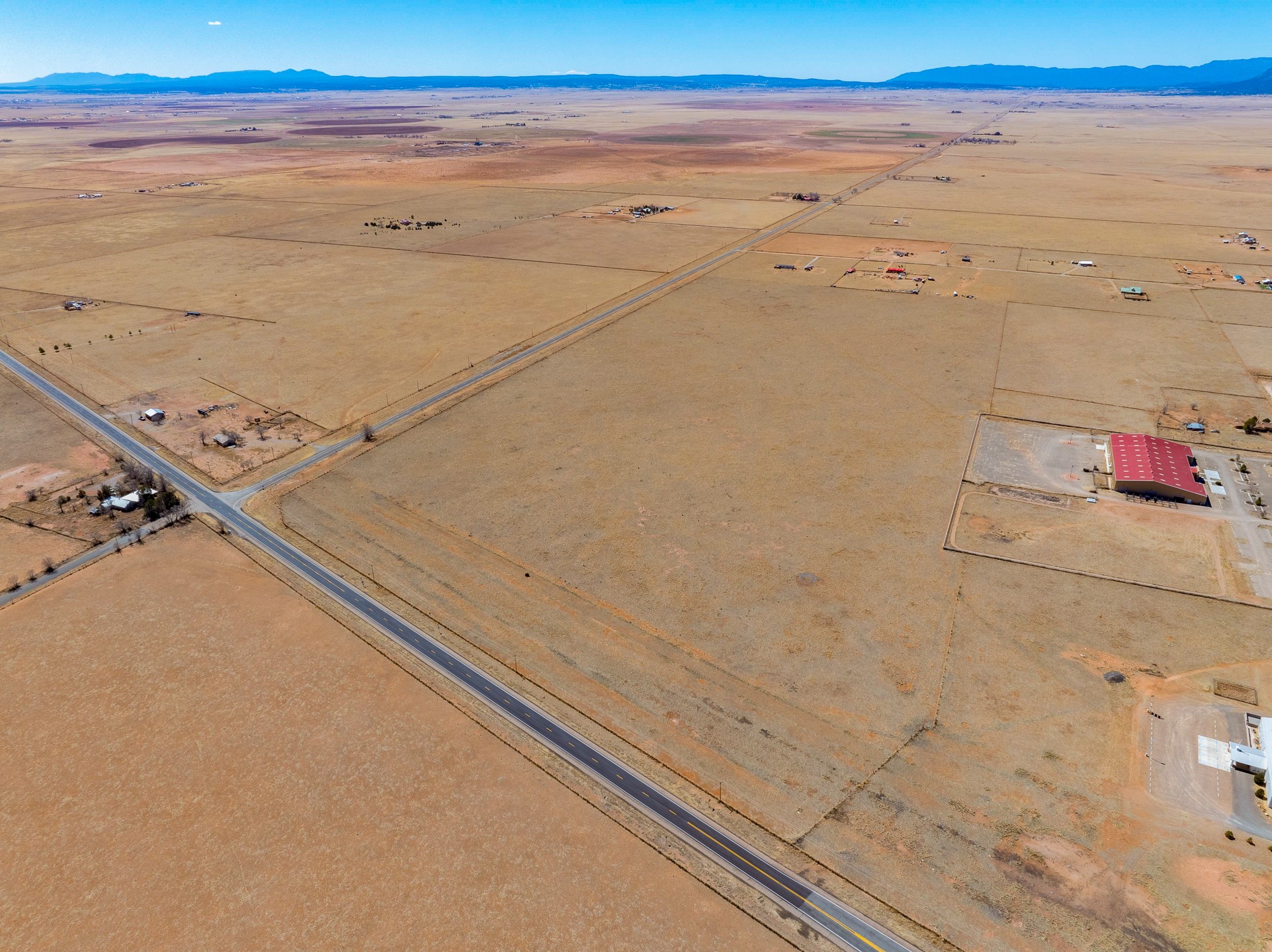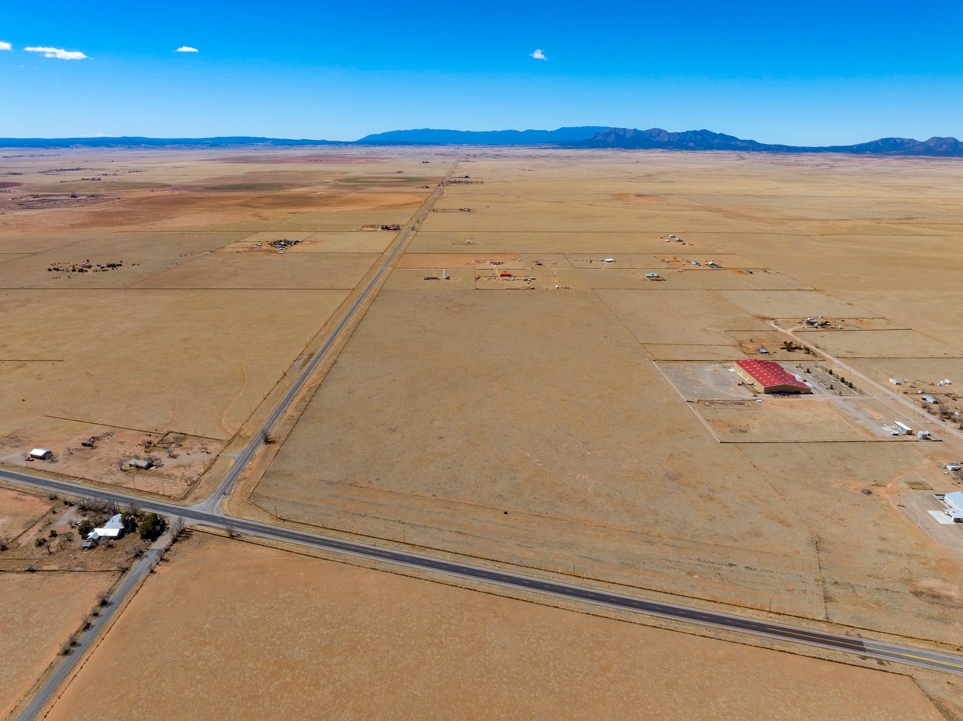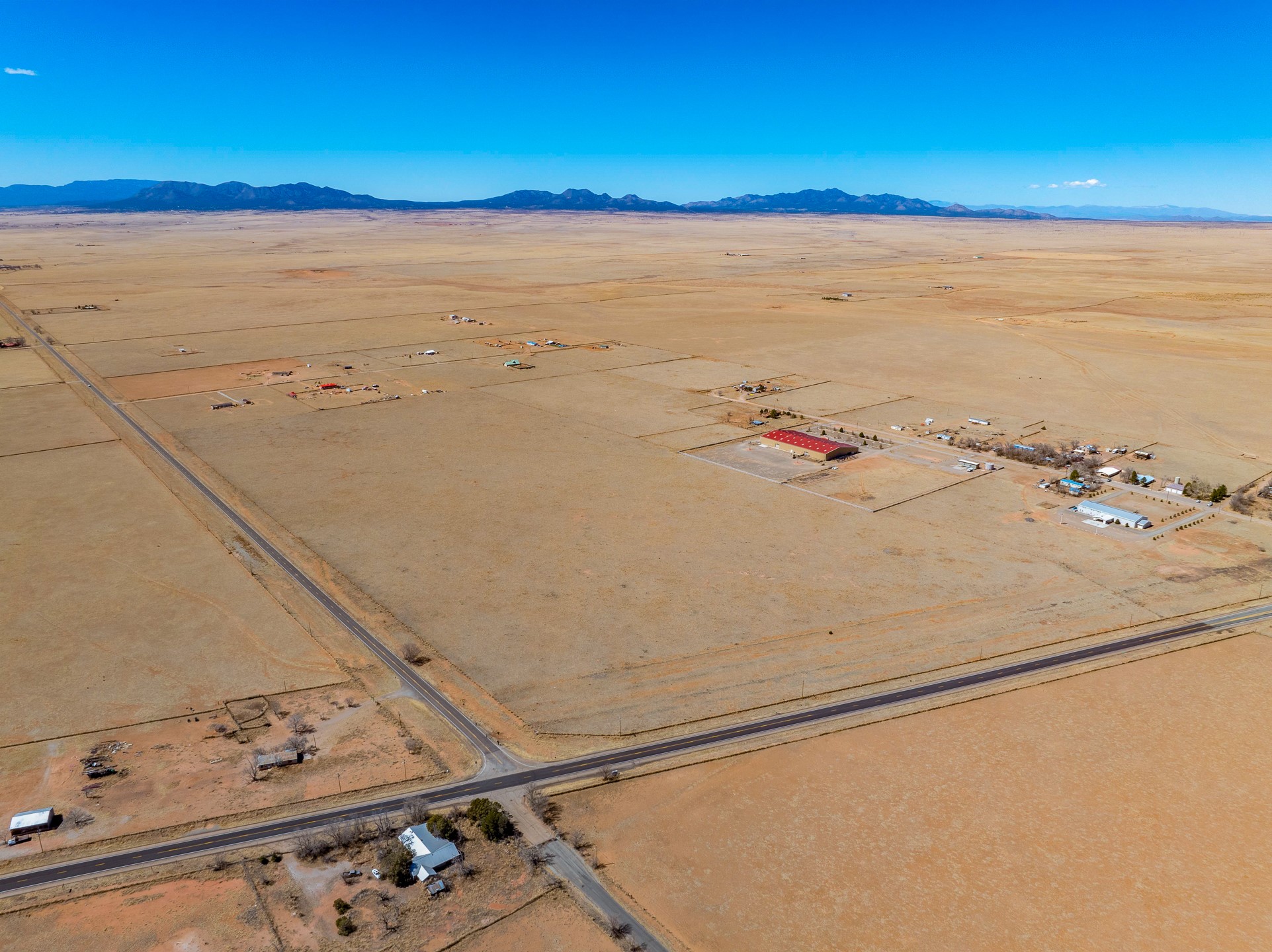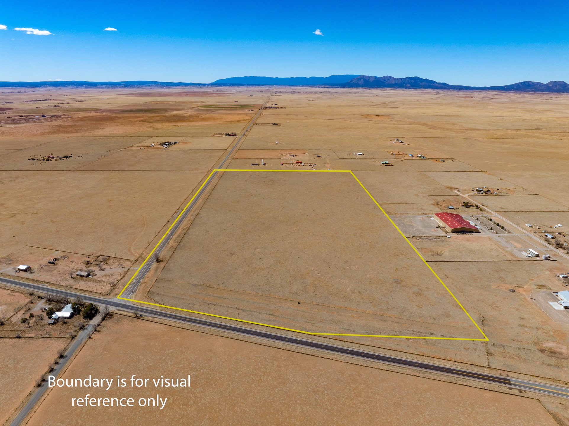 Two contiguous parcels, located in the center of Stanley, NM, totaling 77.67 acres. The westernmost parcel, situated at the corner of NM-472 and NM-41, spans 37.67 acres, while the adjoining eastern parcel covers 40 acres. Each parcel features two private wells. The property is zoned RES-E (Residential Estate) with an O-RC (Rural Commercial Overlay District), offering flexibility for residential and limited commercial use. Potential uses include single-family homes and townhomes on medium-sized lots, consistent with contemporary community development. Agricultural uses may include crop production, grazing, and ranching. Additional permitted uses include daycare centers, group homes, medical clinics, and retirement housing. All projects will require zoning verification.