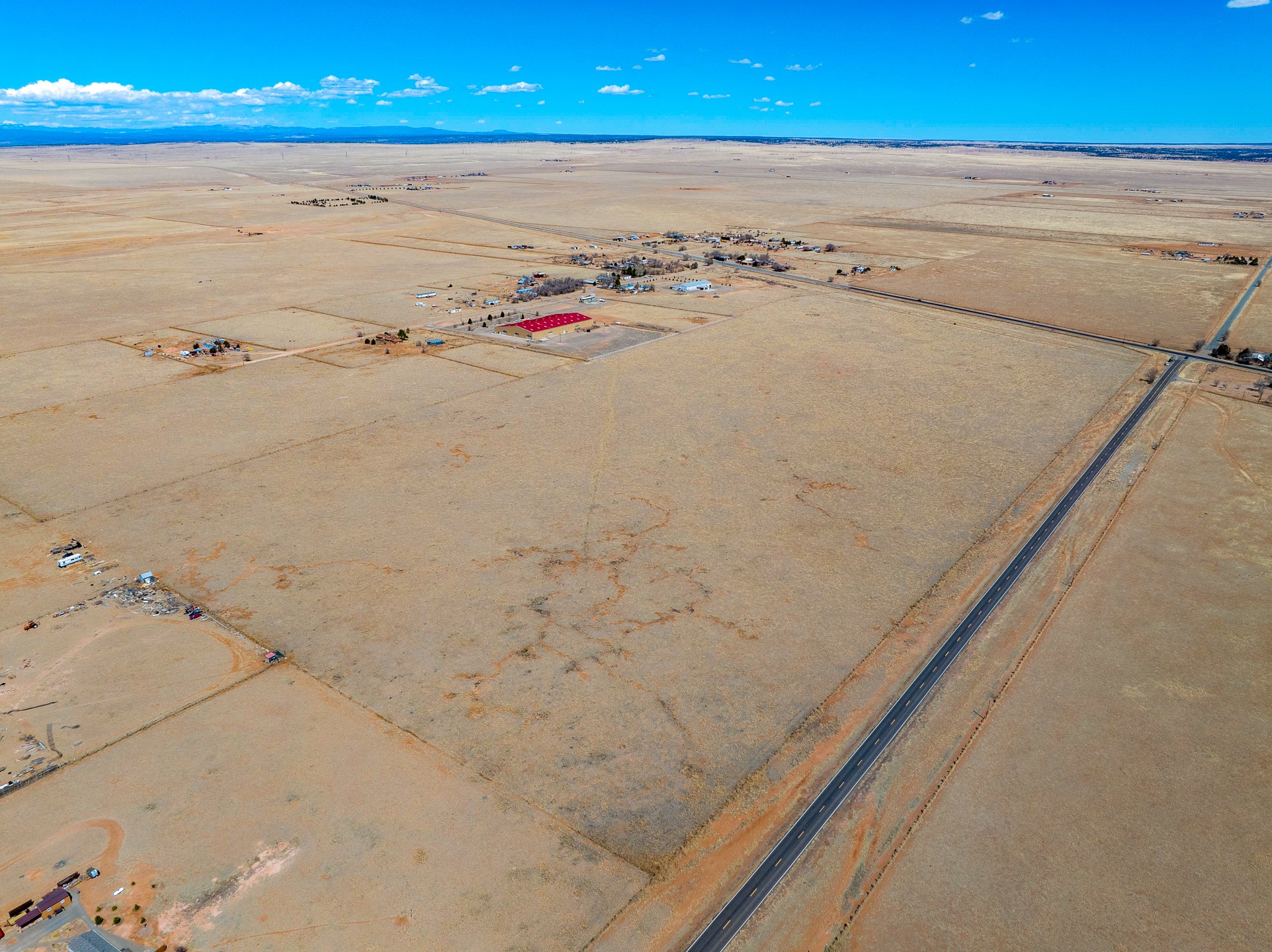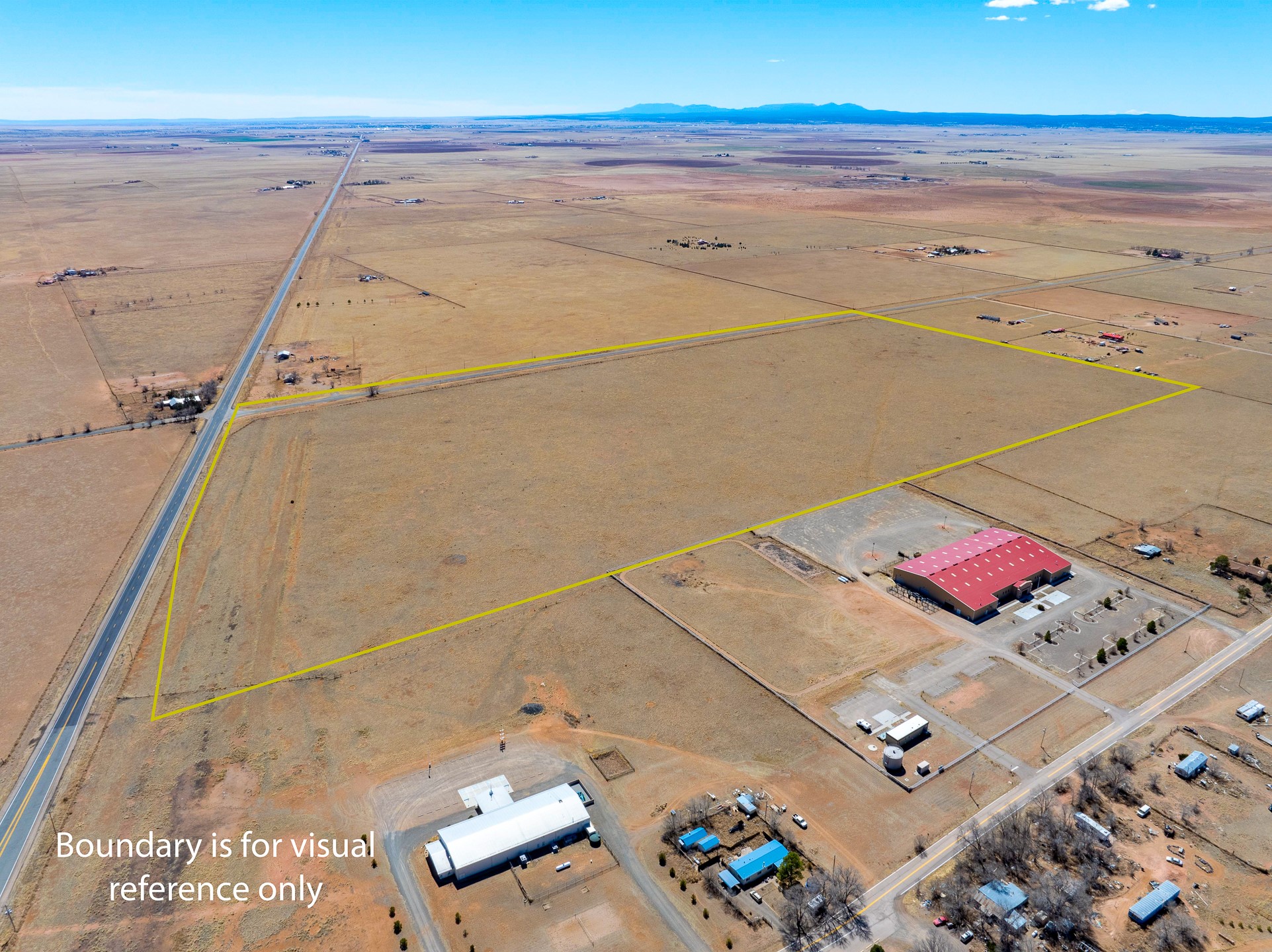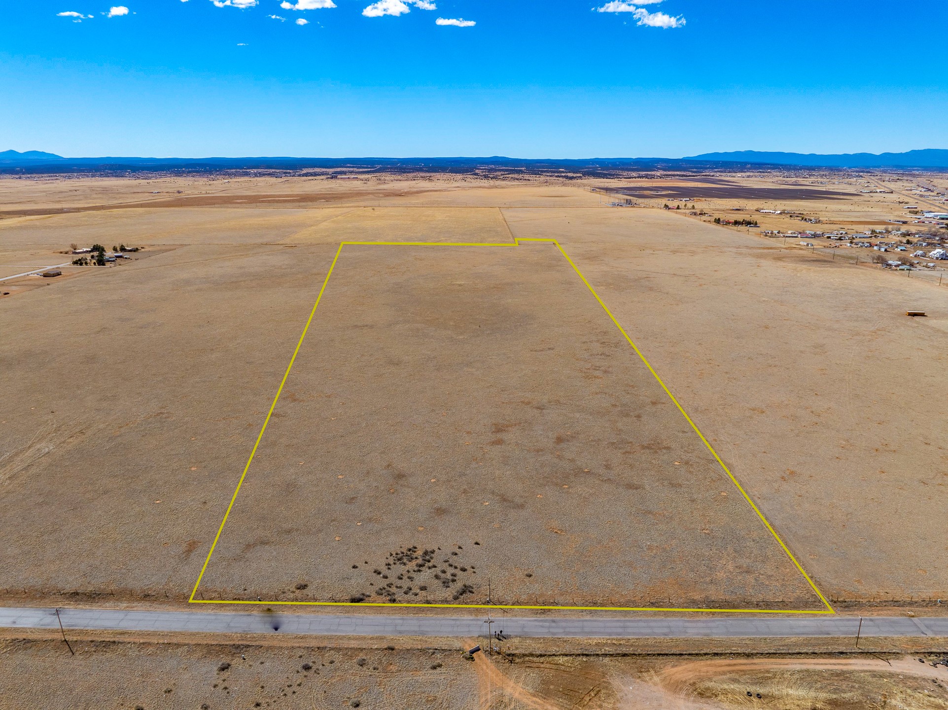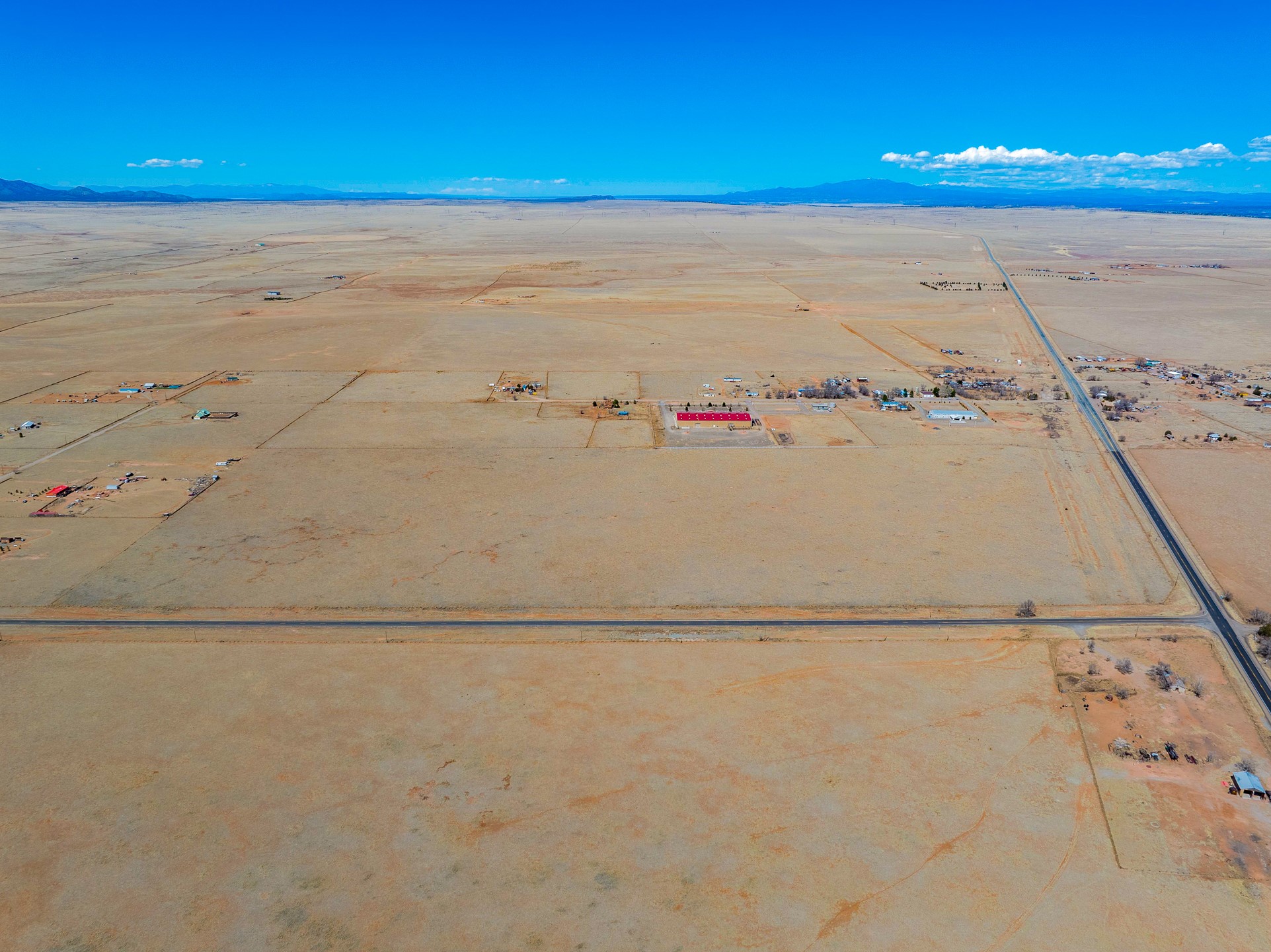 Two contiguous parcels, located in the center of Stanley, NM, totaling 77.67 acres. The westernmost parcel, situated at the corner of NM-472 and NM-41, spans 37.67 acres, while the adjoining eastern parcel covers 40 acres. Each parcel features two private wells. The property is zoned RES-E (Residential Estate) with an O-RC (Rural Commercial Overlay District), offering flexibility for residential and limited commercial use. Potential uses include single-family homes and townhomes on medium-sized lots, consistent with contemporary community development. Agricultural uses may include crop production, grazing, and ranching. Additional permitted uses include daycare centers, group homes, medical clinics, and retirement housing. All projects will require zoning verification.