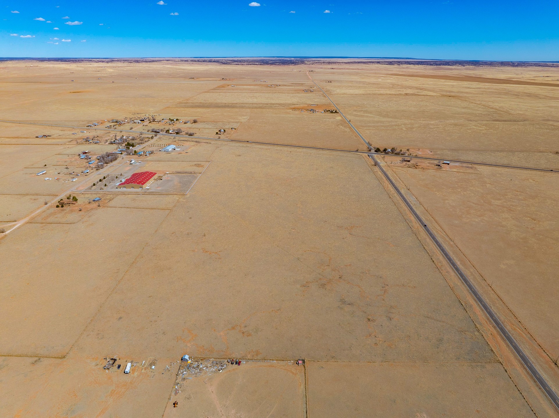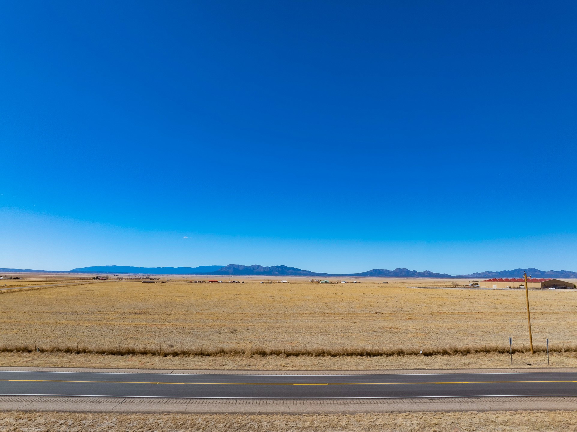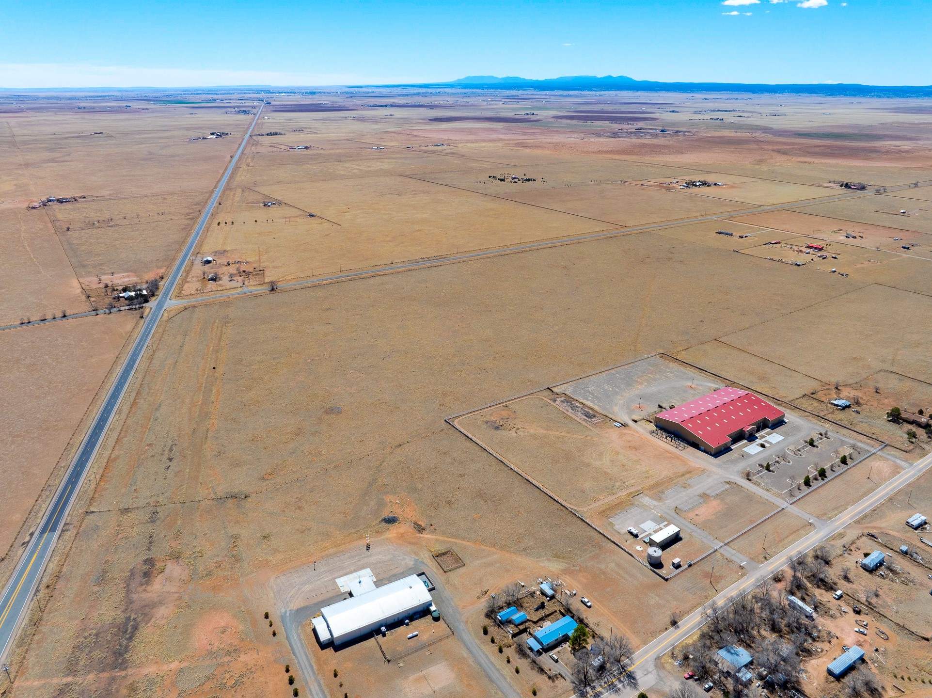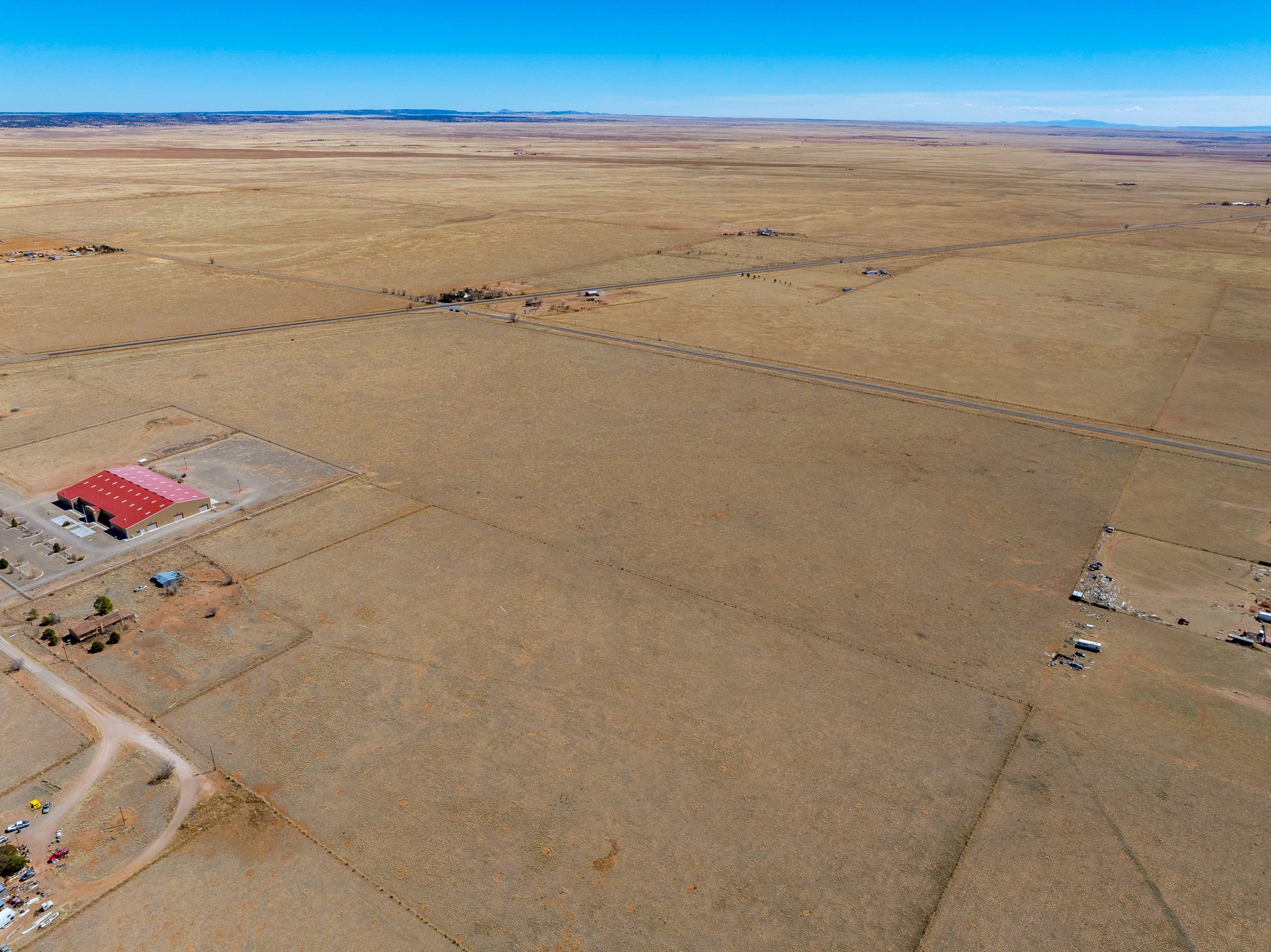 Two contiguous parcels, located in the center of Stanley, NM, totaling 77.67 acres. The westernmost parcel, situated at the corner of NM-472 and NM-41, spans 37.67 acres, while the adjoining eastern parcel covers 40 acres. Each parcel features two private wells. The property is zoned RES-E (Residential Estate) with an O-RC (Rural Commercial Overlay District), offering flexibility for residential and limited commercial use. Potential uses include single-family homes and townhomes on medium-sized lots, consistent with contemporary community development. Agricultural uses may include crop production, grazing, and ranching. Additional permitted uses include daycare centers, group homes, medical clinics, and retirement housing. All projects will require zoning verification.