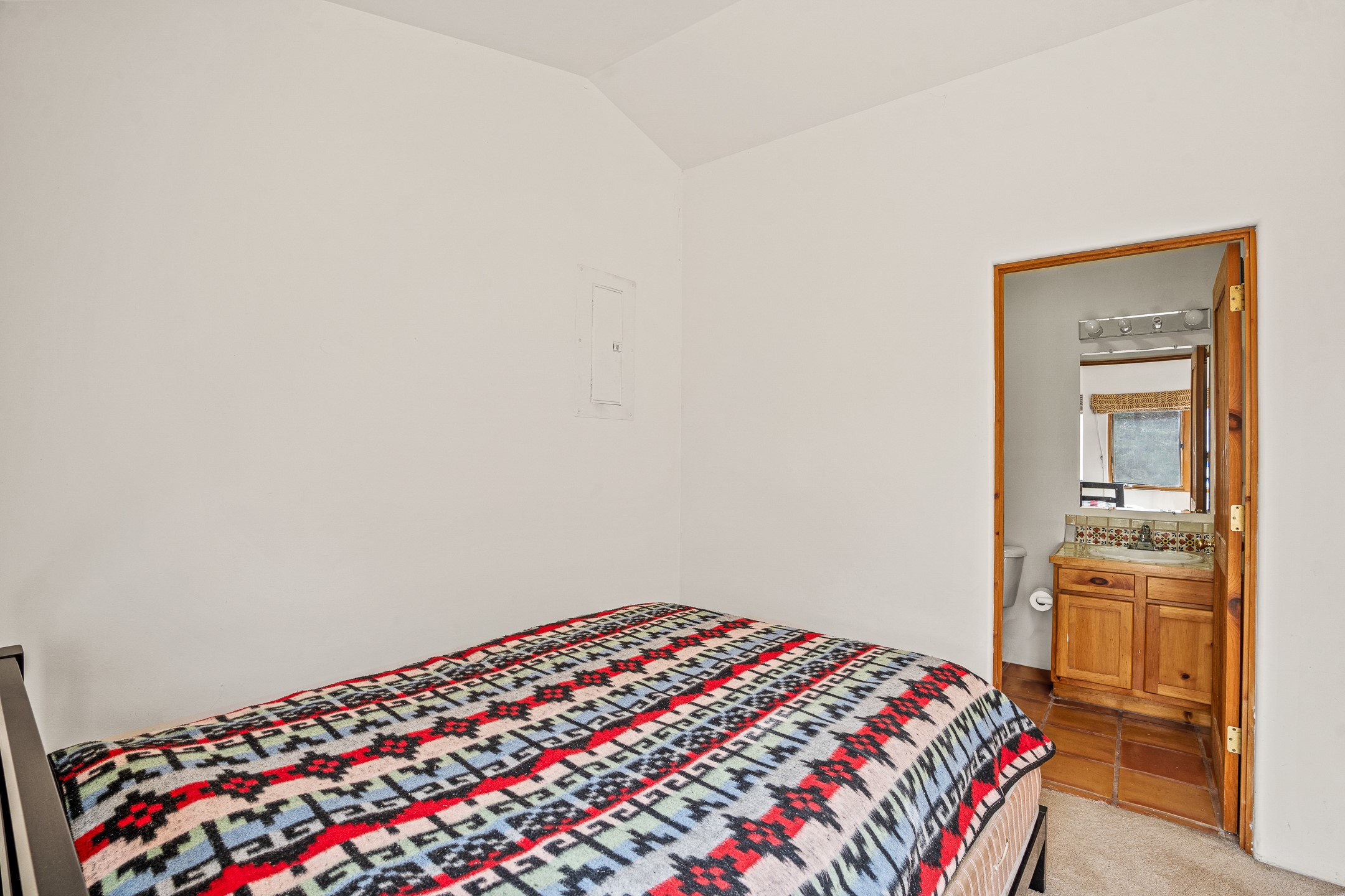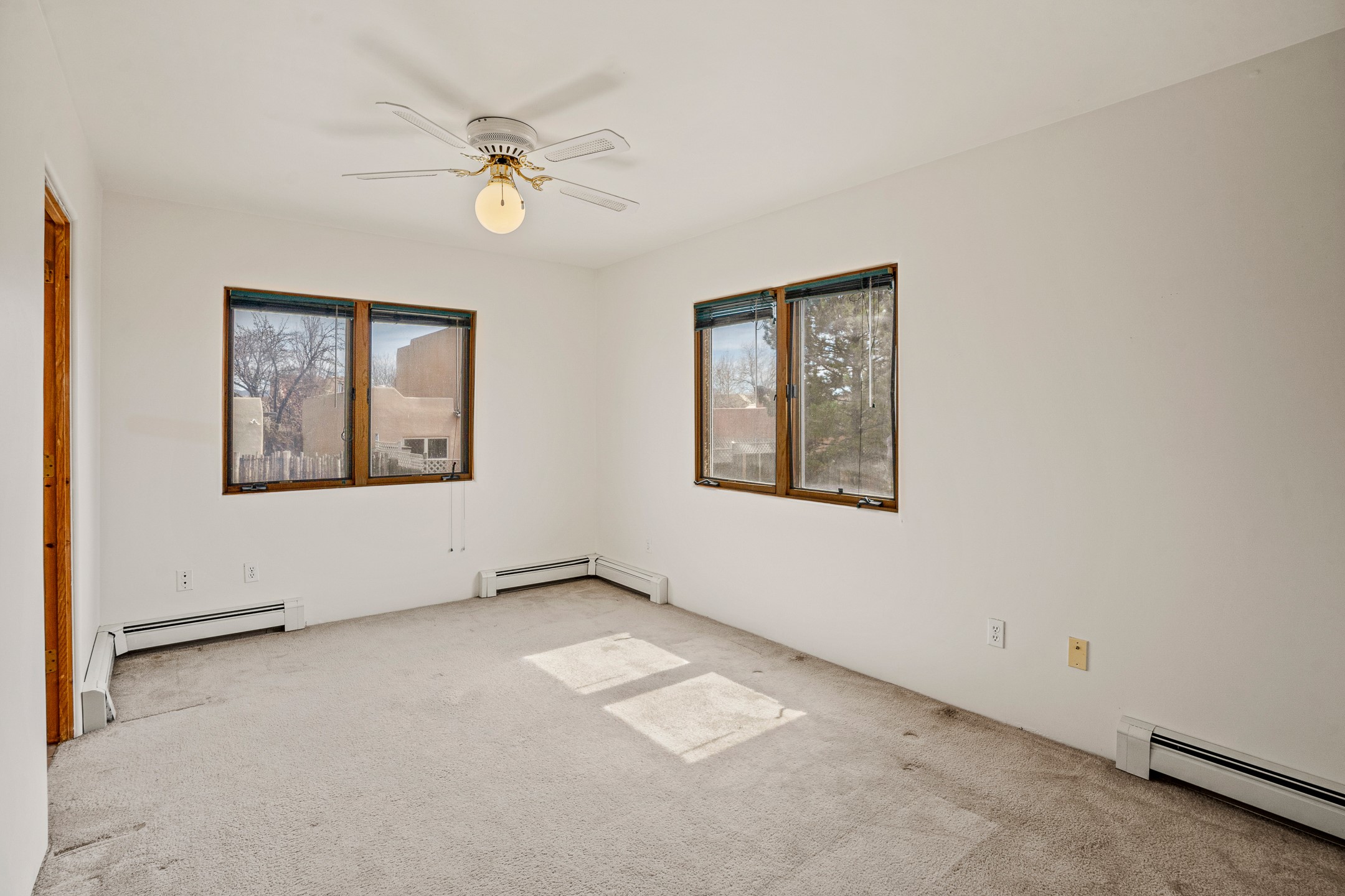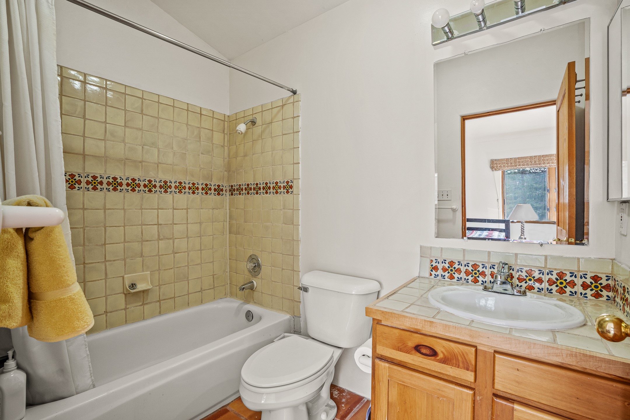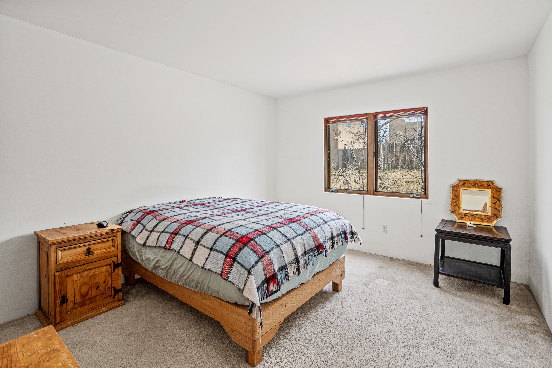 Discover the perfect blend of country charm and city convenience with this delightful four-bedroom, three-bathroom home, nestled in a serene Southside cul-de-sac. The main living area boasts rustic vigas and soaring high ceilings, creating a warm and inviting atmosphere. The spacious kitchen is bathed in natural light, making it a joy to cook and entertain. Two of the four bedrooms come with their own private bathrooms, offering comfort and privacy.The versatile downstairs bedroom suite can function as a separate apartment, complete with its own entrance and private fenced yard, ideal for guests or rental income. The home opens to a tranquil, fenced yard with low-maintenance landscaping, perfect for relaxing or entertaining.Situated next to a private greenbelt with scenic walking paths, this home is just two houses away from the community clubhouse, which is perfect for hosting events. Having been lovingly maintained by the same owner for 25 years, this home is filled with natural light and offers a peaceful retreat within the city. With low HOA fees of just $35 per month, this charming home is a rare find. Don't miss the opportunity to make it yours!