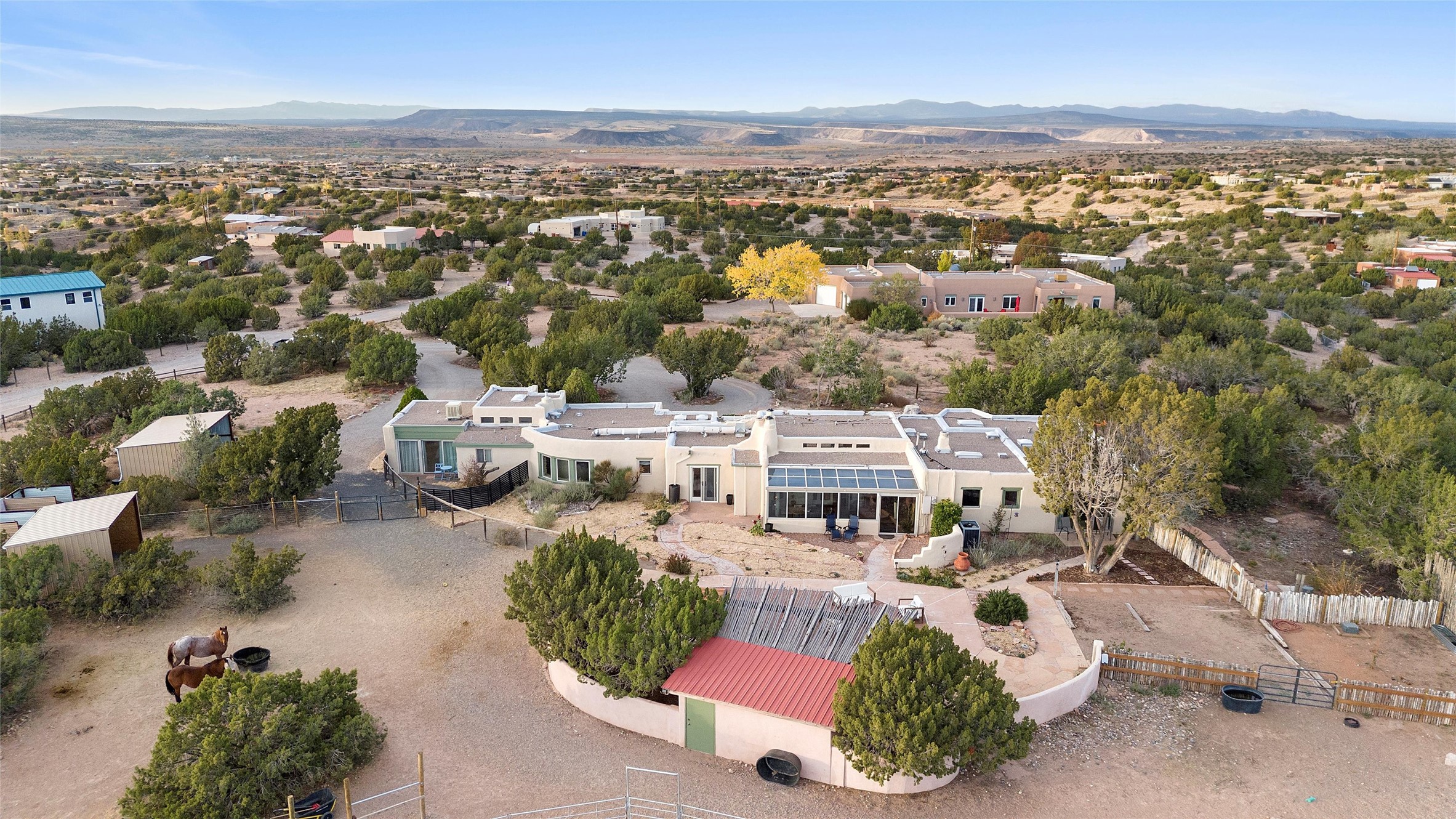 Nestled in the picturesque landscape of Placitas, New Mexico, 20 Ridge Rd offers a unique blend of Southwestern style and contemporary comfort. This 4, possible 5, bedroom, 3-bathroom custom built adobe home spans 3,452 square feet and is situated on a sprawling 2.5-acre lot, with no HOA, providing ample space and privacy. Key Features:Income-Generating or Multi-Gen Potential: The home boasts a successful Airbnb setup, generating over $17,000 in gross income last year, and numerous positive ratings, offering a lucrative opportunity for supplemental income.Equestrian Facilities: Equipped with a horse paddock and loafing sheds, this property is a haven for horse enthusiasts. Authentic Southwestern Design: The adobe architecture reflects the rich cultural heritage of the region, offering a warm and inviting atmosphere. Indoor and Outdoor Living Spaces: Multiple indoor and outdoor areas cater to both relaxation and entertainment, allowing residents to fully embrace the serene surroundings.Breathtaking Views: Expansive windows throughout the home frame stunning views of the Sandia Mountain range and the Sangre de Cristos, creating a seamless connection between indoor comfort and outdoor beauty.Location, Location...Located in the tranquil community of Placitas, only 15 minutes from Albuquerque, and 30 from Santa Fe, this property provides a peaceful retreat while still being within reach of local amenities and attractions.Whether you're seeking a private residence, an equestrian estate, or an investment opportunity, 20 Ridge Rd combines versatility with timeless Southwestern allure.