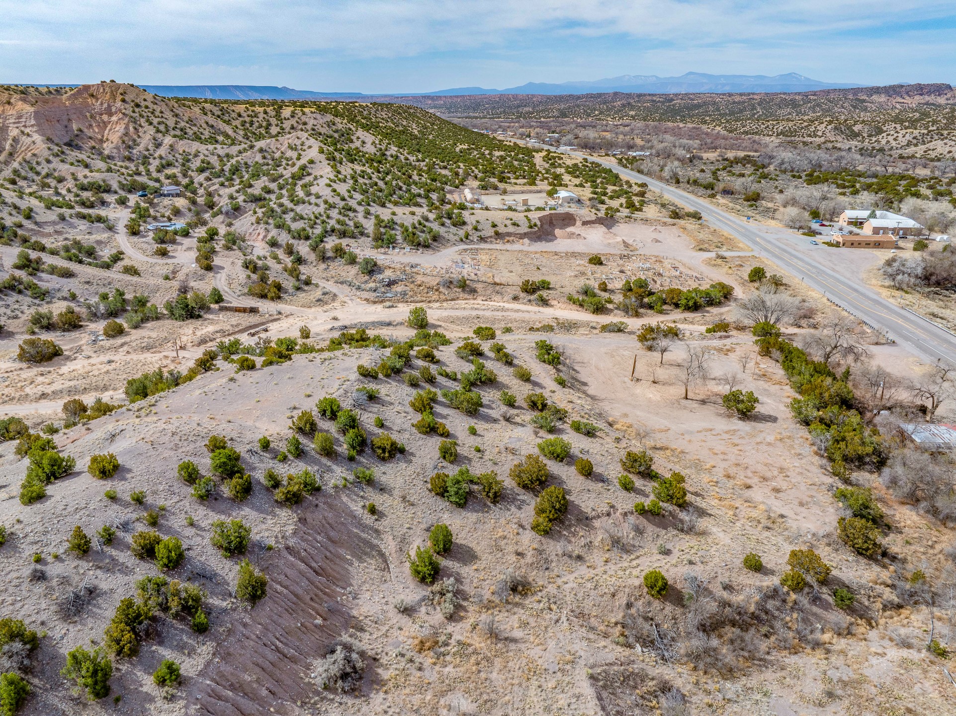 Seize the opportunity to own 3.15 acres of vacant land perched atop a hill in the charming Ojo Caliente area. This property offers breathtaking, panoramic views of the surrounding mountains, providing a tranquil and picturesque setting for your future project. The land features easy access to essential utilities, with both electricity and community water available, making it an ideal spot for development or personal use.Located directly across the street from the renowned Ojo Caliente Spa & Resort, you'll enjoy the perfect combination of peaceful, elevated living with easy access to one of New Mexico's most celebrated destinations. This property is Lot 2, adjacent to Lot 1, a commercial property, and Lot 3 - 9 acres of vacant land, also available for purchase.