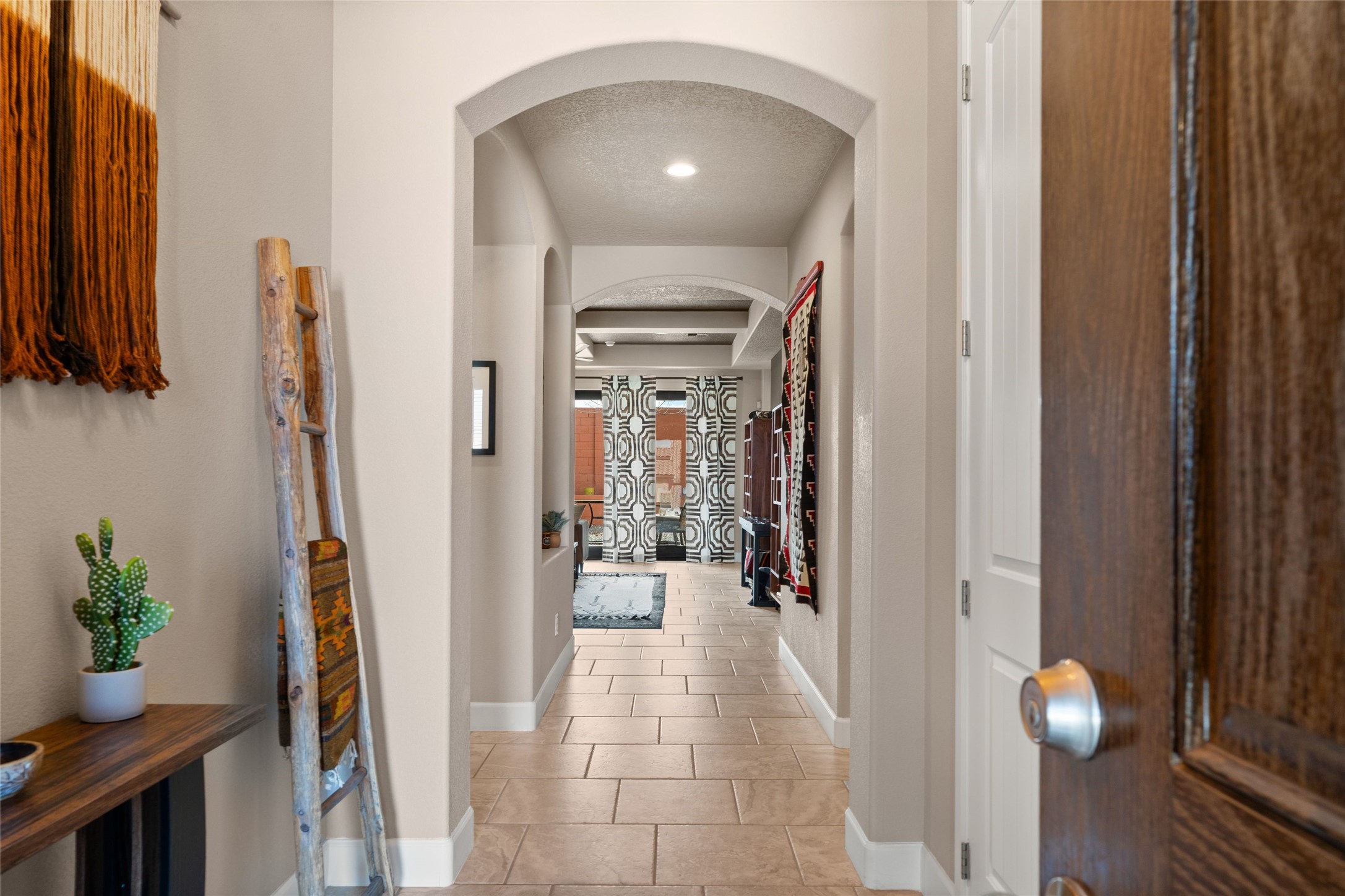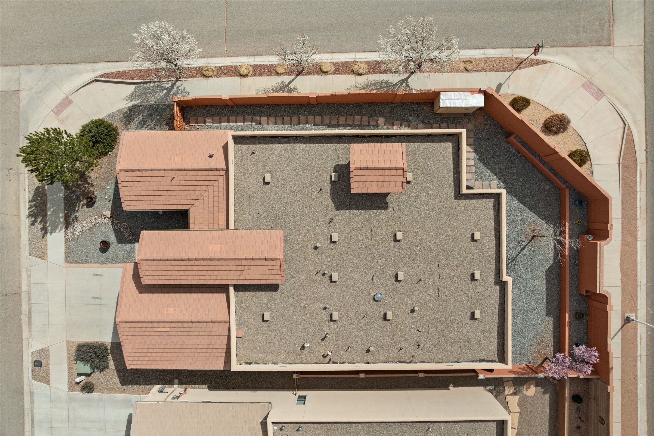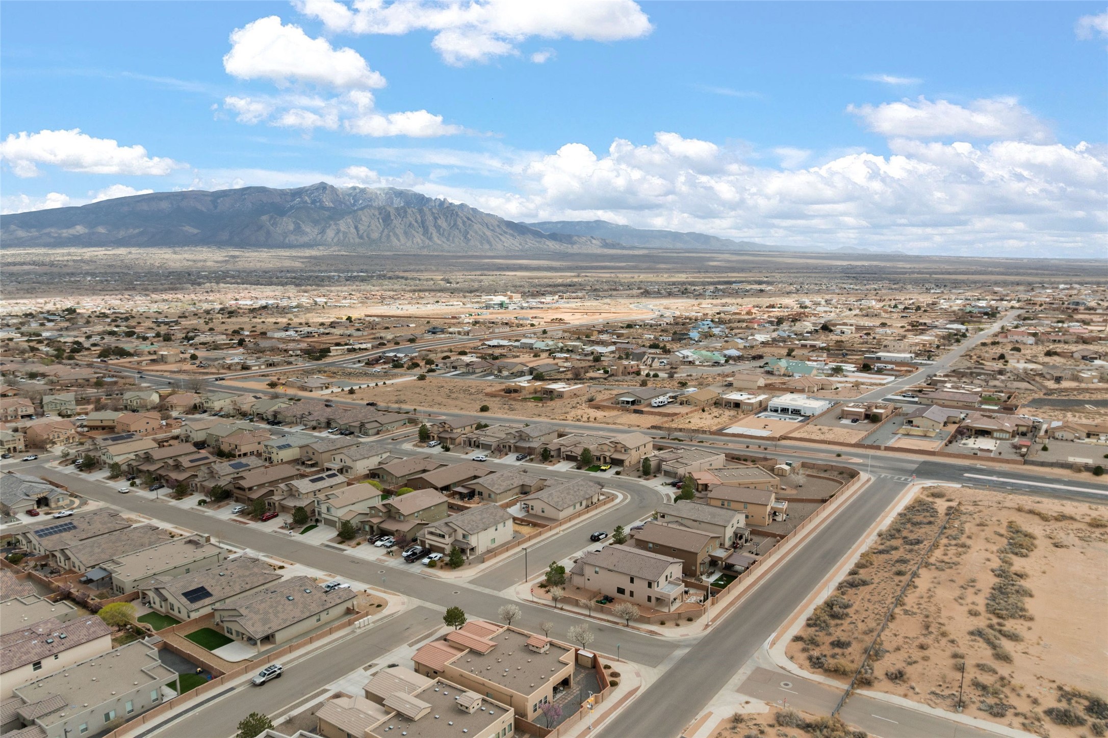CORNER-LOT IN HIGHLY DESIRABLE LOMAS ENCANTADAS - This stunning corner-lot property in the highly sought after Lomas Encantadas Community offers the perfect blend of both comfort and elegance with its chic architectural details throughout. Meticulously maintained by its owner, this 3-bedroom, 3-bathroom single-story residence with no interior steps also includes a flex room that can serve as a supplemental office or media room. Enjoy cooking in the beautifully appointed chef's kitchen, which features stainless steel appliances, granite counter tops, and a sizable pantry. The spacious living room is bathed in natural light and boasts a coffered, two-tone ceiling which seamlessly flows into the kitchen and dining areas and opens onto a covered patio. The large three-panel door leading to the rear patio provides plenty of natural light and the perfect vantage point for enjoying those spectacular evening sunsets! The large primary suite offers ample space for a supplemental sitting area, while also accommodating a king-size bed. Two additional bedrooms are also generously sized and share a Jack-and-Jill Full bathroom. The tandem garage provides extra room for a significant amount of storage and either a workshop or hobby space. With its spectacular views of the Sandia Mountains at the front of the property and sunset views available via the rear patio, the outdoor spaces are truly inviting! This lovely home is conveniently located just minutes from schools, shopping, restaurants, and a dog park. Don't miss out on this exciting opportunity to own this spectacular home in Lomas Encantadas - schedule your showing today!