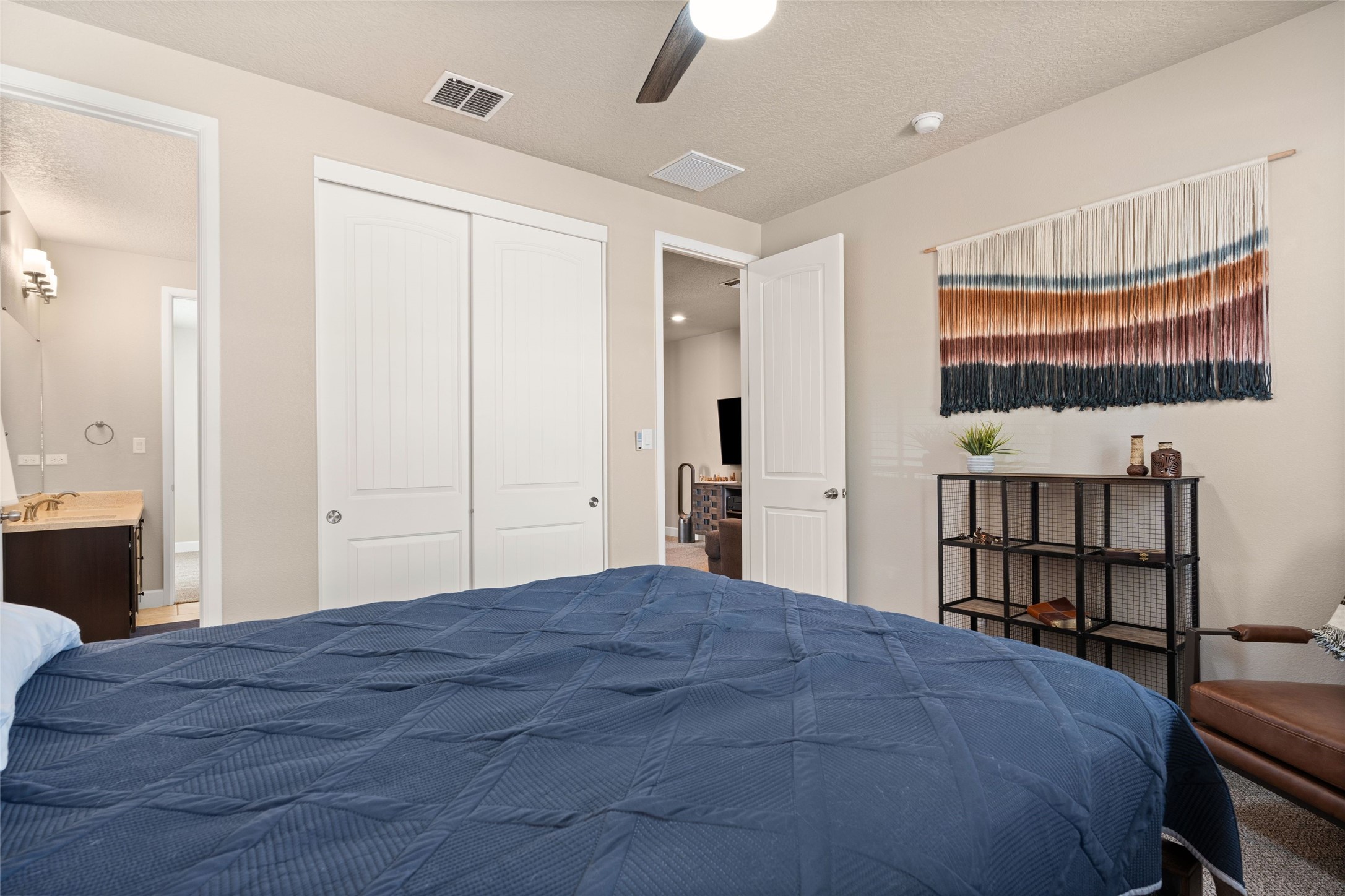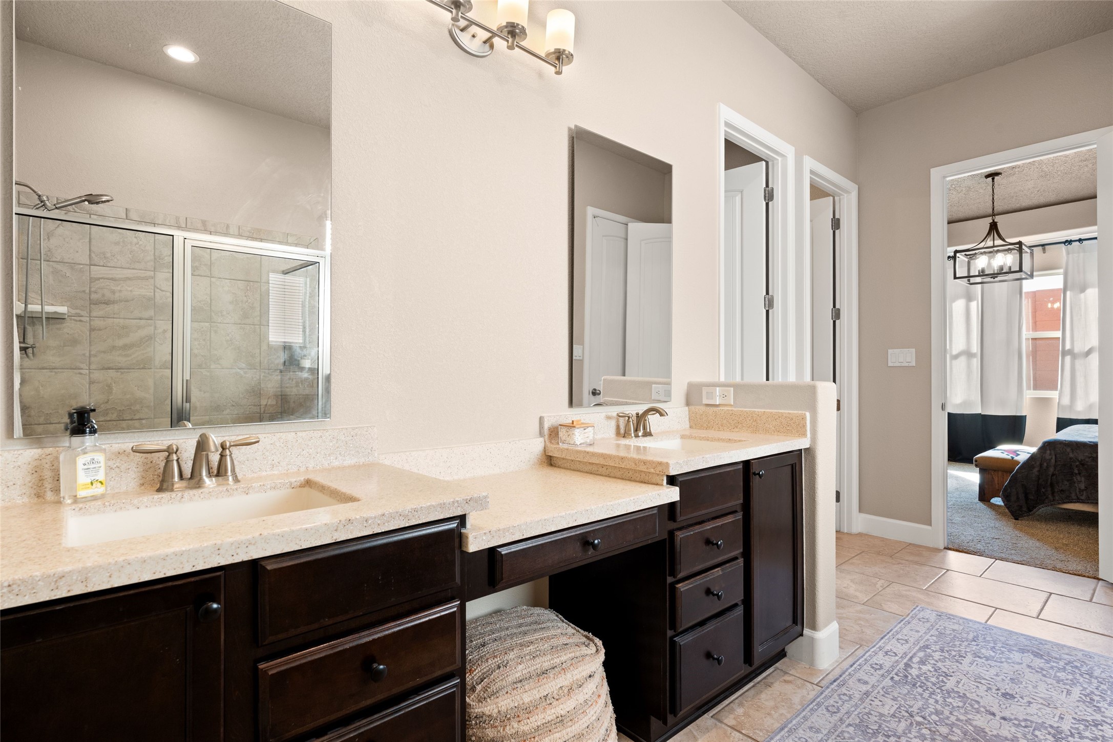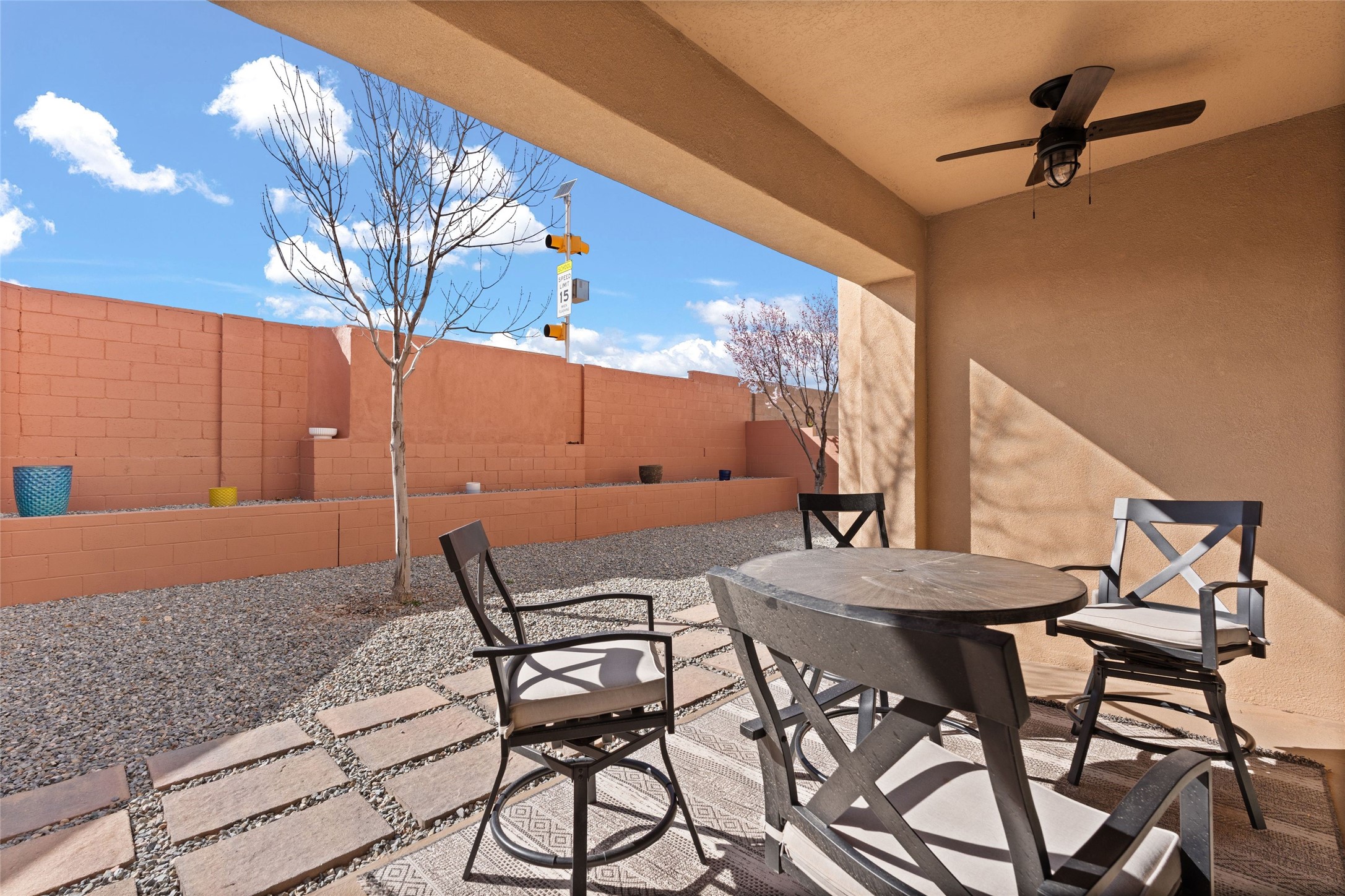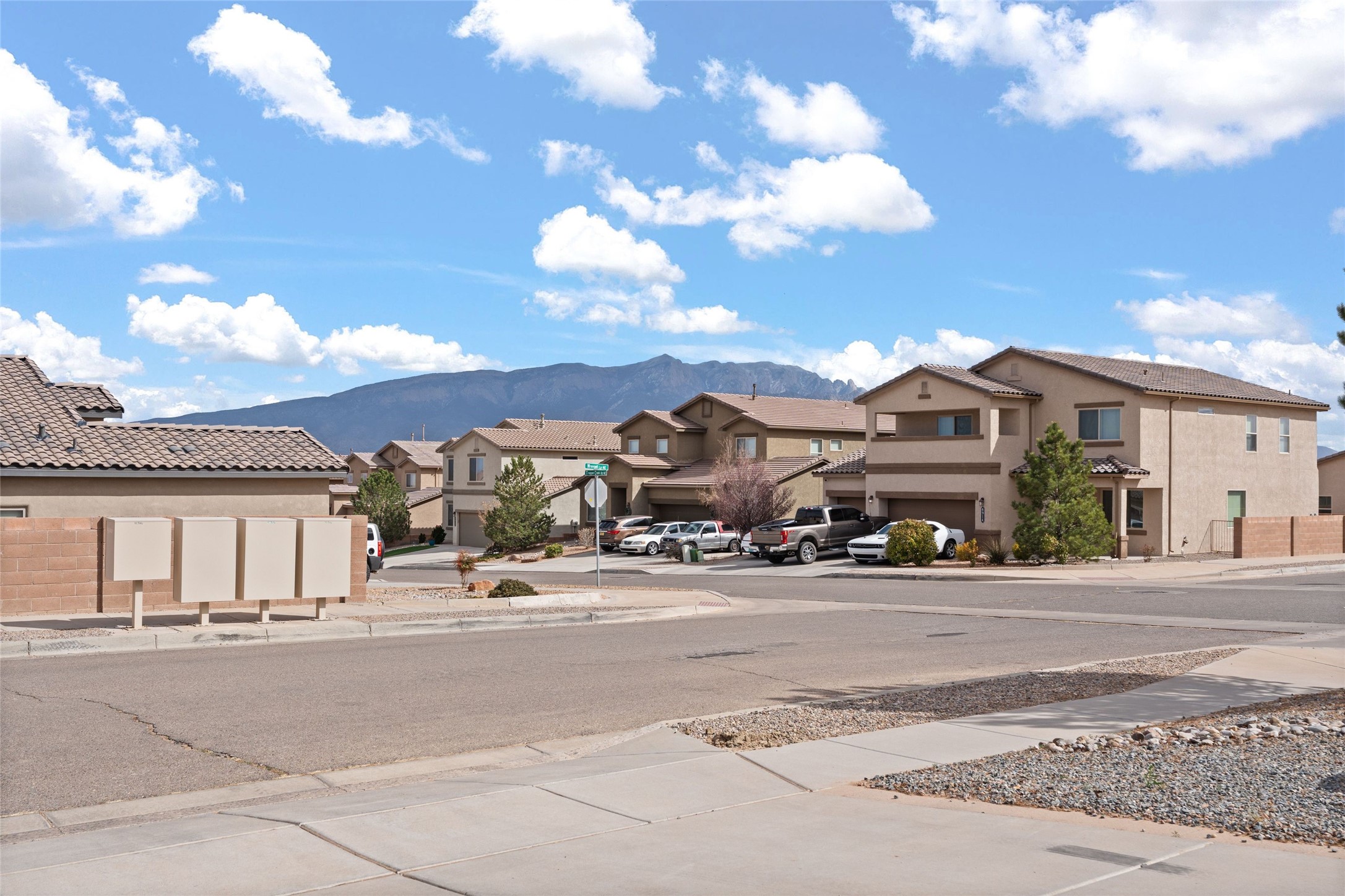 CORNER-LOT IN HIGHLY DESIRABLE LOMAS ENCANTADAS - This stunning corner-lot property in the highly sought after Lomas Encantadas Community offers the perfect blend of both comfort and elegance with its chic architectural details throughout. Meticulously maintained by its owner, this 3-bedroom, 3-bathroom single-story residence with no interior steps also includes a flex room that can serve as a supplemental office or media room. Enjoy cooking in the beautifully appointed chef's kitchen, which features stainless steel appliances, granite counter tops, and a sizable pantry. The spacious living room is bathed in natural light and boasts a coffered, two-tone ceiling which seamlessly flows into the kitchen and dining areas and opens onto a covered patio. The large three-panel door leading to the rear patio provides plenty of natural light and the perfect vantage point for enjoying those spectacular evening sunsets! The large primary suite offers ample space for a supplemental sitting area, while also accommodating a king-size bed. Two additional bedrooms are also generously sized and share a Jack-and-Jill Full bathroom. The tandem garage provides extra room for a significant amount of storage and either a workshop or hobby space. With its spectacular views of the Sandia Mountains at the front of the property and sunset views available via the rear patio, the outdoor spaces are truly inviting! This lovely home is conveniently located just minutes from schools, shopping, restaurants, and a dog park. Don't miss out on this exciting opportunity to own this spectacular home in Lomas Encantadas - schedule your showing today!