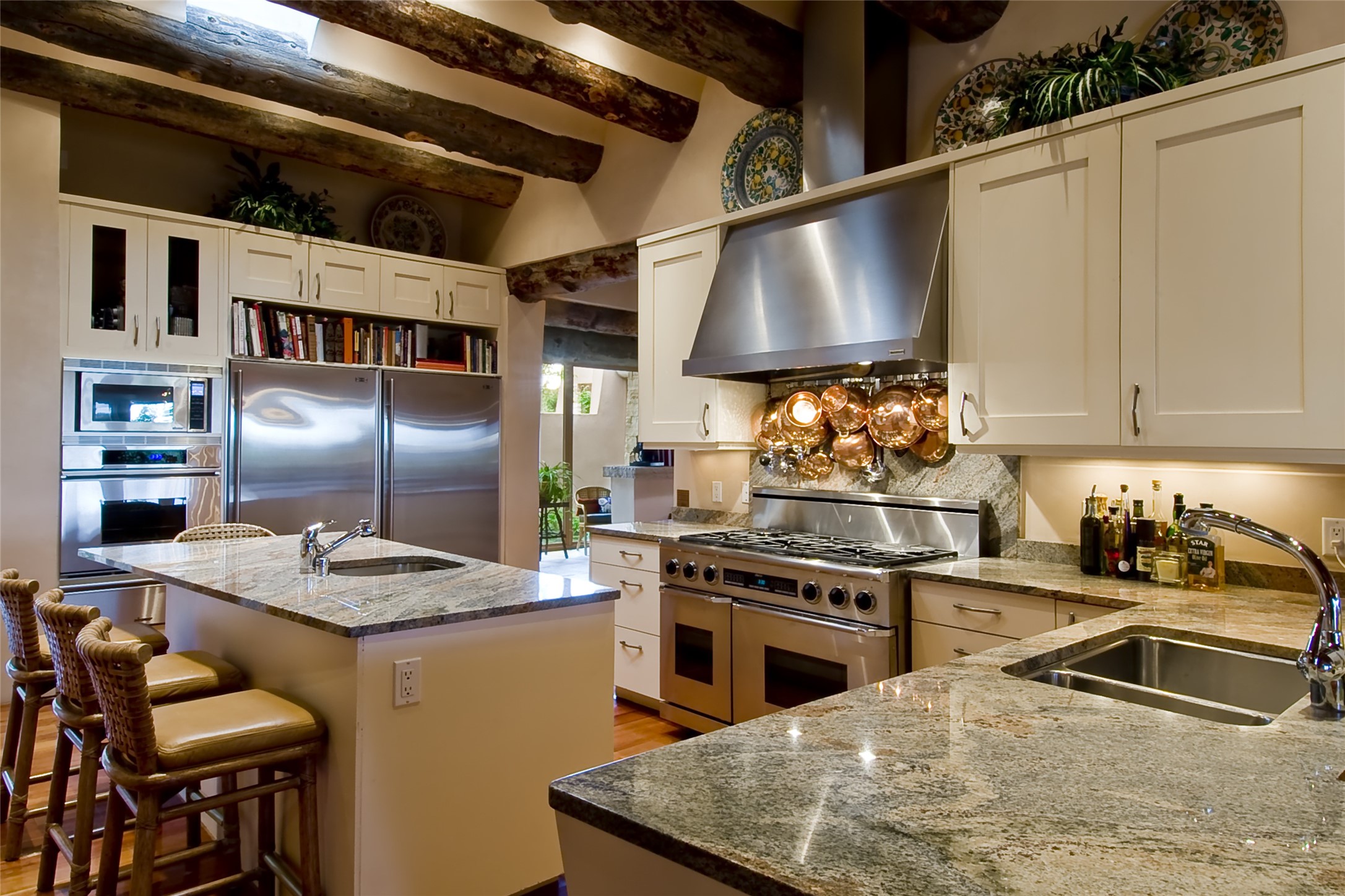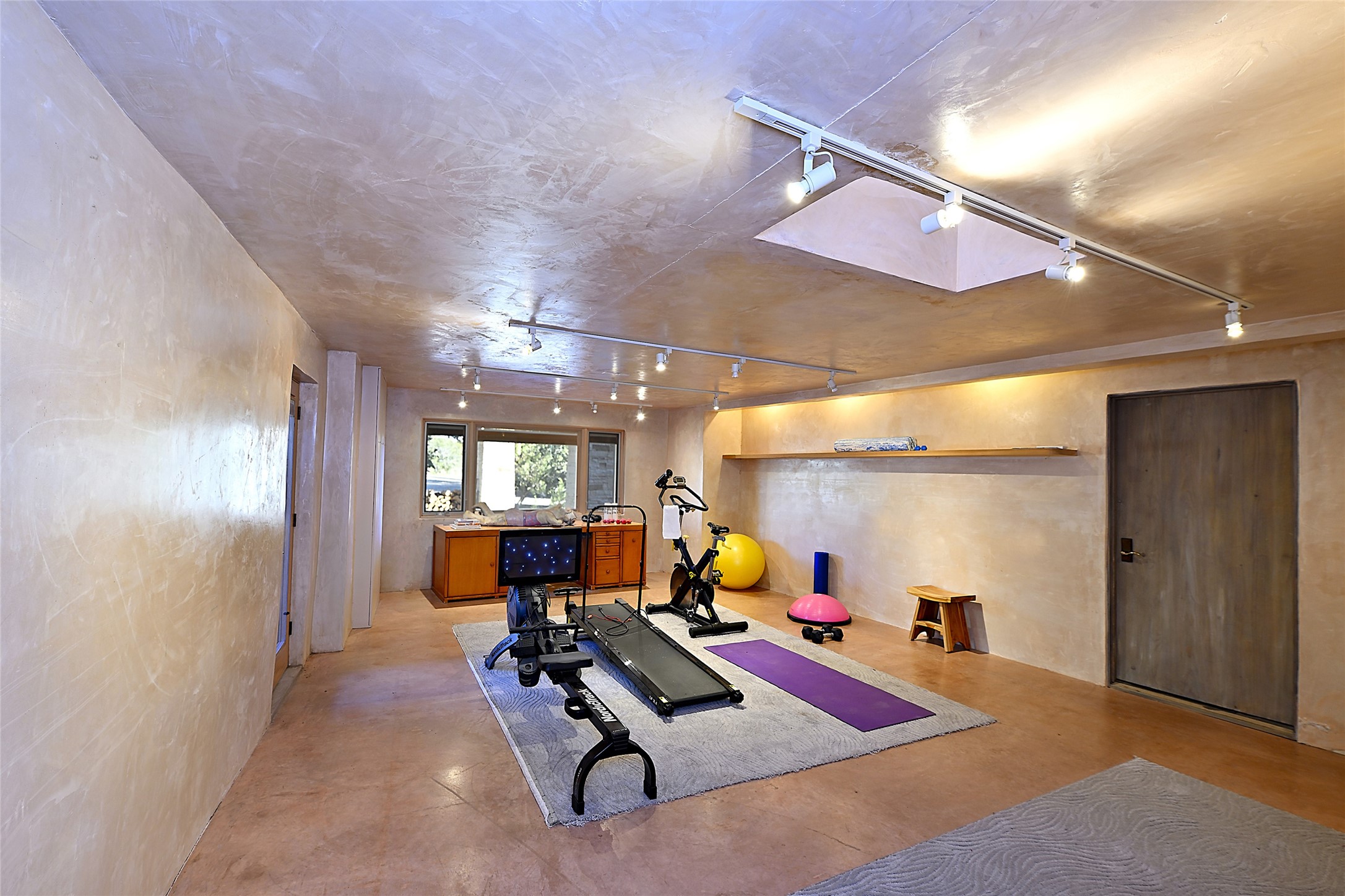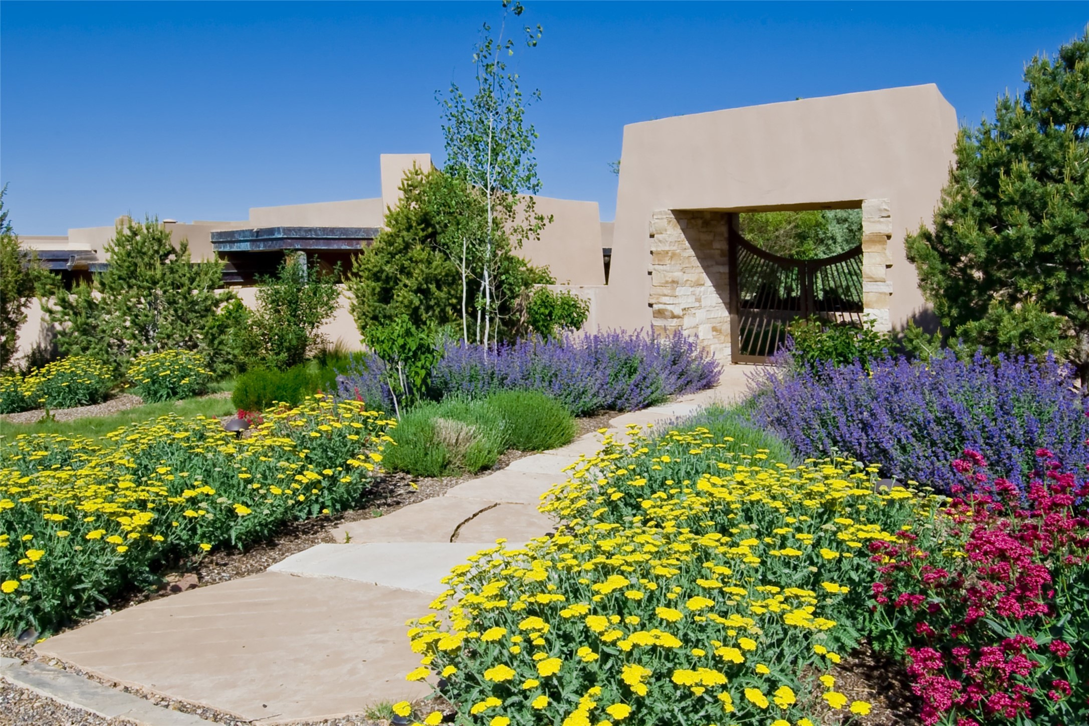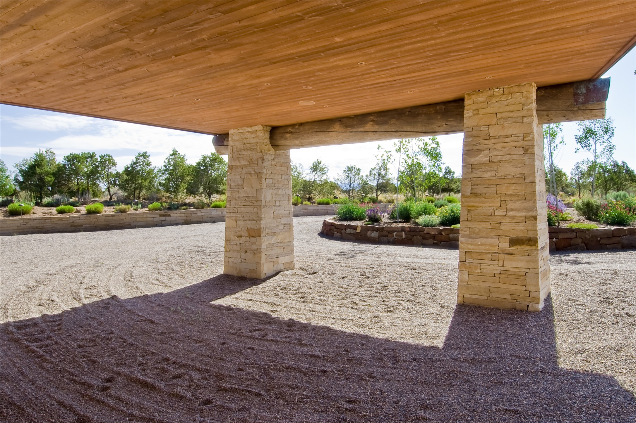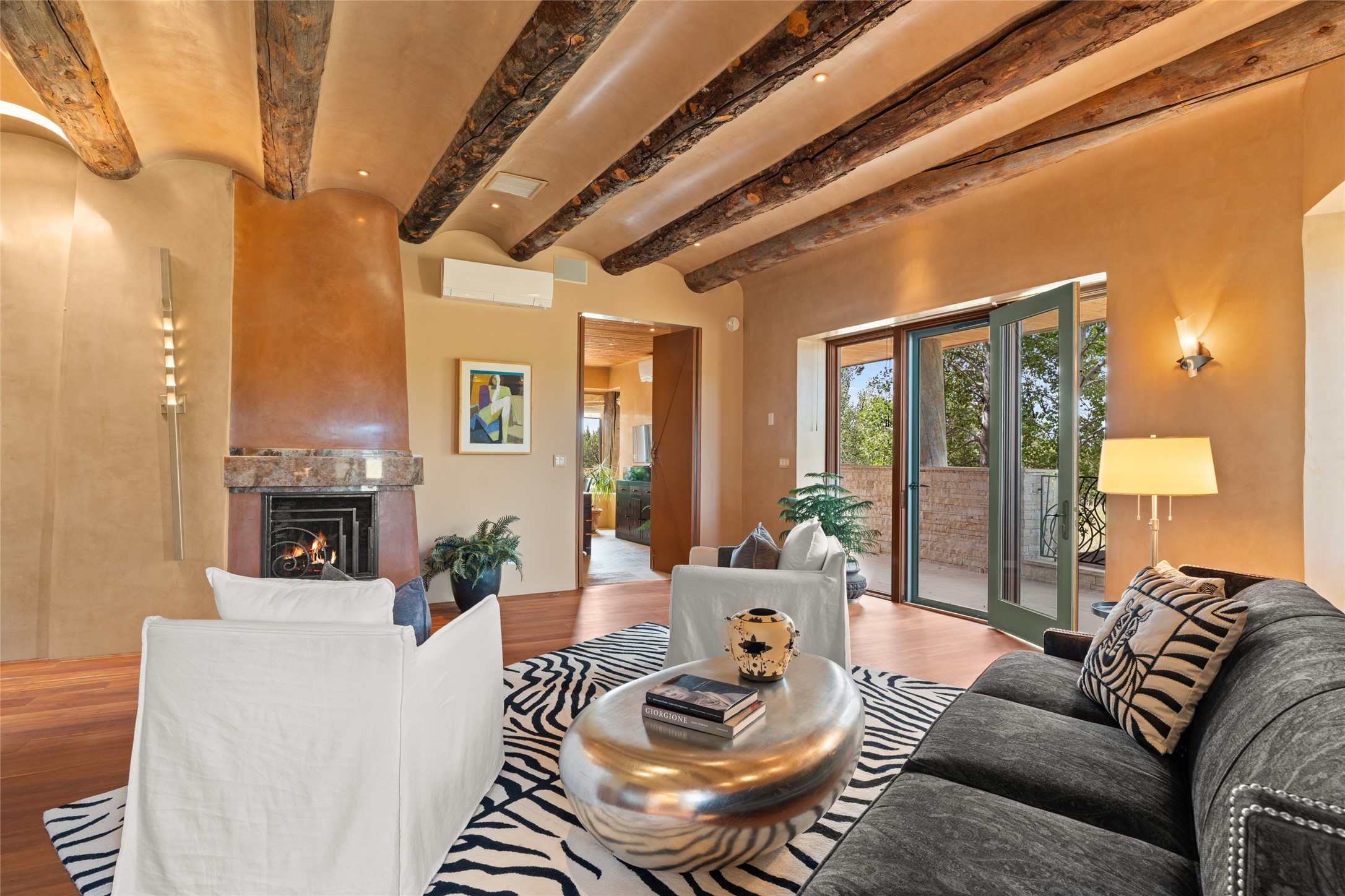 Constructed of solid adobe, this magnificent four-bedroom, 10,354-square-foot estate is an opulent oasis in the renowned community of Las Campanas. Luxurious details and amenities abound: plaster walls, 11 fireplaces, a central vacuum system, remote-controlled window shades, an indoor-outdoor sound system, and hand-adzed wood and upholstered leather doors. Highlights include a living room with a custom-designed fireplace and glass sconces hand-blown by artist Duane Dahl; a kiva-inspired dining room with sturdy reclaimed posts and stacked ceiling vigas; a media room with surround sound; and a kitchen with a butler's pantry, two dishwashers and sinks, a six-burner Dacor range, warming drawers, three ovens, and a walk-in pantry. The oversized owner's suite has two marble baths with custom-designed cantilevered cabinetry and a shared garden. Each of the two guest suites includes a custom closet and a private porch. Artists and professionals will appreciate the office and craft suite, which has a separate entrance. Portales with automatic sunshades, patios, and a rooftop deck are perfect for entertaining and enjoying majestic sunsets. The property also offers a heated garage, two porte cochres, two circular driveways, and extensive parking. The superior amenities of Las Campanas include two Jack Nicklaus Signature golf courses, an equestrian center, indoor and outdoor swimming pools, tennis courts, a fitness center, a spa, and a clubhouse offering casual and fine dining.