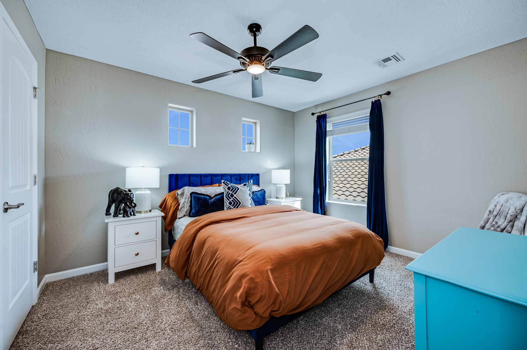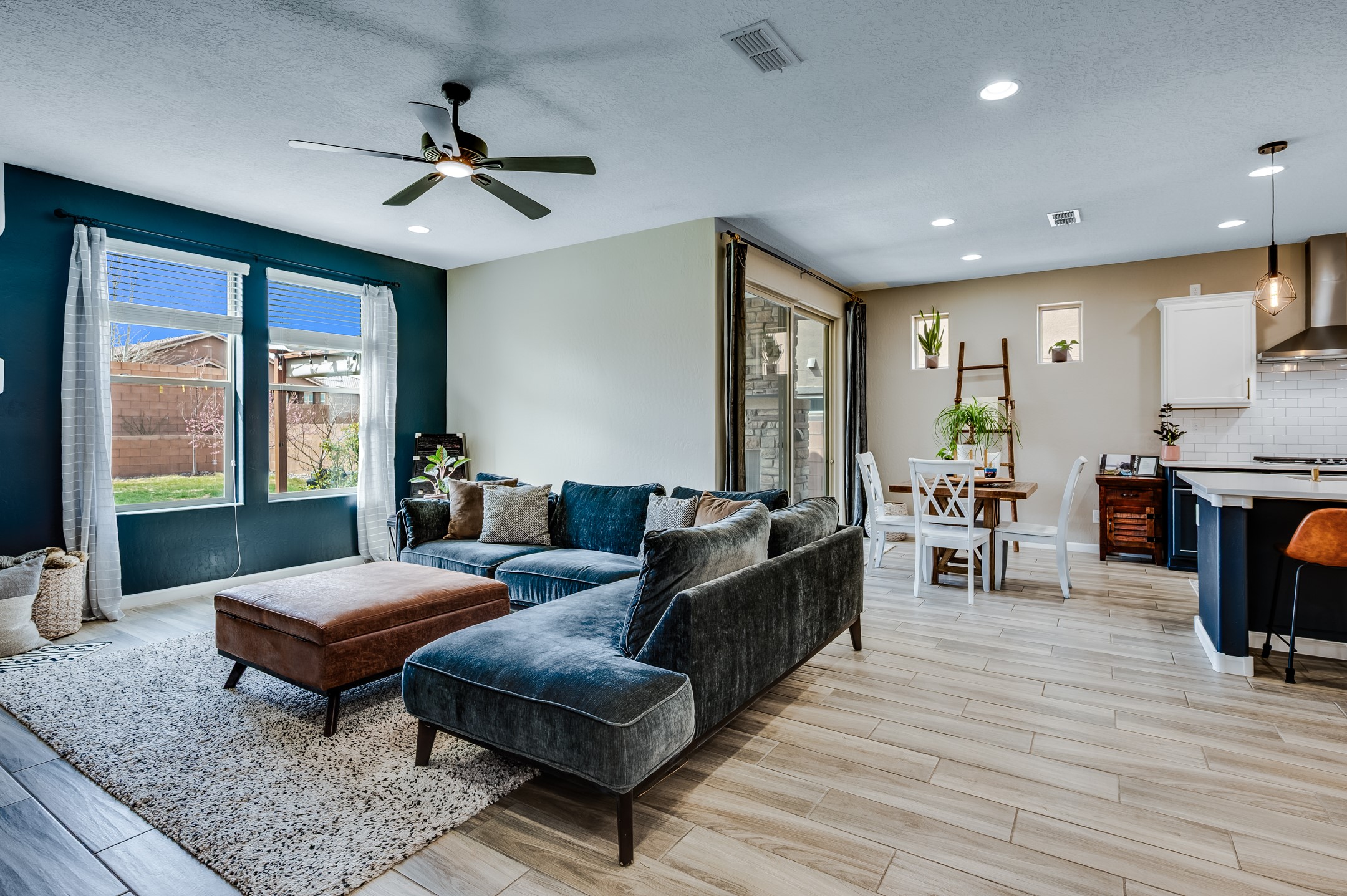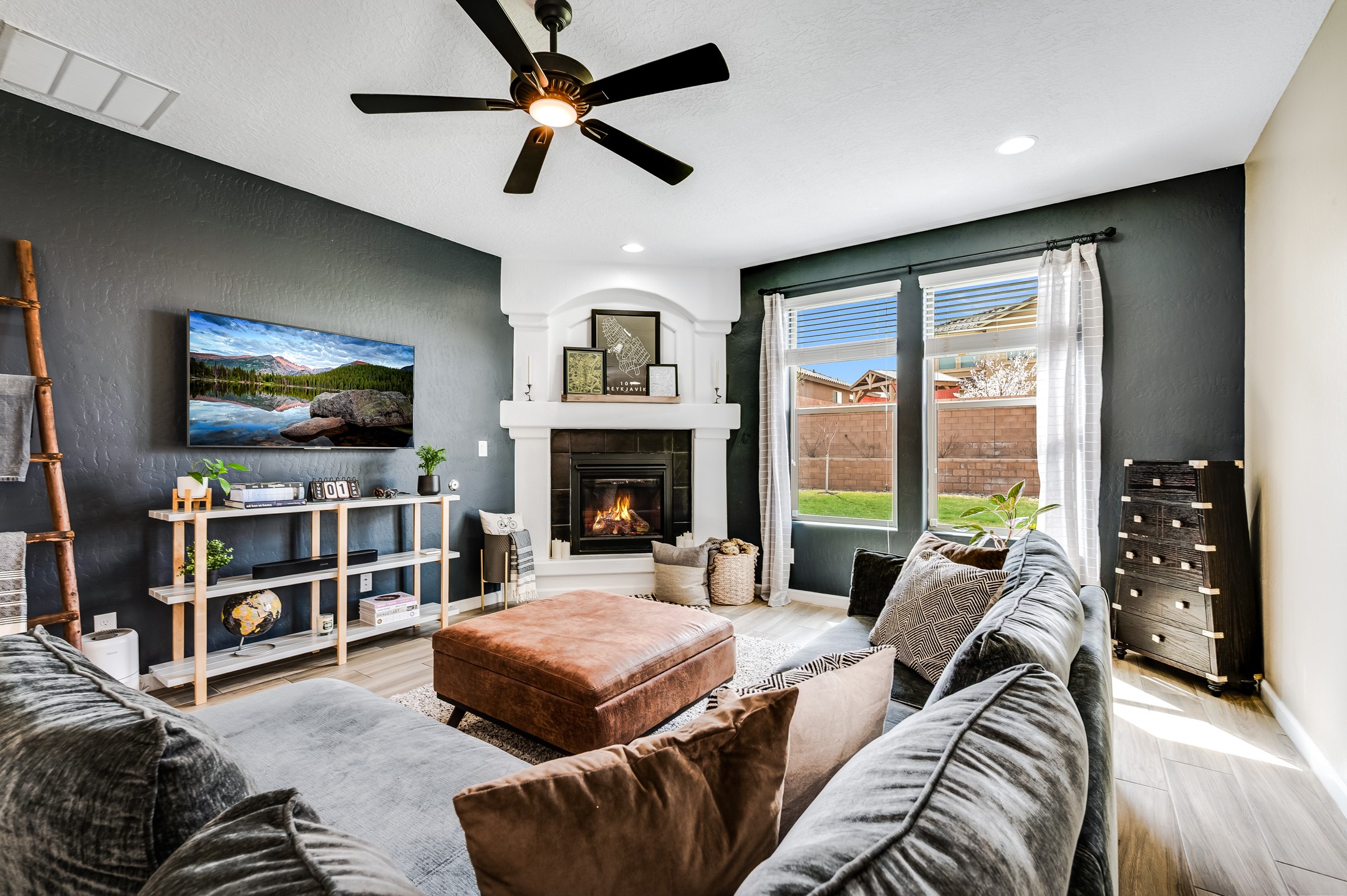 Discover stylish living in this newly listed Vistas de Las Soleras home. The skillfully designed Carissa floor plan caters to both everyday comforts and high-end entertaining. This stunning residence - in mint condition, features an open concept living area with bar, office, laundry, mud room, guest bed & bath AND a luxurious owners' suite...ALL on the main level. The heart of the home is anchored with a cozy fireplace, enhanced by the natural light streaming in from large windows. A recently renovated kitchen is equipped with top-tier appliances, large island with bar seating, and quartz countertops. Step outside to enjoy a charming back portal with its own fireplace, perfect for alfresco dining and entertaining. Established landscaping with irrigation, an attached garage that can accommodate 2-3 cars (or 2 + workshop), high ceilings, central A/C, and an upstairs den with guest suite for additional relaxation space or hosting visitors, all add to the appeal of this virtually new home. Proximity to essential amenities is a real plus - with Santa Fe Regional Airport, Santa Fe Place Mall, and Presbyterian Santa Fe Medical Center all within easy reach. Experience comfort and convenience in this beautifully crafted, move-in ready home. **See additional information in Broker Remarks. Details as provided by Sellers.**
