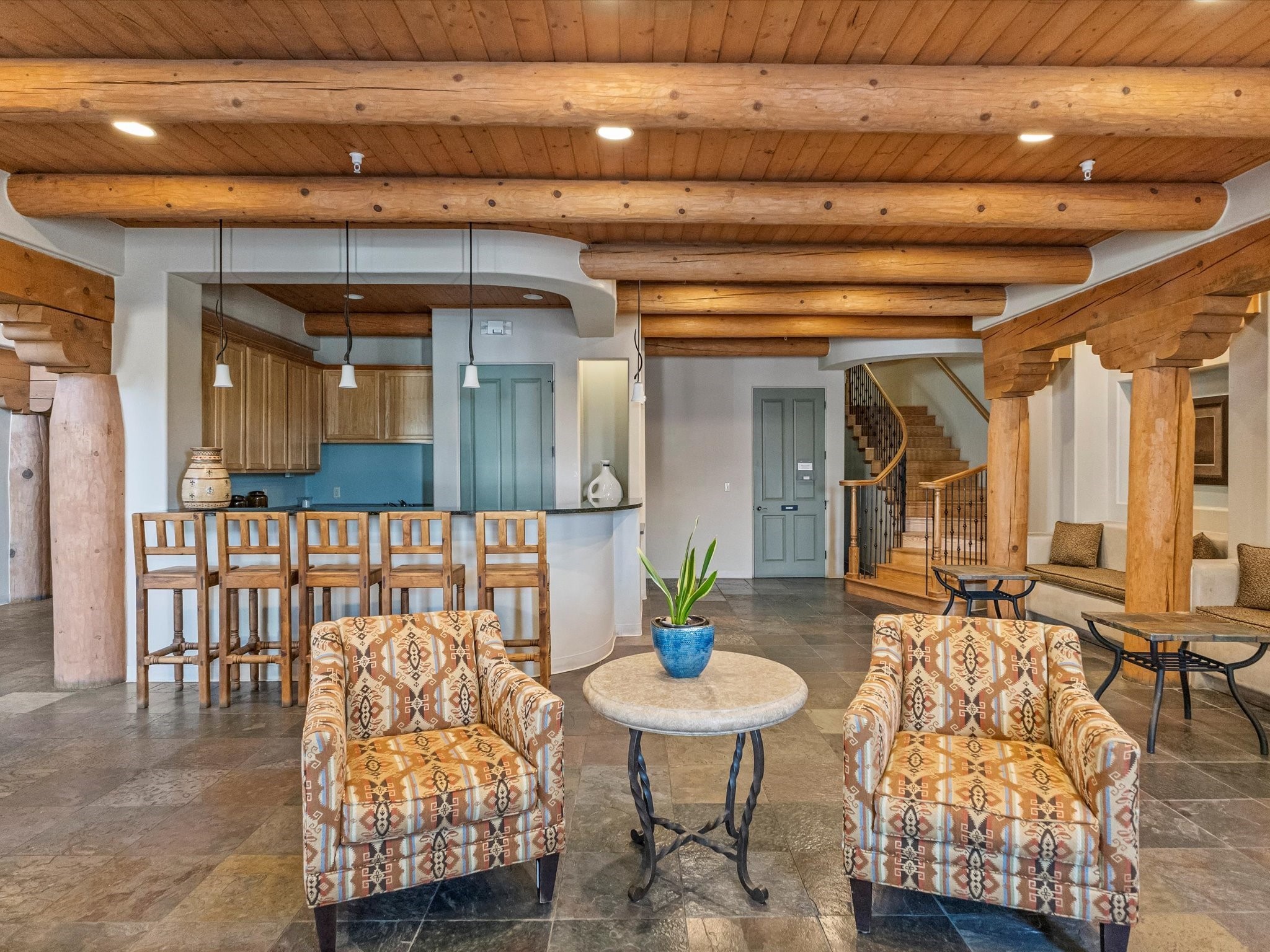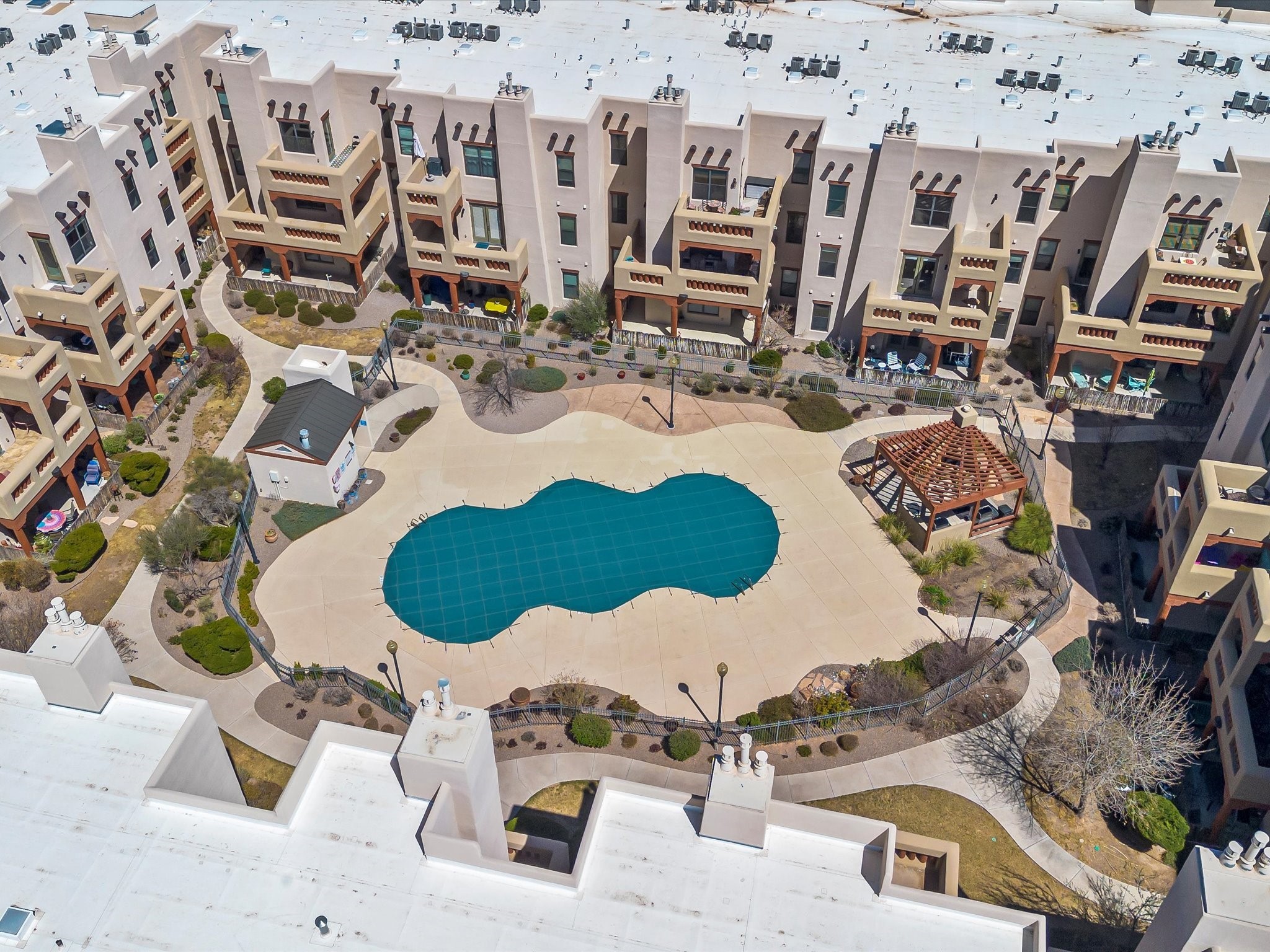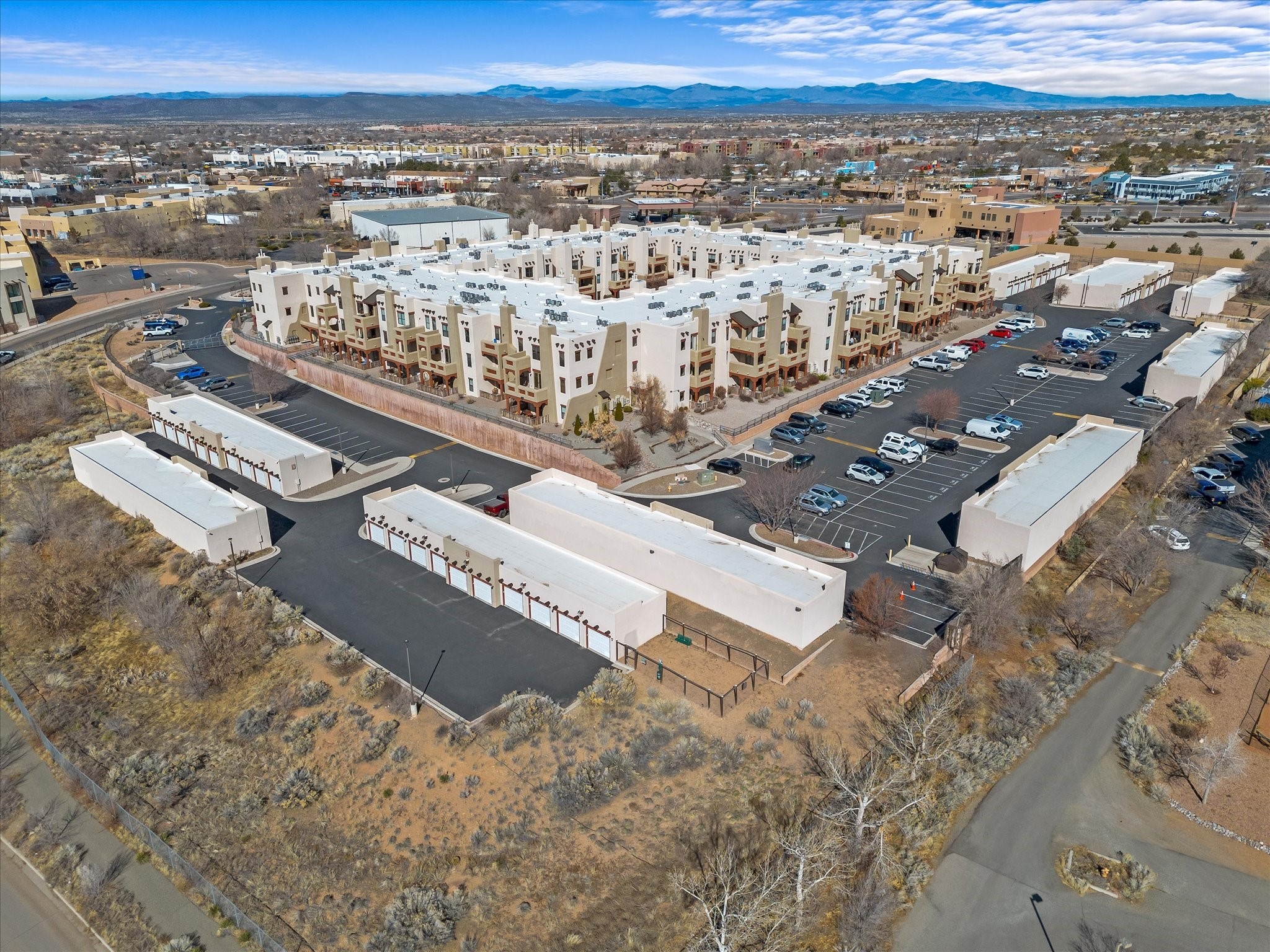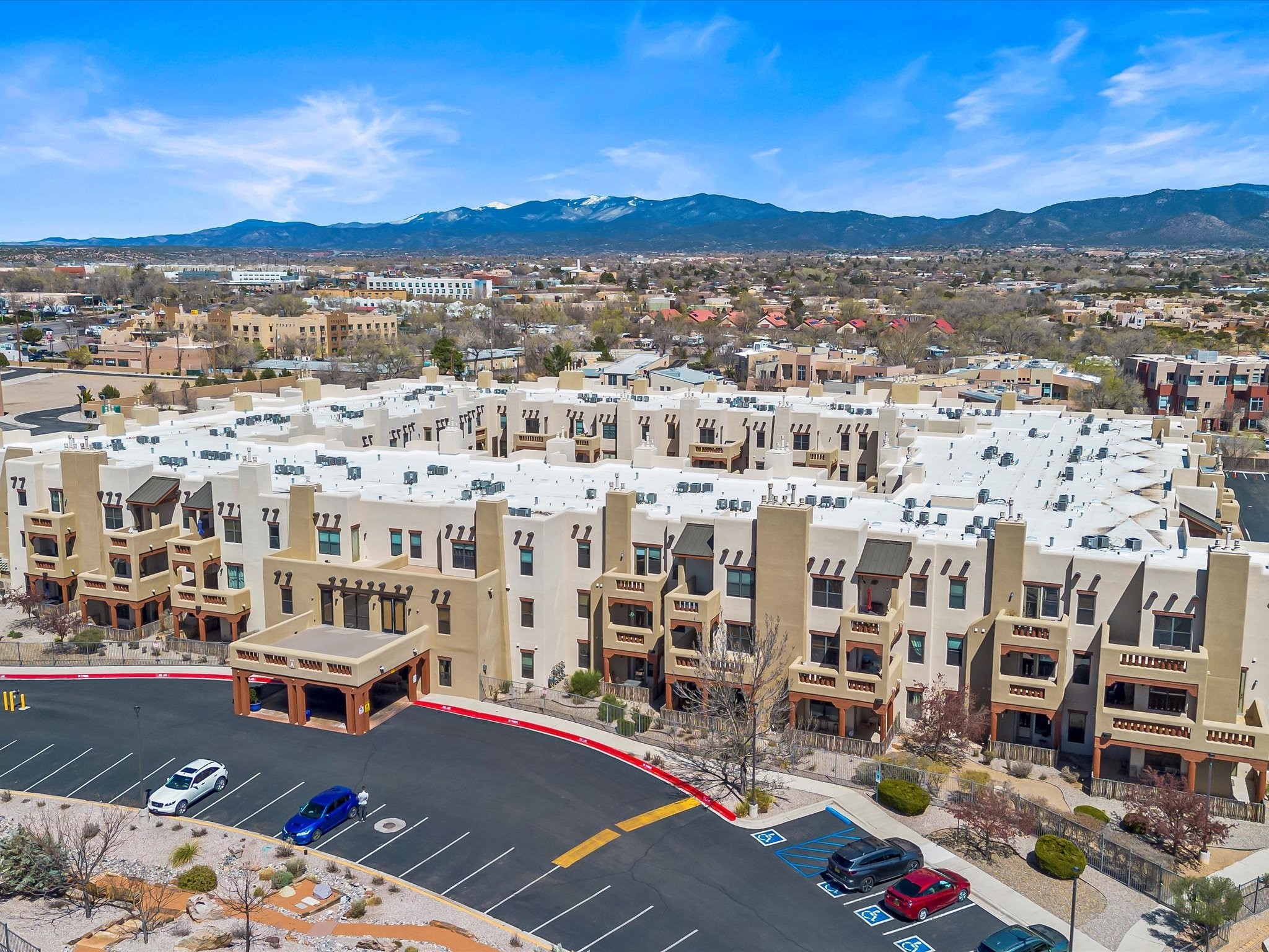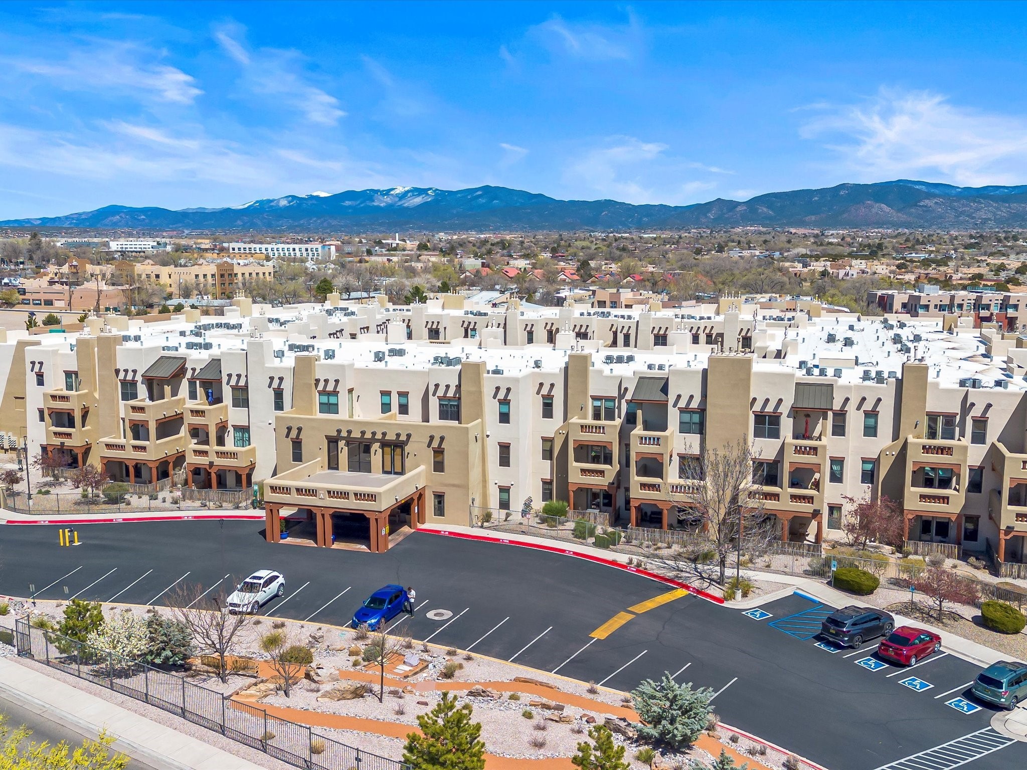 Charming Ground-Floor Condo in The Alameda - Santa Fe Living at Its Best!Welcome to this highly desirable 1-bedroom, 1.5-bathroom ground-floor condo, ideally situated near the secure front entrance of The Alameda Condominiums. This beautifully appointed former model/showroom unit offers style, convenience, and comfort in one perfect package.Step inside to discover a blend of upscale Pueblo-style charm and modern features. Soaring ceilings, decorative wood corbels and vigas, a cozy kiva fireplace, and a custom sliding barn door set a warm, inviting tone. The thoughtfully designed layout includes an open living area, a spacious walk-in closet, a powder room, and an in-unit washer/dryer for ultimate convenience.Enjoy cooking in the modern kitchen, complete with stainless steel appliances, granite countertops, and sleek slate floors. Step outside to your private patio surrounded by classic coyote fencing - a tranquil spot to relax or entertain.This unit also includes a large deeded storage space just steps from your front door, as well as easy access to the mailroom.Residents of The Alameda enjoy lots of amenities including gated parking, 24/7 controlled access, on-site management and maintenance, a fitness center, swimming pool, clubhouse, elevators, and beautifully landscaped grounds. Located close to Santa Fe Place Mall, Sprouts, Albertsons, and with direct access to bike and nature trails - you'll have everything you need at your fingertips. Just a ~10-minute drive to the iconic Santa Fe Plaza!Don't miss your chance to own a slice of Santa Fe charm in one of the city's most sought-after communities!