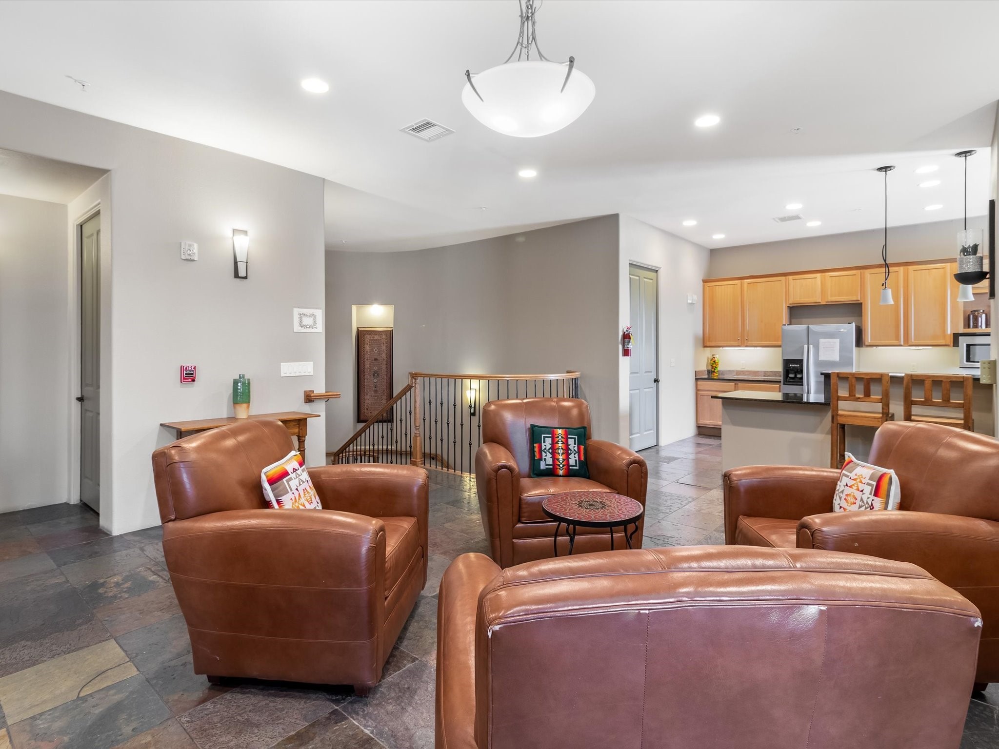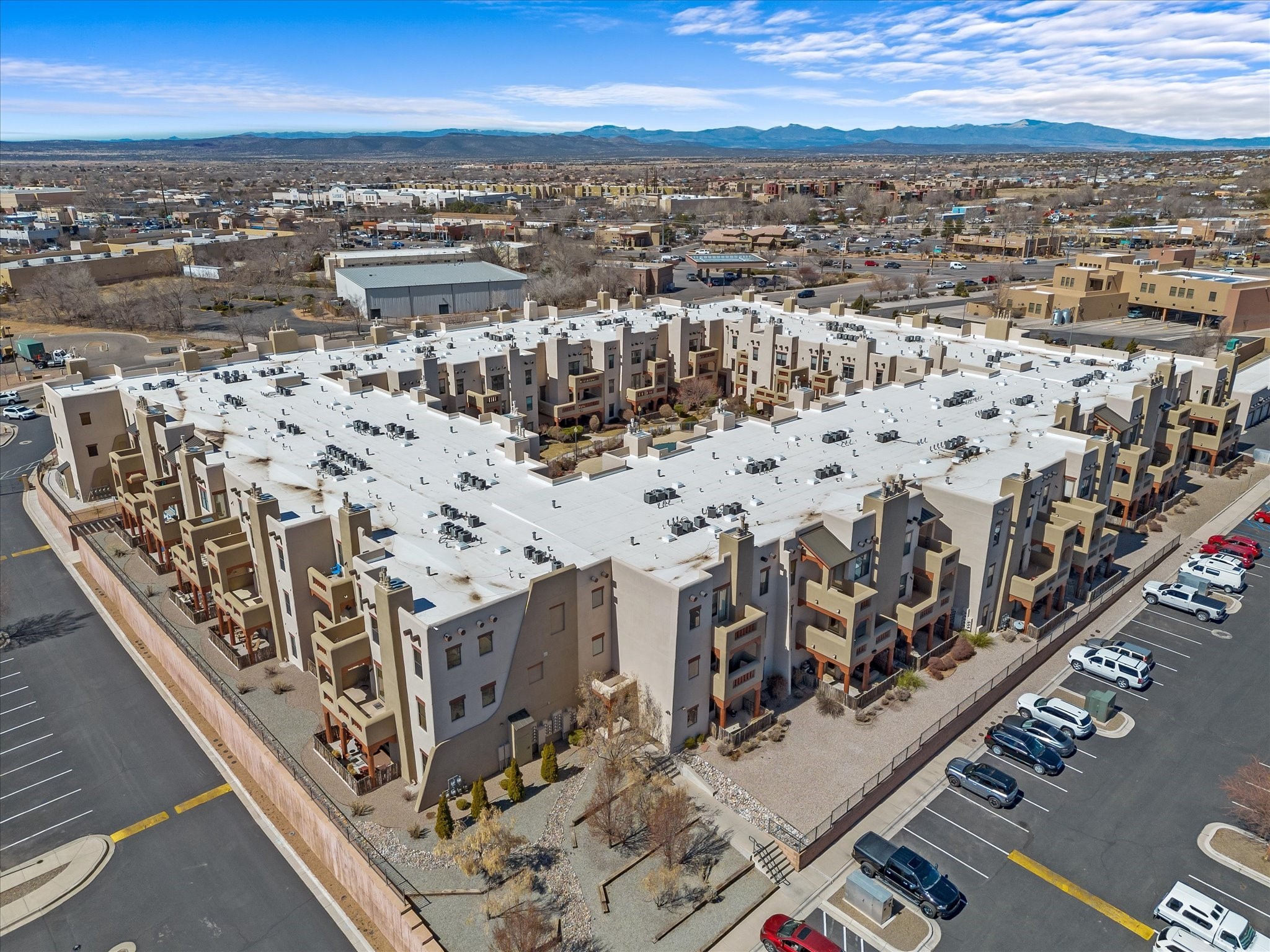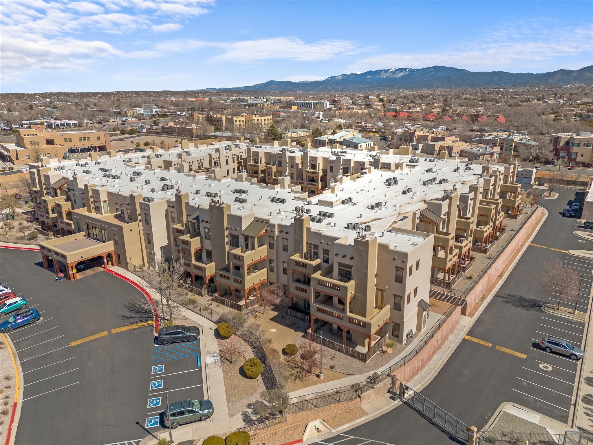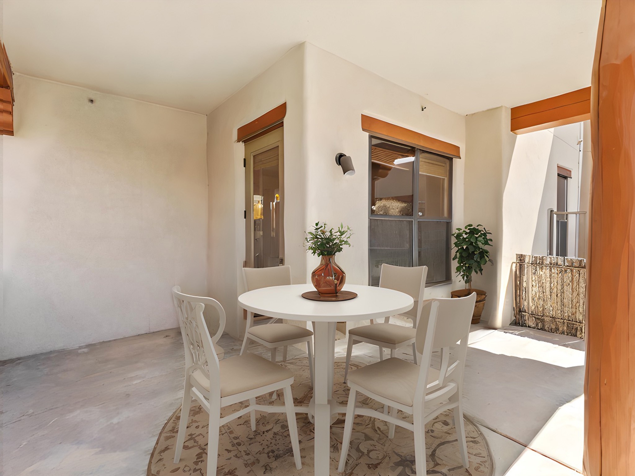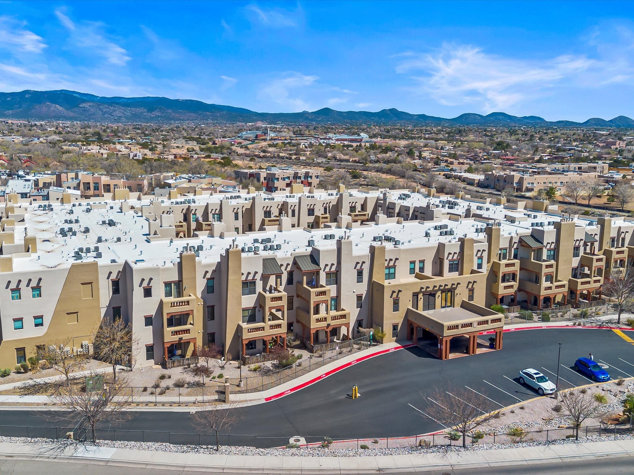 Charming Ground-Floor Condo in The Alameda - Santa Fe Living at Its Best!Welcome to this highly desirable 1-bedroom, 1.5-bathroom ground-floor condo, ideally situated near the secure front entrance of The Alameda Condominiums. This beautifully appointed former model/showroom unit offers style, convenience, and comfort in one perfect package.Step inside to discover a blend of upscale Pueblo-style charm and modern features. Soaring ceilings, decorative wood corbels and vigas, a cozy kiva fireplace, and a custom sliding barn door set a warm, inviting tone. The thoughtfully designed layout includes an open living area, a spacious walk-in closet, a powder room, and an in-unit washer/dryer for ultimate convenience.Enjoy cooking in the modern kitchen, complete with stainless steel appliances, granite countertops, and sleek slate floors. Step outside to your private patio surrounded by classic coyote fencing - a tranquil spot to relax or entertain.This unit also includes a large deeded storage space just steps from your front door, as well as easy access to the mailroom.Residents of The Alameda enjoy lots of amenities including gated parking, 24/7 controlled access, on-site management and maintenance, a fitness center, swimming pool, clubhouse, elevators, and beautifully landscaped grounds. Located close to Santa Fe Place Mall, Sprouts, Albertsons, and with direct access to bike and nature trails - you'll have everything you need at your fingertips. Just a ~10-minute drive to the iconic Santa Fe Plaza!Don't miss your chance to own a slice of Santa Fe charm in one of the city's most sought-after communities!