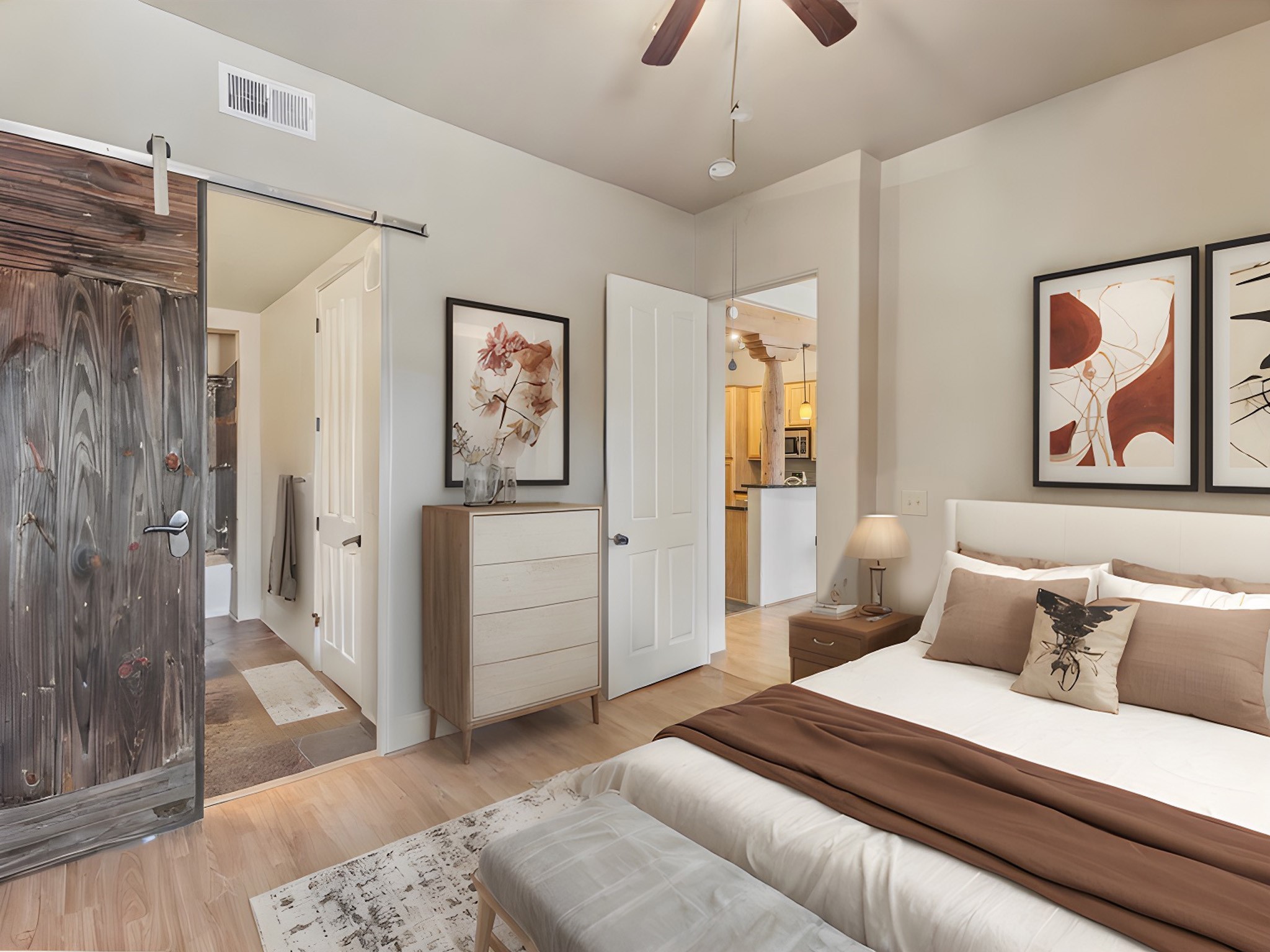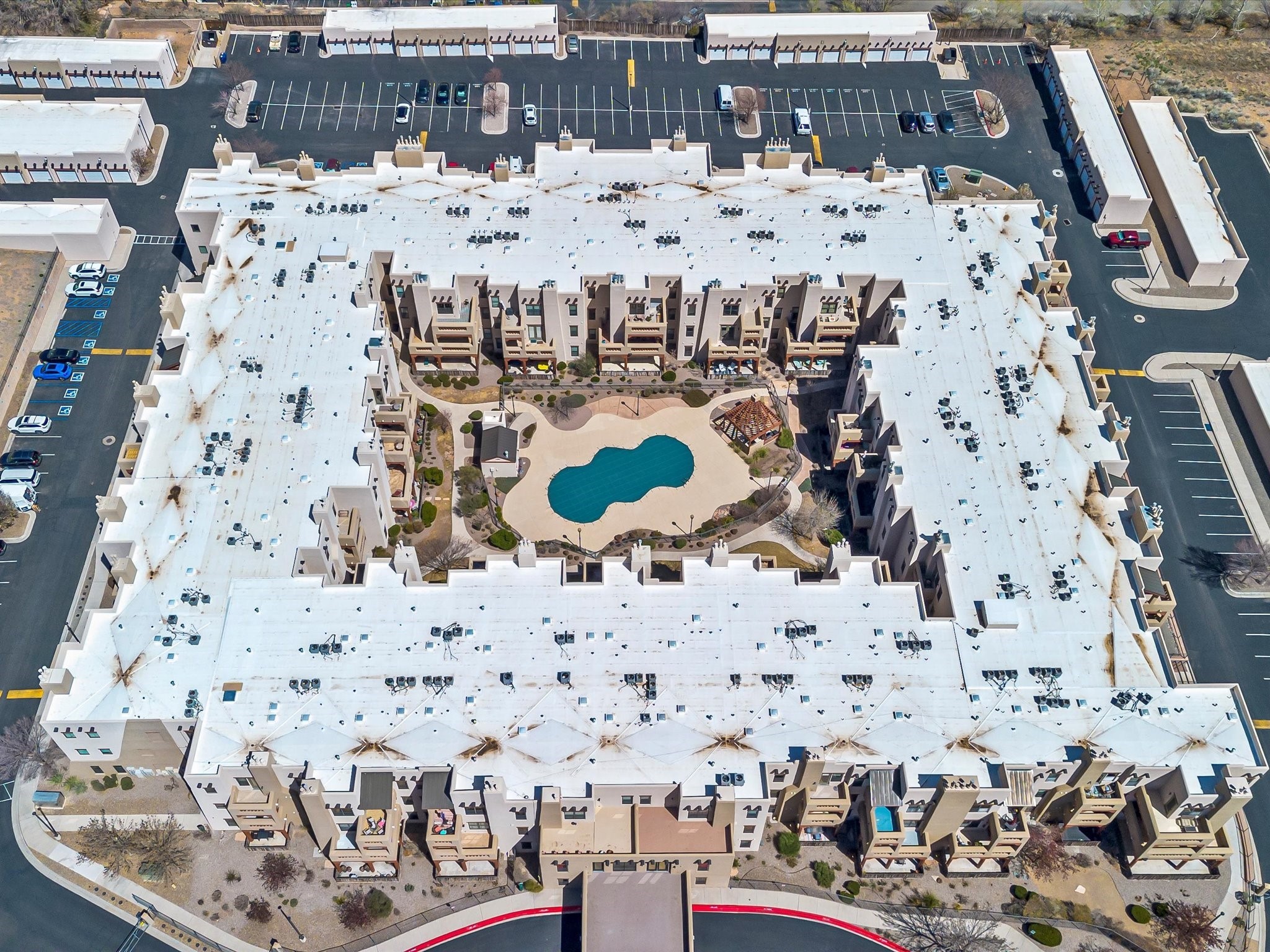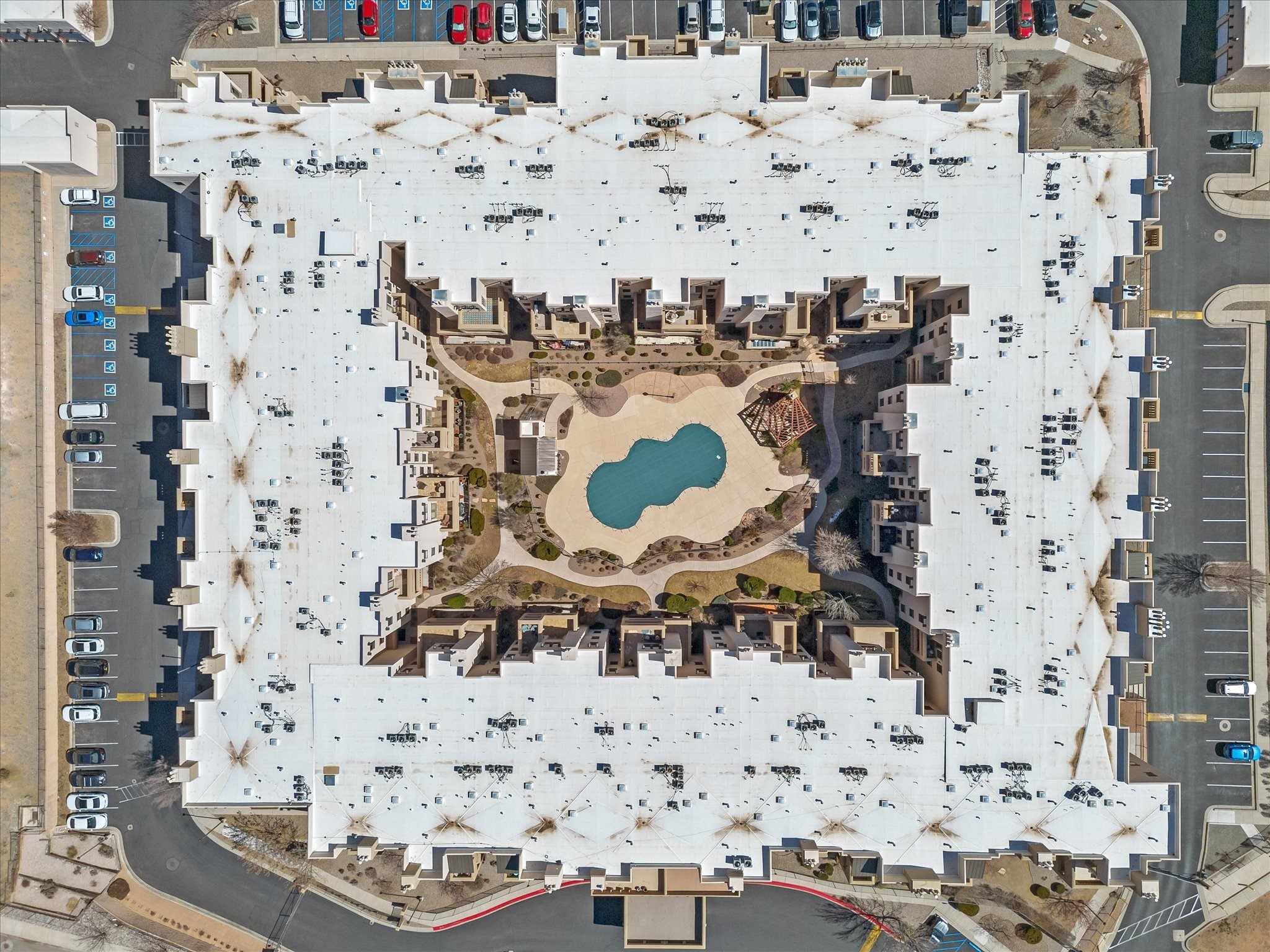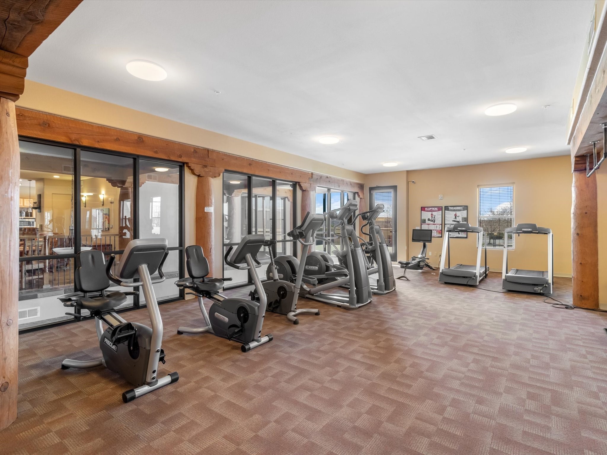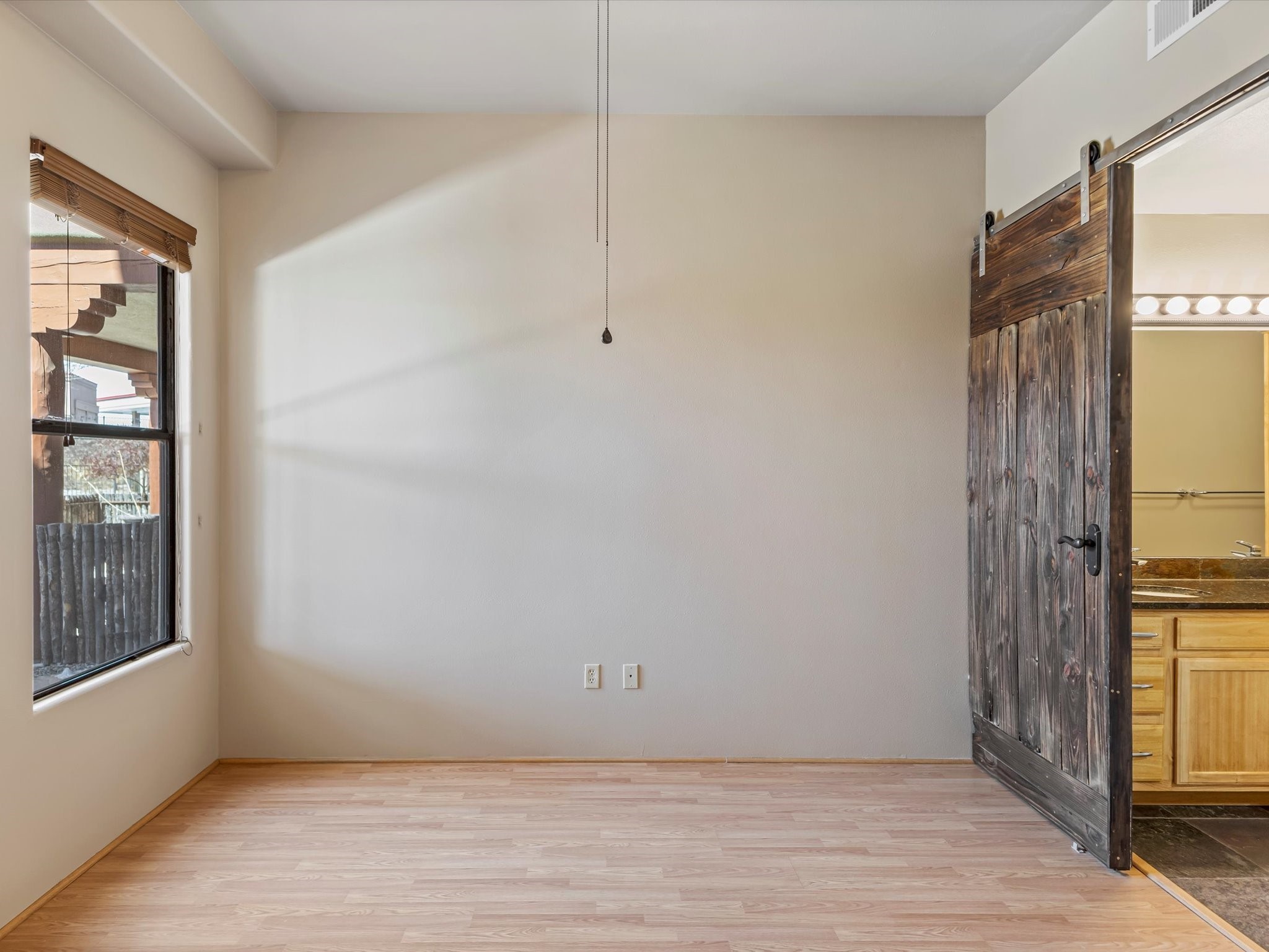 Charming Ground-Floor Condo in The Alameda - Santa Fe Living at Its Best!Welcome to this highly desirable 1-bedroom, 1.5-bathroom ground-floor condo, ideally situated near the secure front entrance of The Alameda Condominiums. This beautifully appointed former model/showroom unit offers style, convenience, and comfort in one perfect package.Step inside to discover a blend of upscale Pueblo-style charm and modern features. Soaring ceilings, decorative wood corbels and vigas, a cozy kiva fireplace, and a custom sliding barn door set a warm, inviting tone. The thoughtfully designed layout includes an open living area, a spacious walk-in closet, a powder room, and an in-unit washer/dryer for ultimate convenience.Enjoy cooking in the modern kitchen, complete with stainless steel appliances, granite countertops, and sleek slate floors. Step outside to your private patio surrounded by classic coyote fencing - a tranquil spot to relax or entertain.This unit also includes a large deeded storage space just steps from your front door, as well as easy access to the mailroom.Residents of The Alameda enjoy lots of amenities including gated parking, 24/7 controlled access, on-site management and maintenance, a fitness center, swimming pool, clubhouse, elevators, and beautifully landscaped grounds. Located close to Santa Fe Place Mall, Sprouts, Albertsons, and with direct access to bike and nature trails - you'll have everything you need at your fingertips. Just a ~10-minute drive to the iconic Santa Fe Plaza!Don't miss your chance to own a slice of Santa Fe charm in one of the city's most sought-after communities!