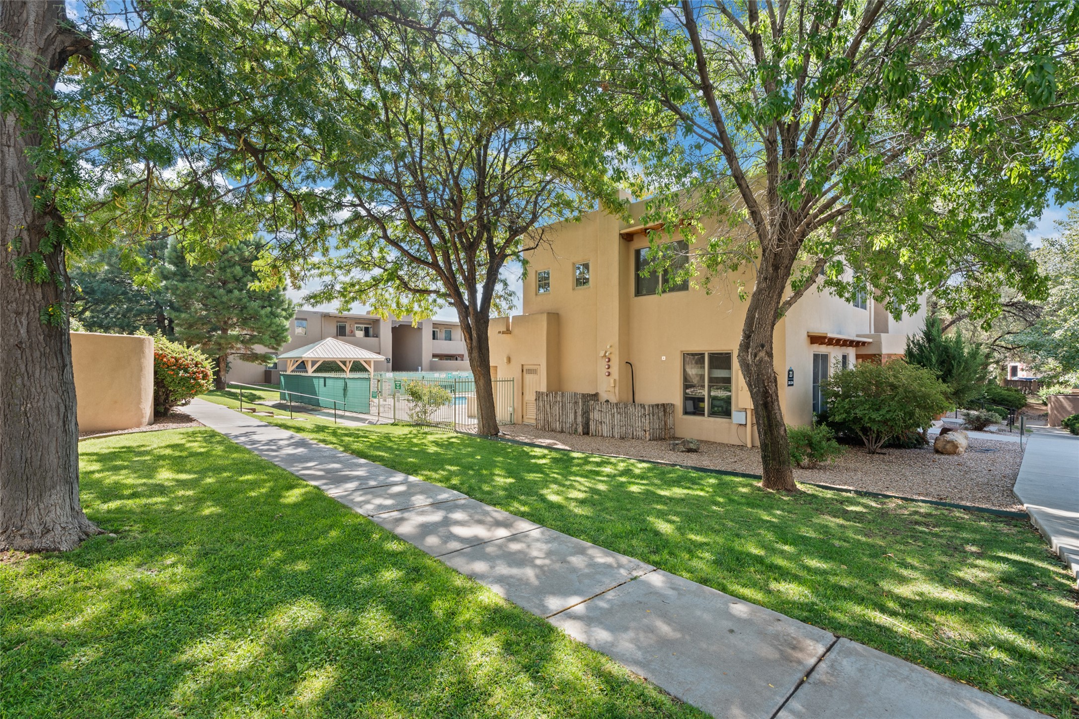 The San Mateo Condos are centrally located, close to shopping, the Santa Fe Plaza, the Rail yard with a farmers' market, restaurants, and hospitals. The grounds are beautiful, featuring a community pool. The community is gated and offers a convenient location to the Santa Fe and Albuquerque airports. This Condo is a one-bedroom, one-bath unit on the ground floor. It features engineered wood flooring, granite countertops, stainless steel appliances, air conditioning, and an outdoor patio off the large open living room and dining room. San Mateo Condos is a beautiful, serene oasis in the heart of Santa Fe. Look at this Condo; it might be right for you!