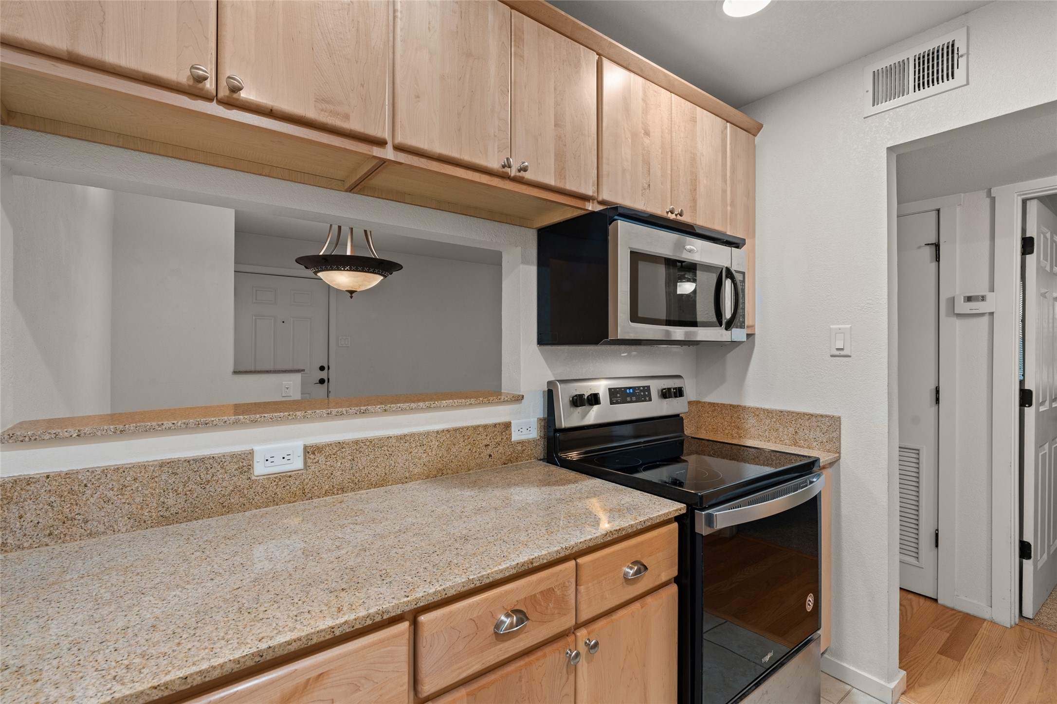 The San Mateo Condos are centrally located, close to shopping, the Santa Fe Plaza, the Rail yard with a farmers' market, restaurants, and hospitals. The grounds are beautiful, featuring a community pool. The community is gated and offers a convenient location to the Santa Fe and Albuquerque airports. This Condo is a one-bedroom, one-bath unit on the ground floor. It features engineered wood flooring, granite countertops, stainless steel appliances, air conditioning, and an outdoor patio off the large open living room and dining room. San Mateo Condos is a beautiful, serene oasis in the heart of Santa Fe. Look at this Condo; it might be right for you!