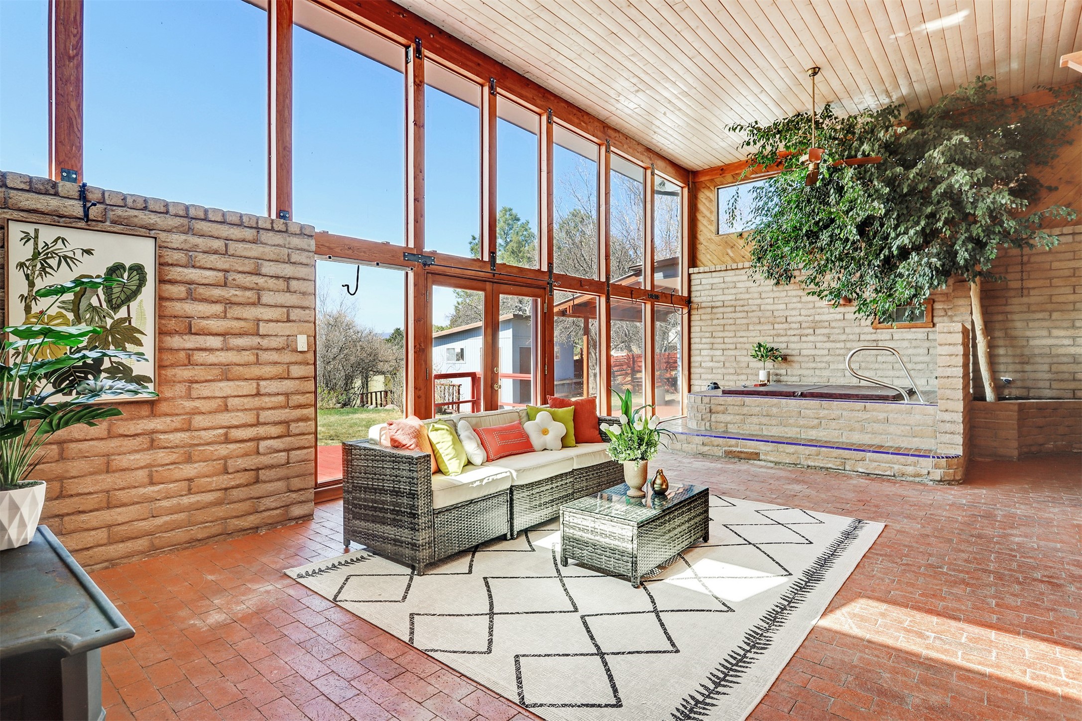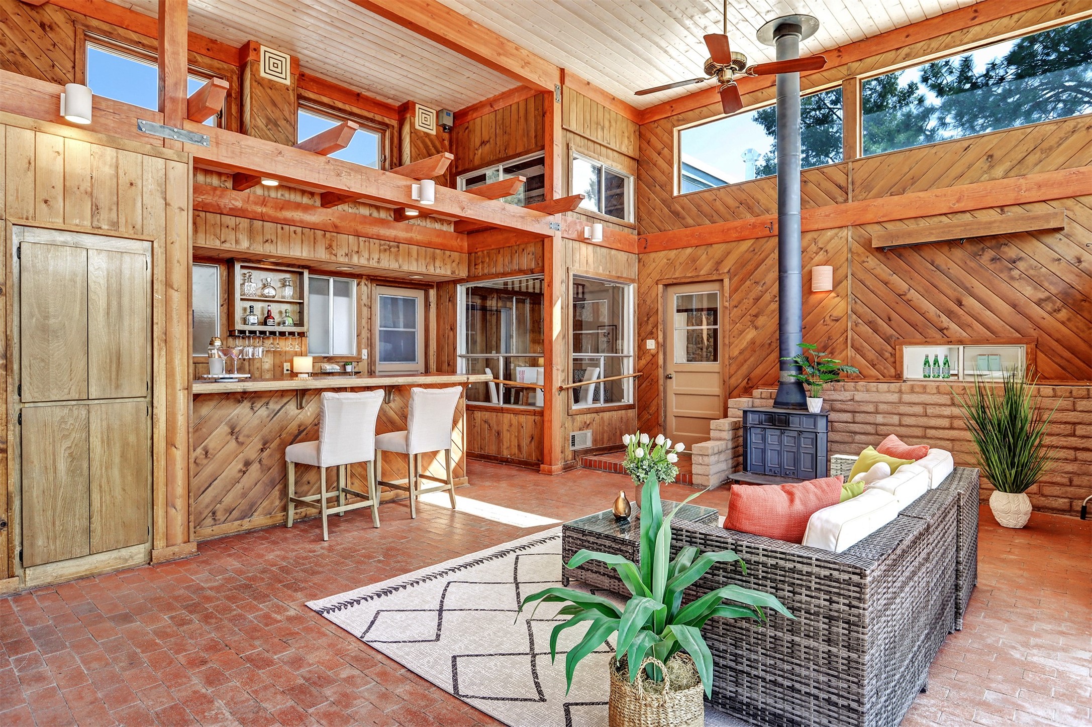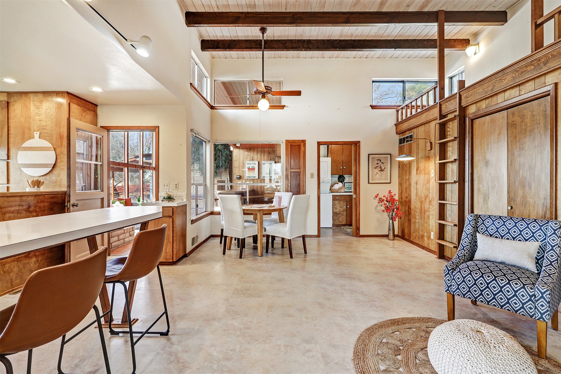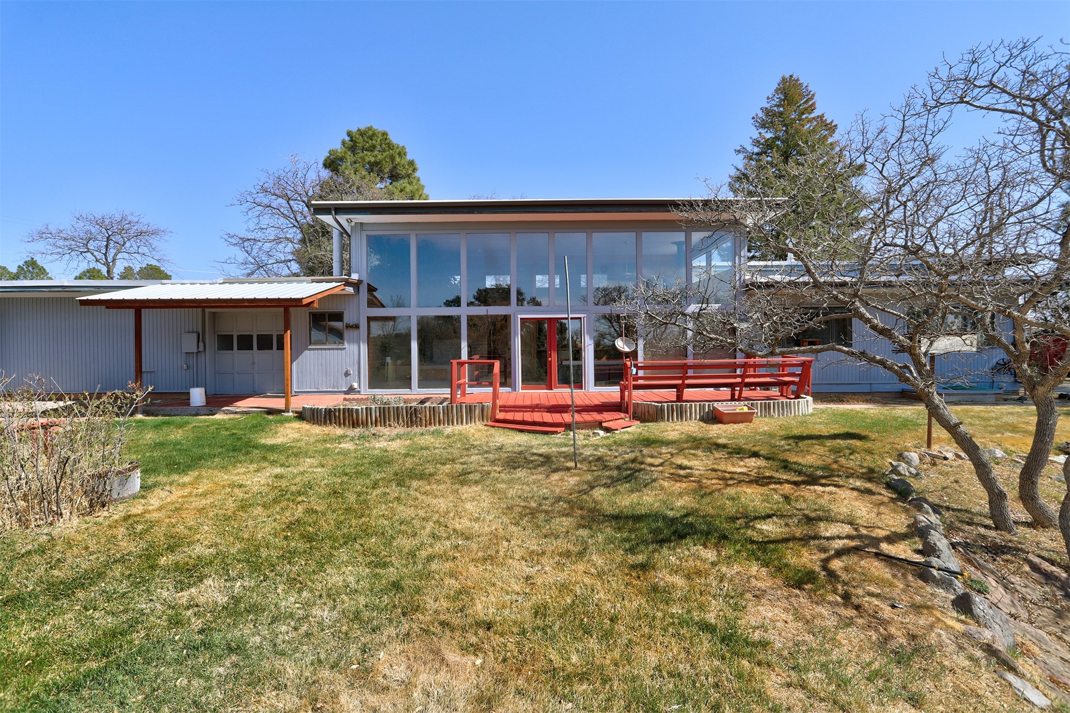*Impressive Barranca Mesa Home on a Spacious .75-Acre Corner Lot* Welcome to this stunning single-level, 3,300 sq. ft. home, perfectly positioned on a .75-acre corner lot that backs to Bayo Canyon. With an expansive setting, the backyard feels as if it never ends. This residence offers abundant natural light, generous living spaces, and a layout designed for both comfort and functionality. Step into the grand foyer, where large picture windows fill the home with sunlight. The great room boasts floor-to-ceiling windows, a wood-burning fireplace, and a cozy reading nook--the perfect place to relax in the afternoon sun. Enjoy meals in the formal dining room or the inviting eat-in kitchen. Enjoy entertaining in the spacious sunroom, featuring charming redbrick floors, a wet bar, and ample room for a pool or other game tables. The west wing of the home features three well-appointed bedrooms, while the east wing is dedicated to the primary suite--a private retreat with its own fireplace, renovated en-suite bathroom, walk-in closet, and direct access to an outdoor patio. Outside, the front yard is beautifully maintained with a sprinkler system and has been cared for by Green Lawn for several years. The private backyard oasis provides ample space for gardening, play, and outdoor gatherings. Additional highlights include a workshop with front and back access, and a heated two-car garage. You'll love the prime location, the ease of single-level living, and the lush landscaping. Don't miss this incredible opportunity to own a home on Barranca Mesa. Schedule your private showing today!