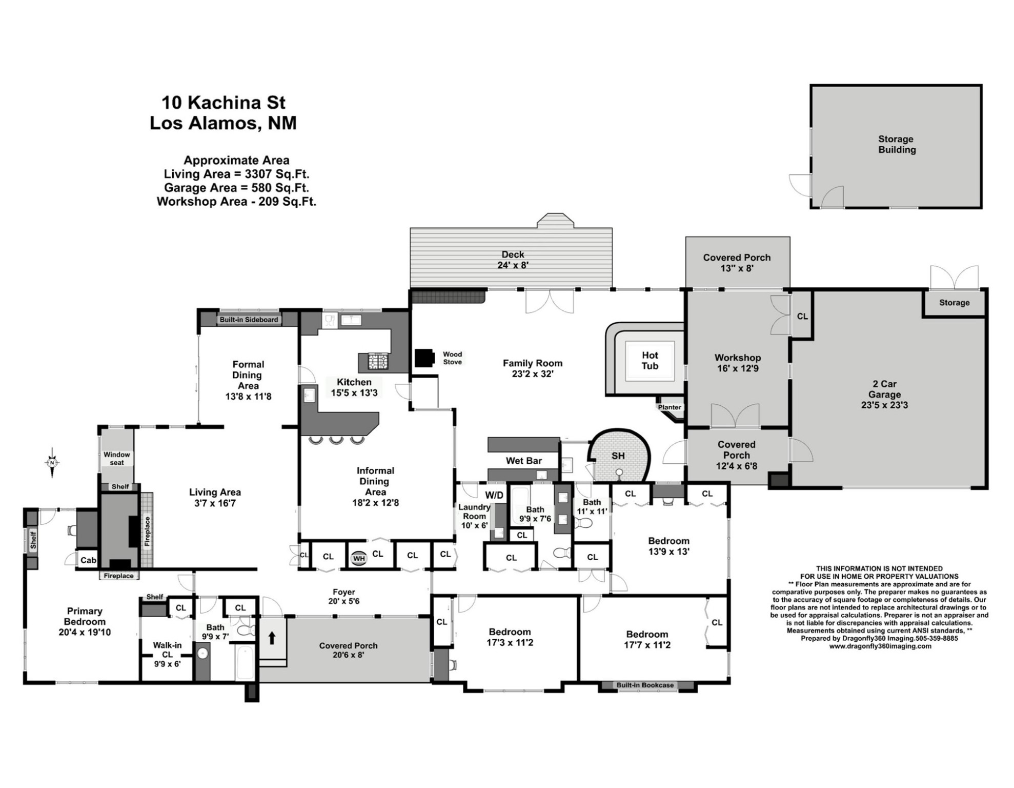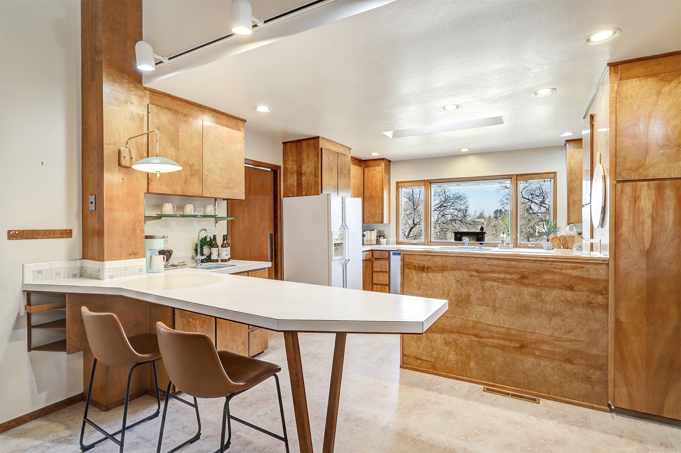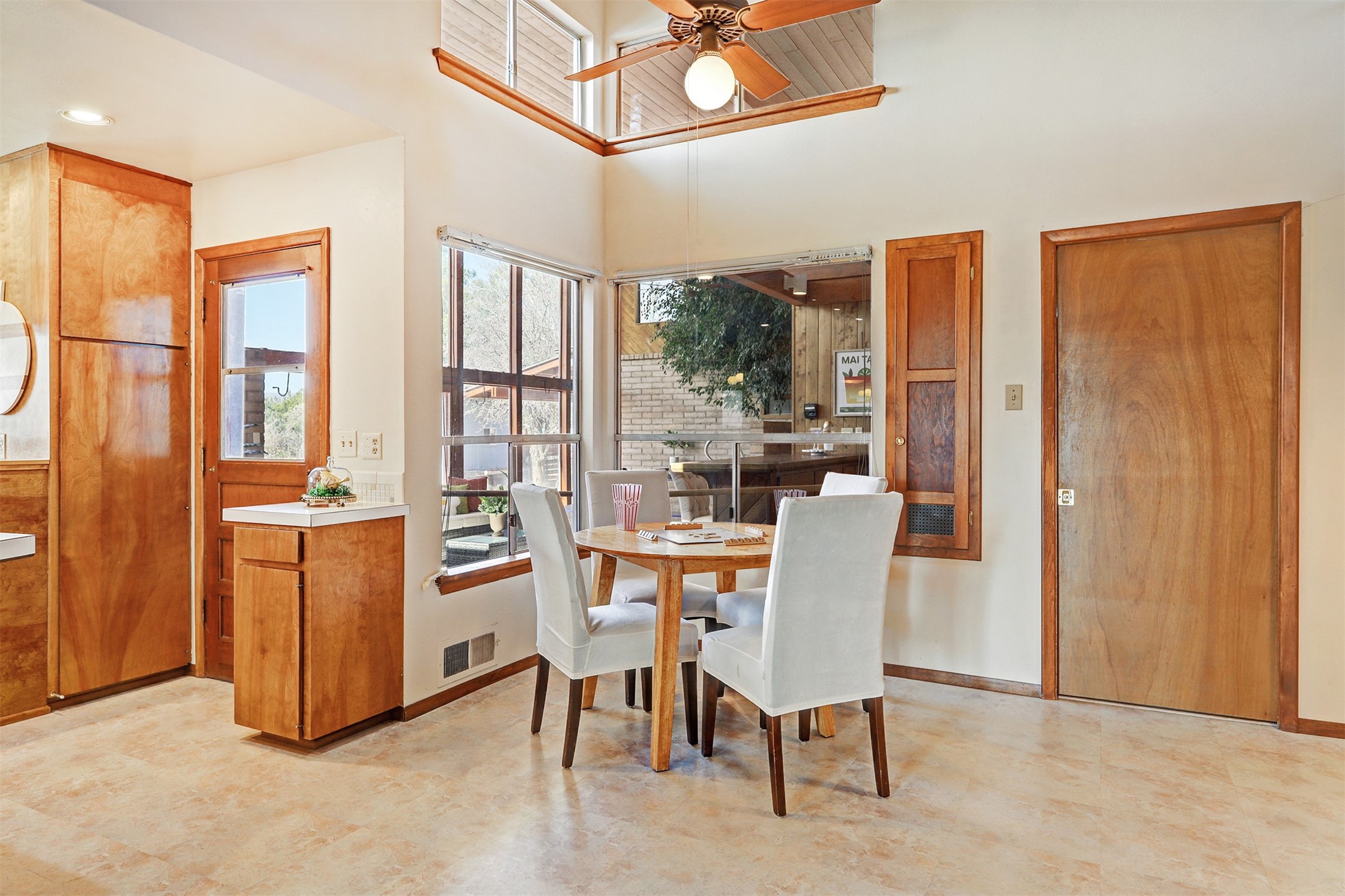 *Impressive Barranca Mesa Home on a Spacious .75-Acre Corner Lot* Welcome to this stunning single-level, 3,300 sq. ft. home, perfectly positioned on a .75-acre corner lot that backs to Bayo Canyon. With an expansive setting, the backyard feels as if it never ends. This residence offers abundant natural light, generous living spaces, and a layout designed for both comfort and functionality. Step into the grand foyer, where large picture windows fill the home with sunlight. The great room boasts floor-to-ceiling windows, a wood-burning fireplace, and a cozy reading nook--the perfect place to relax in the afternoon sun. Enjoy meals in the formal dining room or the inviting eat-in kitchen. Enjoy entertaining in the spacious sunroom, featuring charming redbrick floors, a wet bar, and ample room for a pool or other game tables. The west wing of the home features three well-appointed bedrooms, while the east wing is dedicated to the primary suite--a private retreat with its own fireplace, renovated en-suite bathroom, walk-in closet, and direct access to an outdoor patio. Outside, the front yard is beautifully maintained with a sprinkler system and has been cared for by Green Lawn for several years. The private backyard oasis provides ample space for gardening, play, and outdoor gatherings. Additional highlights include a workshop with front and back access, and a heated two-car garage. You'll love the prime location, the ease of single-level living, and the lush landscaping. Don't miss this incredible opportunity to own a home on Barranca Mesa. Schedule your private showing today!