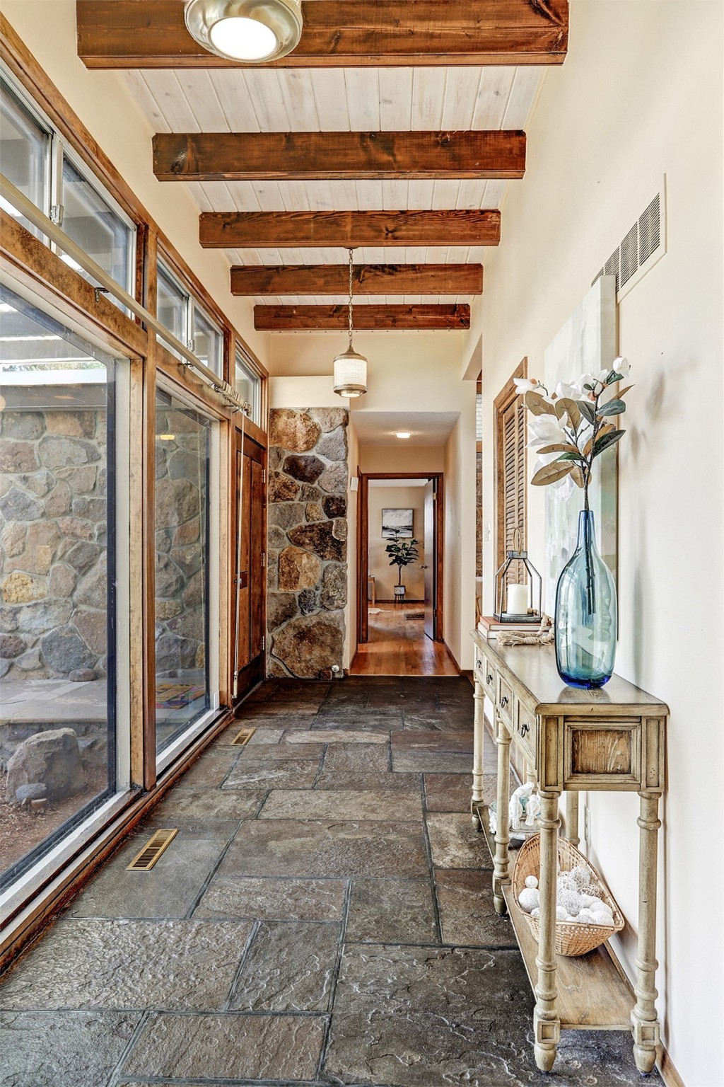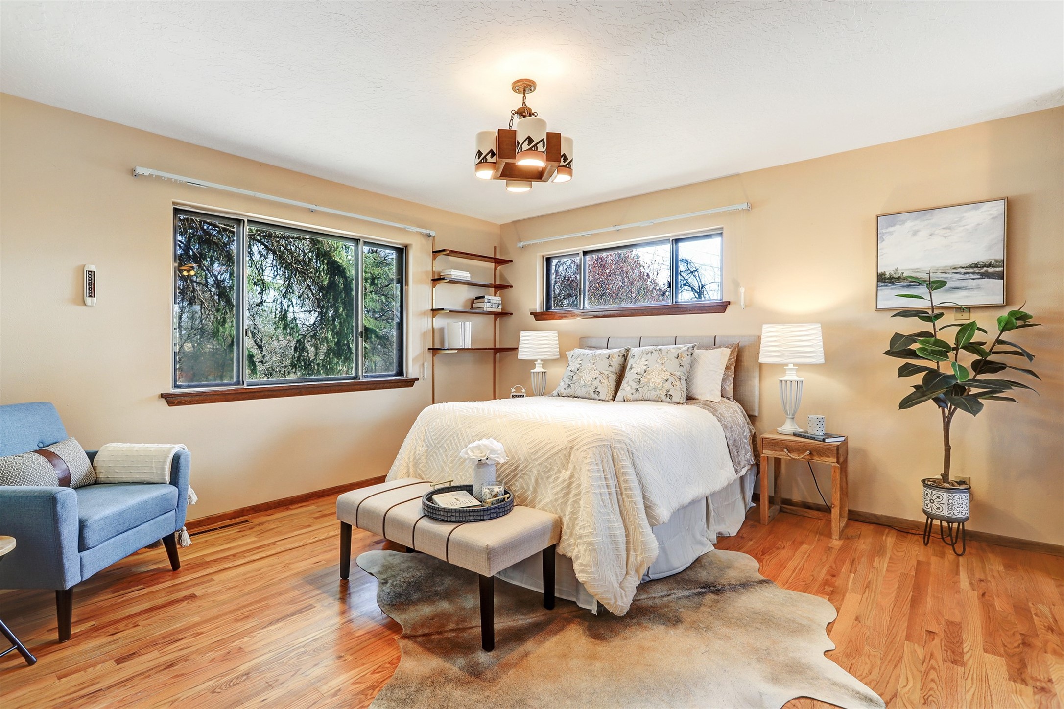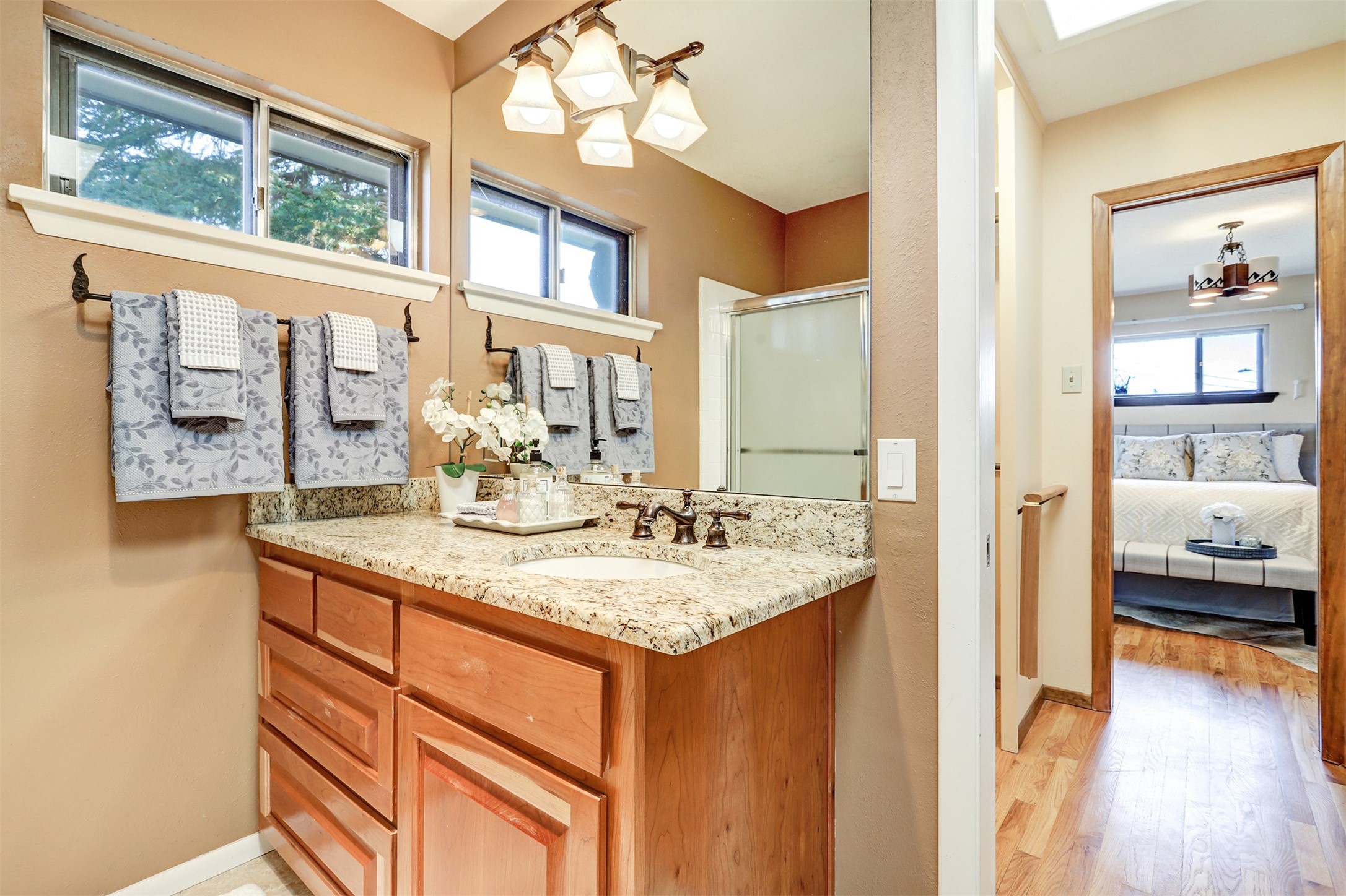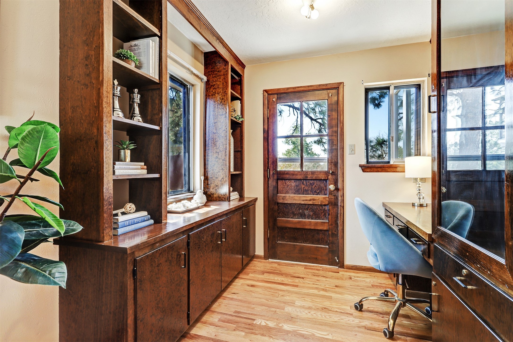 *Impressive Barranca Mesa Home on a Spacious .75-Acre Corner Lot* Welcome to this stunning single-level, 3,300 sq. ft. home, perfectly positioned on a .75-acre corner lot that backs to Bayo Canyon. With an expansive setting, the backyard feels as if it never ends. This residence offers abundant natural light, generous living spaces, and a layout designed for both comfort and functionality. Step into the grand foyer, where large picture windows fill the home with sunlight. The great room boasts floor-to-ceiling windows, a wood-burning fireplace, and a cozy reading nook--the perfect place to relax in the afternoon sun. Enjoy meals in the formal dining room or the inviting eat-in kitchen. Enjoy entertaining in the spacious sunroom, featuring charming redbrick floors, a wet bar, and ample room for a pool or other game tables. The west wing of the home features three well-appointed bedrooms, while the east wing is dedicated to the primary suite--a private retreat with its own fireplace, renovated en-suite bathroom, walk-in closet, and direct access to an outdoor patio. Outside, the front yard is beautifully maintained with a sprinkler system and has been cared for by Green Lawn for several years. The private backyard oasis provides ample space for gardening, play, and outdoor gatherings. Additional highlights include a workshop with front and back access, and a heated two-car garage. You'll love the prime location, the ease of single-level living, and the lush landscaping. Don't miss this incredible opportunity to own a home on Barranca Mesa. Schedule your private showing today!