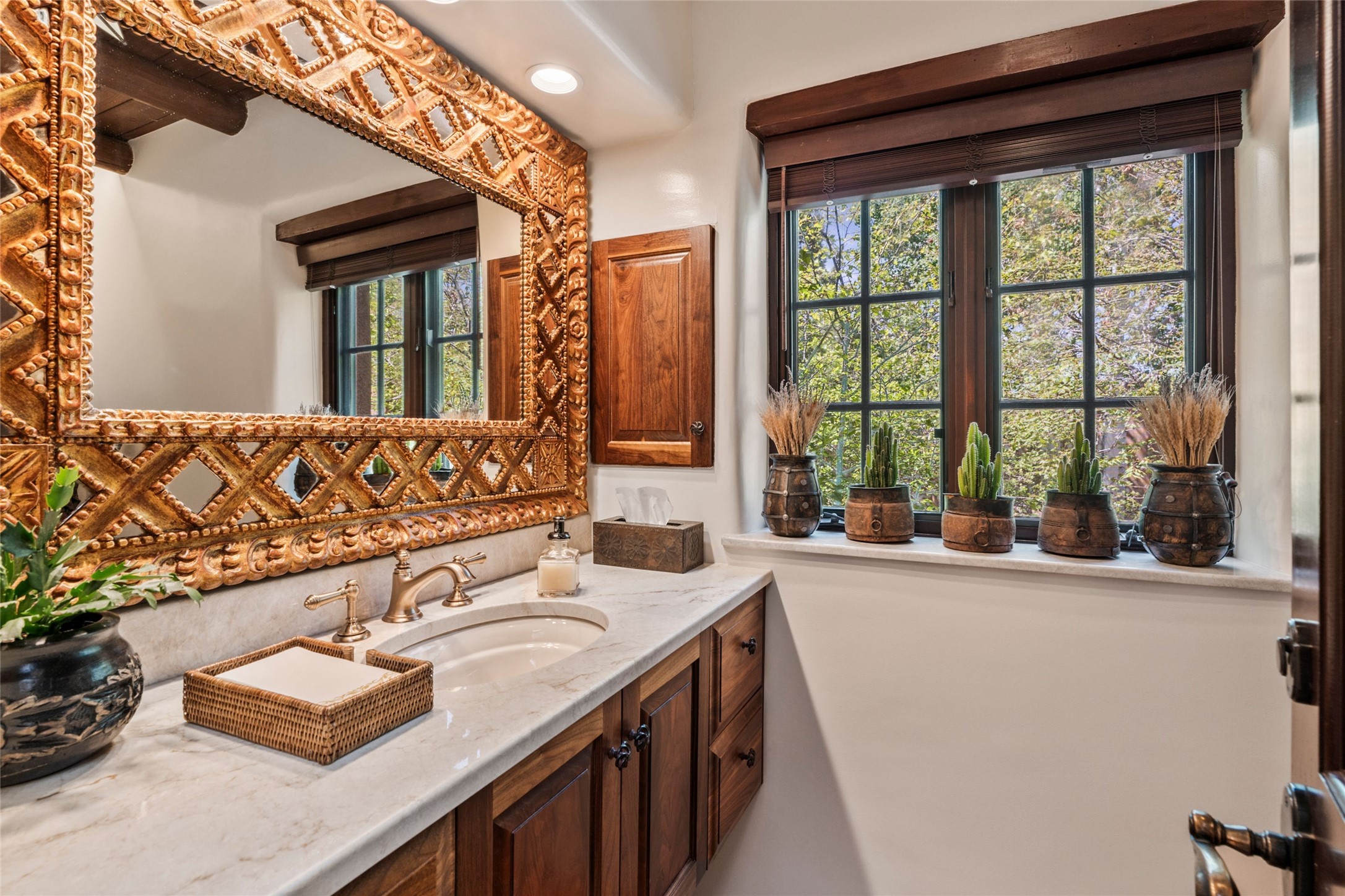 The elegant entry courtyard and portal set an appropriate tone for this impressive property. Privately hidden behind a gated wall is an impeccably maintained home, surrounded by mature trees and multiple courtyards. In addition to the main residence is a 1 bedroom casita. The main house is spacious , gracious and full of authentic Southwest details: vintage Saltillo floors, French doors, vigas, hand-carved and painted beams and woodwork, nichos, bancos and fireplaces. The primary bedroom is expansive and private, and opens to its own patio with hot tub, fireplace, and views.There are 2 additional bedrooms in the main house, plus many extras, including: a large office, a wet bar, a media/library room, a roof top deck and a generator that services the entire house. Plus ample parking (for up to 10 cars) and a 2 car garage are amenities not often found in this coveted Eastside neighborhood. And finally, the LOCATION - not to be missed!!!