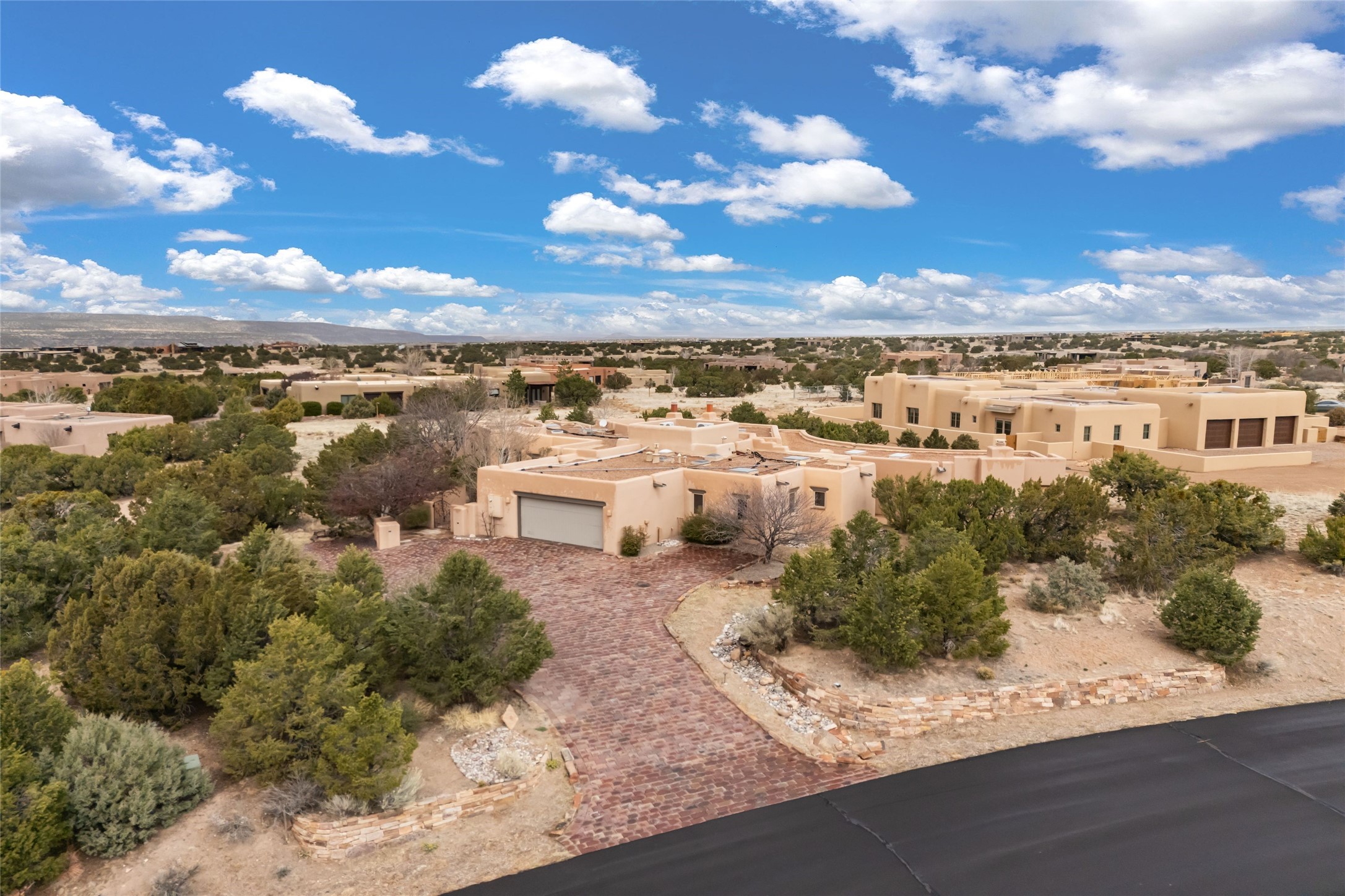 Welcome home to timeless elegance and a space that is as beautiful and functional on the inside as it is on the outside. Ideal living is captured with an open, recently updated kitchen which includes Wolf and Sub Zero appliances along with a charming beverage bar that overlooks the serene front courtyard, all enhanced with stylish Taj Majal quartzsite counters. Classic Saltillo tile, tall ceilings and rich wood accents tastefully adorn this peaceful space. True Santa Fe living is captured in the expansive rear portal with a full outdoor kitchen, Infratech heaters, fireplace and expert lighting. Between the large versatile space inside and the fabulous kitchen outside; this is the place to entertain! Entertainers come and see! Retire inside to an accommodating primary suite complete with an office, large bathroom and closet and charming outdoor space. Optimal separation of bedrooms, updated bathrooms, mini splits throughout, heated stone driveway, tasteful landscape with ample flagstone and meticulous maintenance combine to create a space which satisfies all the creature comforts. This gem is located a half mile from The Club in Las Campanas' popular Park Estates. Come and see!