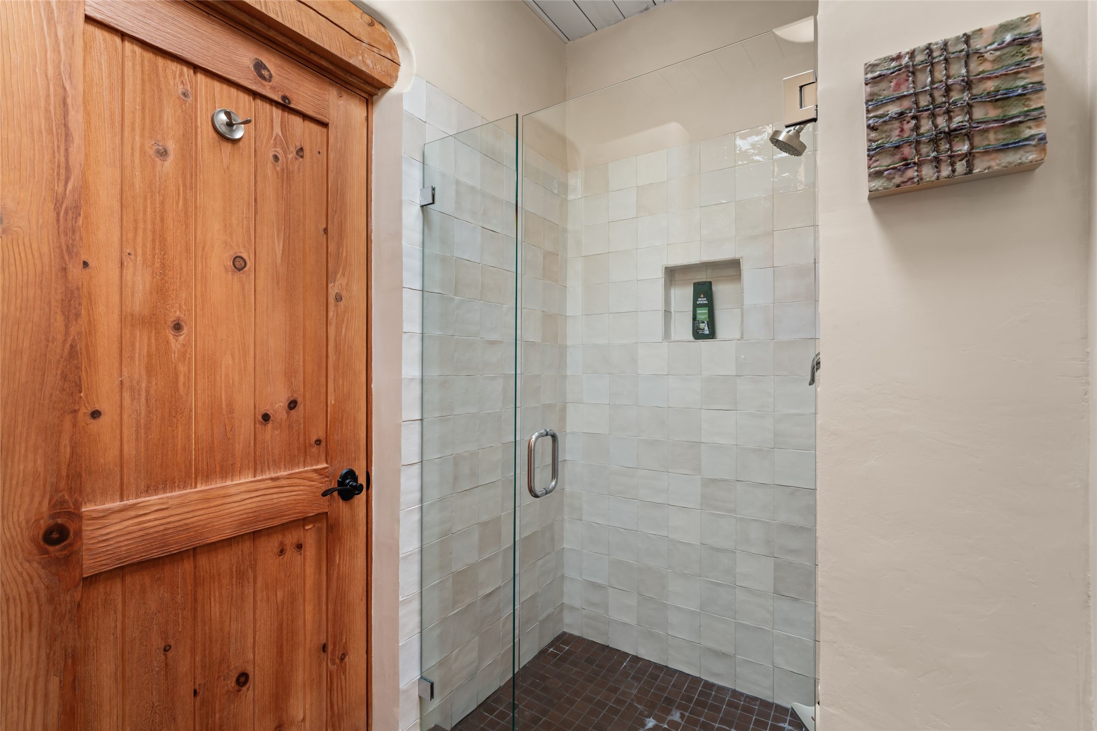 Welcome home to timeless elegance and a space that is as beautiful and functional on the inside as it is on the outside. Ideal living is captured with an open, recently updated kitchen which includes Wolf and Sub Zero appliances along with a charming beverage bar that overlooks the serene front courtyard, all enhanced with stylish Taj Majal quartzsite counters. Classic Saltillo tile, tall ceilings and rich wood accents tastefully adorn this peaceful space. True Santa Fe living is captured in the expansive rear portal with a full outdoor kitchen, Infratech heaters, fireplace and expert lighting. Between the large versatile space inside and the fabulous kitchen outside; this is the place to entertain! Entertainers come and see! Retire inside to an accommodating primary suite complete with an office, large bathroom and closet and charming outdoor space. Optimal separation of bedrooms, updated bathrooms, mini splits throughout, heated stone driveway, tasteful landscape with ample flagstone and meticulous maintenance combine to create a space which satisfies all the creature comforts. This gem is located a half mile from The Club in Las Campanas' popular Park Estates. Come and see!