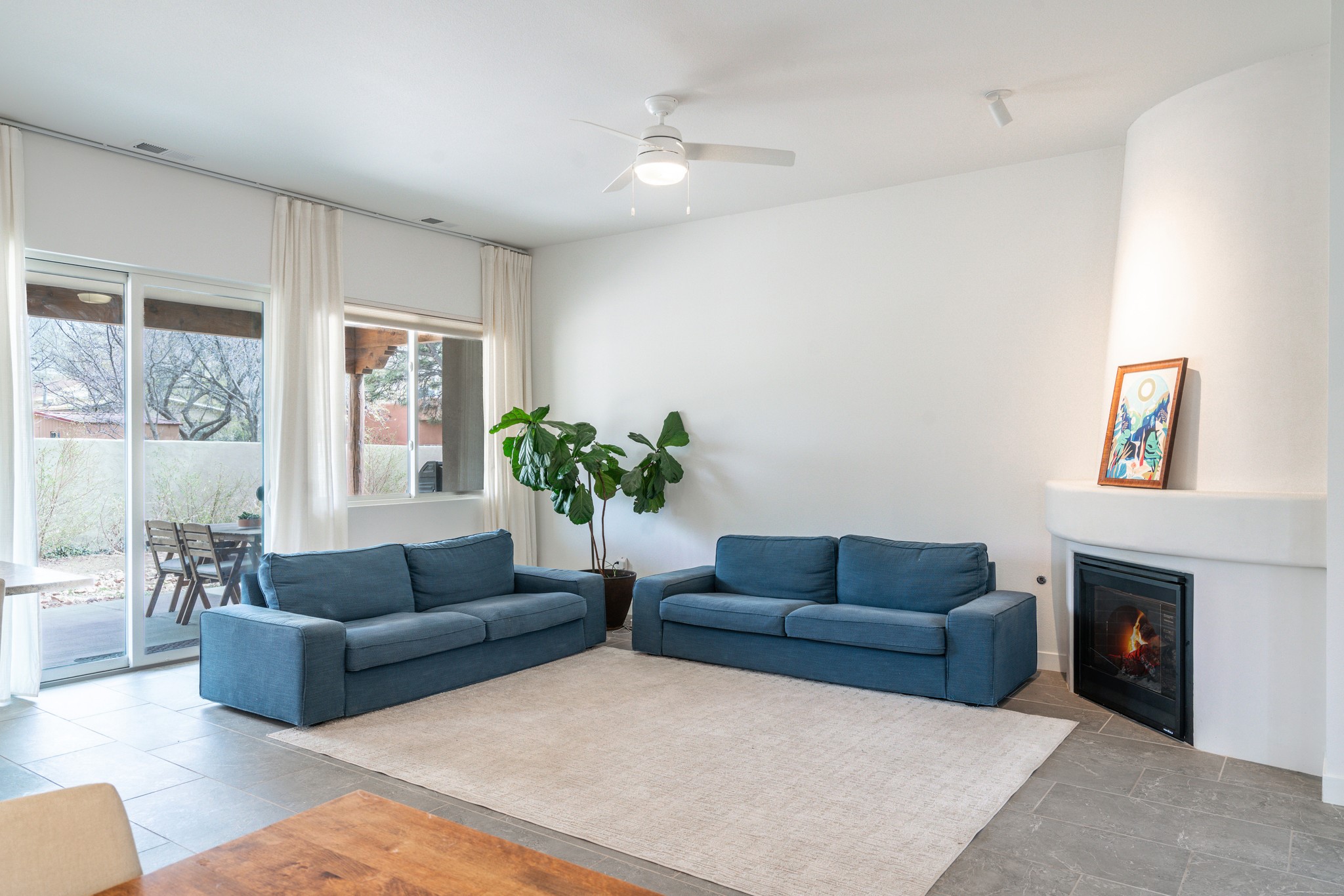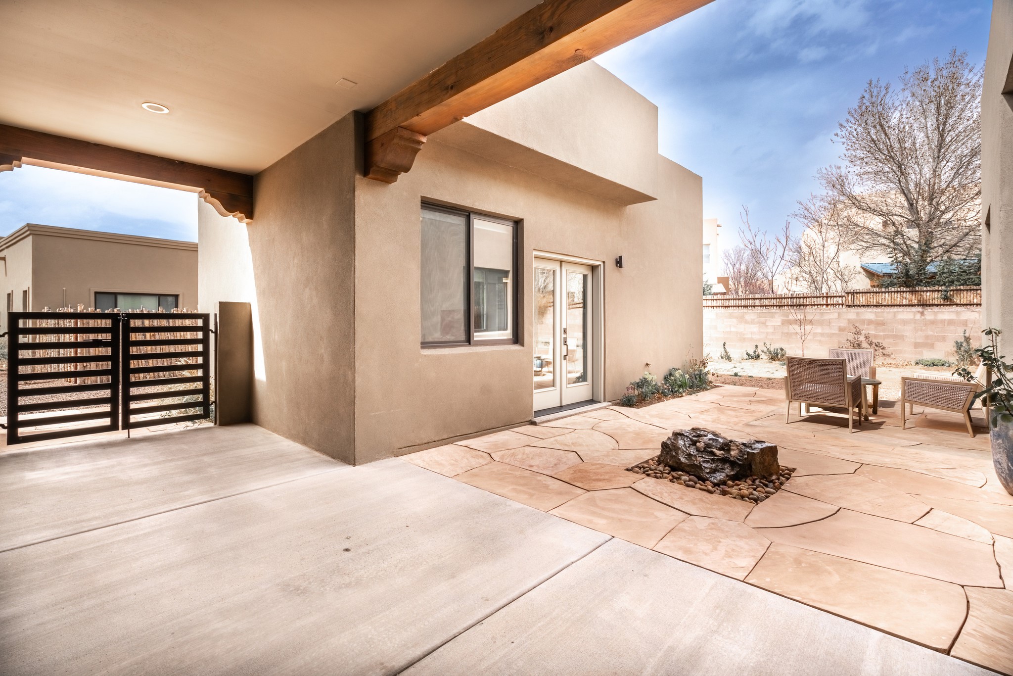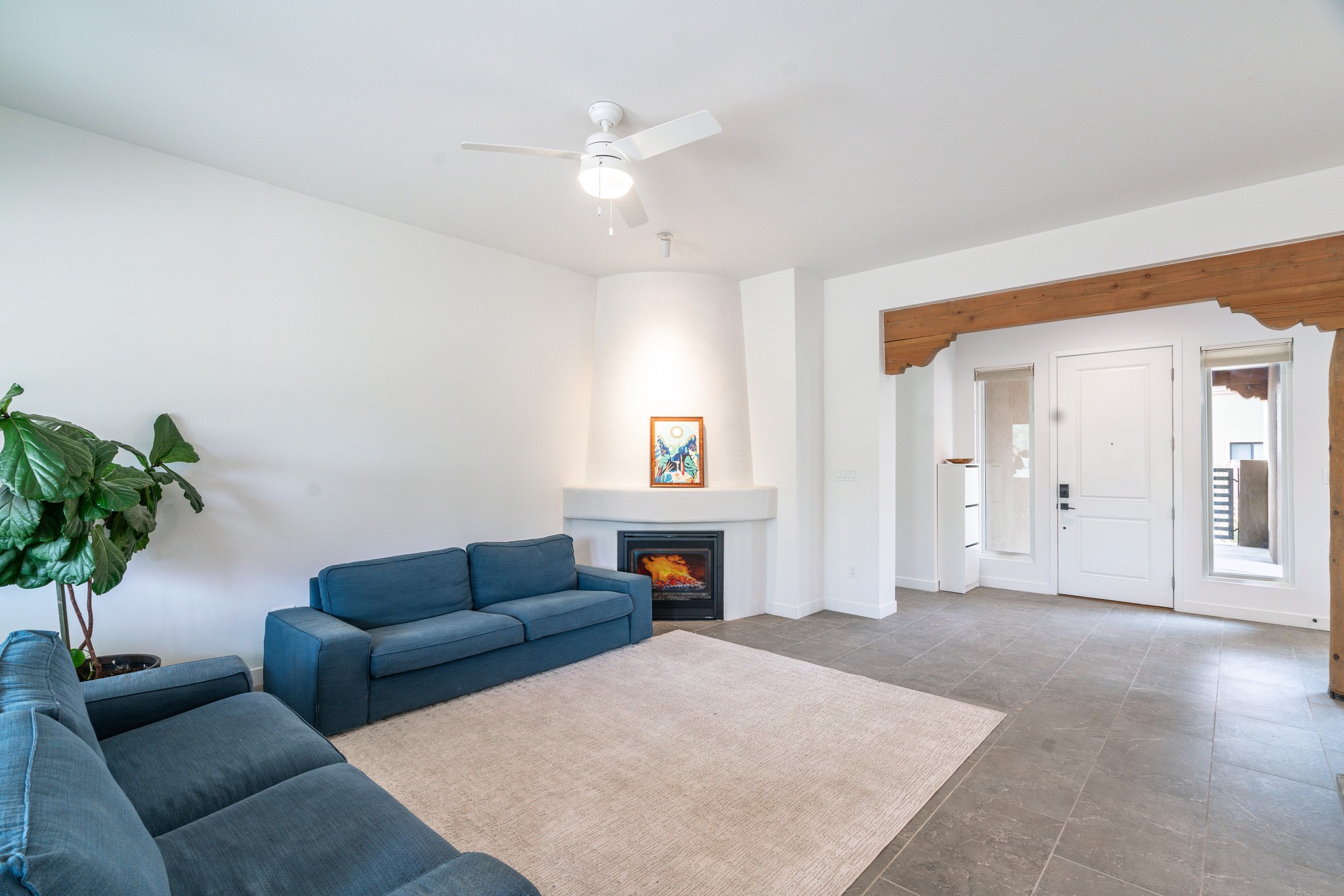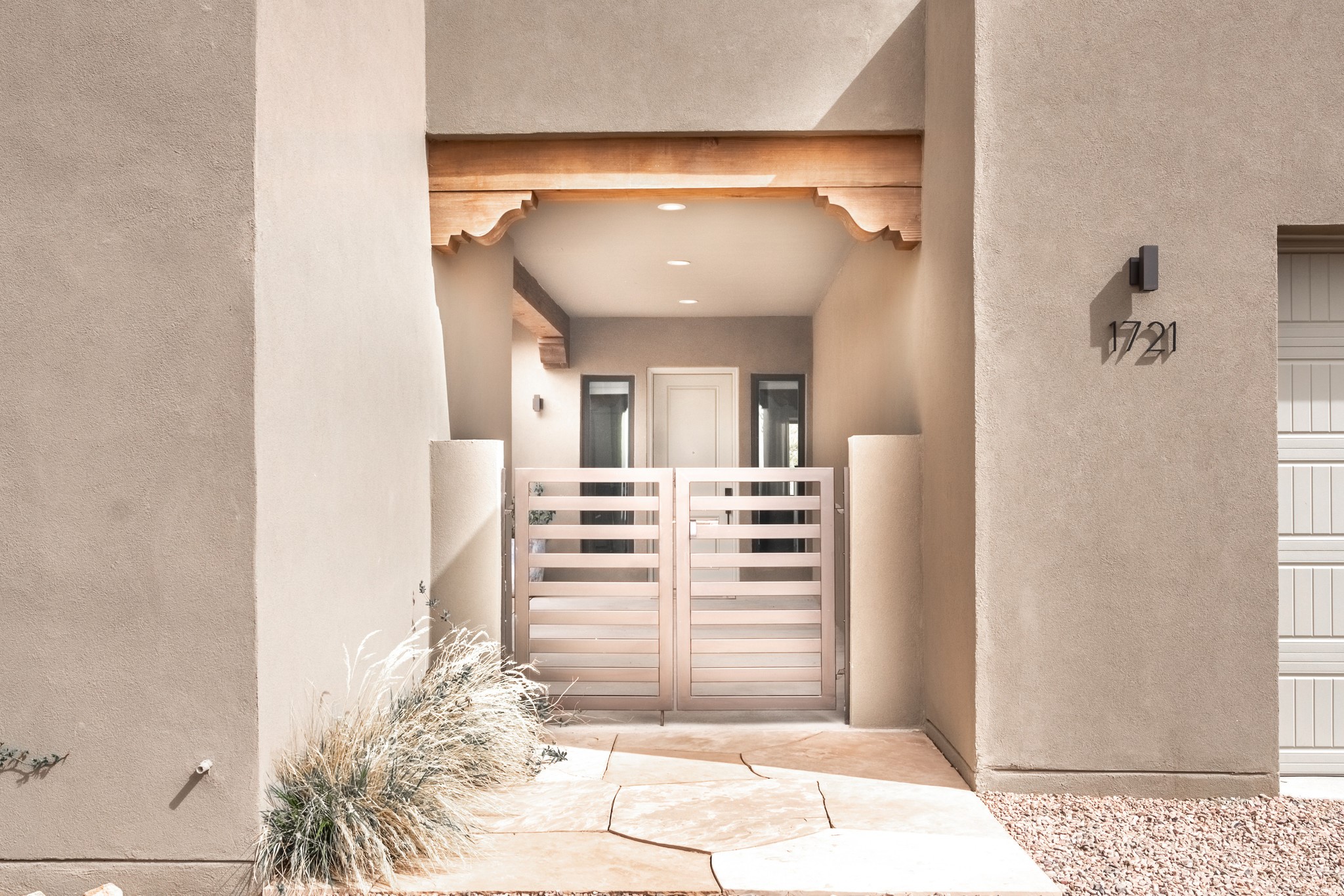 Priced to sell! 1721 Callejon Melinda is a beautiful only 2-years old home, with 3 bedrooms and 2 bathrooms main home, and a lovely CASITA. Built in 2023 by the renowned builder Arete Homes of Santa Fe, this floor plan model is one of their best sellers, for its functionality and beauty. Featuring a spacious open floor plan with granite counter tops, gourmet kitchen, soft closing drawers, walk in pantry and a gas fireplace an much more. The casita has a spacious bathroom, walk in closet, utility sink, microwave and mini fridge. Sellers have installed beautiful engineered wood floors in all bedrooms and casita, home has NO carpet. This modern stunner also has an incredible location, minutes to downtown, parks, bike trails, groceries, restaurants, city pools and much more. All this with the advantage of being nestled at the quiet end of a a private driveway only shared with 4 homes - NO Through traffic. Natural light abounds, sleek and contemporary finishes, spacious living areas, a gourmet kitchen, elegant finishes throughout... a real deal! 1721 Callejon Melinda is pre-inspected, has a 7 year transferable roof warranty, is has an effective passive Radon system in place, on demand water heater, Air conditioning, wired for your future solar system, and NO HOA!! 1The perfect size backyard is a blank canvas, awaiting your personal touch to create the your outdoor retreat. A gorgeous natural water feature welcomes you to come enjoy the privacy of your courtyard. Let go of your worries about renovations and updates!! Enjoy tranquility and modern comfort in this TRULY MOVE-IN home.