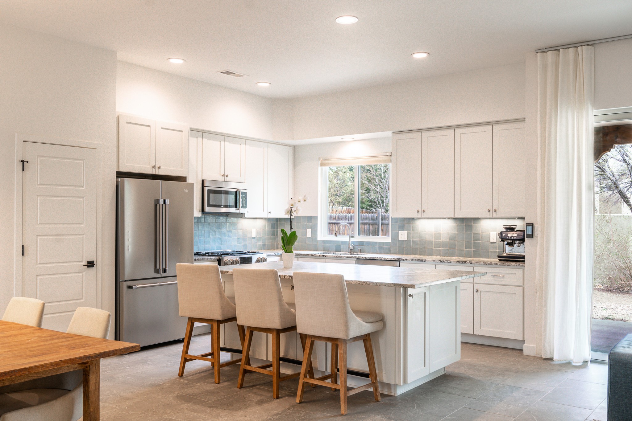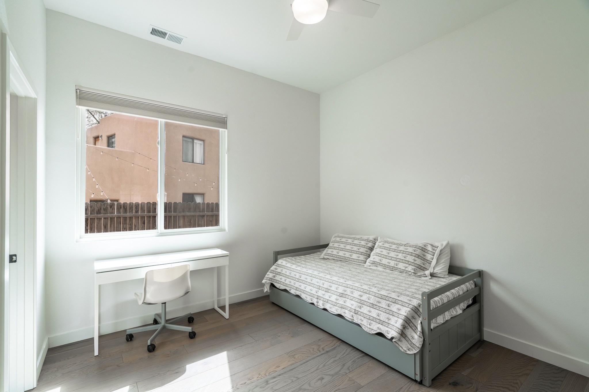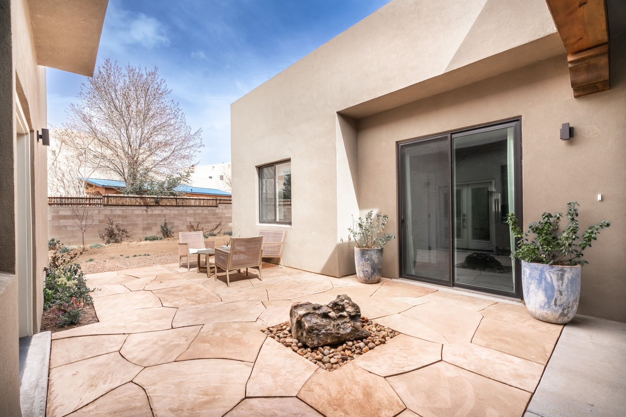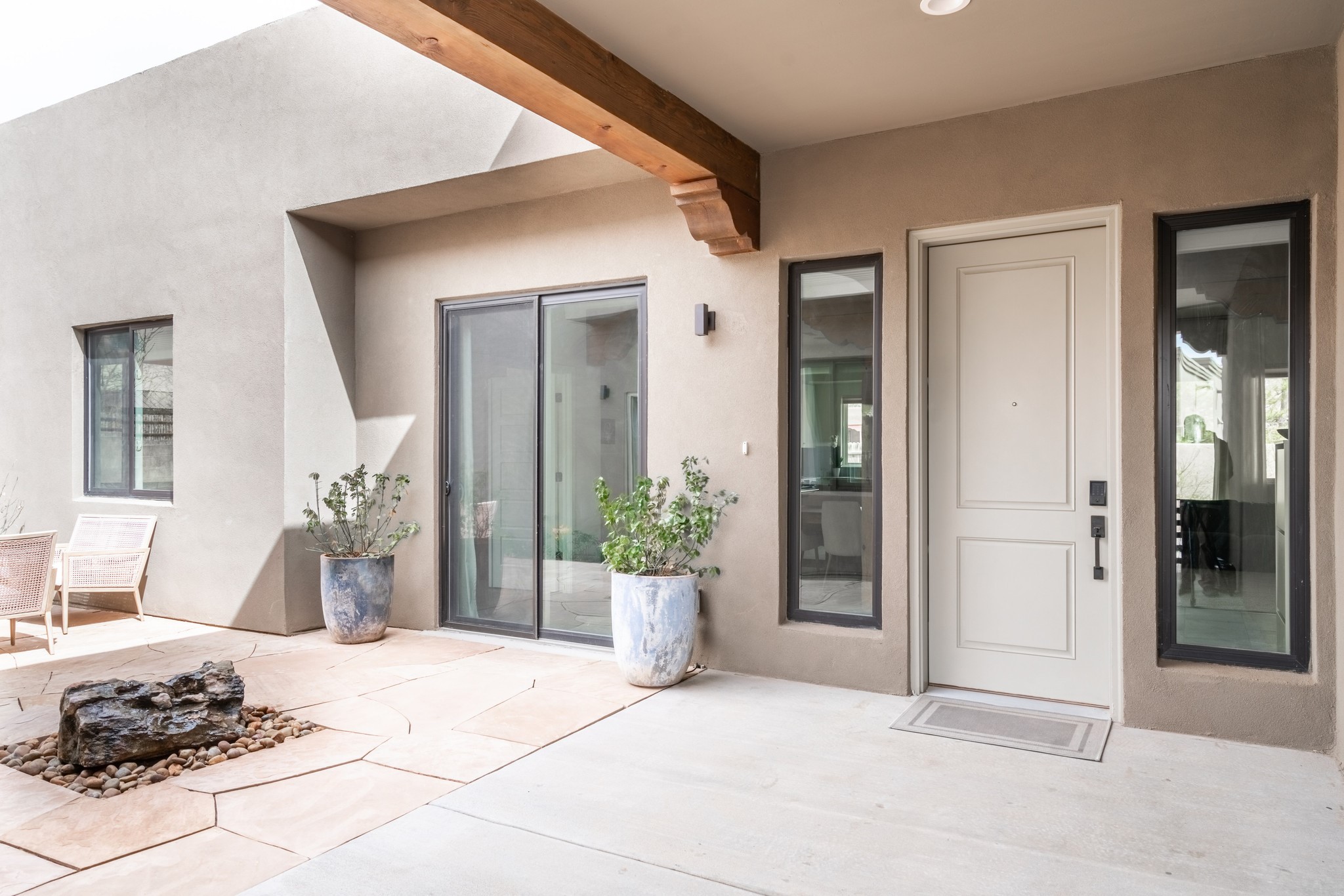 Priced to sell! 1721 Callejon Melinda is a beautiful only 2-years old home, with 3 bedrooms and 2 bathrooms main home, and a lovely CASITA. Built in 2023 by the renowned builder Arete Homes of Santa Fe, this floor plan model is one of their best sellers, for its functionality and beauty. Featuring a spacious open floor plan with granite counter tops, gourmet kitchen, soft closing drawers, walk in pantry and a gas fireplace an much more. The casita has a spacious bathroom, walk in closet, utility sink, microwave and mini fridge. Sellers have installed beautiful engineered wood floors in all bedrooms and casita, home has NO carpet. This modern stunner also has an incredible location, minutes to downtown, parks, bike trails, groceries, restaurants, city pools and much more. All this with the advantage of being nestled at the quiet end of a a private driveway only shared with 4 homes - NO Through traffic. Natural light abounds, sleek and contemporary finishes, spacious living areas, a gourmet kitchen, elegant finishes throughout... a real deal! 1721 Callejon Melinda is pre-inspected, has a 7 year transferable roof warranty, is has an effective passive Radon system in place, on demand water heater, Air conditioning, wired for your future solar system, and NO HOA!! 1The perfect size backyard is a blank canvas, awaiting your personal touch to create the your outdoor retreat. A gorgeous natural water feature welcomes you to come enjoy the privacy of your courtyard. Let go of your worries about renovations and updates!! Enjoy tranquility and modern comfort in this TRULY MOVE-IN home.
