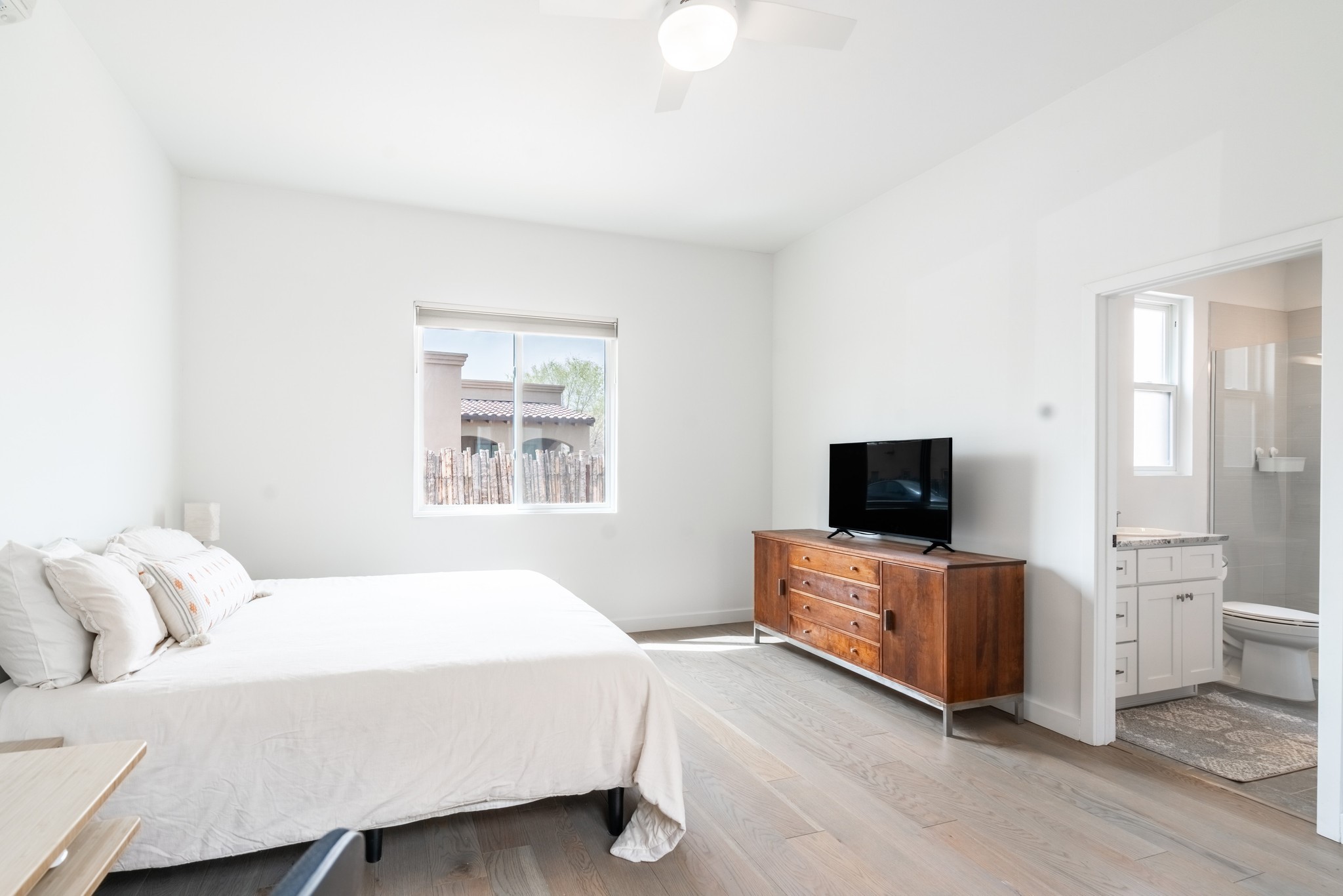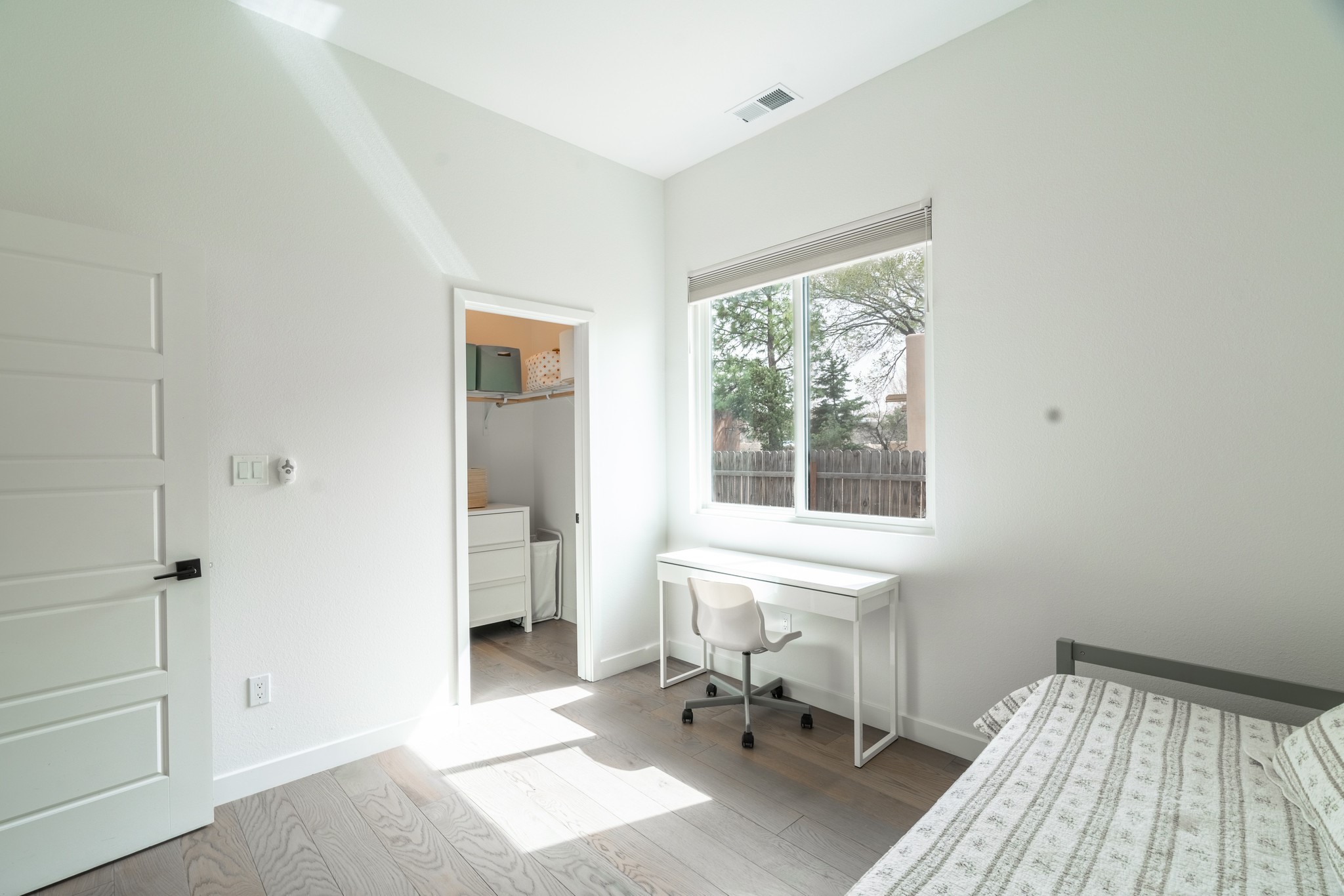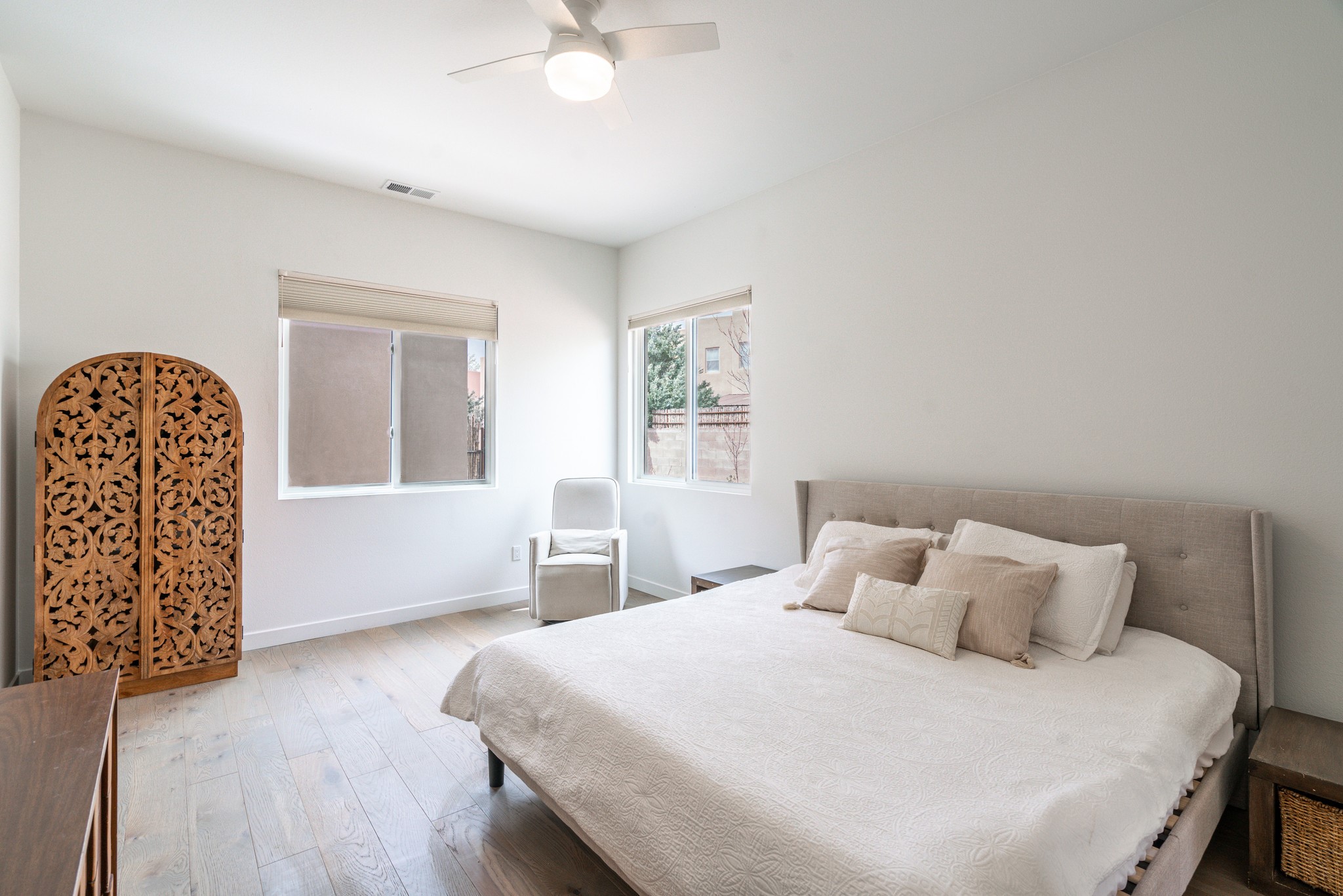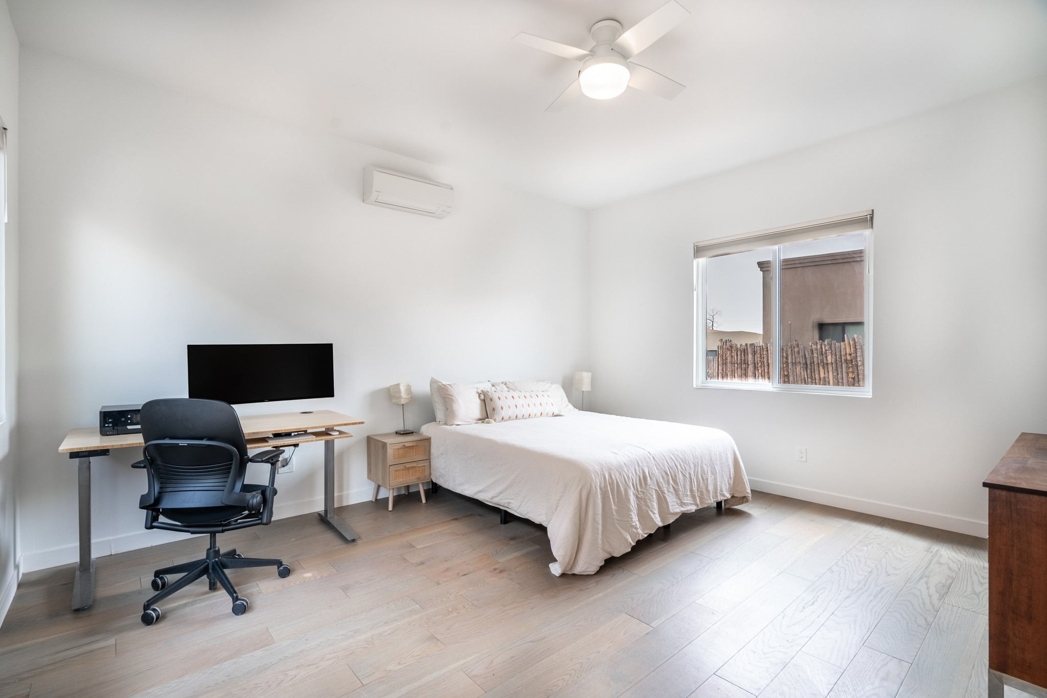 Priced to sell! 1721 Callejon Melinda is a beautiful only 2-years old home, with 3 bedrooms and 2 bathrooms main home, and a lovely CASITA. Built in 2023 by the renowned builder Arete Homes of Santa Fe, this floor plan model is one of their best sellers, for its functionality and beauty. Featuring a spacious open floor plan with granite counter tops, gourmet kitchen, soft closing drawers, walk in pantry and a gas fireplace an much more. The casita has a spacious bathroom, walk in closet, utility sink, microwave and mini fridge. Sellers have installed beautiful engineered wood floors in all bedrooms and casita, home has NO carpet. This modern stunner also has an incredible location, minutes to downtown, parks, bike trails, groceries, restaurants, city pools and much more. All this with the advantage of being nestled at the quiet end of a a private driveway only shared with 4 homes - NO Through traffic. Natural light abounds, sleek and contemporary finishes, spacious living areas, a gourmet kitchen, elegant finishes throughout... a real deal! 1721 Callejon Melinda is pre-inspected, has a 7 year transferable roof warranty, is has an effective passive Radon system in place, on demand water heater, Air conditioning, wired for your future solar system, and NO HOA!! 1The perfect size backyard is a blank canvas, awaiting your personal touch to create the your outdoor retreat. A gorgeous natural water feature welcomes you to come enjoy the privacy of your courtyard. Let go of your worries about renovations and updates!! Enjoy tranquility and modern comfort in this TRULY MOVE-IN home.