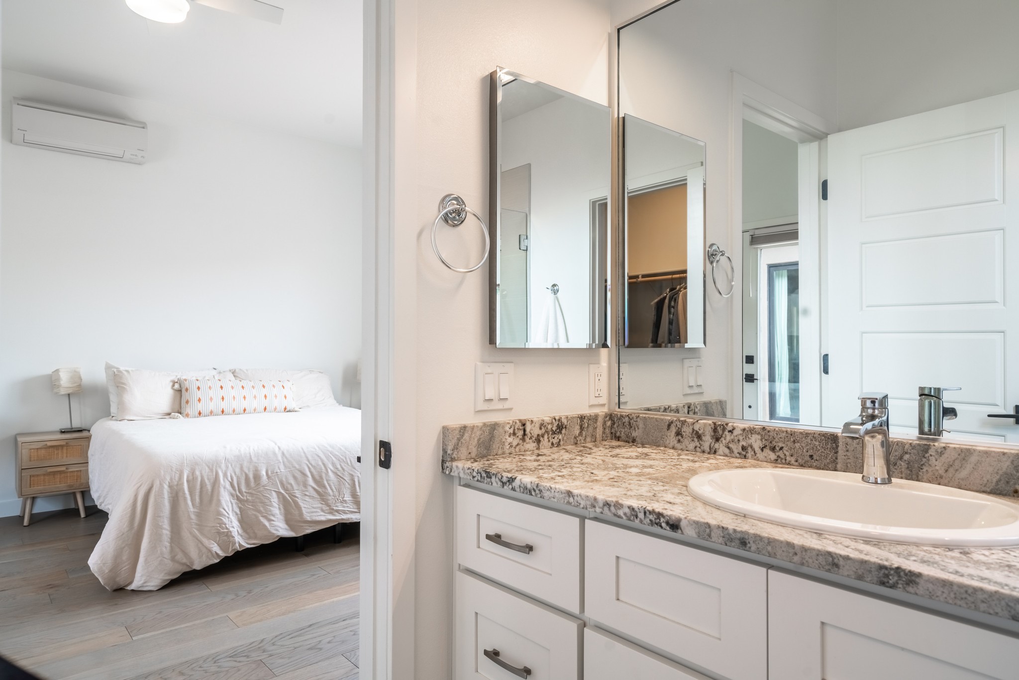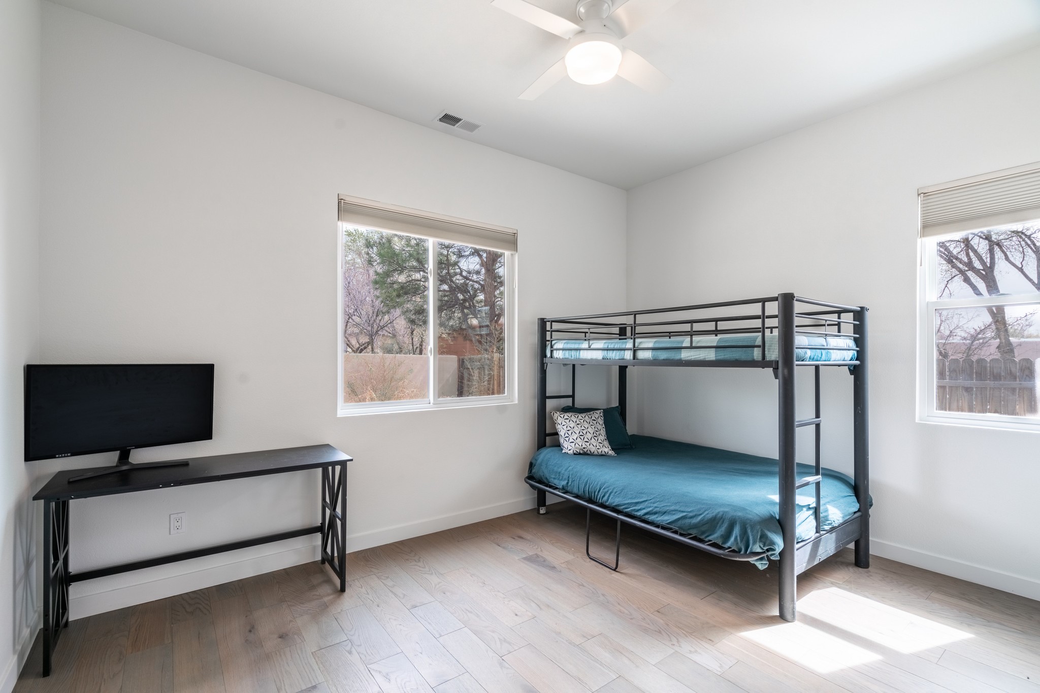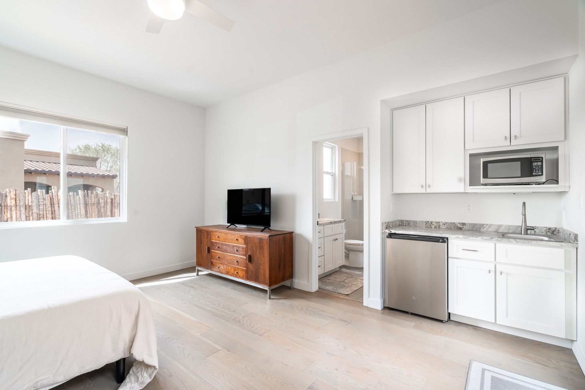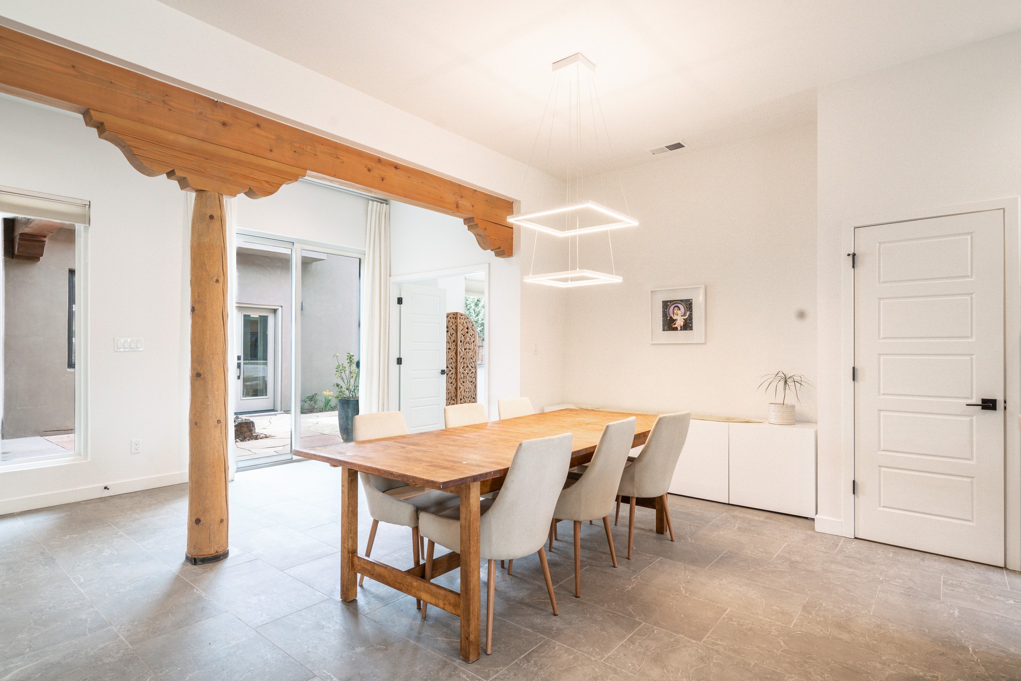 Priced to sell! 1721 Callejon Melinda is a beautiful only 2-years old home, with 3 bedrooms and 2 bathrooms main home, and a lovely CASITA. Built in 2023 by the renowned builder Arete Homes of Santa Fe, this floor plan model is one of their best sellers, for its functionality and beauty. Featuring a spacious open floor plan with granite counter tops, gourmet kitchen, soft closing drawers, walk in pantry and a gas fireplace an much more. The casita has a spacious bathroom, walk in closet, utility sink, microwave and mini fridge. Sellers have installed beautiful engineered wood floors in all bedrooms and casita, home has NO carpet. This modern stunner also has an incredible location, minutes to downtown, parks, bike trails, groceries, restaurants, city pools and much more. All this with the advantage of being nestled at the quiet end of a a private driveway only shared with 4 homes - NO Through traffic. Natural light abounds, sleek and contemporary finishes, spacious living areas, a gourmet kitchen, elegant finishes throughout... a real deal! 1721 Callejon Melinda is pre-inspected, has a 7 year transferable roof warranty, is has an effective passive Radon system in place, on demand water heater, Air conditioning, wired for your future solar system, and NO HOA!! 1The perfect size backyard is a blank canvas, awaiting your personal touch to create the your outdoor retreat. A gorgeous natural water feature welcomes you to come enjoy the privacy of your courtyard. Let go of your worries about renovations and updates!! Enjoy tranquility and modern comfort in this TRULY MOVE-IN home.