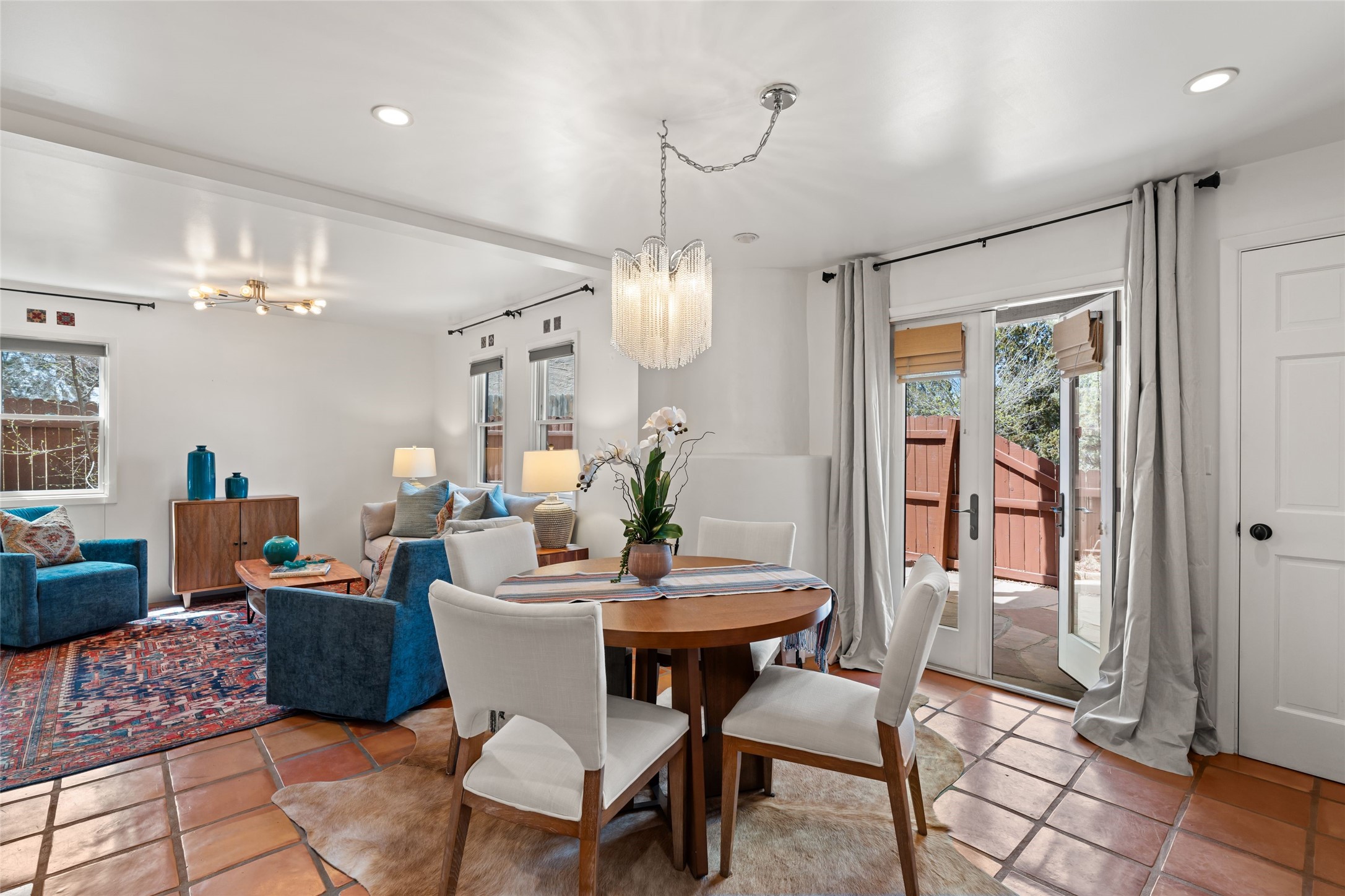BRAND NEW PRICE!!! Tucked away down a private lane, this single level condo has exceptional CHARM! Beautifully updated and tastefully remodeled this light filled condo offers 1432 sf of living space in a flexible floor plan. It is pristine and was architecturally re-designed combining two units to create a one clever floor plan now offering a 3 bedroom, 3 bathroom condo. In addition it offers 2 spacious fenced courtyards and is an end unit situated on a gated 13.5 ac property. The community property offers a pool with ramada & BBQ, walking trails with foot bridges, vast Pinon groves, plus 2 large ponds filled with KOI and fountains. This is a MUST SEE condo!!The main living area offers dining room ensconced with a crystal chandelier and wood burning Kiva flowing into the living room. The kitchen appointed with custom cabinets, designer tile, stainless appliances, & the sink outfitted with a Hans Grohe faucet. Entire space opens to a west facing dining patio through charming French doors ....The large owner's suite is a retreat featuring wood floors, wood burning Kiva, walk-in closet, a beautifully appointed en-suite with Talavera sink, luxury jetted soaking tub, & separate shower with river rock floor. More French doors lead to 2nd fenced courtyard overlooking Pinion groves. The 2nd bed also includes en-suite, and the 3rd bed could also be perfect for office or den.The designated laundry area with washer/dryer has custom wood cabinets and counters for folding convenience. The Saltillo tiles & wood floors throughout offer radiant heat and efficient duct refrigerated air for the warmer seasons. If closet and storage space is a priority, well then this condo is for you! Aside from the 2 walk-in closets there are another 2 semi walk-in closets for storage. This is a rarity among condos!This is a one of a kind end unit that lives like a home with windows on all three sides, plus 4 designated parking spaces right next to the unit for your convenience, and excellent proximity to shopping centers and Ragle Park across the street.* Seller willing to pay 6 months of HOA dues.*Excellent opportunity to own large turn key condo that is priced to sell!