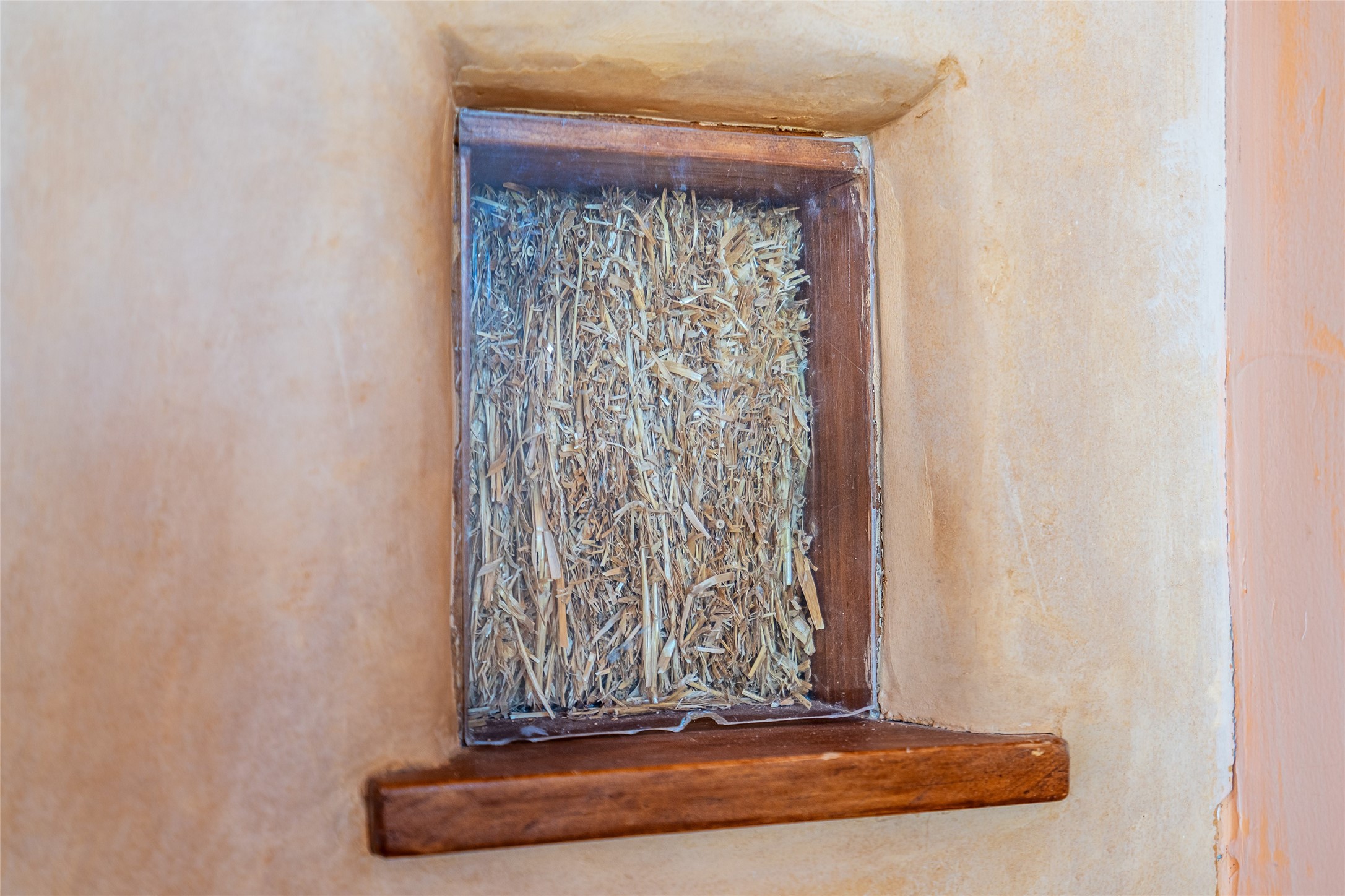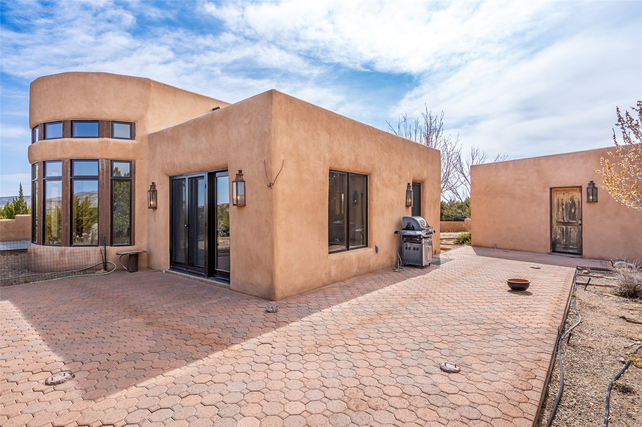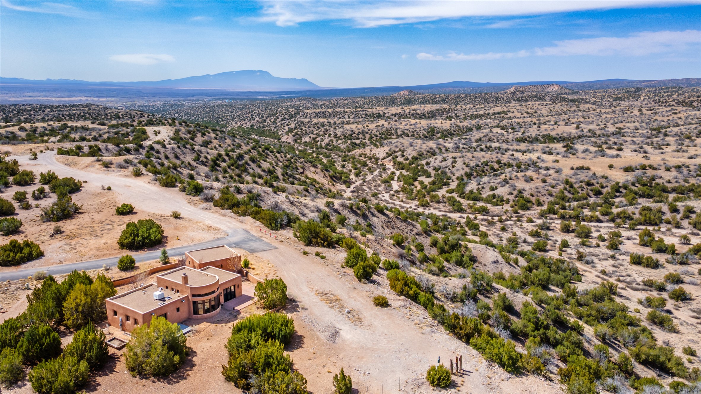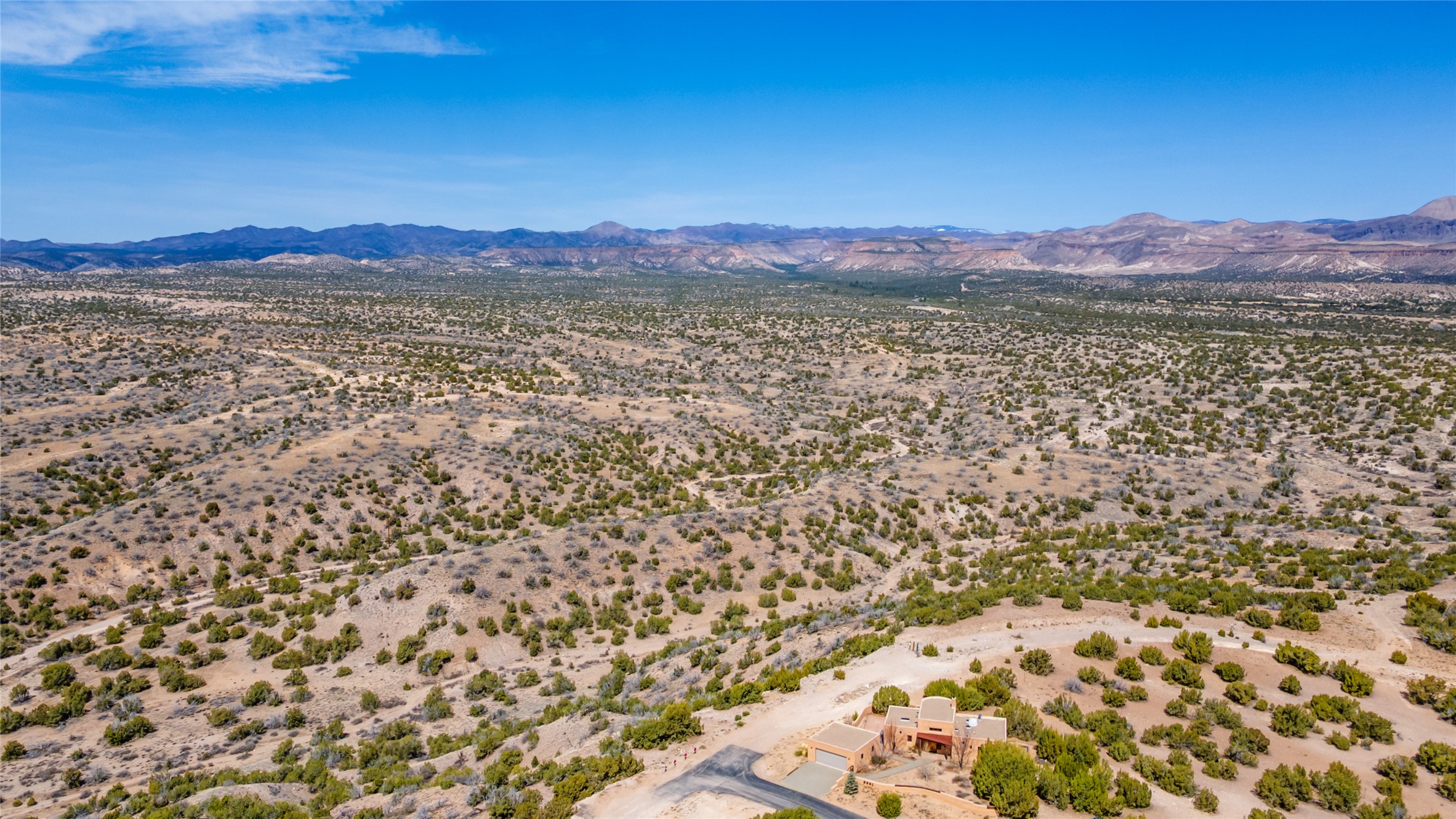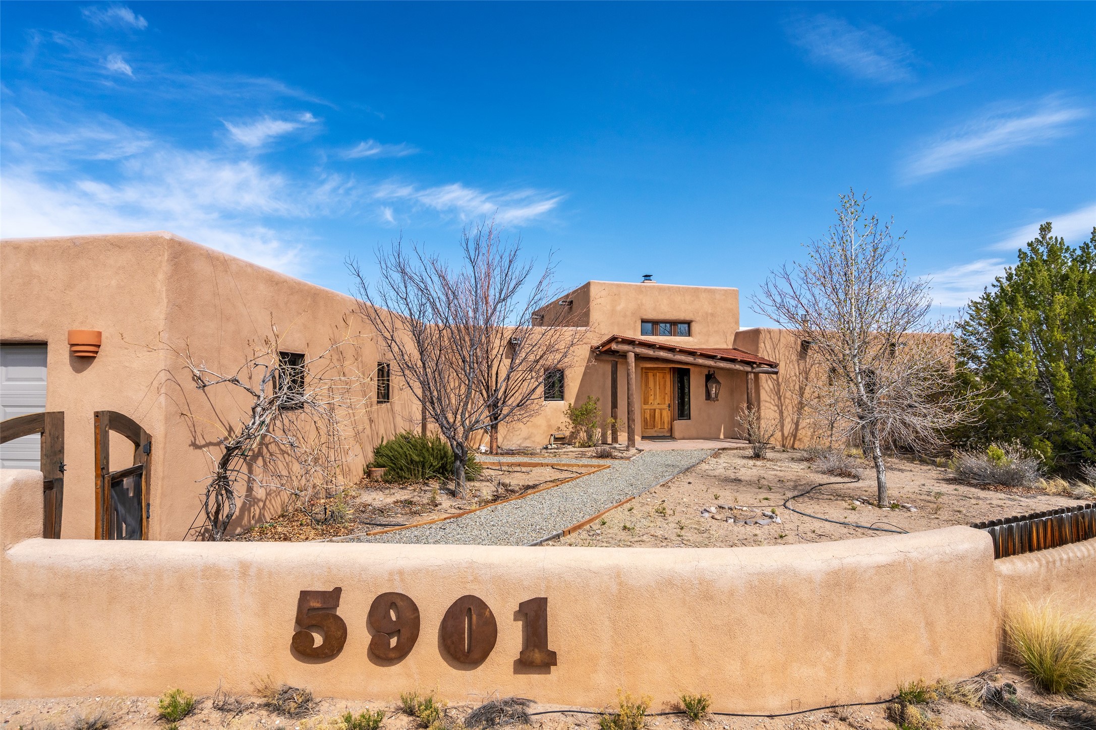 Experience timeless Santa Fe style in this stunning custom-built straw bale home wheresustainability meets classic Southwestern charm. Perched to capture sweepingpanoramic views from inside and the brick patio along the side by the kitchen.Step inside to find traditional Santa Fe details throughout--exposed wood beams,vigas, and latillas that create a warm, rustic ambiance. The spacious living room is theheart of the home, featuring floor-to-ceiling windows that flood the space with naturallight and perfectly frame the surrounding landscape. A kiva fireplace adds a touch ofcomfort and tradition. The kitchen boasts custom cabinets, double oven, pantry andsmall desk area, the counters are beautiful copper. Floors throughout are-stainedconcrete with in-floor heating. There is a swamp cooler for summer. Bathrooms alsohave custom cabinetry and sinks, both with walk-in showers.Whether you are enjoying the stunning sunsets from the patio or simply soaking in theserene beauty of the high desert on the local hiking trails, this home is a rare blend ofcraftsmanship, sustainability, and Southwestern style.