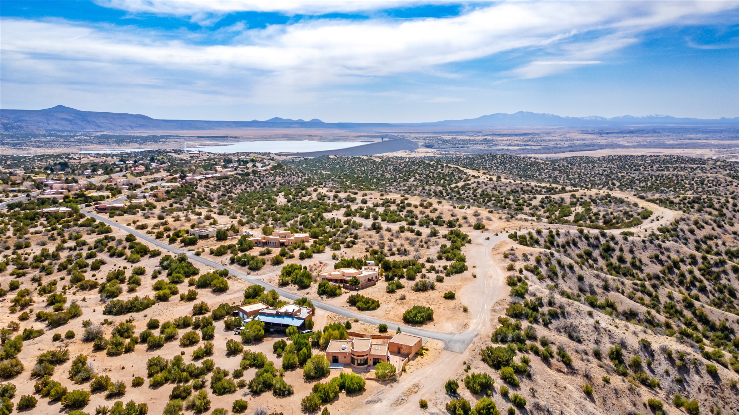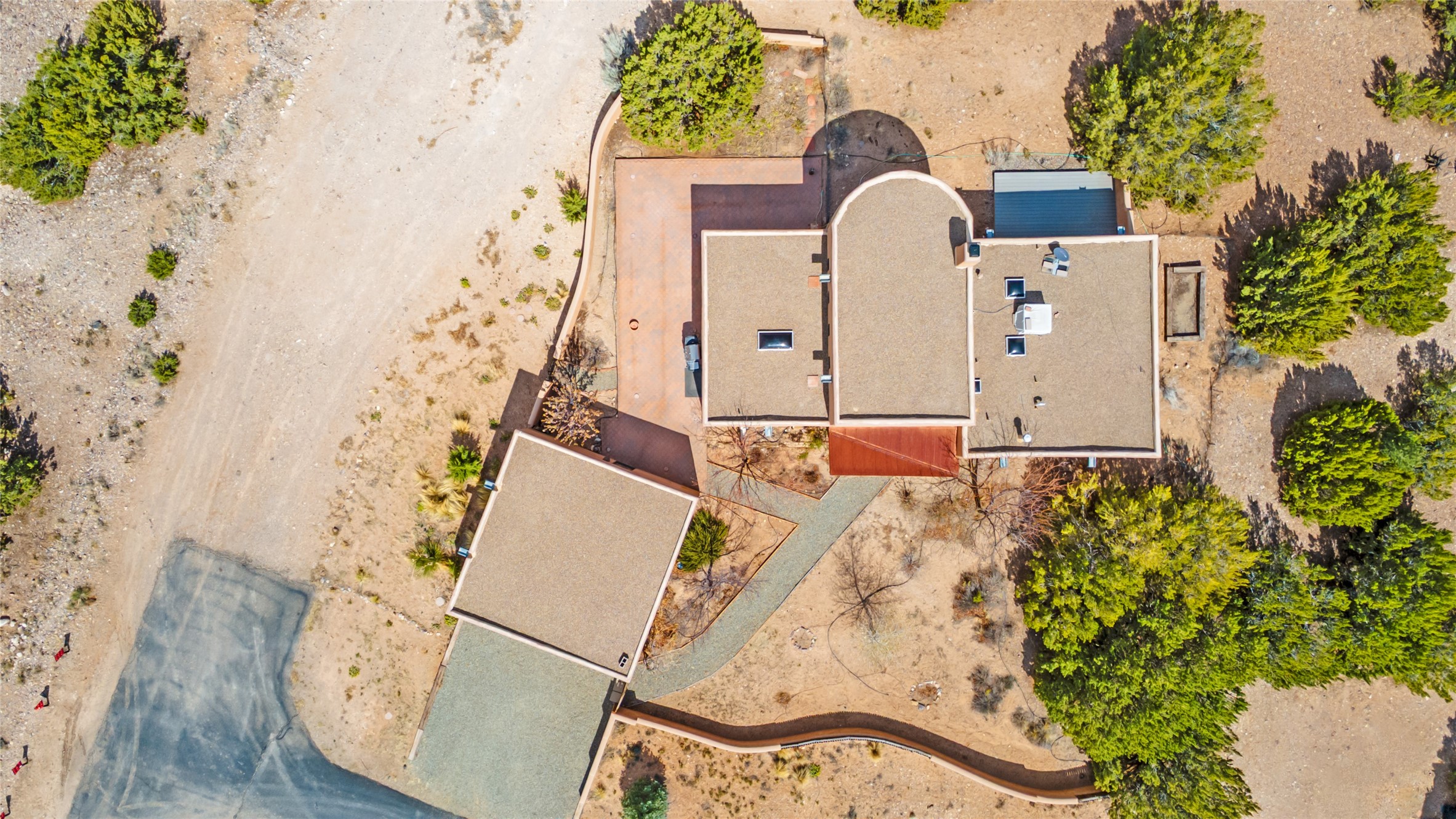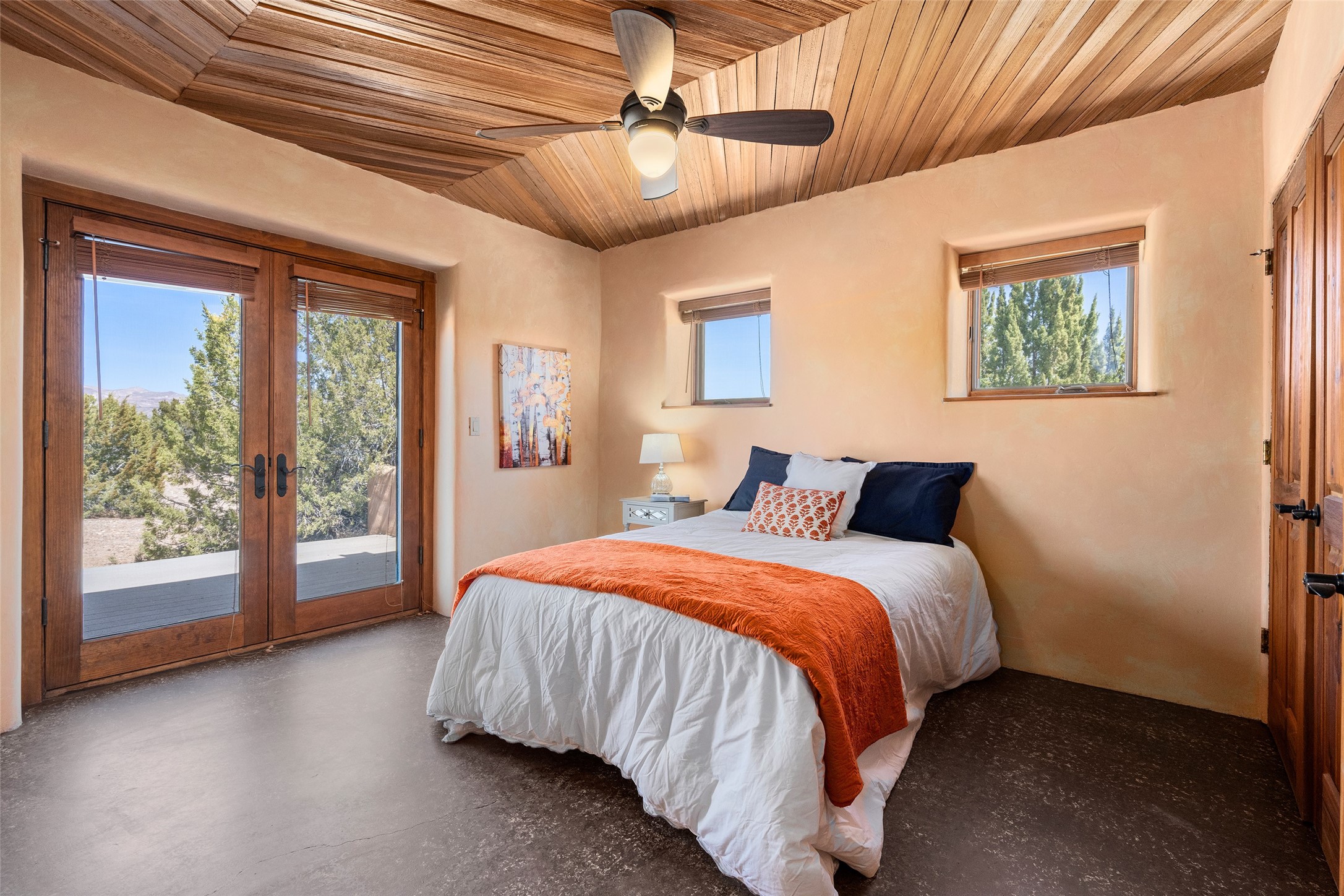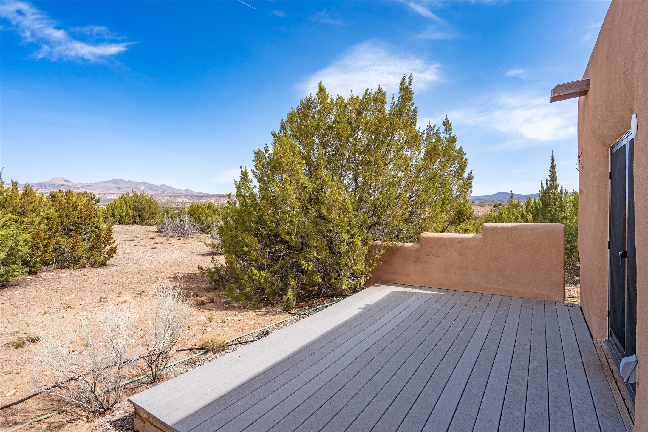 Experience timeless Santa Fe style in this stunning custom-built straw bale home wheresustainability meets classic Southwestern charm. Perched to capture sweepingpanoramic views from inside and the brick patio along the side by the kitchen.Step inside to find traditional Santa Fe details throughout--exposed wood beams,vigas, and latillas that create a warm, rustic ambiance. The spacious living room is theheart of the home, featuring floor-to-ceiling windows that flood the space with naturallight and perfectly frame the surrounding landscape. A kiva fireplace adds a touch ofcomfort and tradition. The kitchen boasts custom cabinets, double oven, pantry andsmall desk area, the counters are beautiful copper. Floors throughout are-stainedconcrete with in-floor heating. There is a swamp cooler for summer. Bathrooms alsohave custom cabinetry and sinks, both with walk-in showers.Whether you are enjoying the stunning sunsets from the patio or simply soaking in theserene beauty of the high desert on the local hiking trails, this home is a rare blend ofcraftsmanship, sustainability, and Southwestern style.