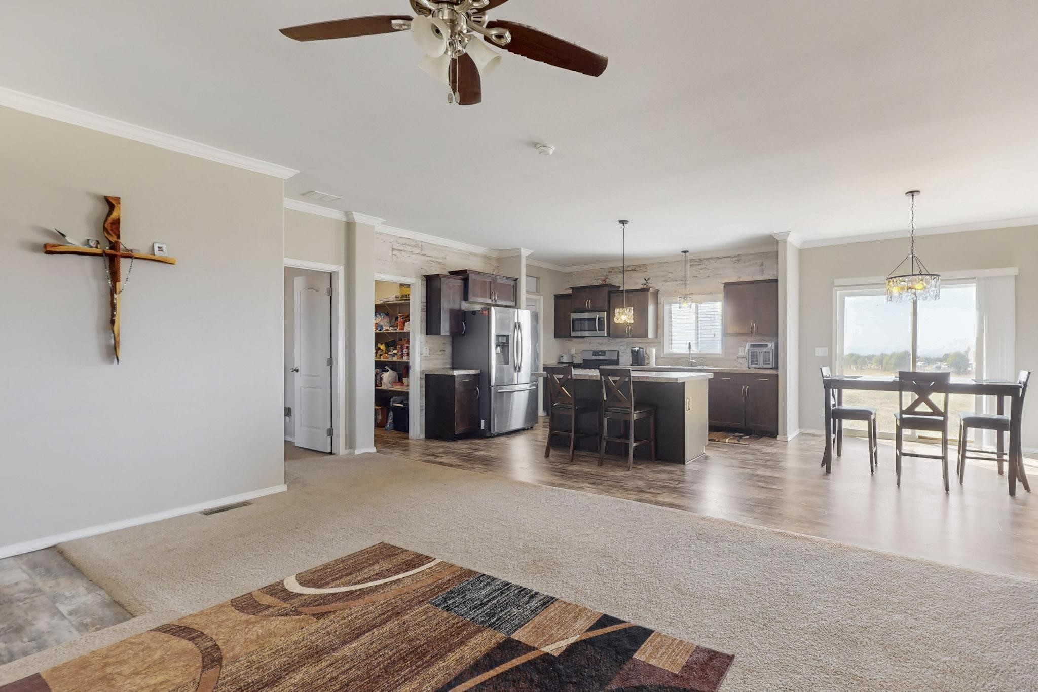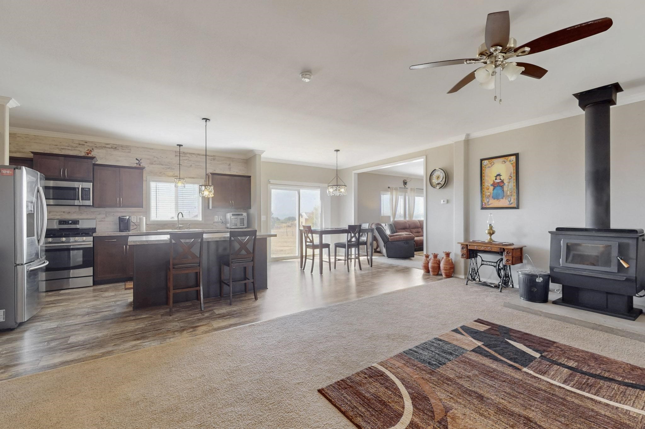 Wanting incredible views, a piece of land that has been loved and cared for, where the air is clean, one can listen to many sounds of nature, and comes along with irrigation rights? This land has all this and more. The property that the home sets on appears to be flat and very level. Right now there is grass throughout the property. At one time the current owner did have a vegetable garden. One could have farm animals and a garden. There are trees along the north side of the property. The house is a well maintained home with four bedrooms and two baths, a nice kitchen, dining room, and living room. Adjoining the dining room is a cozy family room. Although there is central heat, there is a wood stove in the living room, that will pretty much, warm the entire house. In front of the house is a full length carport, protecting up to about six vehicles, from the outdoor elements. Part of this space could be modified as an outdoor kitchen/ dining space . Also included on this incredible land and home property, is metal building, that is now used as a work shop and storage. It has electricity, 220V, and sets away from the home. Whether one is inside or outside, this place has a lot to offer throughout the year. An amazing place to live, enjoying nature and all it has to offer. Make sure to view both VIDEOS. VIDEO TOUR AND VIDEO LINK
