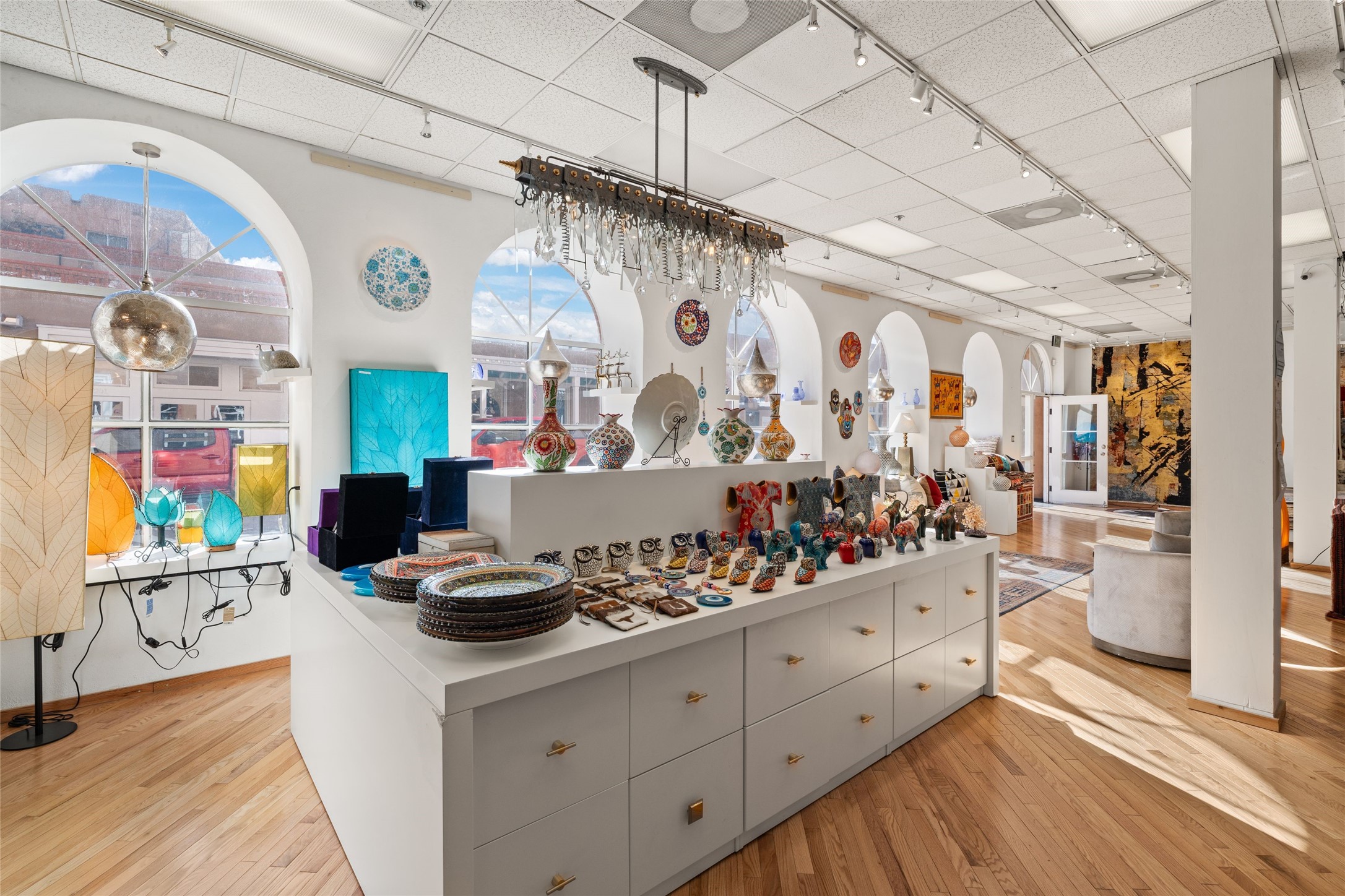 Prime commercial condo situated in the heart of downtown Santa Fe, offering high visibility and a vibrant location for your business. The property is zoned BCD (Business Capitol District), making it an ideal choice for a variety of commercial uses. Approximately 3,700 sq. ft. U-shaped design, providing a unique and functional space. Five large windows facing Galisteo, allowing for abundant natural light. Recently updated with new wood floors and stylish metal lighting fixtures, paired with a modern tile ceiling that enhances the overall aesthetic. Shared on-site parking lot, ensuring convenient access for customers. Please note that the sale is subject to the existing lease, making it a great investment opportunity for those looking to expand or establish their presence in Santa Fe's bustling commercial landscape. Excellent Opportunity to own a piece of prime real estate in one of New Mexico's most sought-after locations!
