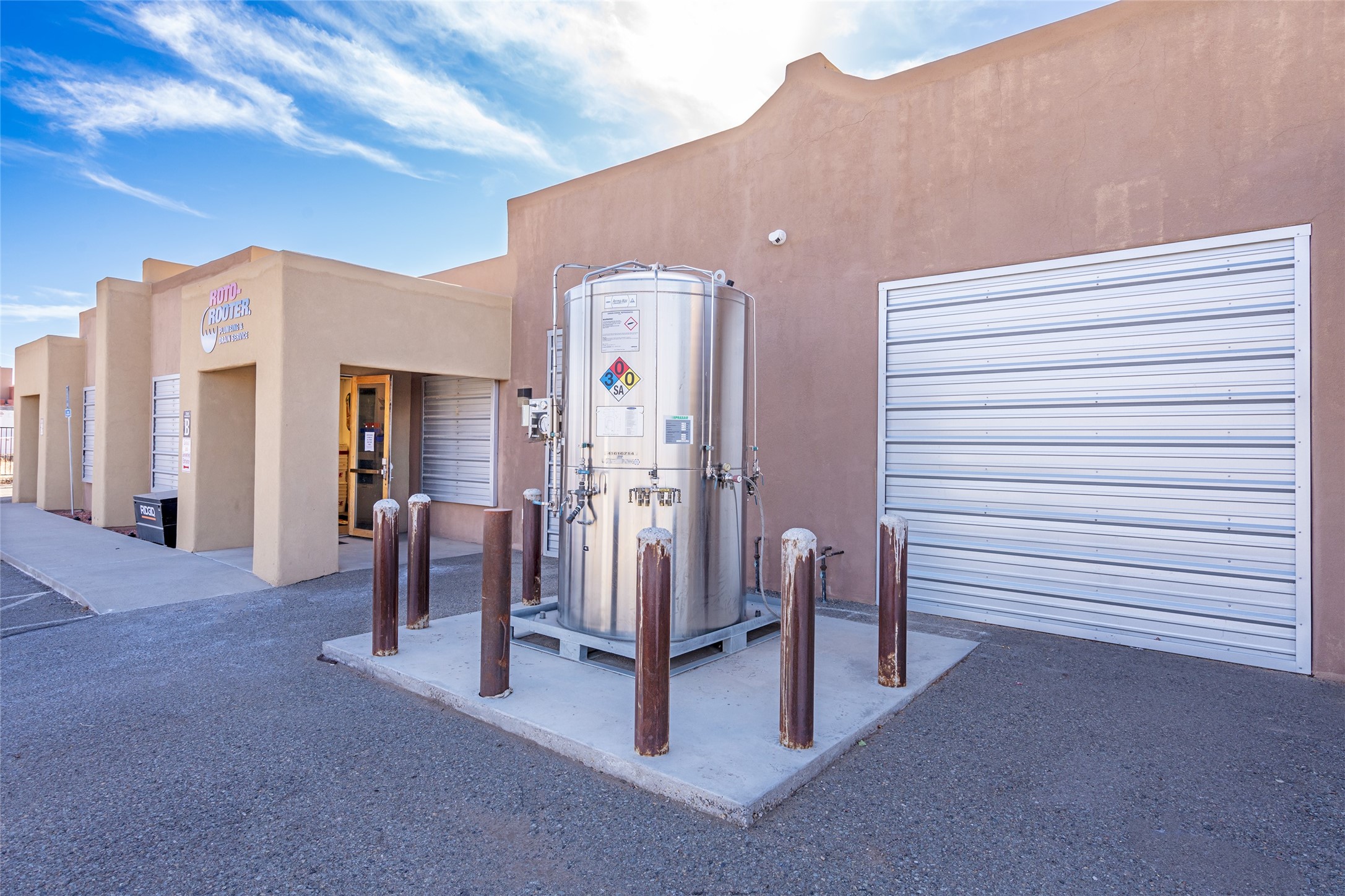 Flex commercial building with many possible configurations. Fully fenced site with shared paved parking. City of Santa Fe I-1 Zoning allows for many uses including industrial, storage, automotive, warehouse, construction trades, cabinet shop, office, pet grooming, kennel, educational, religious and more. Located near the intersection of Airport Road and 599 with convenient access to I-25 and Albuquerque and Los Alamos. Nearby businesses include luxury car storage, Tractor Supply, the Santa Fe Airport and a future Franks Supply. Utilities include 3 phase electricity, city water/sewer and natural gas. Heavy electrical service, 3 phase, 400 amps for this unit. Property is in the Airport Business Park which ensures an attractive neighborhood via the application of covenants and restrictions regulating architecture, landscaping, fencing, noise, odors and certain uses. Building is equipped with air conditioning, climate control, humidity control, plumbing for industrial gasses, heating, and floor drains. Ceilings are lined with uni-strut allowing for easy installation of lighting and other utilities. The property is also offered for sale, inquire with broker.