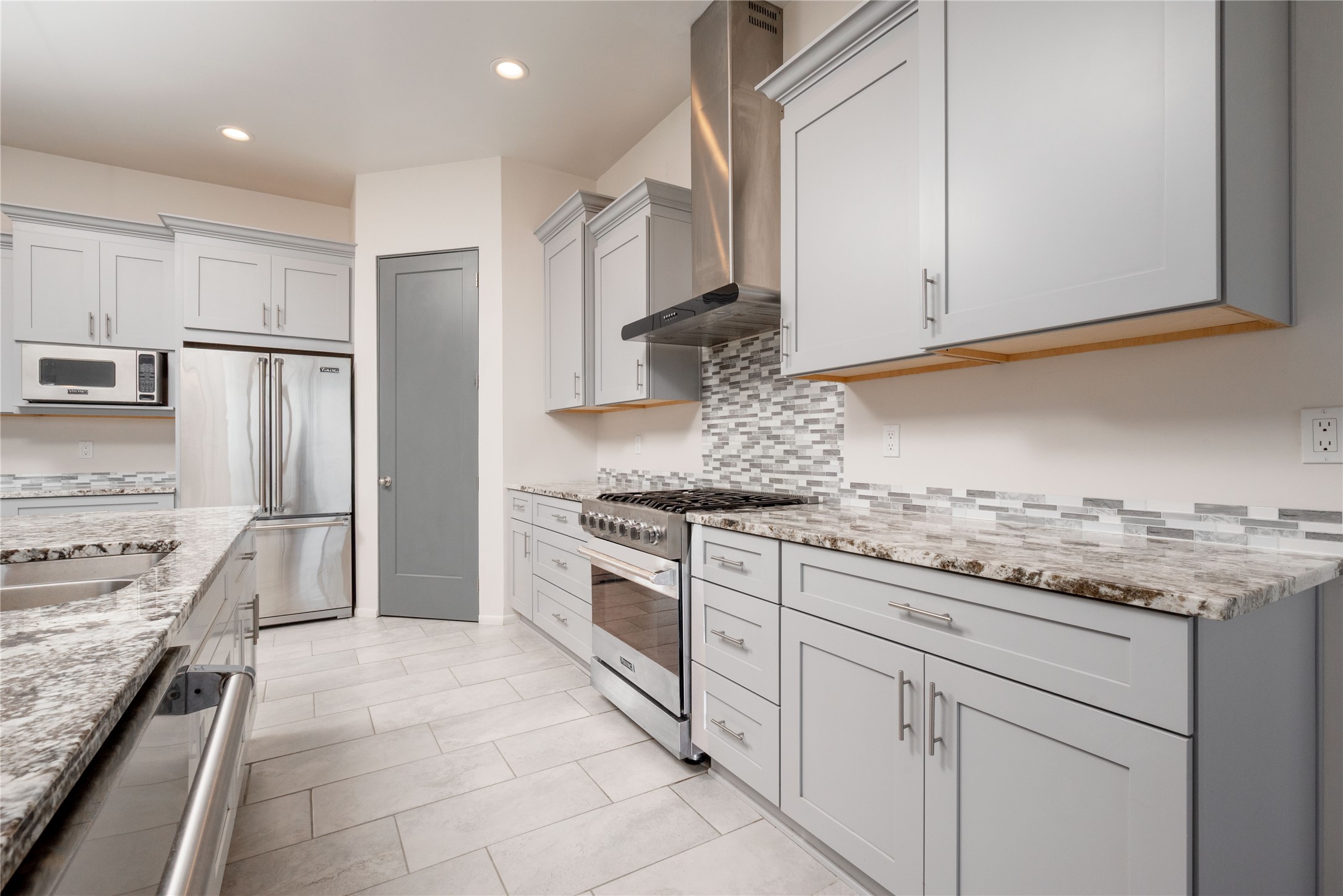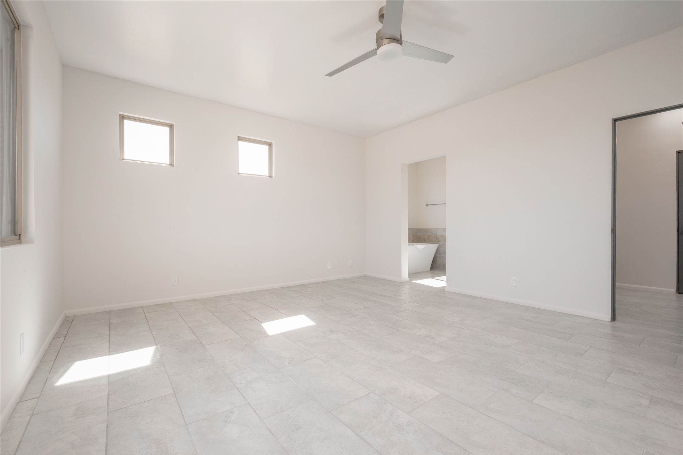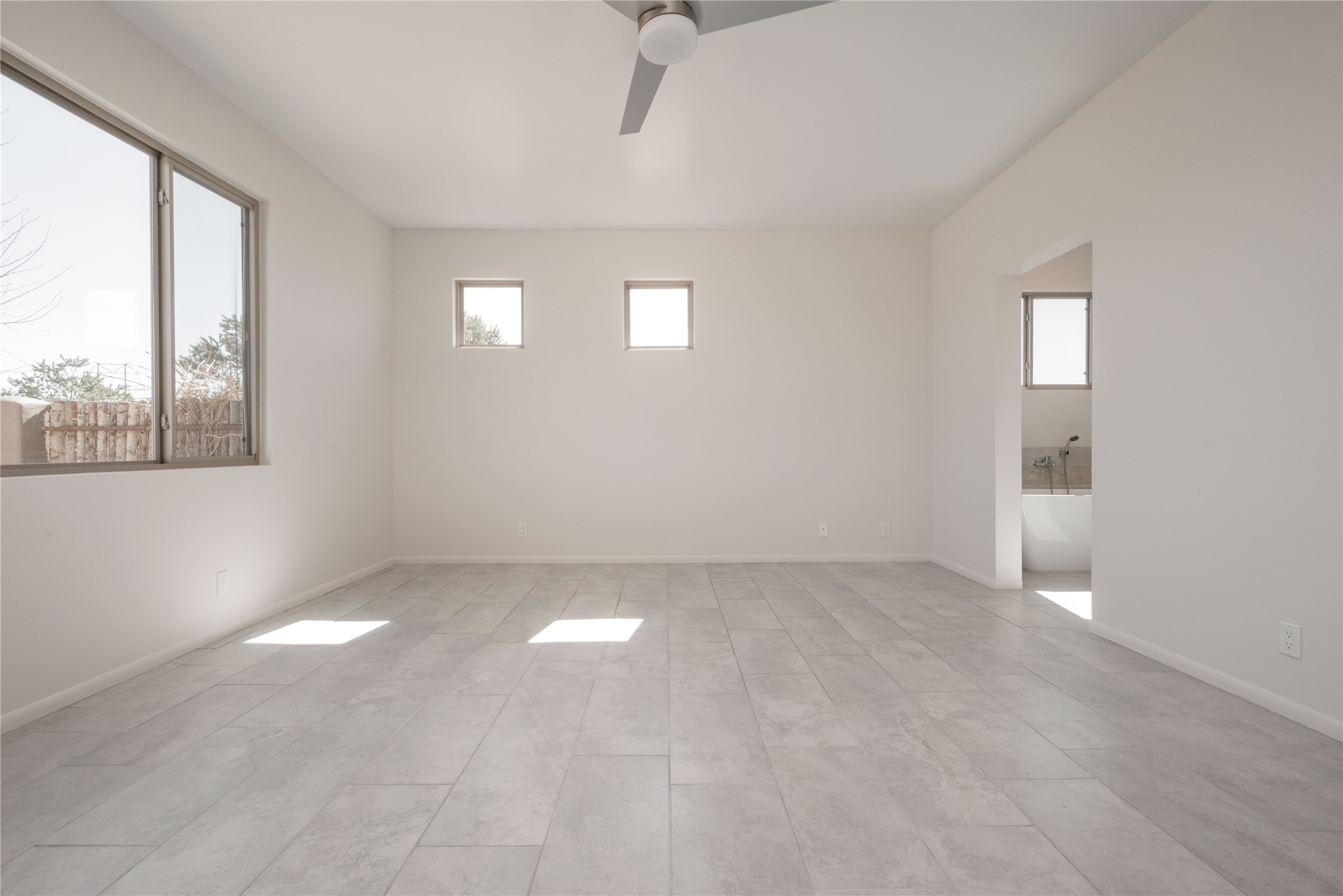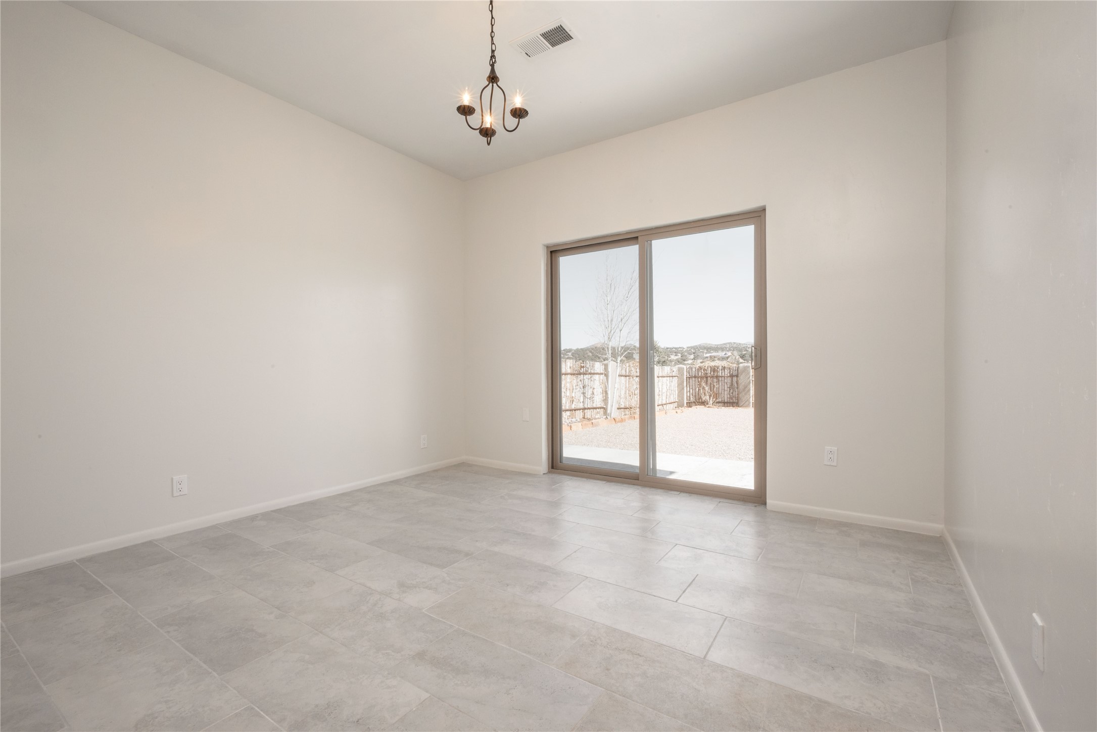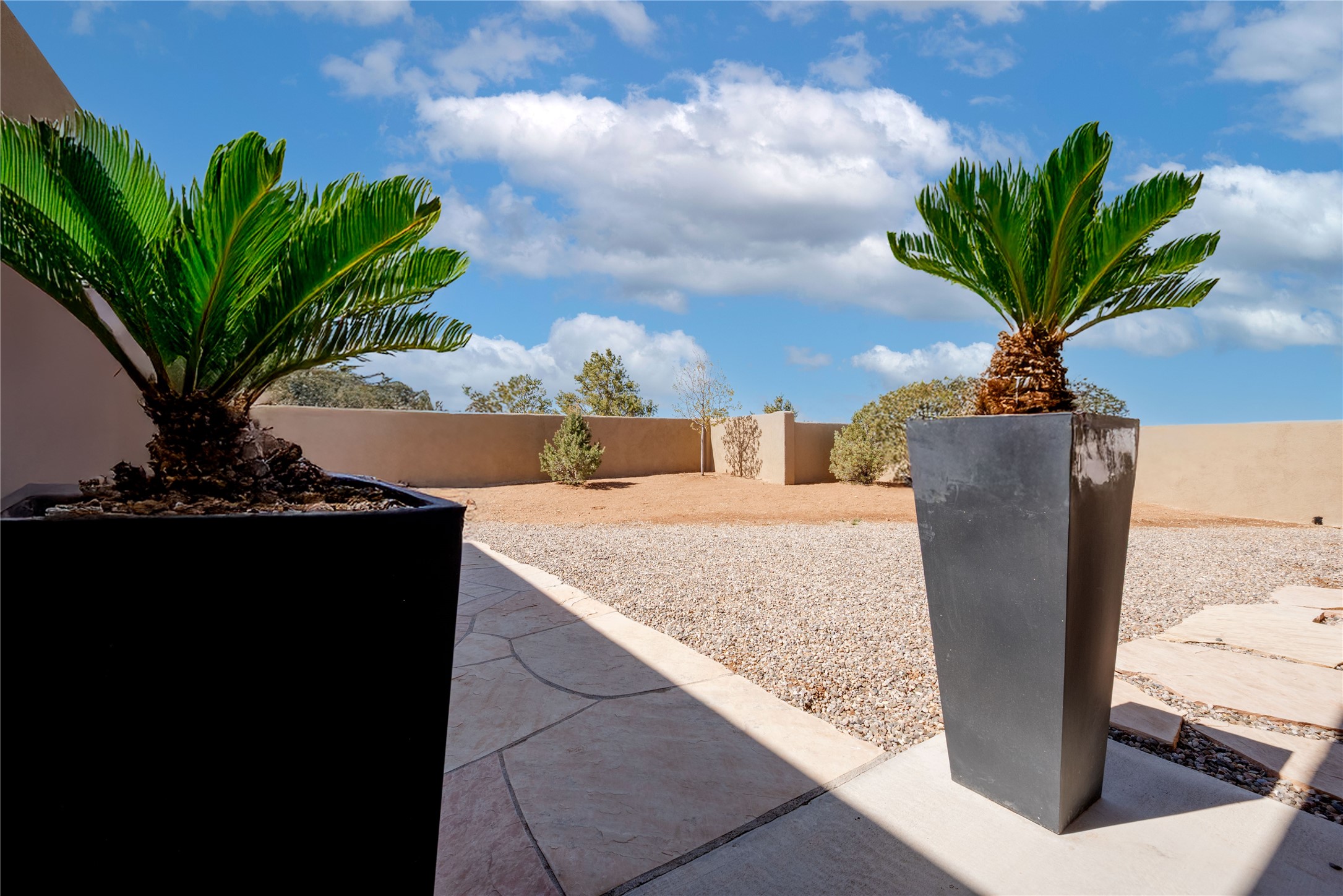 Experience modern living at its finest in this stunning 3-bedroom, 2-bath home, set on a peaceful 3.5-acre property surrounded by open space, wide-open skies, and the gentle sounds of nearby horses. Built just 4 years ago, this home blends sleek contemporary design with warm, livable comfort.Inside, you'll find a bright, open-concept layout with soaring ceilings and elegant architectural details, including a striking coffered ceiling in the main living area. The chef-inspired kitchen features high-end commercial-grade appliances--ideal for daily meals or entertaining with ease.The split floor plan offers privacy and functionality, with a spacious primary suite tucked away from the guest bedrooms. Guests enjoy their own private entrance--perfect for hosting, multigenerational living, or short-term rental potential.All just minutes from the Eldorado Shopping Center and a short drive to downtown Santa Fe--offering the perfect balance of serenity and convenience.