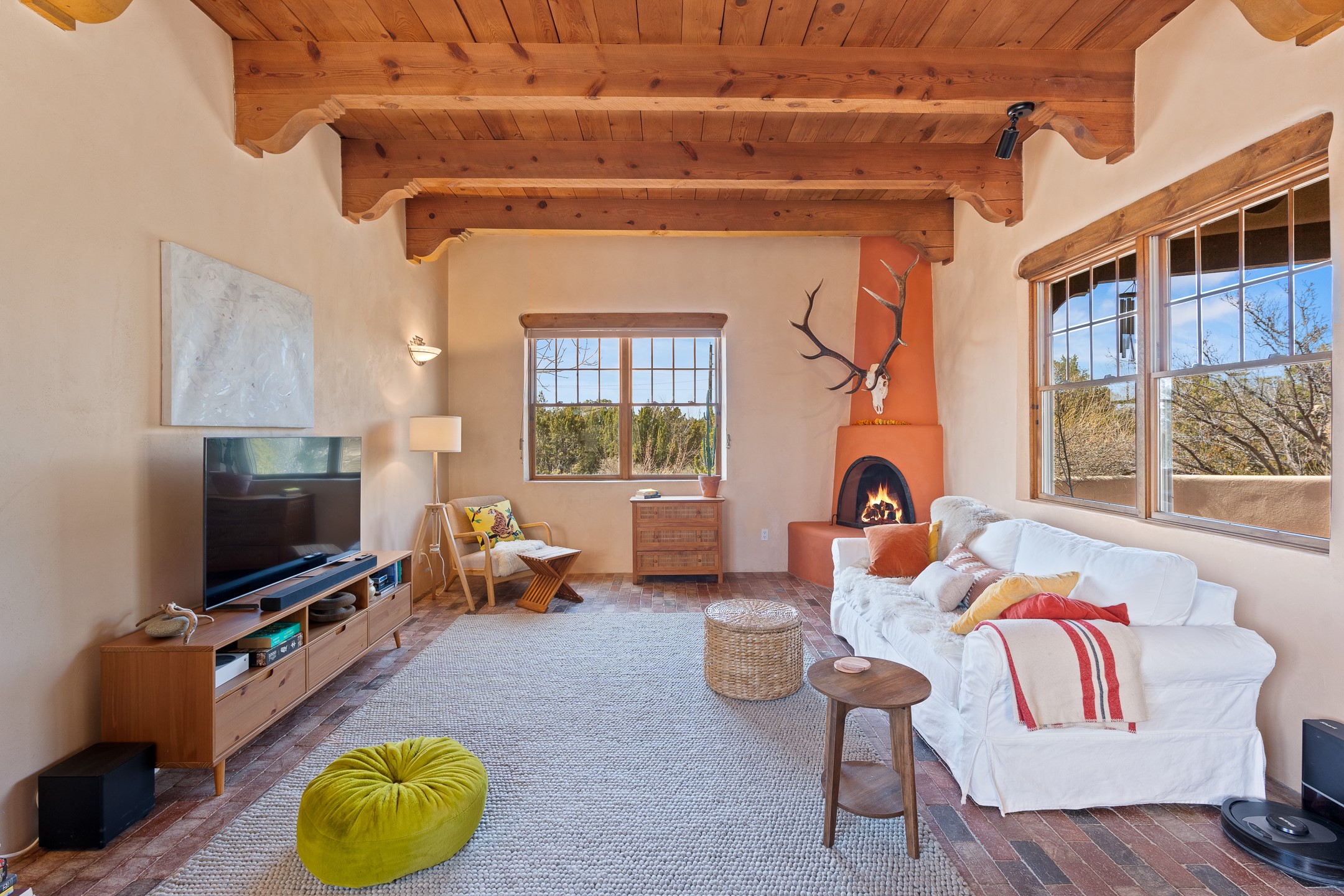 Where Serenity Meets Style - Just Minutes from the Heart of Santa FeTucked away on a quiet private lane, 2661 Chelsea Lane feels like a well-kept secret. With only a handful of neighbors and over half an acre of land, this home offers a rare sense of peace and privacy--yet it's just minutes from the Plaza and a mile from everyday conveniences like Albertsons. This 3-bedroom, 2-bath Santa Fe-style sanctuary spans 1,882 square feet and brings together timeless charm and modern ease. Step inside and you'll be welcomed by soulful finishes--brick floors, rustic beamed ceilings, and two cozy kiva fireplaces, one in the living room and one in the primary bedroom, creating an atmosphere that's as warm as it is inviting. The primary suite is a peaceful retreat with rich wood floors, a beautifully appointed ensuite with dual sinks, and of course, that romantic fireplace for chilly evenings. Guest rooms are cozy and full of light, with one offering a sunlit bonus space--ideal for a studio, office, or quiet reading nook, thanks to its French door and expansive windows. Step outside to the covered portal just off the dining area--perfect for entertaining or simply soaking in Santa Fe's iconic sunsets. Raised garden beds and a charming stucco privacy wall create a backyard oasis that's equally welcoming for gatherings or quiet reflection. The fully fenced yard is ready for pets and play.This is more than just a home--it's a lifestyle. Earthy, elegant, and effortlessly connected to the soul of Santa Fe.