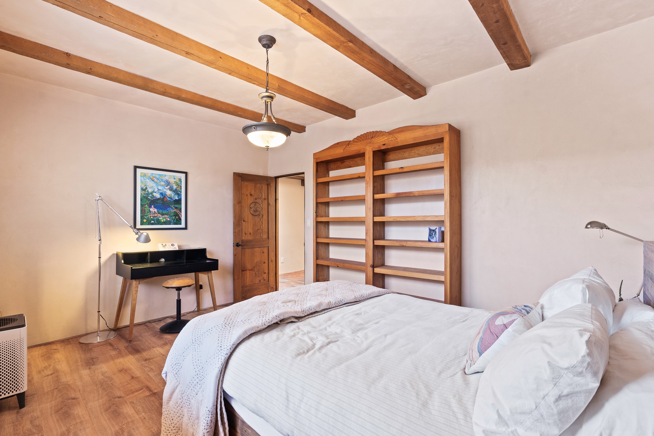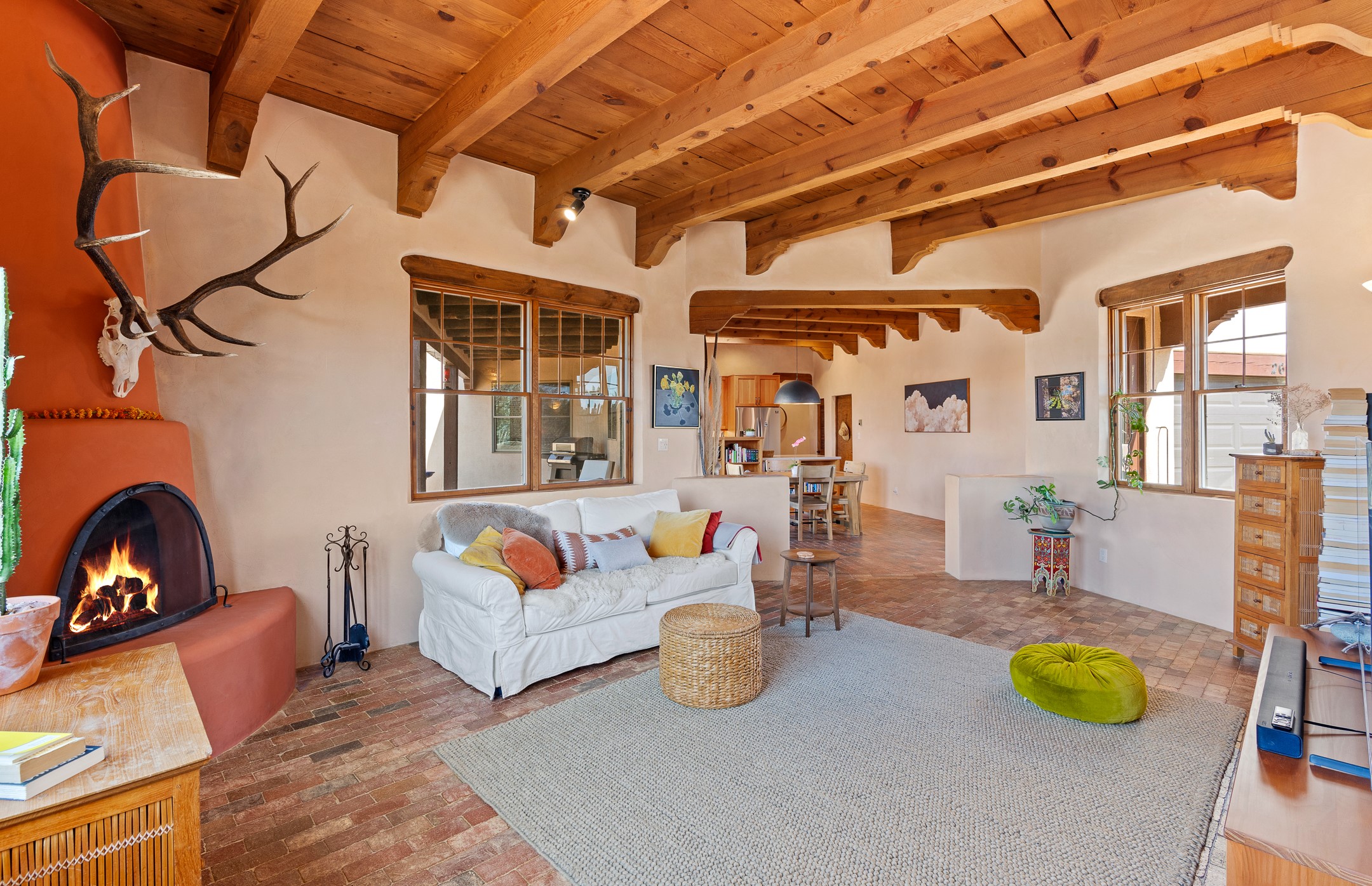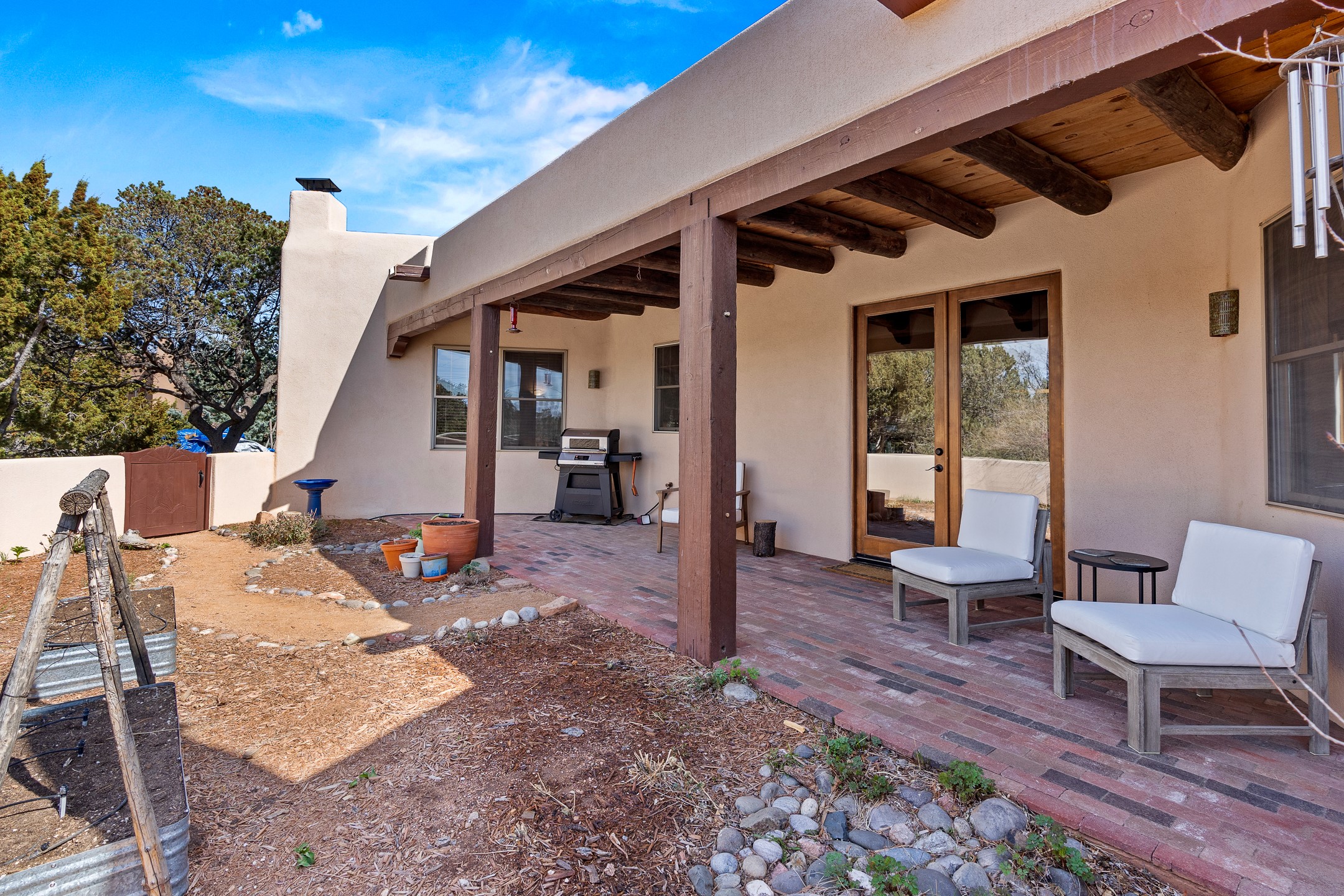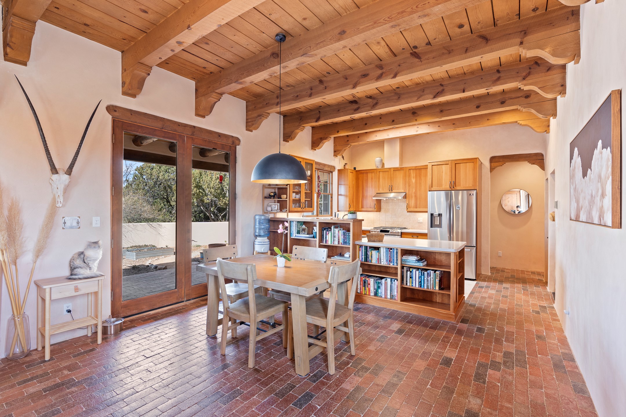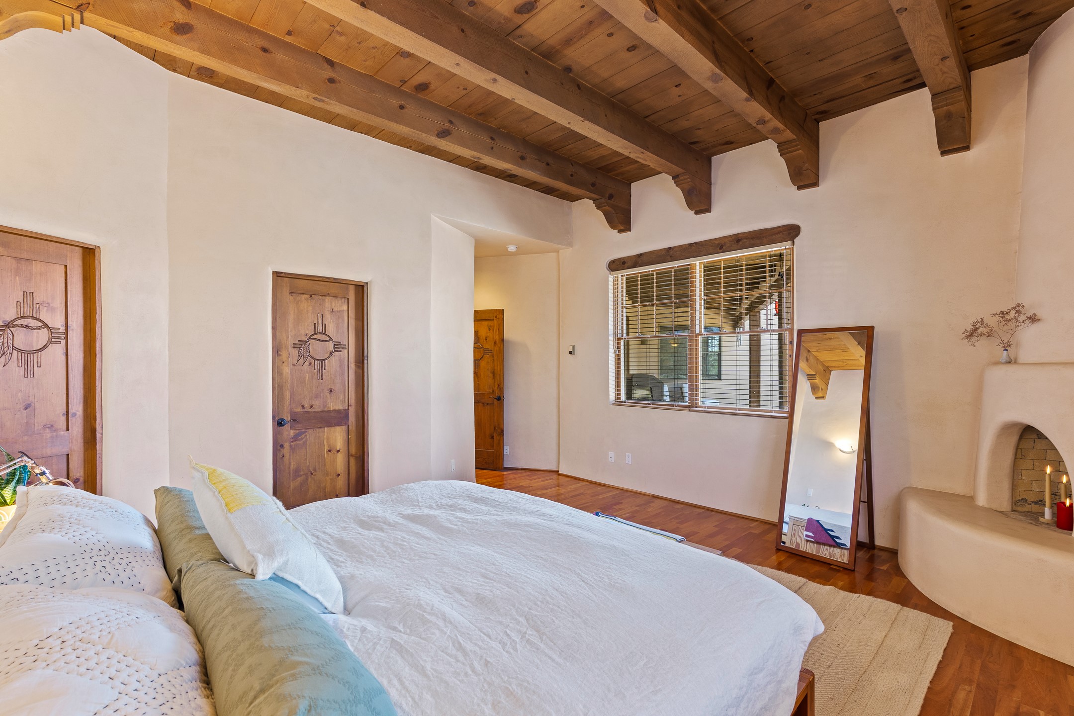 Where Serenity Meets Style - Just Minutes from the Heart of Santa FeTucked away on a quiet private lane, 2661 Chelsea Lane feels like a well-kept secret. With only a handful of neighbors and over half an acre of land, this home offers a rare sense of peace and privacy--yet it's just minutes from the Plaza and a mile from everyday conveniences like Albertsons. This 3-bedroom, 2-bath Santa Fe-style sanctuary spans 1,882 square feet and brings together timeless charm and modern ease. Step inside and you'll be welcomed by soulful finishes--brick floors, rustic beamed ceilings, and two cozy kiva fireplaces, one in the living room and one in the primary bedroom, creating an atmosphere that's as warm as it is inviting. The primary suite is a peaceful retreat with rich wood floors, a beautifully appointed ensuite with dual sinks, and of course, that romantic fireplace for chilly evenings. Guest rooms are cozy and full of light, with one offering a sunlit bonus space--ideal for a studio, office, or quiet reading nook, thanks to its French door and expansive windows. Step outside to the covered portal just off the dining area--perfect for entertaining or simply soaking in Santa Fe's iconic sunsets. Raised garden beds and a charming stucco privacy wall create a backyard oasis that's equally welcoming for gatherings or quiet reflection. The fully fenced yard is ready for pets and play.This is more than just a home--it's a lifestyle. Earthy, elegant, and effortlessly connected to the soul of Santa Fe.
