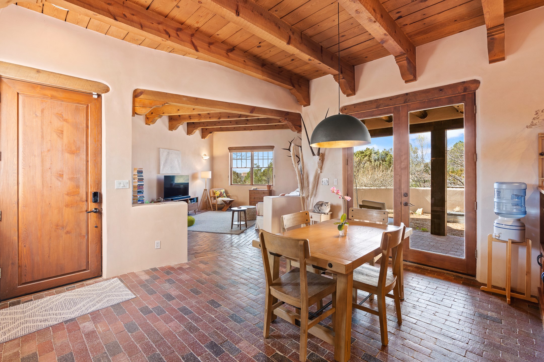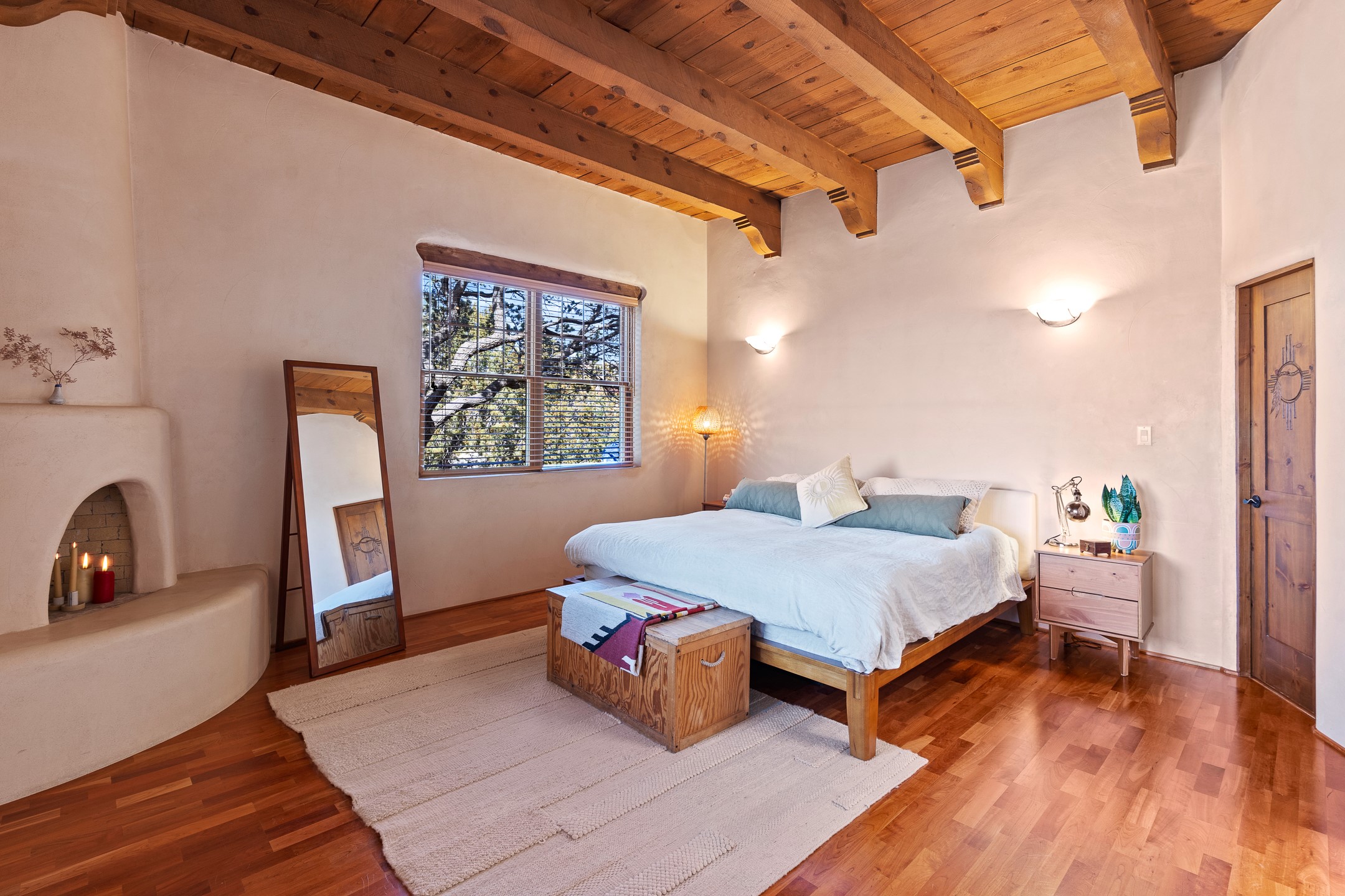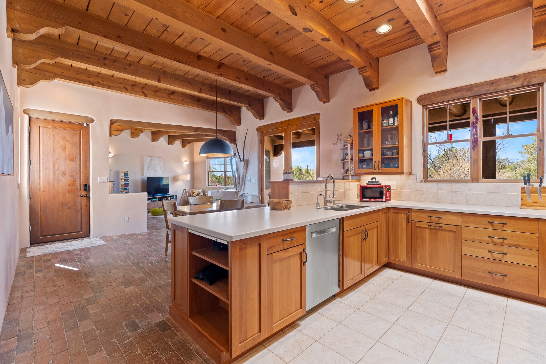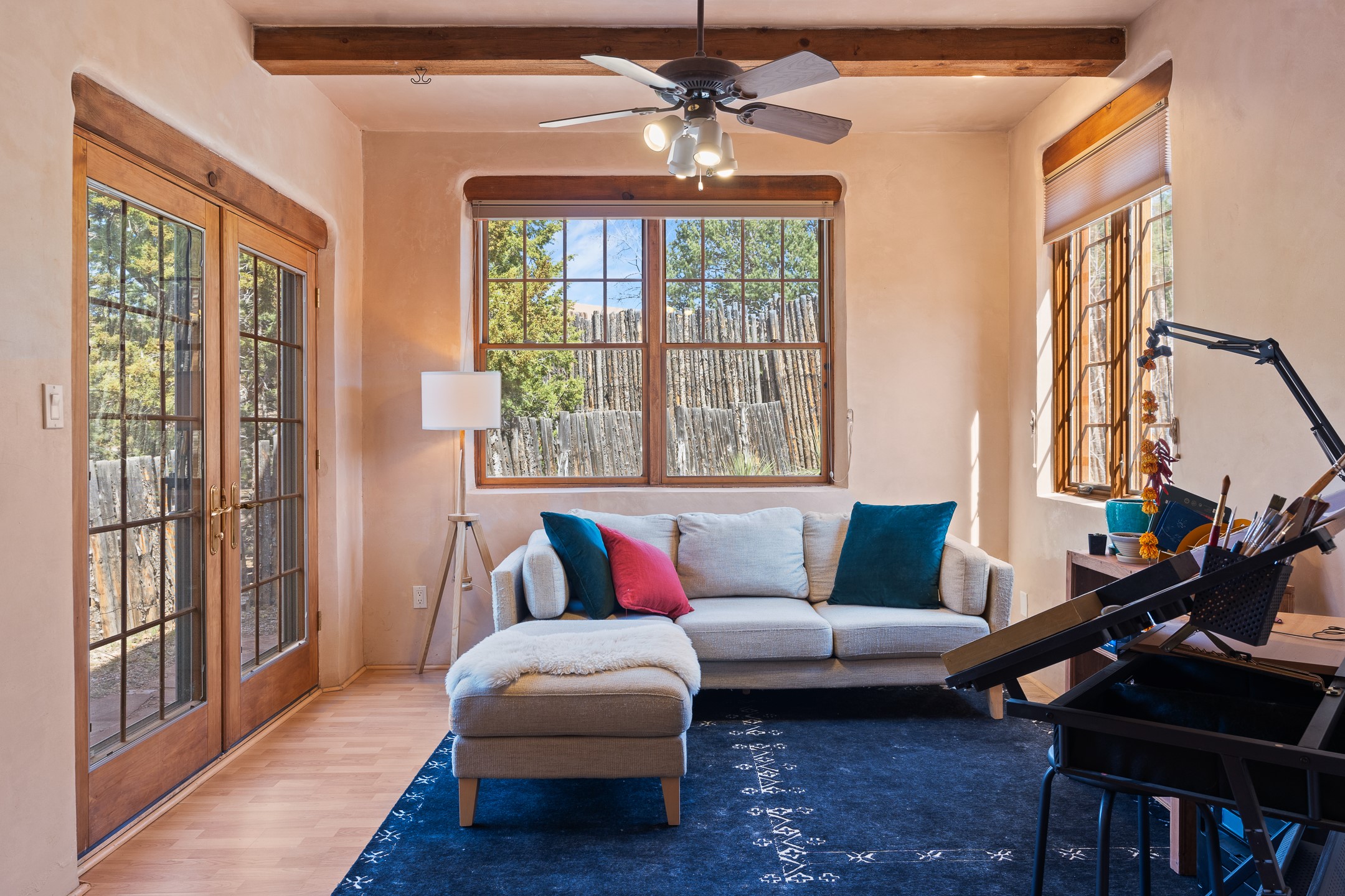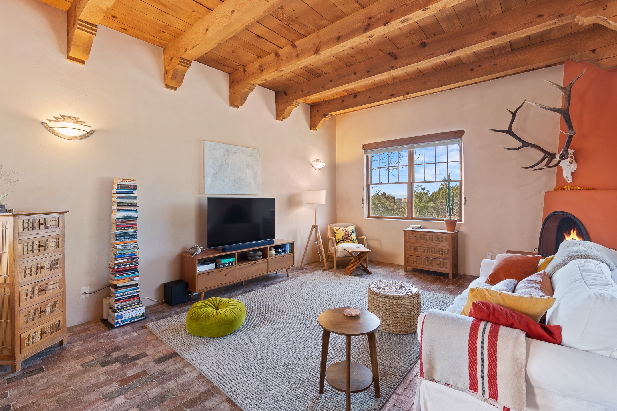 Where Serenity Meets Style - Just Minutes from the Heart of Santa FeTucked away on a quiet private lane, 2661 Chelsea Lane feels like a well-kept secret. With only a handful of neighbors and over half an acre of land, this home offers a rare sense of peace and privacy--yet it's just minutes from the Plaza and a mile from everyday conveniences like Albertsons. This 3-bedroom, 2-bath Santa Fe-style sanctuary spans 1,882 square feet and brings together timeless charm and modern ease. Step inside and you'll be welcomed by soulful finishes--brick floors, rustic beamed ceilings, and two cozy kiva fireplaces, one in the living room and one in the primary bedroom, creating an atmosphere that's as warm as it is inviting. The primary suite is a peaceful retreat with rich wood floors, a beautifully appointed ensuite with dual sinks, and of course, that romantic fireplace for chilly evenings. Guest rooms are cozy and full of light, with one offering a sunlit bonus space--ideal for a studio, office, or quiet reading nook, thanks to its French door and expansive windows. Step outside to the covered portal just off the dining area--perfect for entertaining or simply soaking in Santa Fe's iconic sunsets. Raised garden beds and a charming stucco privacy wall create a backyard oasis that's equally welcoming for gatherings or quiet reflection. The fully fenced yard is ready for pets and play.This is more than just a home--it's a lifestyle. Earthy, elegant, and effortlessly connected to the soul of Santa Fe.