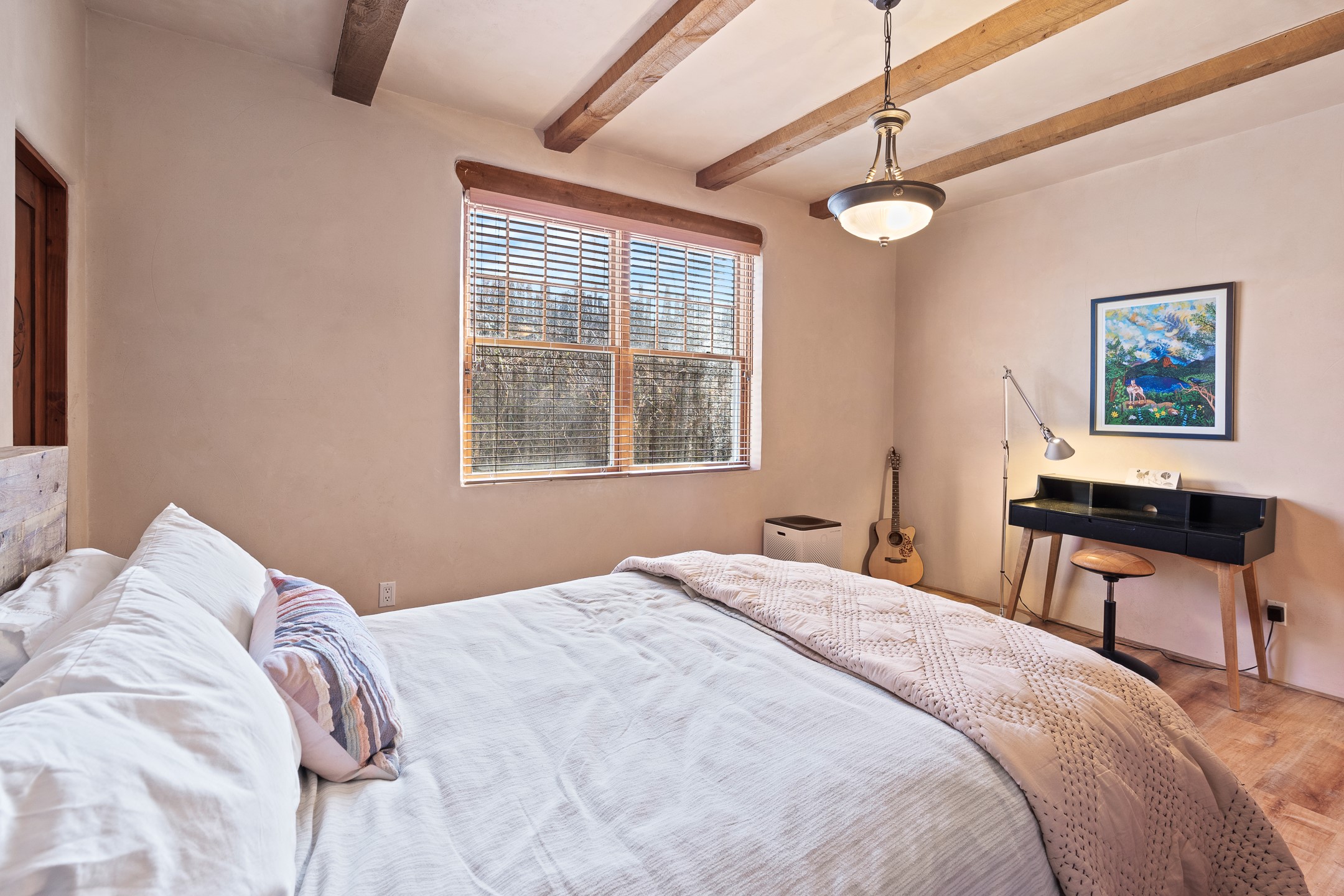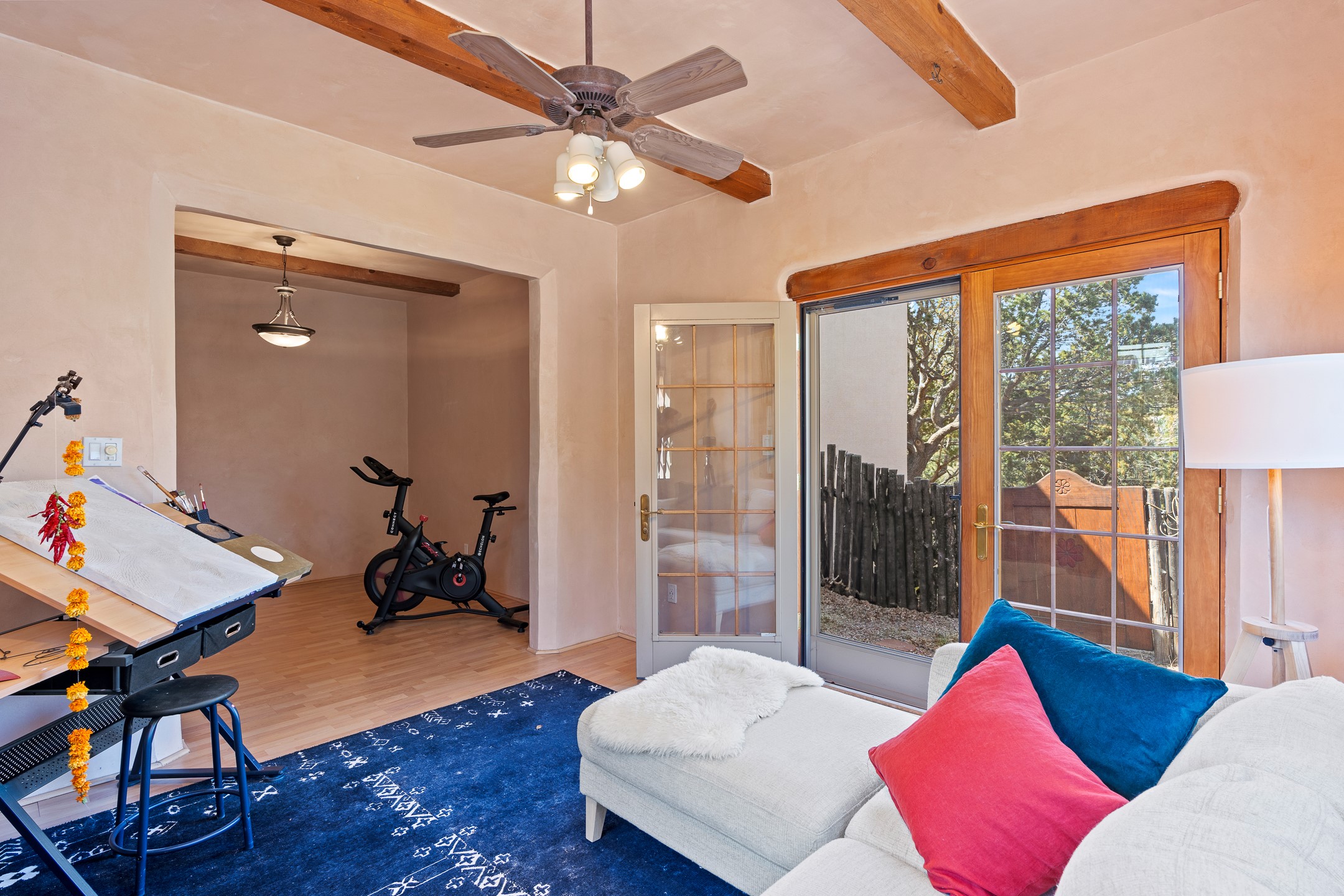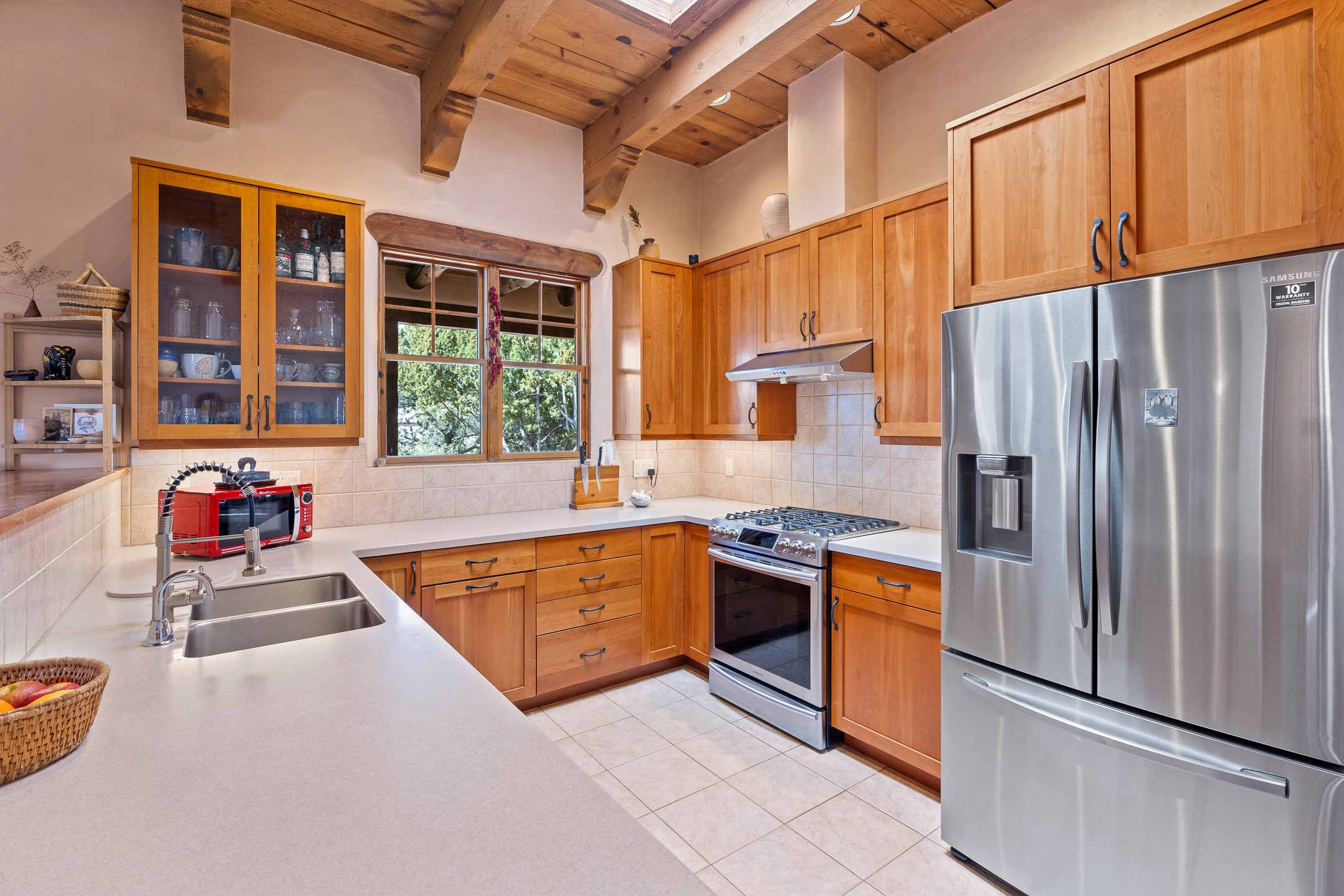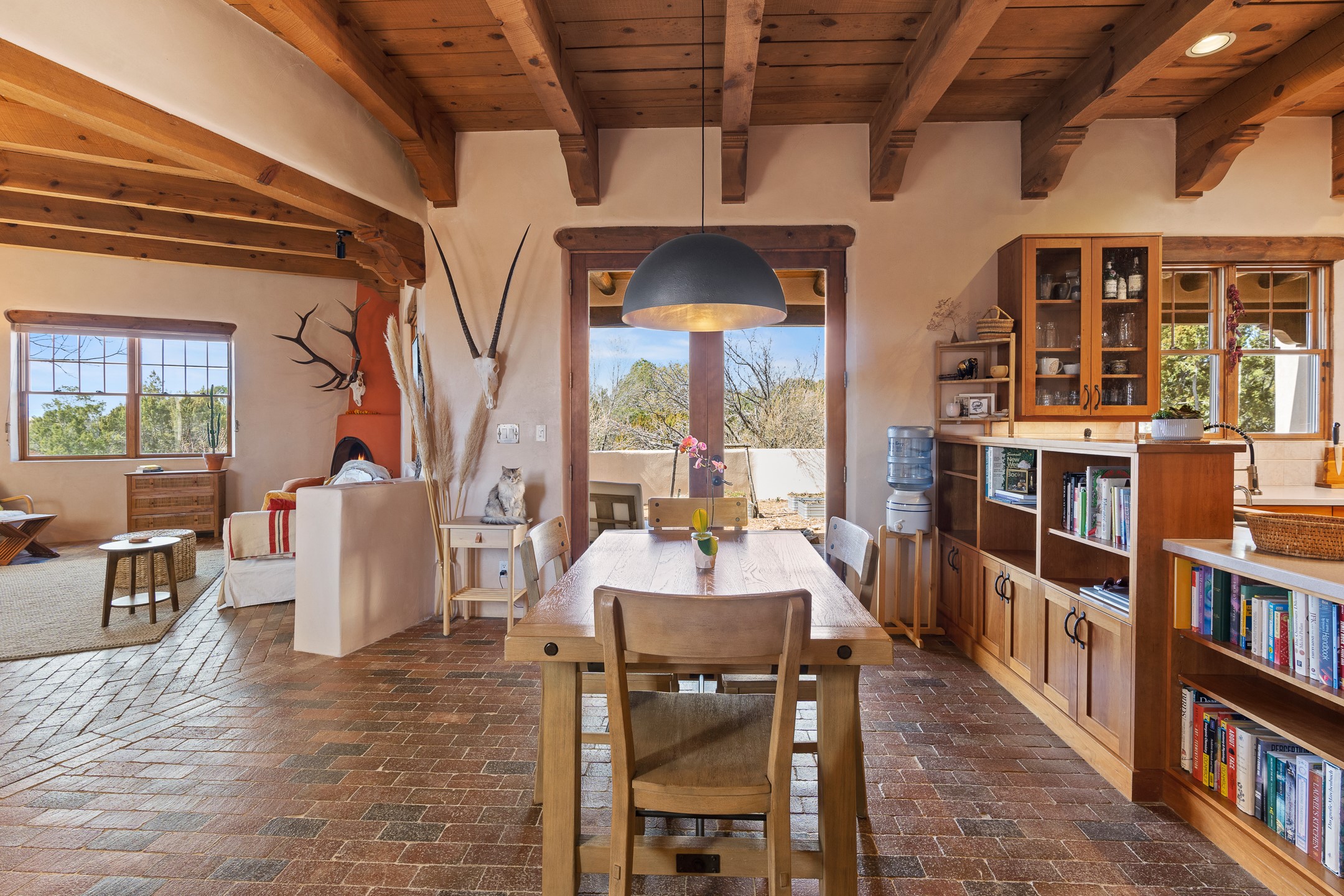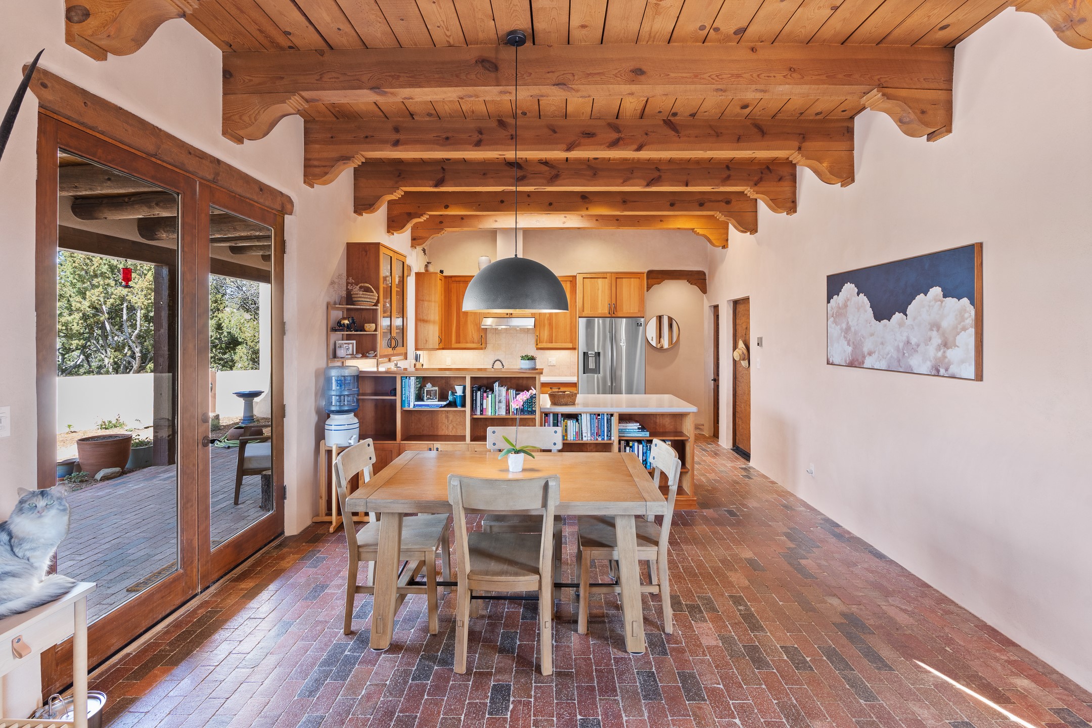 Where Serenity Meets Style - Just Minutes from the Heart of Santa FeTucked away on a quiet private lane, 2661 Chelsea Lane feels like a well-kept secret. With only a handful of neighbors and over half an acre of land, this home offers a rare sense of peace and privacy--yet it's just minutes from the Plaza and a mile from everyday conveniences like Albertsons. This 3-bedroom, 2-bath Santa Fe-style sanctuary spans 1,882 square feet and brings together timeless charm and modern ease. Step inside and you'll be welcomed by soulful finishes--brick floors, rustic beamed ceilings, and two cozy kiva fireplaces, one in the living room and one in the primary bedroom, creating an atmosphere that's as warm as it is inviting. The primary suite is a peaceful retreat with rich wood floors, a beautifully appointed ensuite with dual sinks, and of course, that romantic fireplace for chilly evenings. Guest rooms are cozy and full of light, with one offering a sunlit bonus space--ideal for a studio, office, or quiet reading nook, thanks to its French door and expansive windows. Step outside to the covered portal just off the dining area--perfect for entertaining or simply soaking in Santa Fe's iconic sunsets. Raised garden beds and a charming stucco privacy wall create a backyard oasis that's equally welcoming for gatherings or quiet reflection. The fully fenced yard is ready for pets and play.This is more than just a home--it's a lifestyle. Earthy, elegant, and effortlessly connected to the soul of Santa Fe.