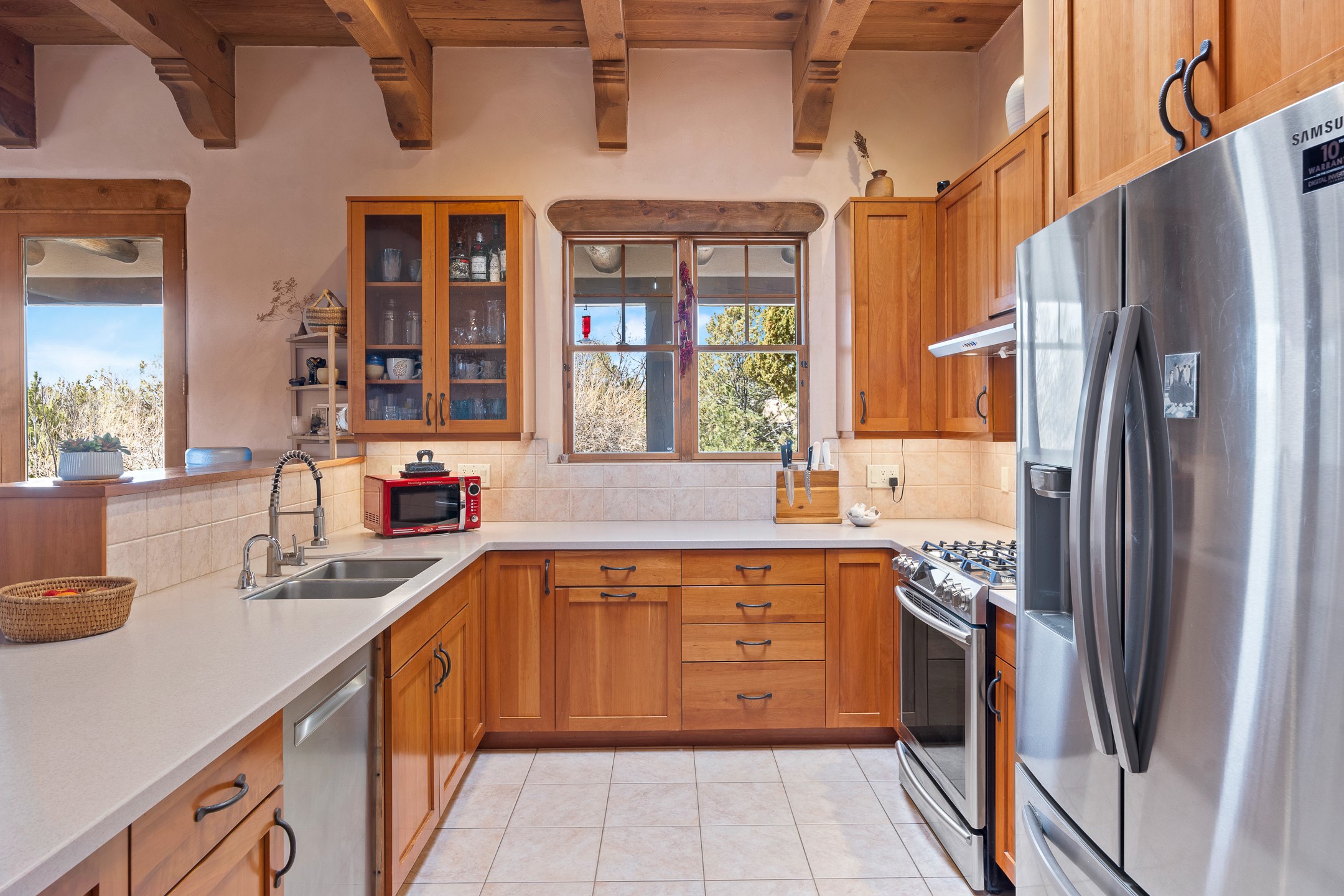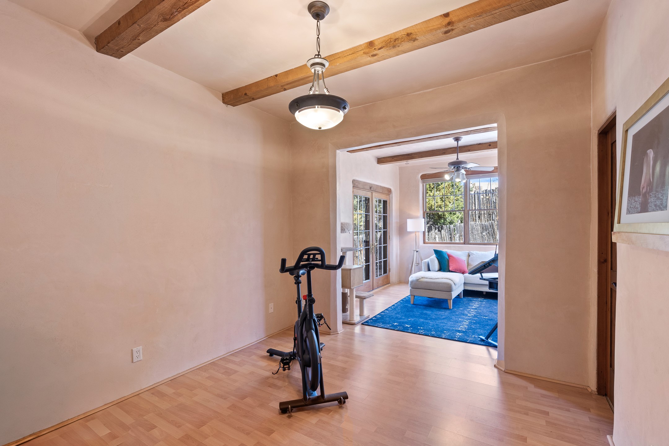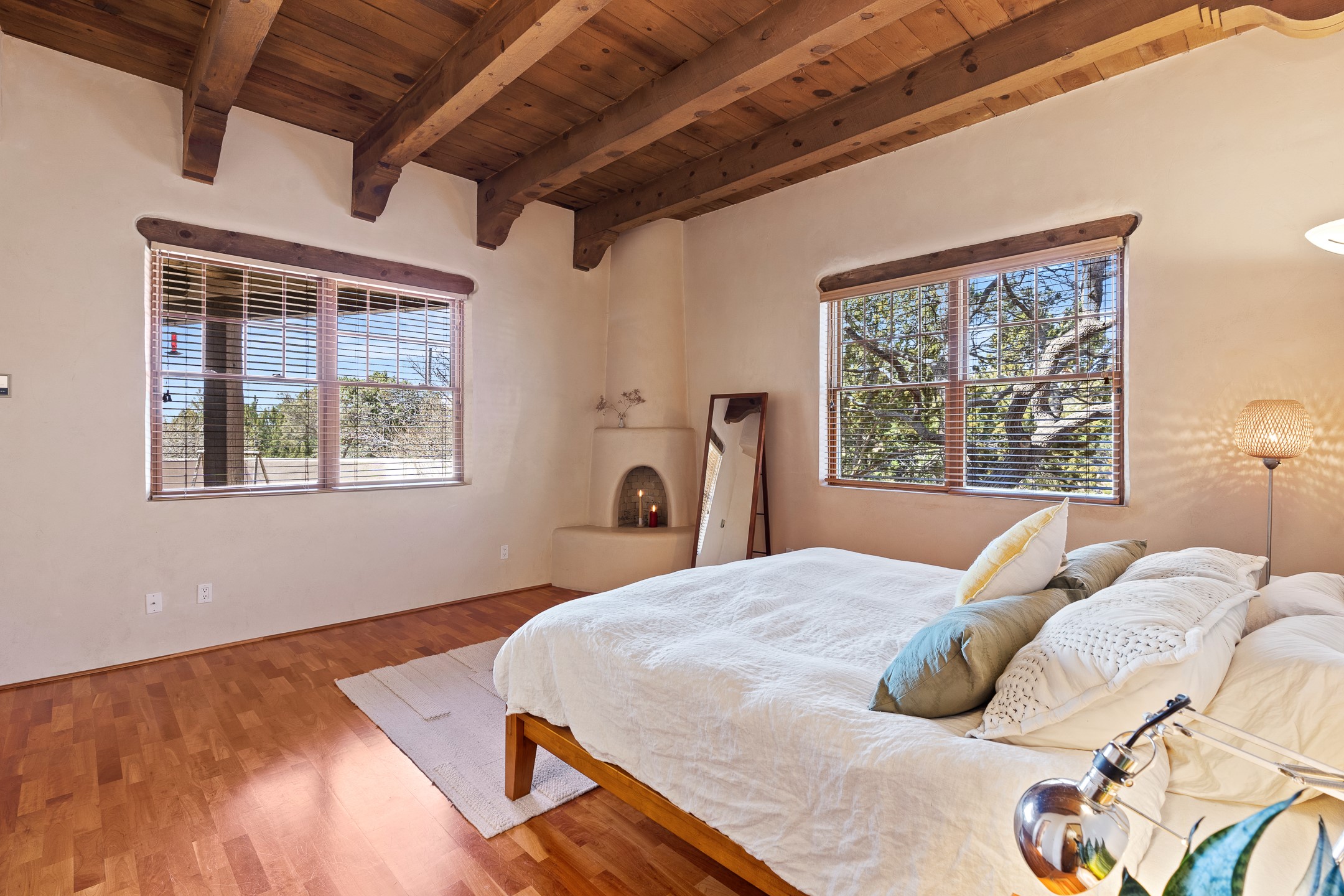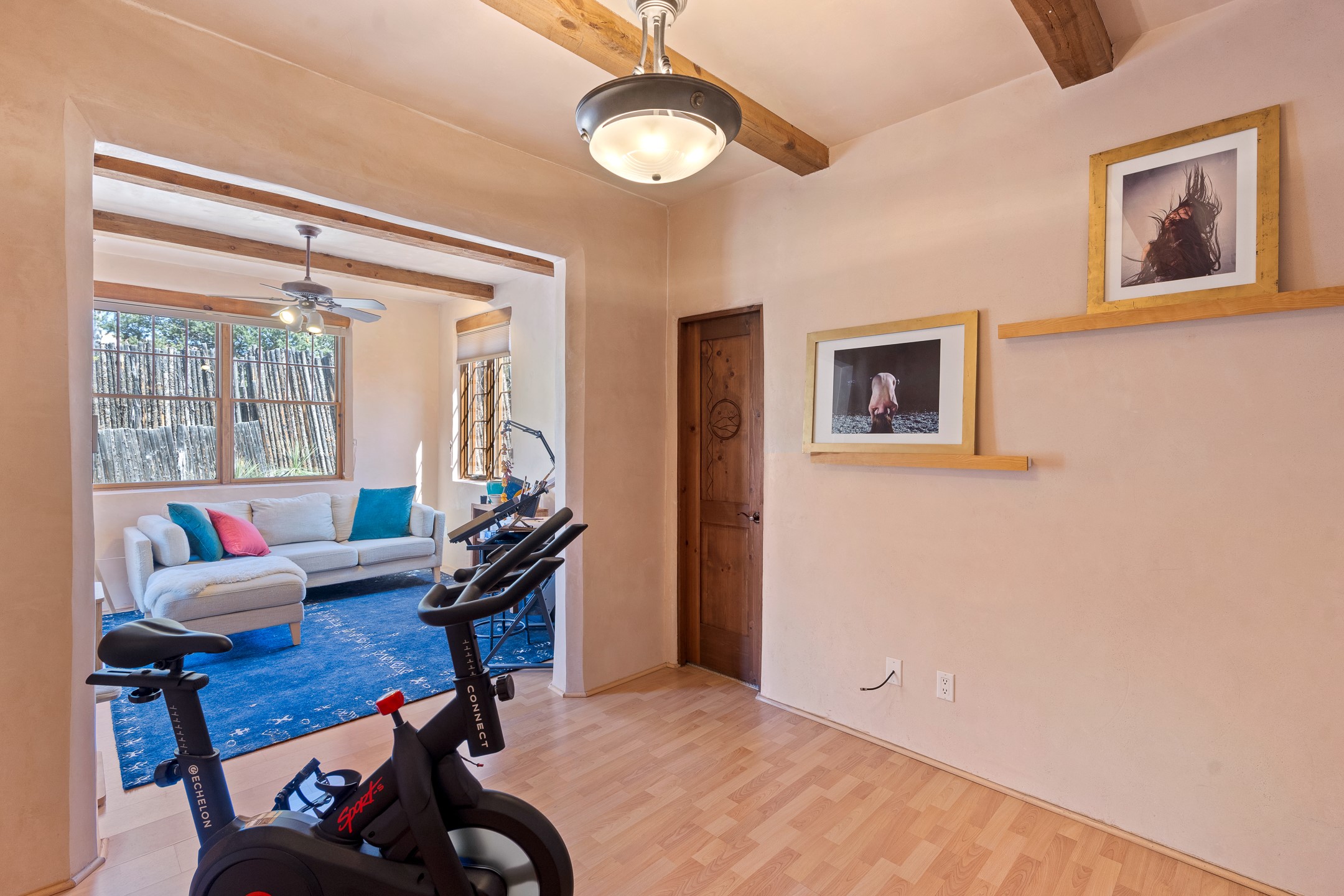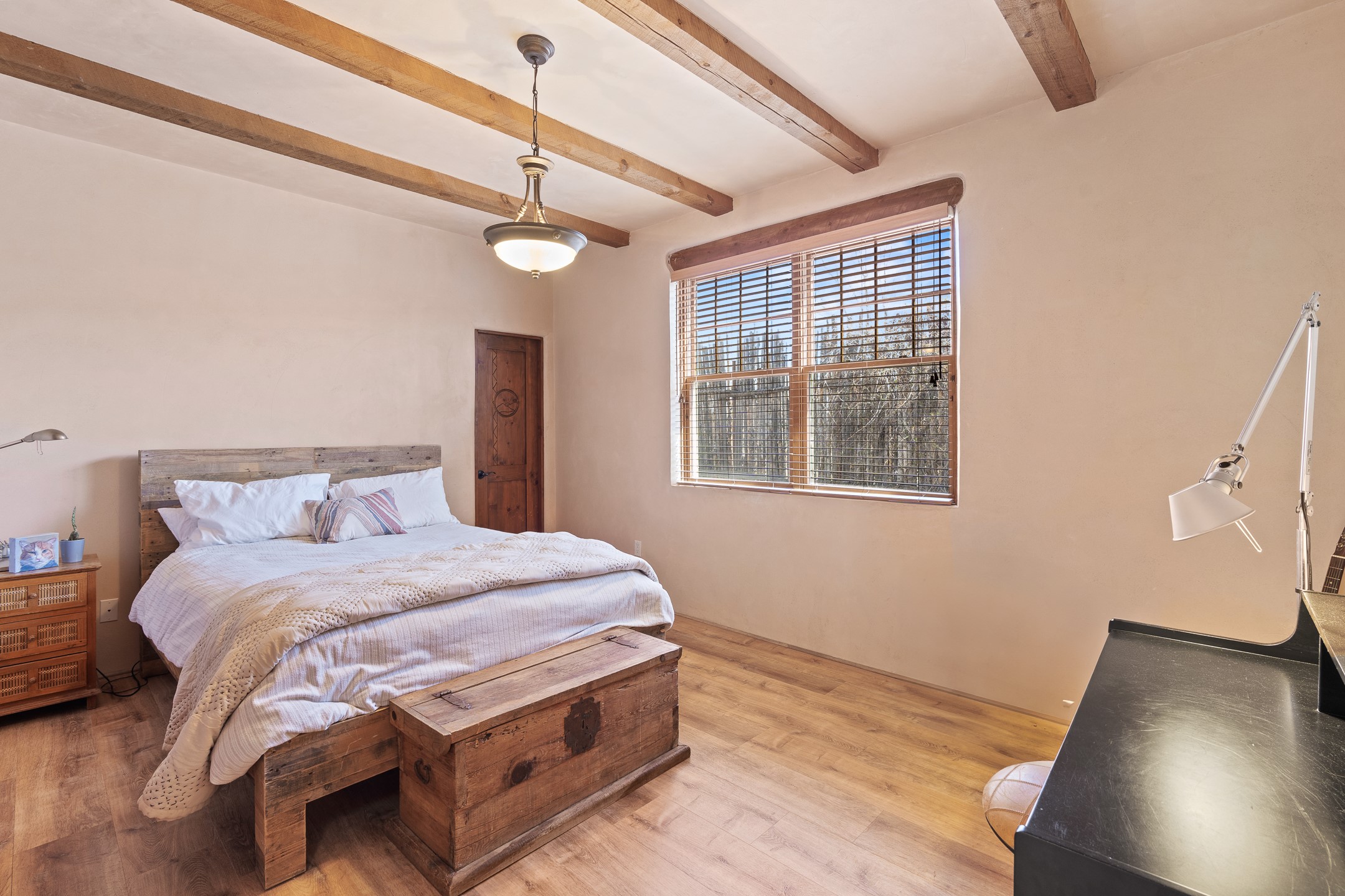 Where Serenity Meets Style - Just Minutes from the Heart of Santa FeTucked away on a quiet private lane, 2661 Chelsea Lane feels like a well-kept secret. With only a handful of neighbors and over half an acre of land, this home offers a rare sense of peace and privacy--yet it's just minutes from the Plaza and a mile from everyday conveniences like Albertsons. This 3-bedroom, 2-bath Santa Fe-style sanctuary spans 1,882 square feet and brings together timeless charm and modern ease. Step inside and you'll be welcomed by soulful finishes--brick floors, rustic beamed ceilings, and two cozy kiva fireplaces, one in the living room and one in the primary bedroom, creating an atmosphere that's as warm as it is inviting. The primary suite is a peaceful retreat with rich wood floors, a beautifully appointed ensuite with dual sinks, and of course, that romantic fireplace for chilly evenings. Guest rooms are cozy and full of light, with one offering a sunlit bonus space--ideal for a studio, office, or quiet reading nook, thanks to its French door and expansive windows. Step outside to the covered portal just off the dining area--perfect for entertaining or simply soaking in Santa Fe's iconic sunsets. Raised garden beds and a charming stucco privacy wall create a backyard oasis that's equally welcoming for gatherings or quiet reflection. The fully fenced yard is ready for pets and play.This is more than just a home--it's a lifestyle. Earthy, elegant, and effortlessly connected to the soul of Santa Fe.