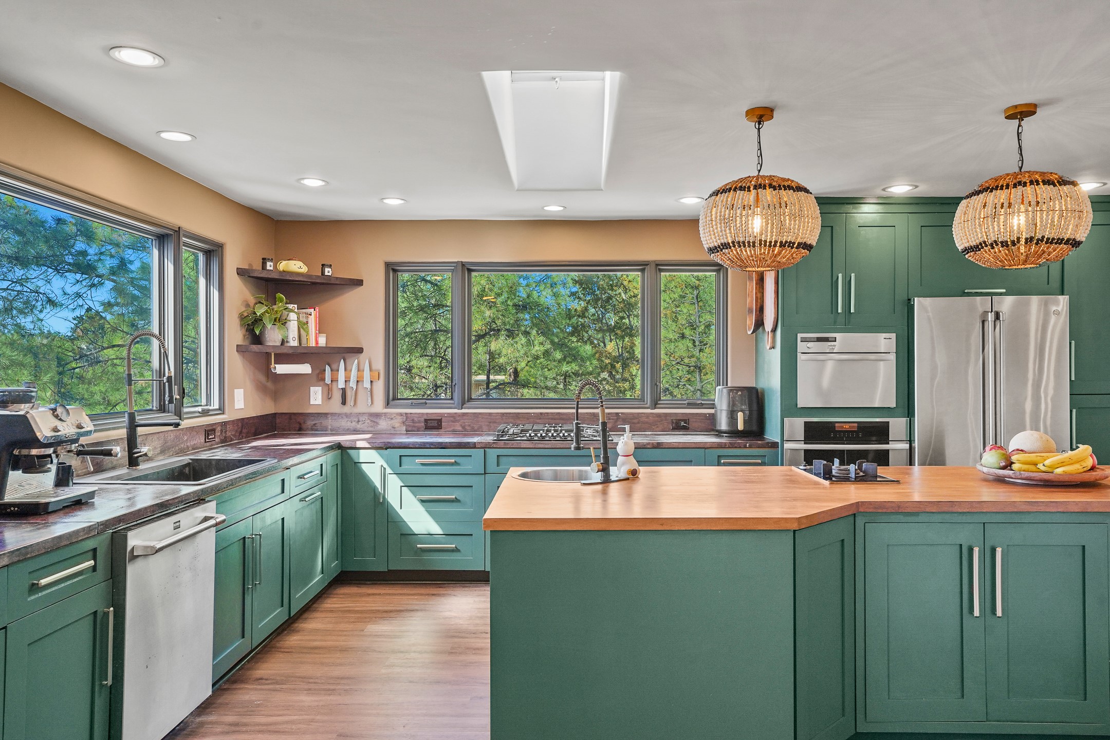 Finally, a luxe and updated home in Los Alamos...Is this the best property to hit the market in a long time?? We sure think so!! Properties of this location, size and quality are extremely rare in Los Alamos. Modern Southwest style blends seamlessly with classic 50's design in this turnkey home! In a premium location on Barranca Mesa, you'll feel as though you're in a world of your own, while only being a short drive to LANL. Easily throw off the work day as you walk in through the gated courtyard and are greeted by the bubbling fountain and the colorful hand-hewn front doors. This 4-bedroom, 3-bathroom home is thoughtfully laid out over two levels, with gathering spaces and an open floorplan on the main level, bathed in beautiful natural light and surrounded by views of the canyon. A chef's kitchen with an oversized island, prep sink, and newer high-end appliances will have you entertaining family and friends with your culinary delights. There are so many spaces for quiet conversation in the sunroom, or little moments to be had in the flex spaces throughout the home. Downstairs, you will find the bedroom suites and a den with a cozy fireplace for curling up with a good book or your favorite Netflix series. With plenty of additional rooms, you can easily create an office, a dream closet, or a kids' playroom! Outside you'll find space to relax or grill out on the sundeck, room for gardening, and the scent of many pine trees that surround you and keep you cool in summer. Additional bonuses are an attached studio space downstairs that is currently employed as a gym/man cave, and a 2-car garage for all of your storage and vehicle needs. This home is the complete package! Move-in ready just for you, don't miss this once-in-a-lifetime opportunity!
