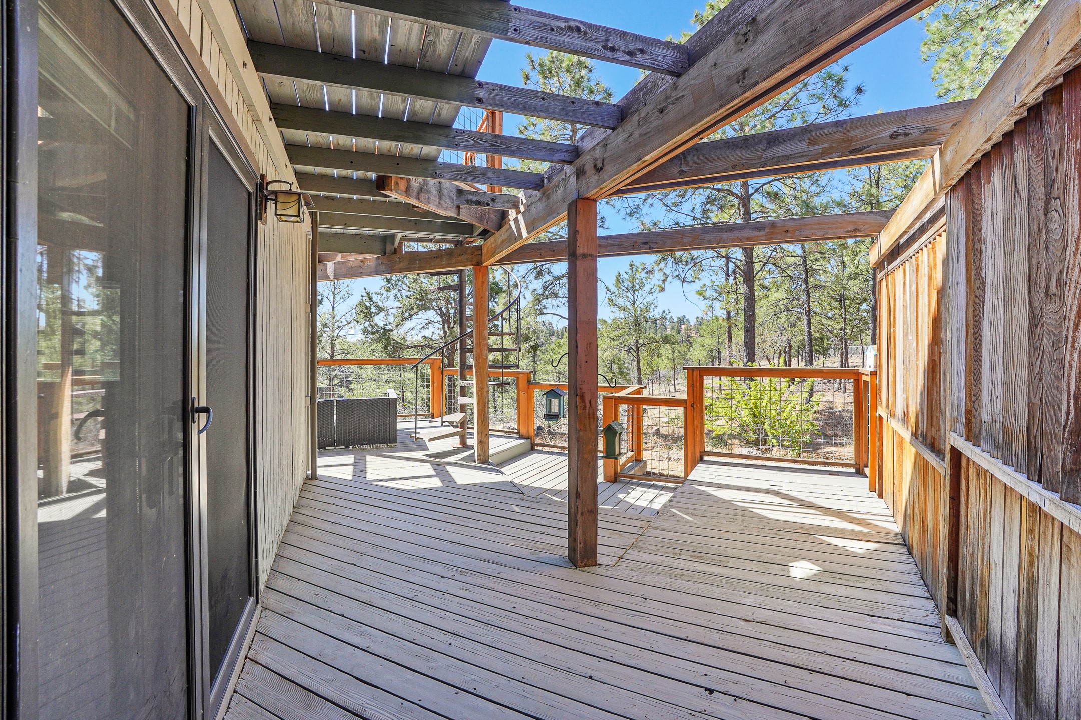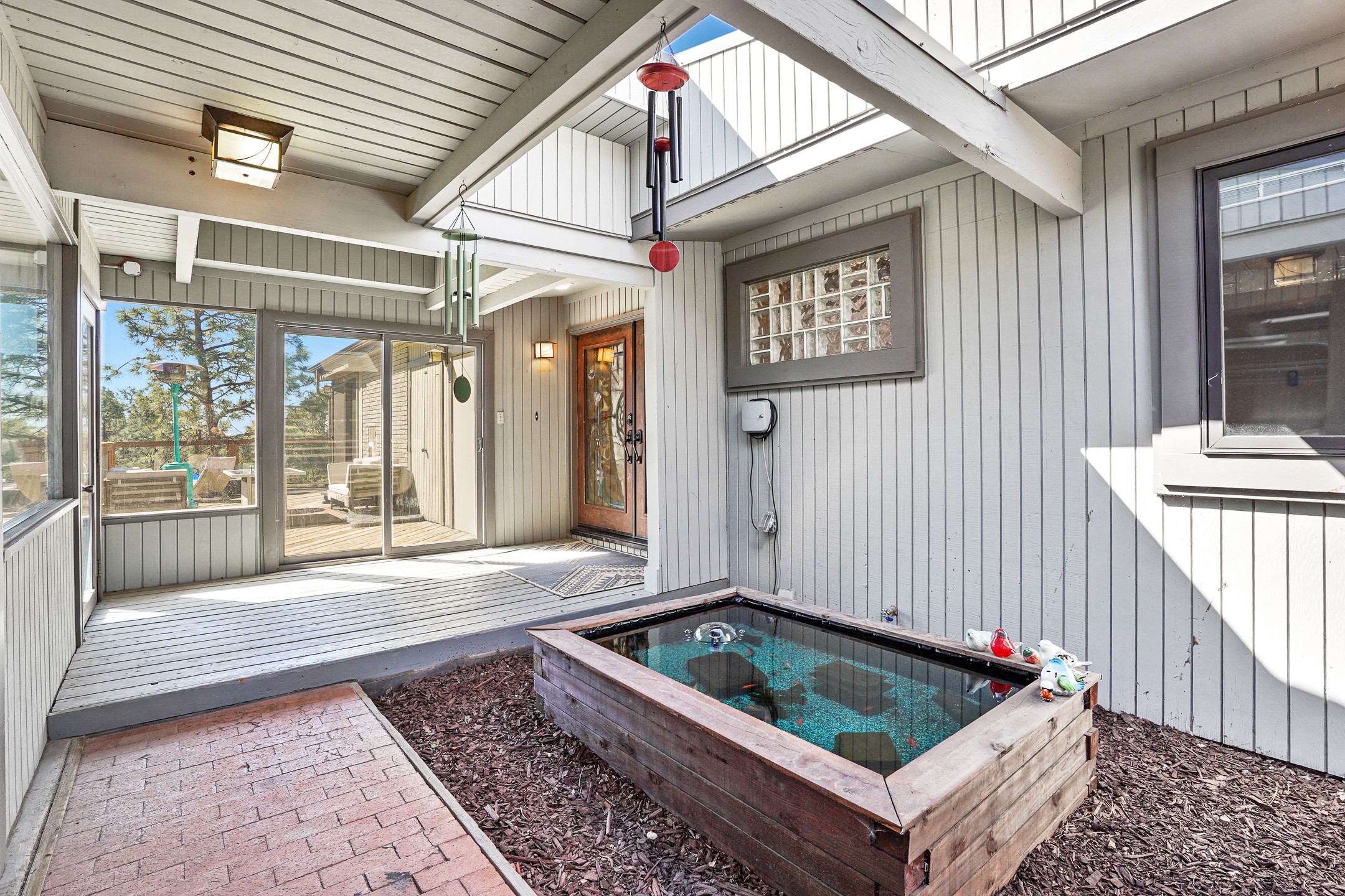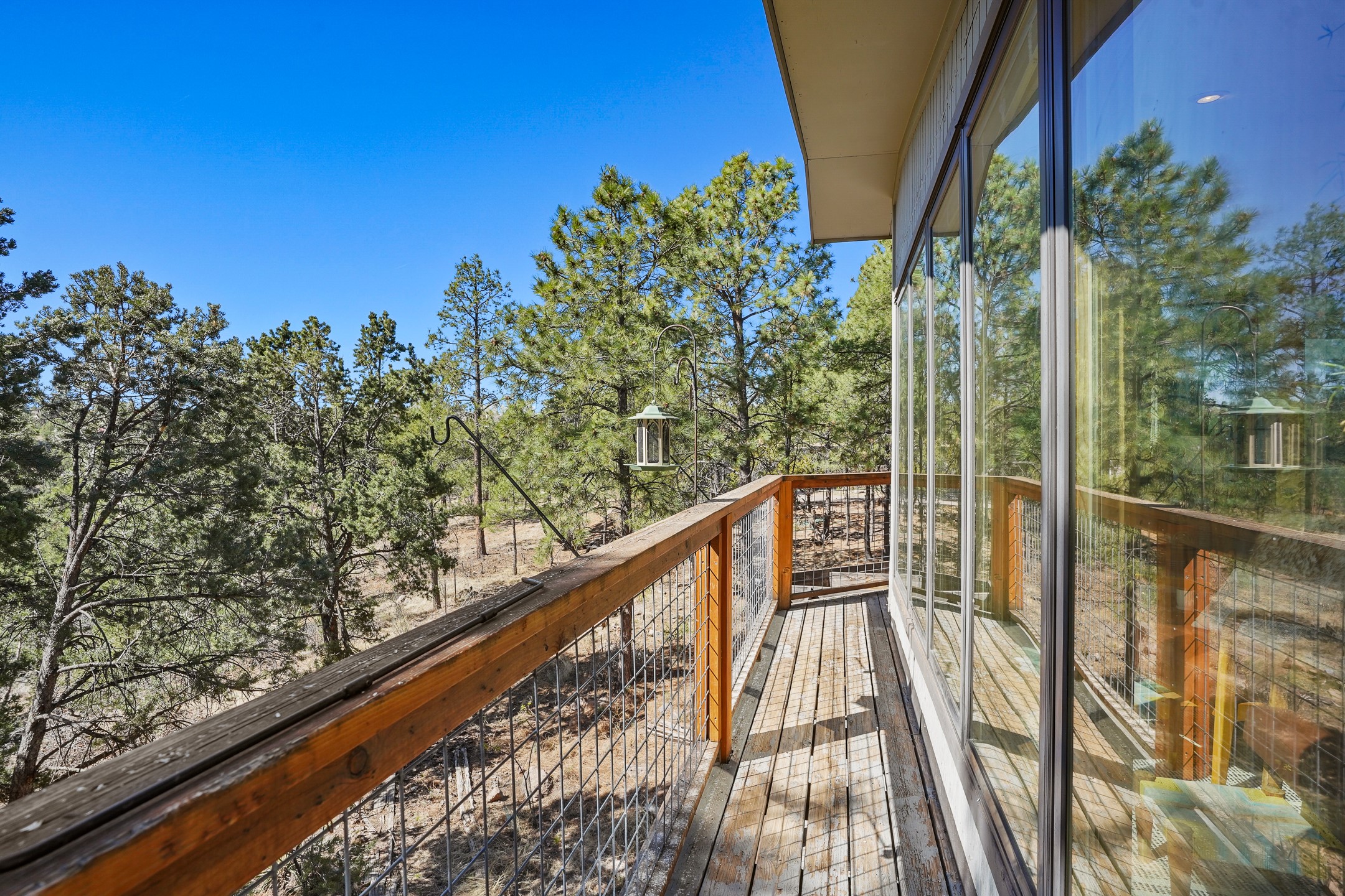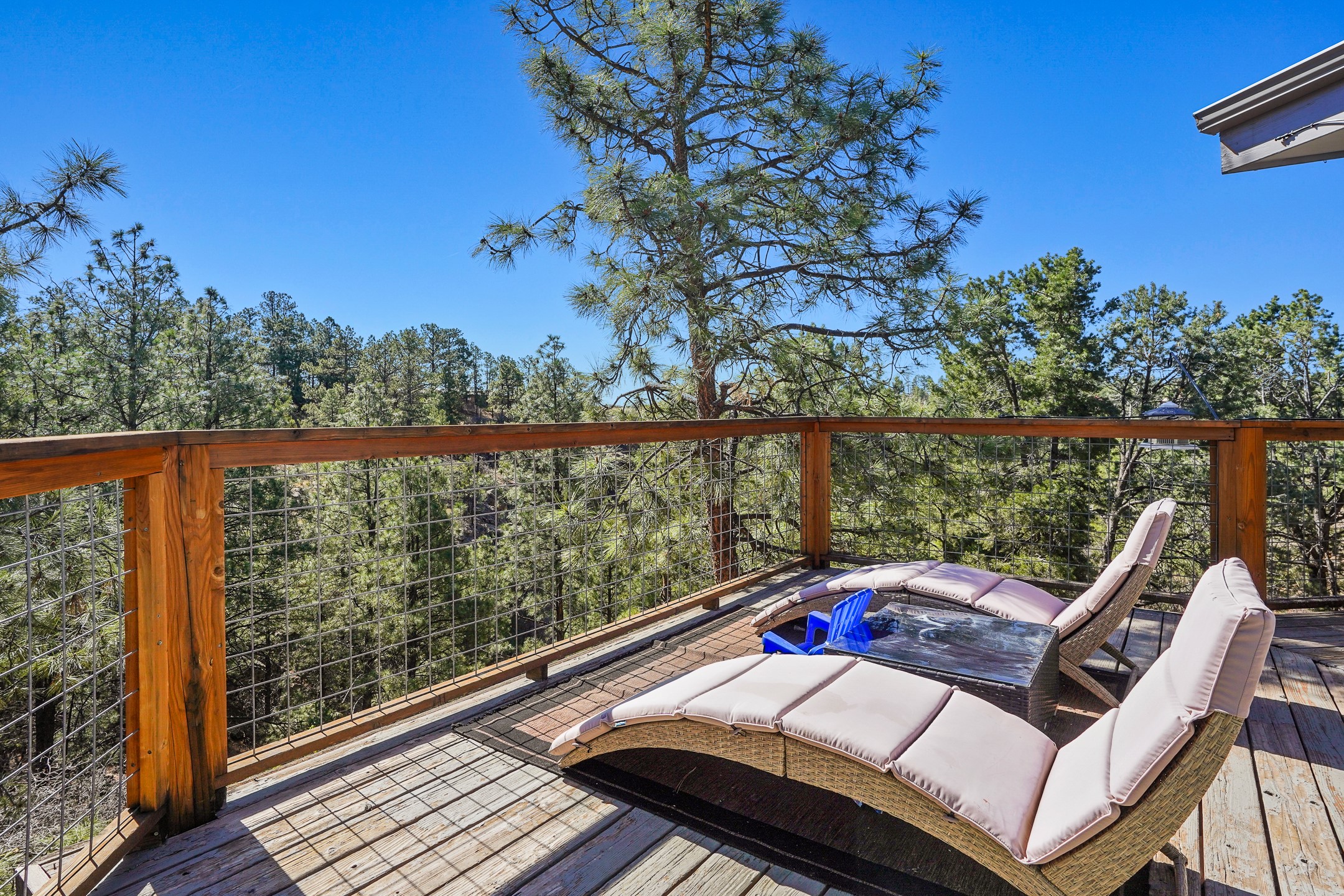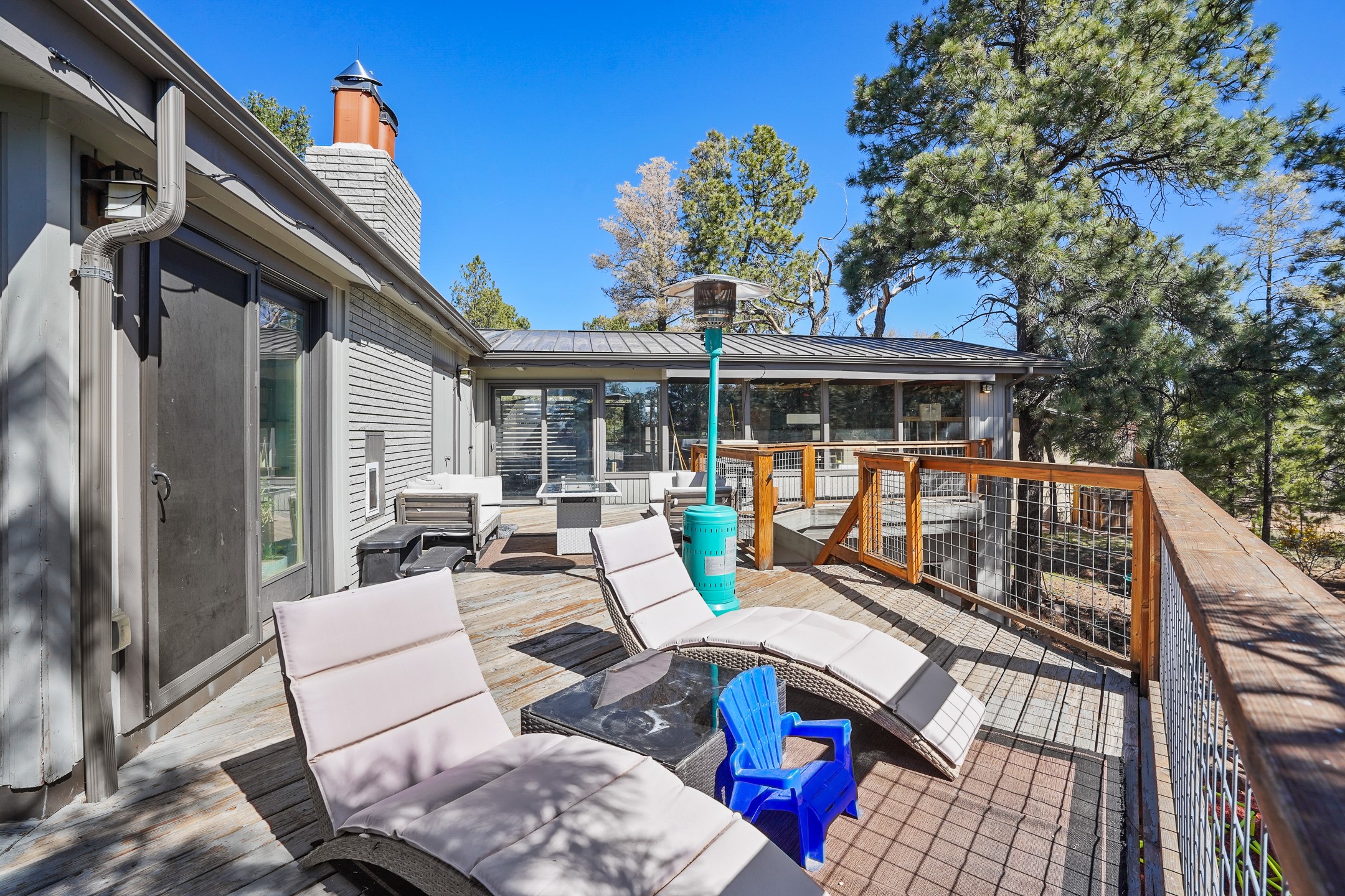 Finally, a luxe and updated home in Los Alamos...Is this the best property to hit the market in a long time?? We sure think so!! Properties of this location, size and quality are extremely rare in Los Alamos. Modern Southwest style blends seamlessly with classic 50's design in this turnkey home! In a premium location on Barranca Mesa, you'll feel as though you're in a world of your own, while only being a short drive to LANL. Easily throw off the work day as you walk in through the gated courtyard and are greeted by the bubbling fountain and the colorful hand-hewn front doors. This 4-bedroom, 3-bathroom home is thoughtfully laid out over two levels, with gathering spaces and an open floorplan on the main level, bathed in beautiful natural light and surrounded by views of the canyon. A chef's kitchen with an oversized island, prep sink, and newer high-end appliances will have you entertaining family and friends with your culinary delights. There are so many spaces for quiet conversation in the sunroom, or little moments to be had in the flex spaces throughout the home. Downstairs, you will find the bedroom suites and a den with a cozy fireplace for curling up with a good book or your favorite Netflix series. With plenty of additional rooms, you can easily create an office, a dream closet, or a kids' playroom! Outside you'll find space to relax or grill out on the sundeck, room for gardening, and the scent of many pine trees that surround you and keep you cool in summer. Additional bonuses are an attached studio space downstairs that is currently employed as a gym/man cave, and a 2-car garage for all of your storage and vehicle needs. This home is the complete package! Move-in ready just for you, don't miss this once-in-a-lifetime opportunity!