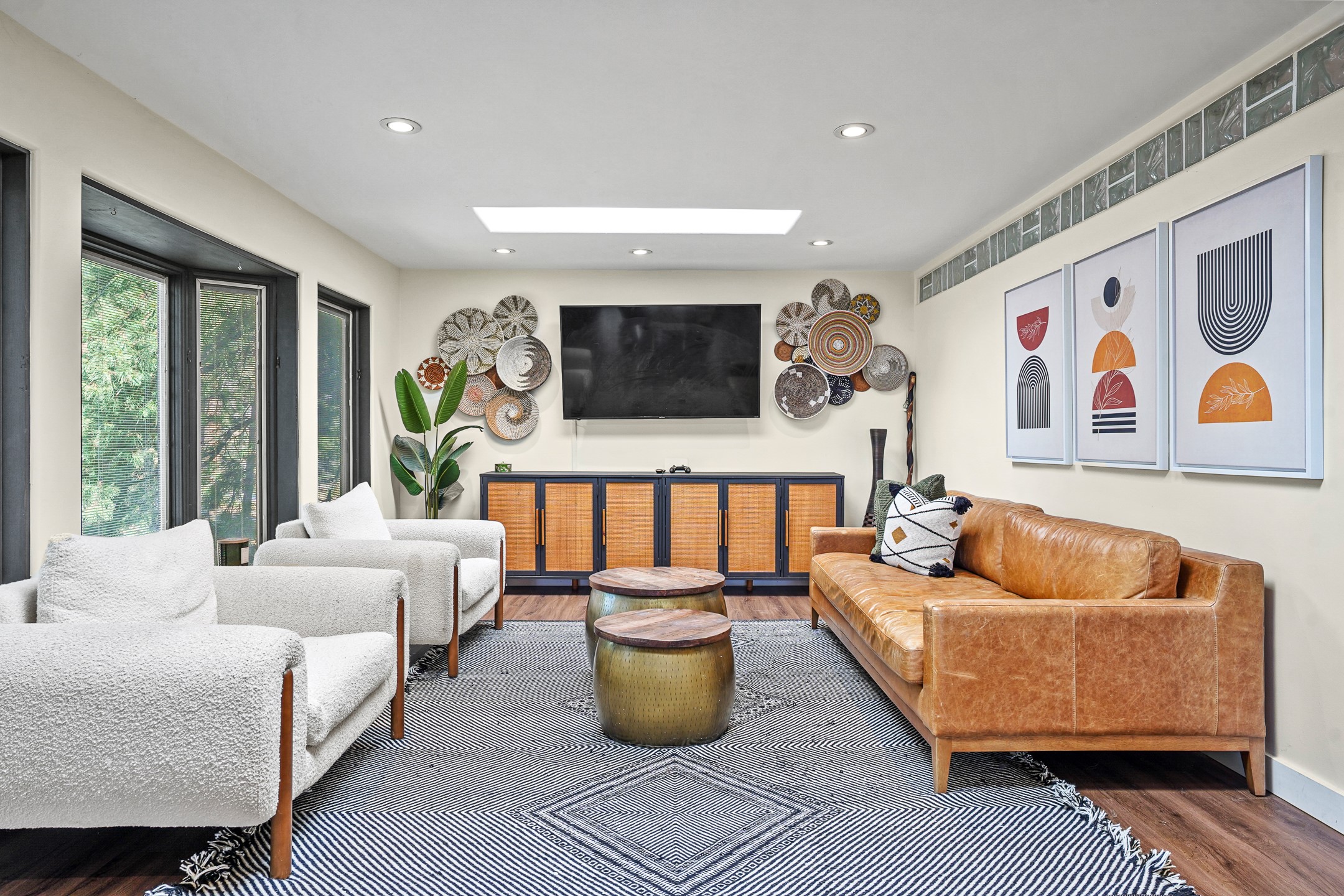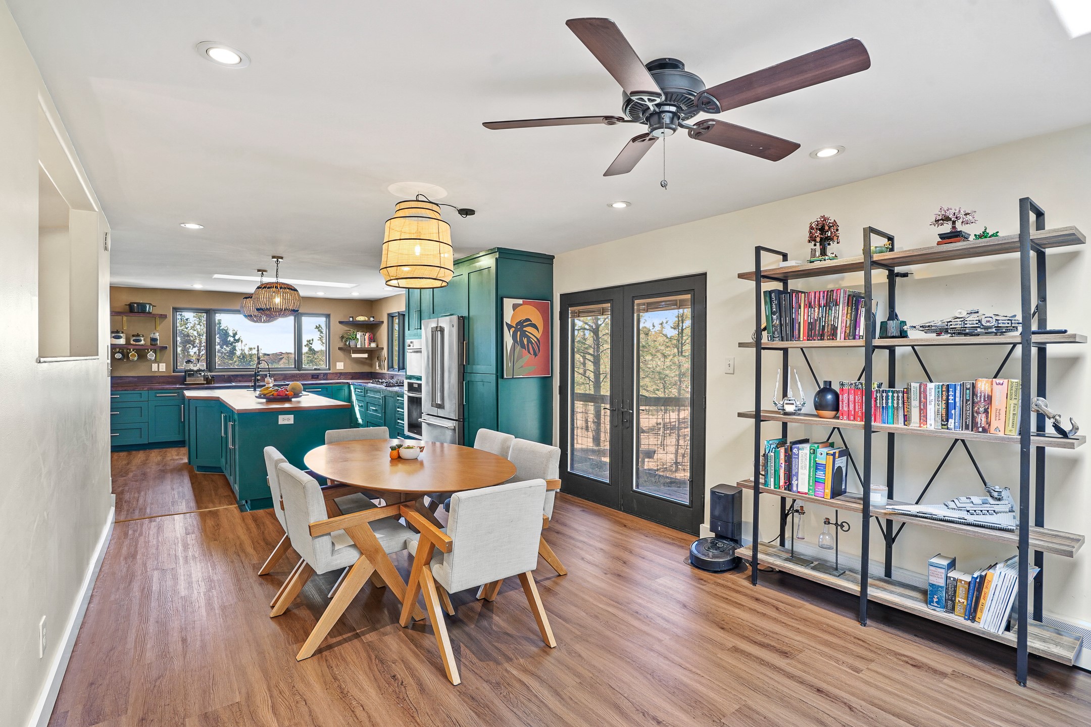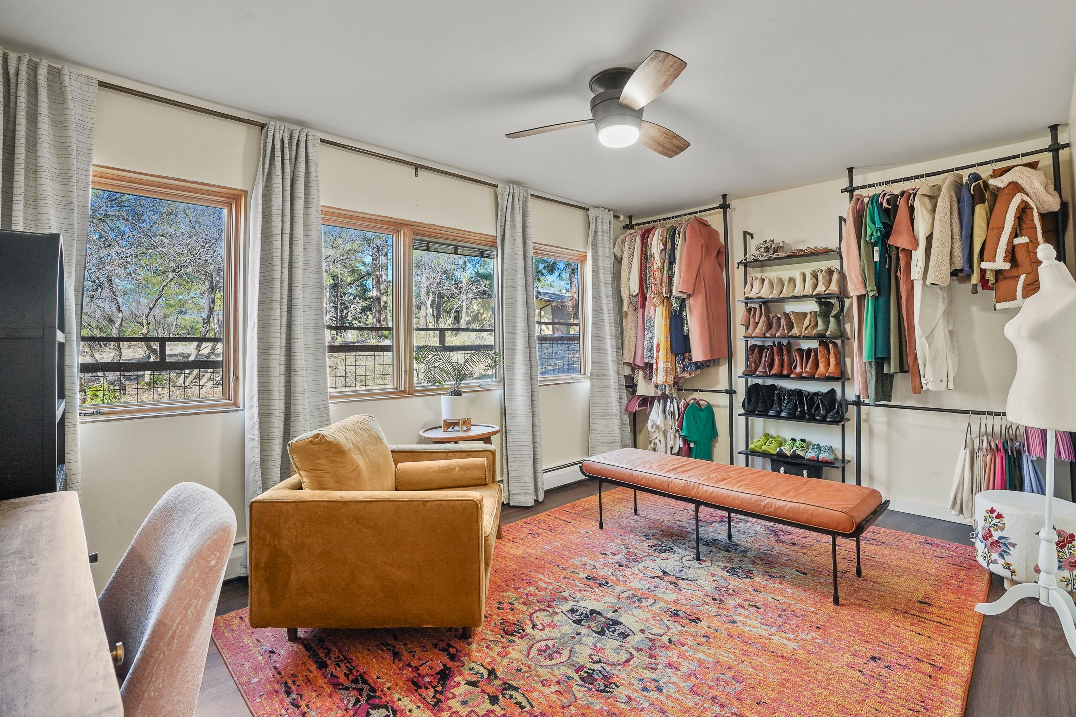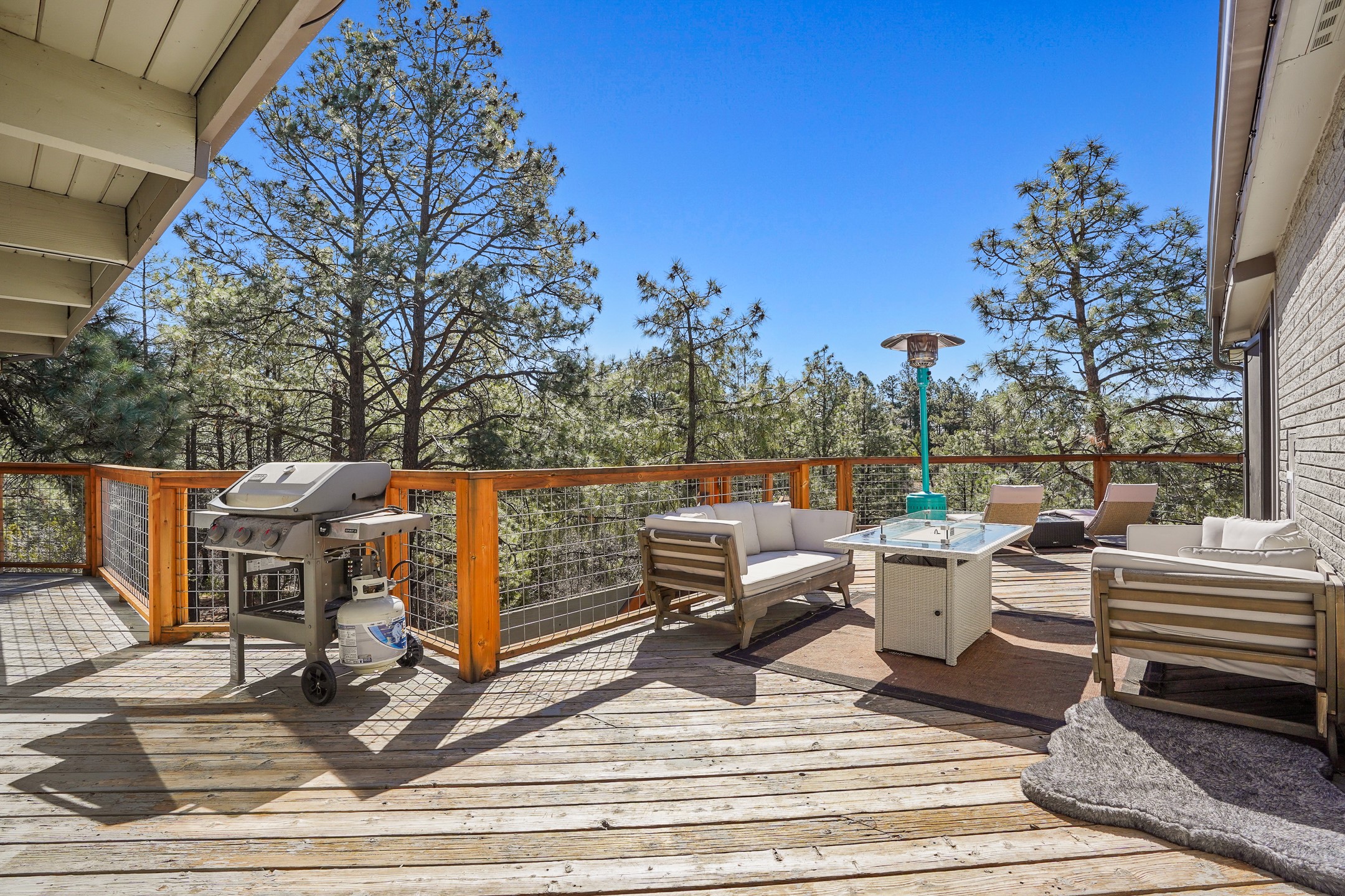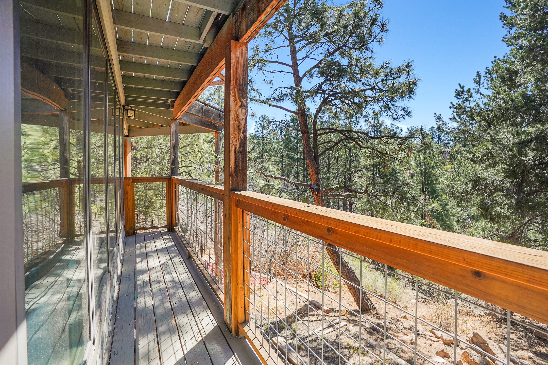 Finally, a luxe and updated home in Los Alamos...Is this the best property to hit the market in a long time?? We sure think so!! Properties of this location, size and quality are extremely rare in Los Alamos. Modern Southwest style blends seamlessly with classic 50's design in this turnkey home! In a premium location on Barranca Mesa, you'll feel as though you're in a world of your own, while only being a short drive to LANL. Easily throw off the work day as you walk in through the gated courtyard and are greeted by the bubbling fountain and the colorful hand-hewn front doors. This 4-bedroom, 3-bathroom home is thoughtfully laid out over two levels, with gathering spaces and an open floorplan on the main level, bathed in beautiful natural light and surrounded by views of the canyon. A chef's kitchen with an oversized island, prep sink, and newer high-end appliances will have you entertaining family and friends with your culinary delights. There are so many spaces for quiet conversation in the sunroom, or little moments to be had in the flex spaces throughout the home. Downstairs, you will find the bedroom suites and a den with a cozy fireplace for curling up with a good book or your favorite Netflix series. With plenty of additional rooms, you can easily create an office, a dream closet, or a kids' playroom! Outside you'll find space to relax or grill out on the sundeck, room for gardening, and the scent of many pine trees that surround you and keep you cool in summer. Additional bonuses are an attached studio space downstairs that is currently employed as a gym/man cave, and a 2-car garage for all of your storage and vehicle needs. This home is the complete package! Move-in ready just for you, don't miss this once-in-a-lifetime opportunity!