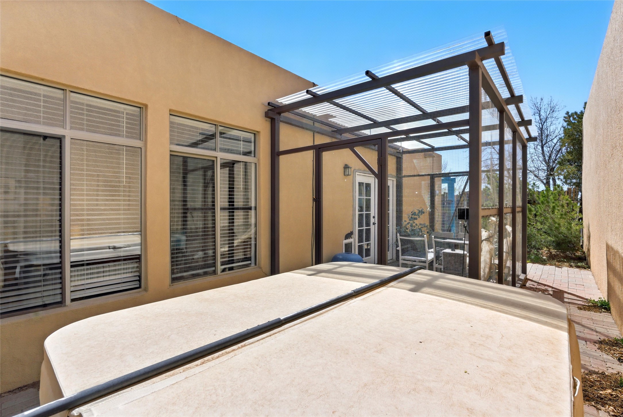 Charming 2-bed, 2-bath Pueblo-style home in the peaceful Los Milagros community. Features an open floor plan, Kiva fireplace, mountain views, landscaped yard, courtyard, and carport with storage. Located on a quiet cul-de-sac near shopping, schools, and the airport. Built in 1996, the home offers forced air heating, evaporative cooling, and a flat roof with classic Santa Fe stucco charm--perfect for low-maintenance living in a serene setting. This house is ideal for a family or investors alike.