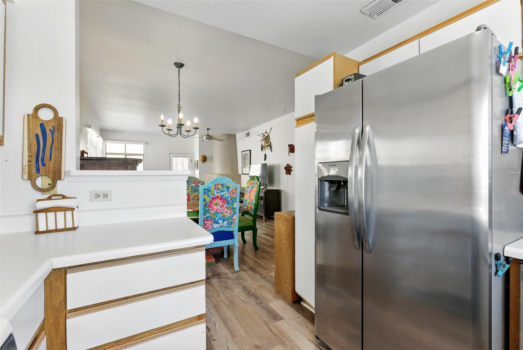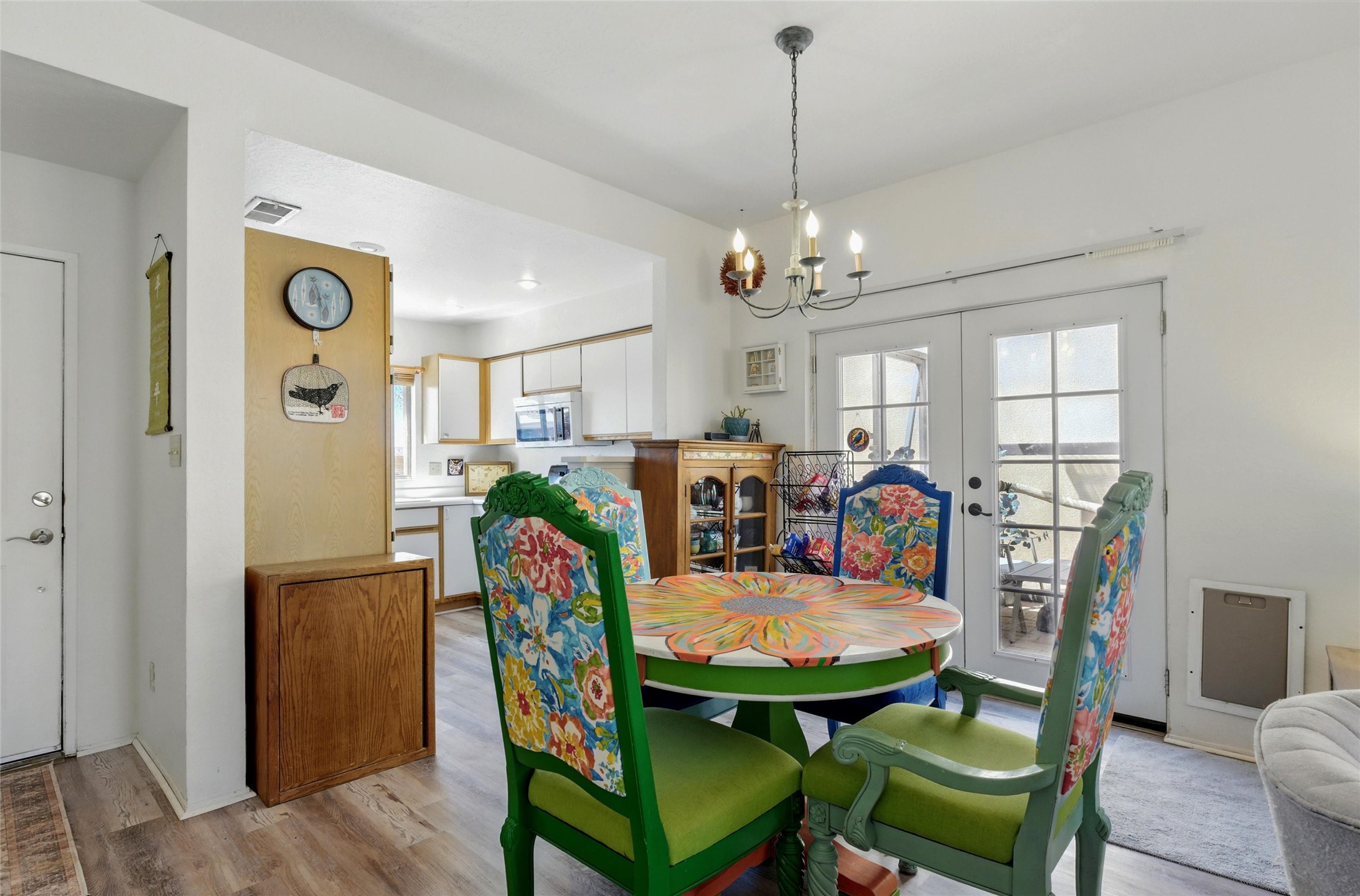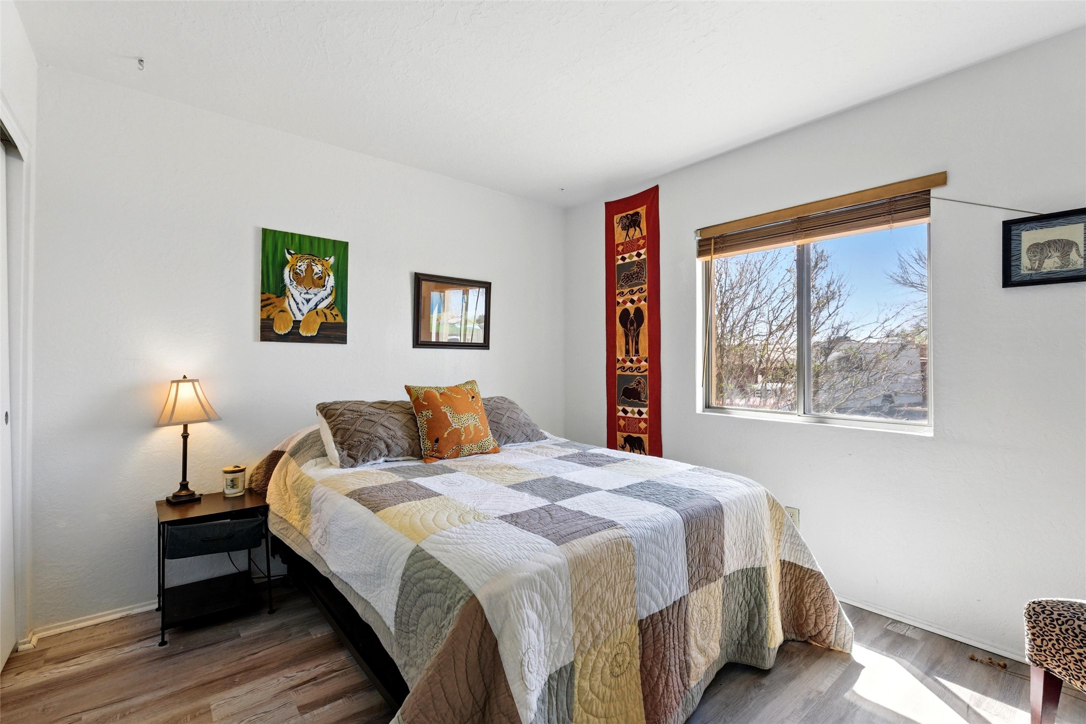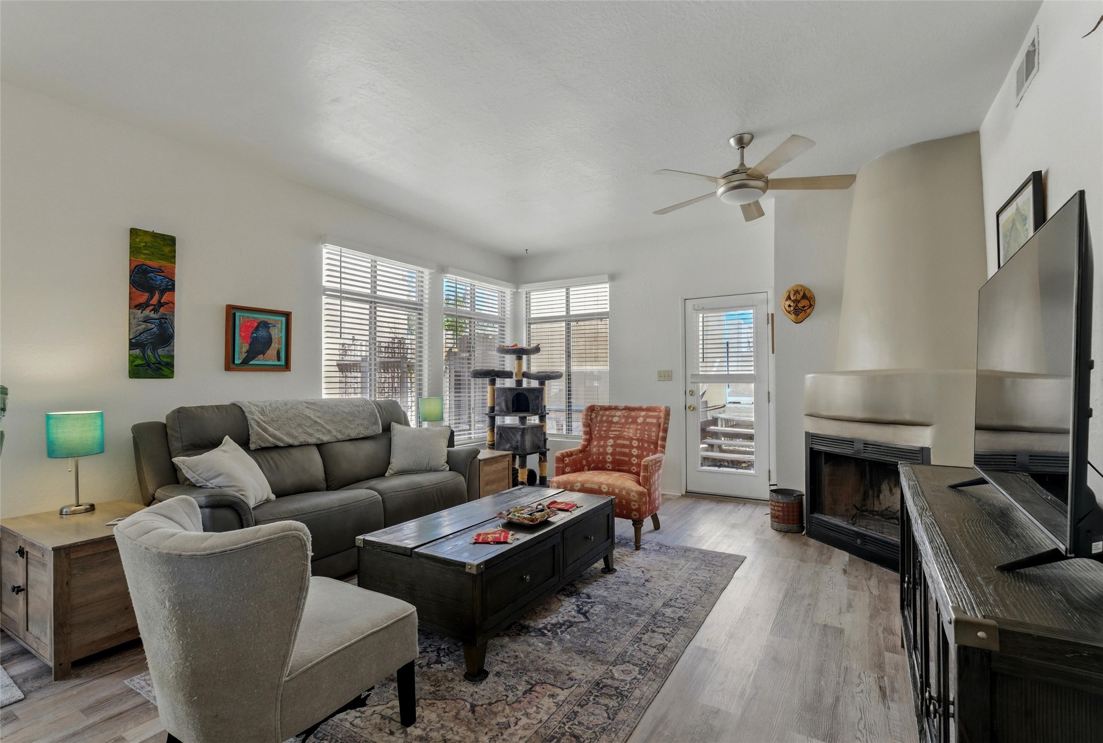 Charming 2-bed, 2-bath Pueblo-style home in the peaceful Los Milagros community. Features an open floor plan, Kiva fireplace, mountain views, landscaped yard, courtyard, and carport with storage. Located on a quiet cul-de-sac near shopping, schools, and the airport. Built in 1996, the home offers forced air heating, evaporative cooling, and a flat roof with classic Santa Fe stucco charm--perfect for low-maintenance living in a serene setting. This house is ideal for a family or investors alike.