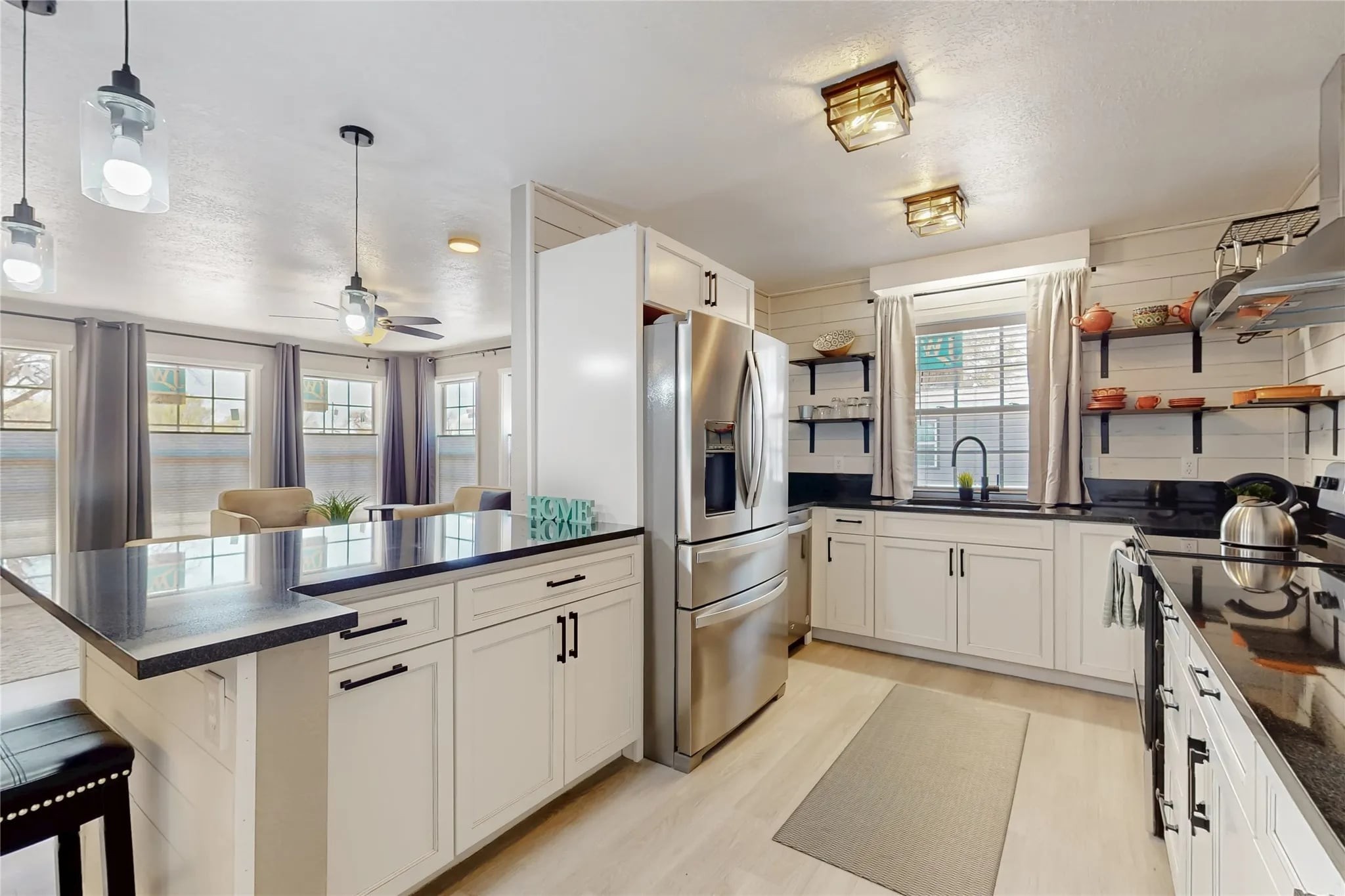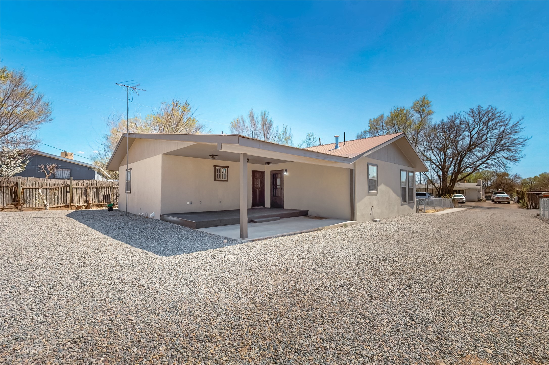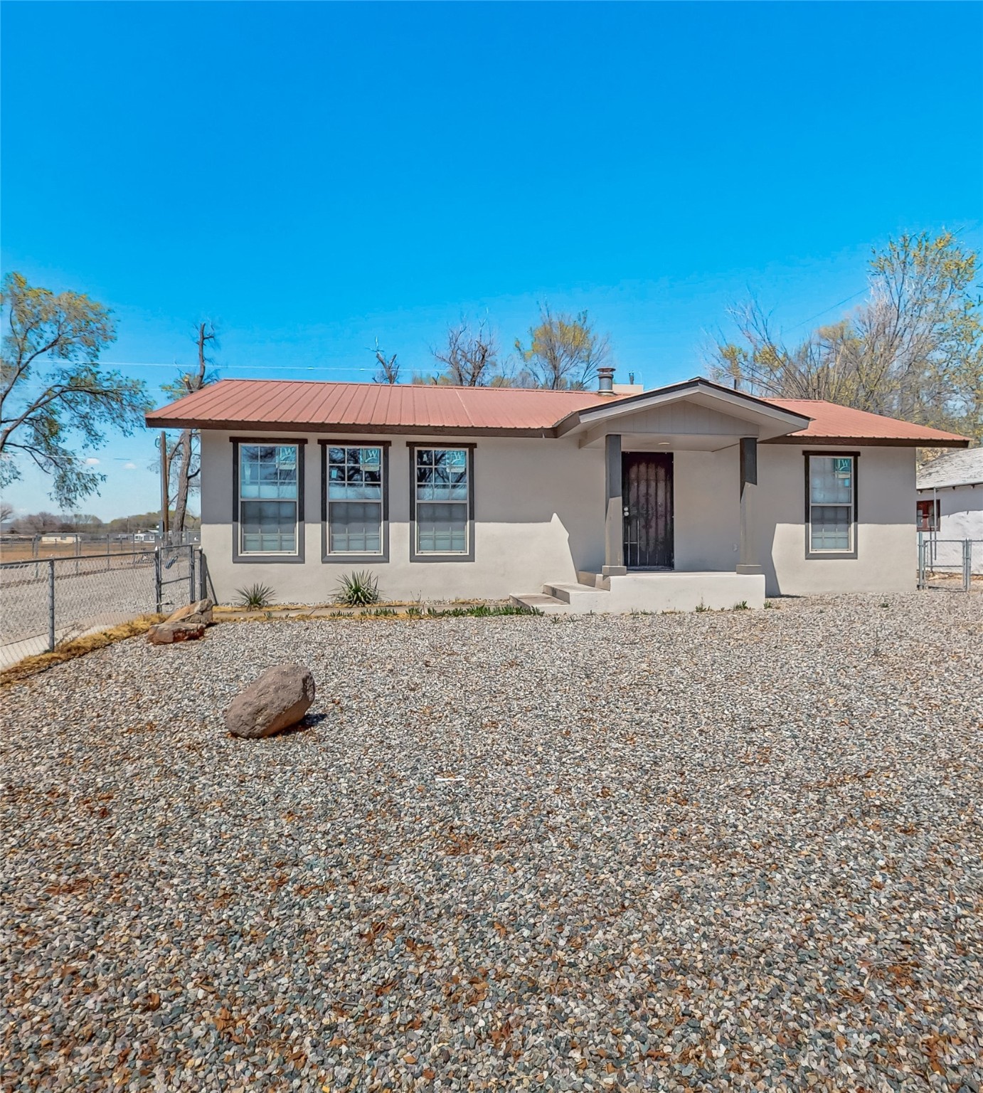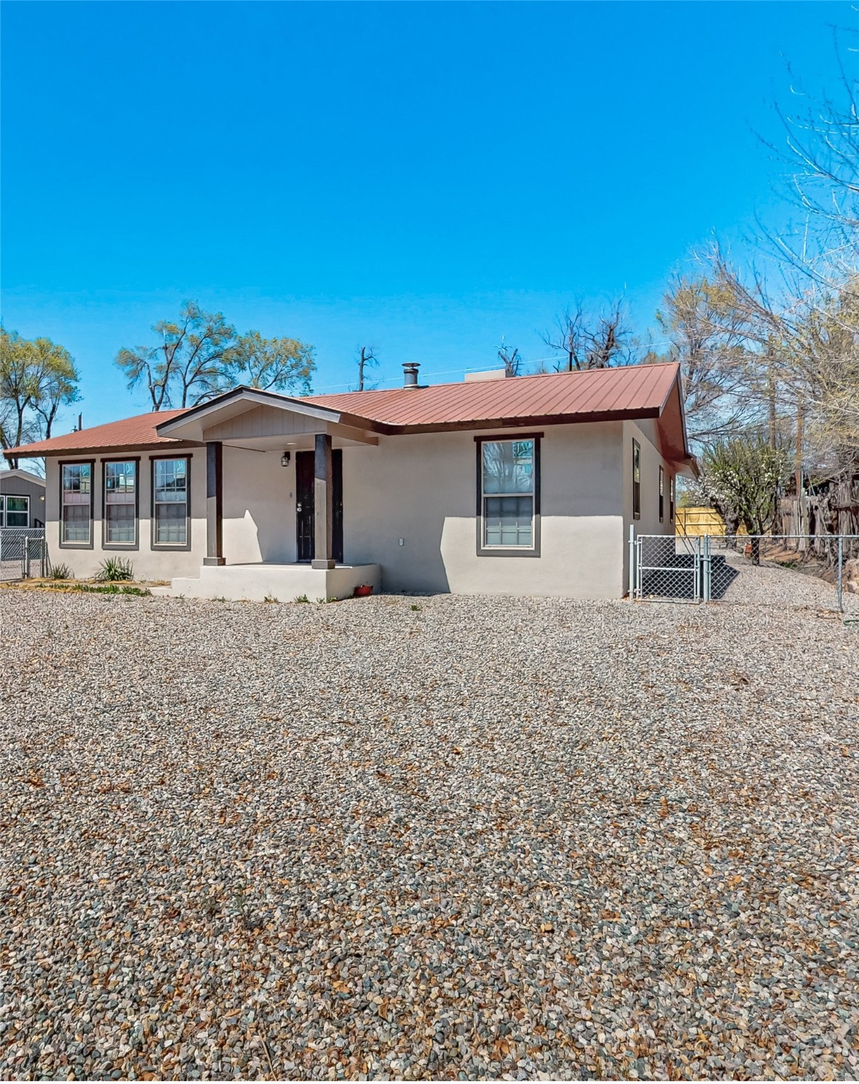 ** Seller to contribute $5,000 towards buyers closing costs/rate-buydown. HUGE PRICE REDUCTION!! What a rare opportunity to get to two stunning homes centrally located in the beautiful Espanola Valley. Both homes have been tastefully redone. Step into style and comfort with this beautifully updated property featuring a completely remodeled kitchen, equipped with new appliances, granite countertops, black quartz sink, and elegant soft close cabinets in a White Ivory with Silver glaze. Enjoy the sleek look and durability of the flooring that flows seamlessly throughout the home in a nice grey color. Natural light fills the space through new windows dressed in new modern blinds, while a new lighting package enhances the ambiance in every room. Enjoy the beautiful closets for all your storage needs. New heaters, new Master Cool unit offer peace of mind in the main house. New water heaters have installed in both homes. Main house offers a wood stove fireplace for those cold nights. Also added is a privacy fence on the North side of the property. This home also features a beautifully updated casita, perfect as a guesthouse, RENTAL, or she/man cave. Step inside to find a brand-new kitchen featuring butcher block countertops, gorgeous backsplash, under cabinet lighting as well as new appliances. The newly remodeled bathroom offers a glass round shower. Relax in the living area with the electric fireplace for ambiance and heat. Home boasts custom tile flooring throughout. Casita is on its own well and meter. All new windows, doors and electrical. Property comes with irrigation water rights and ditch to keep up those fantastic fruit trees. THIS PROPERTY HAS SO MUCH TO OFFER!! Come see this one before it is gone!